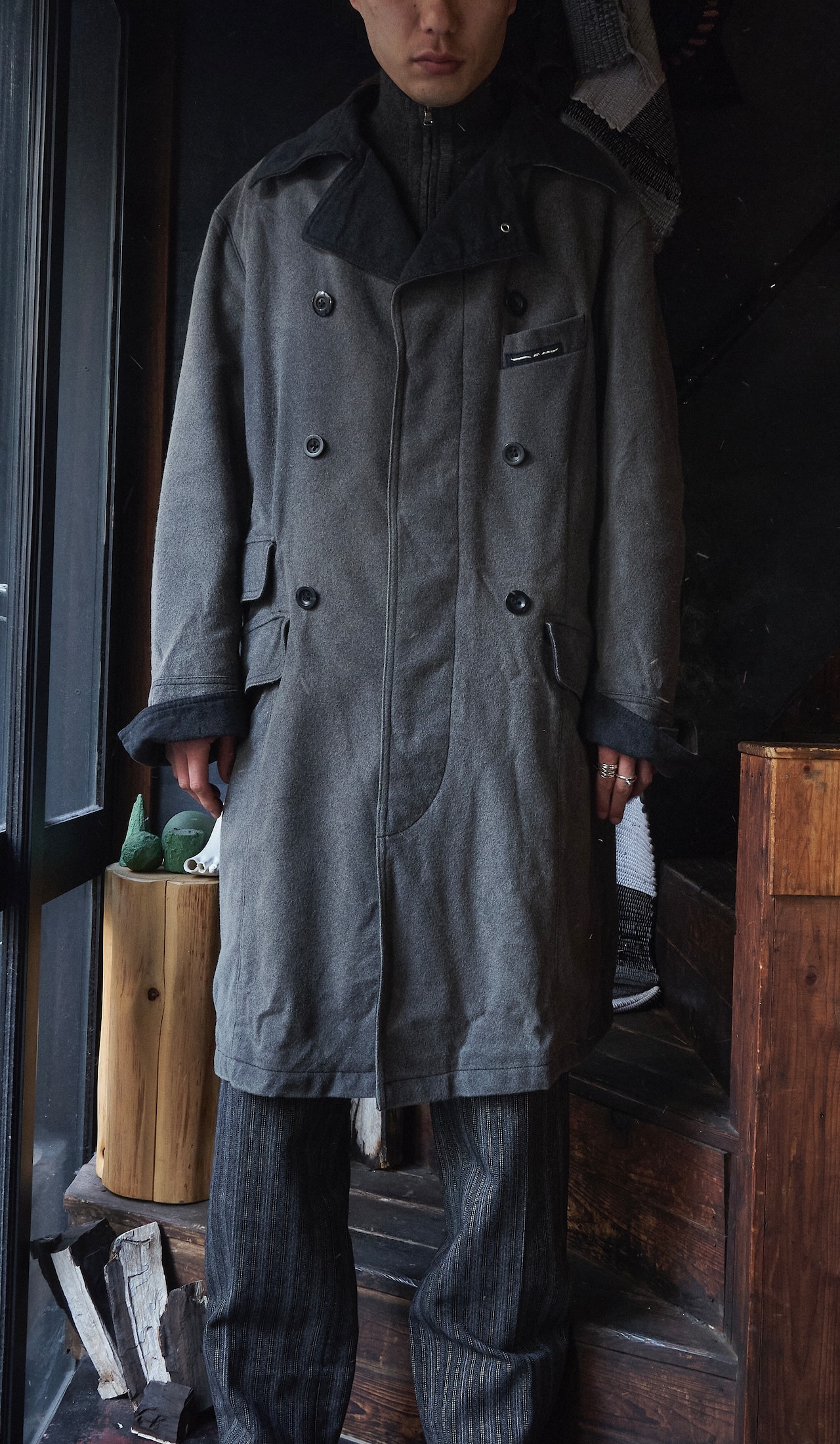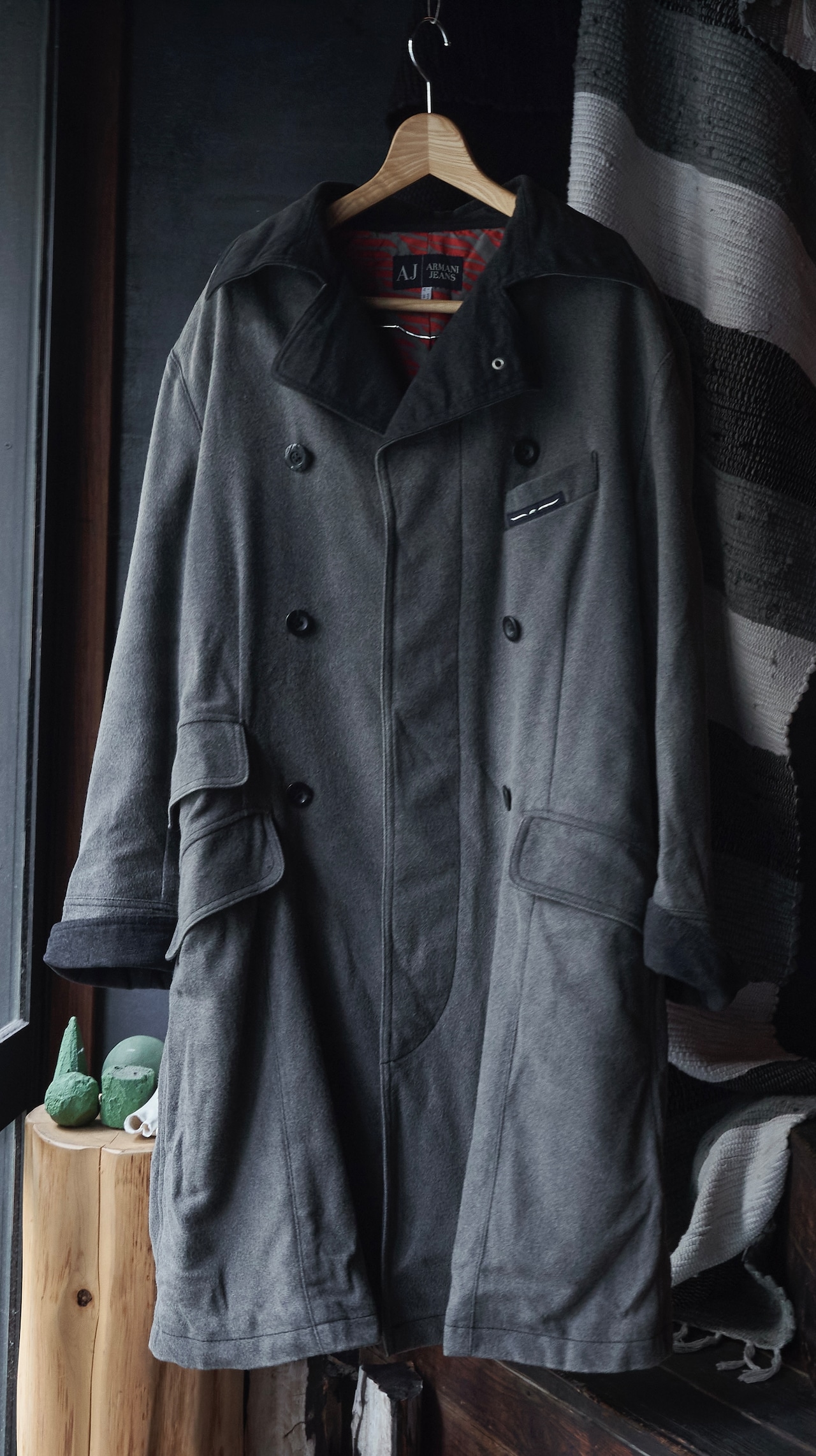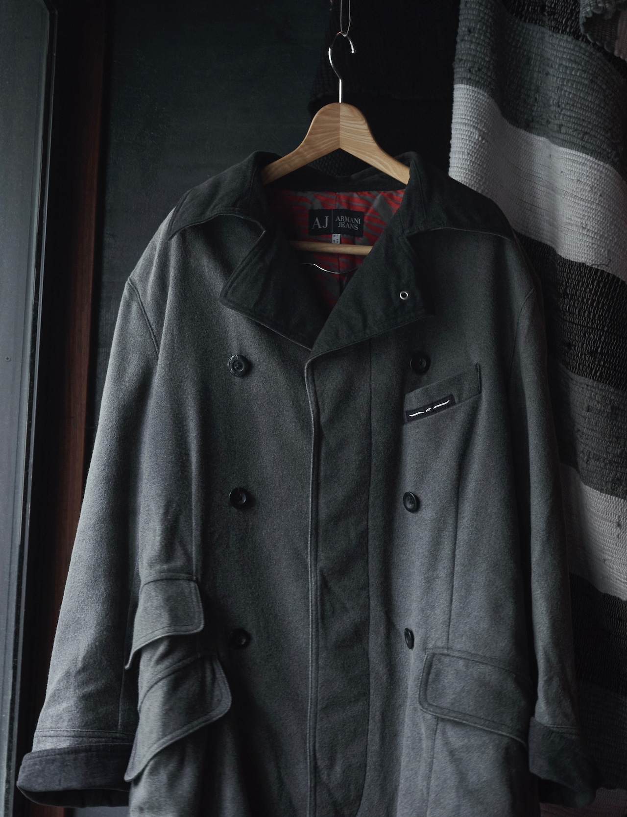 ARMANI jeans Wool × Nylon Double-breasted pattern long coat
