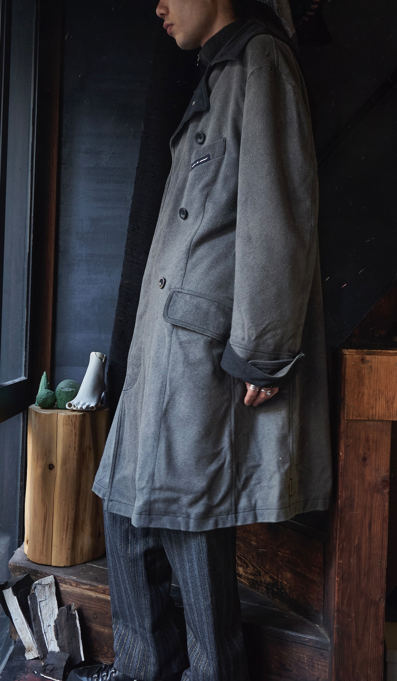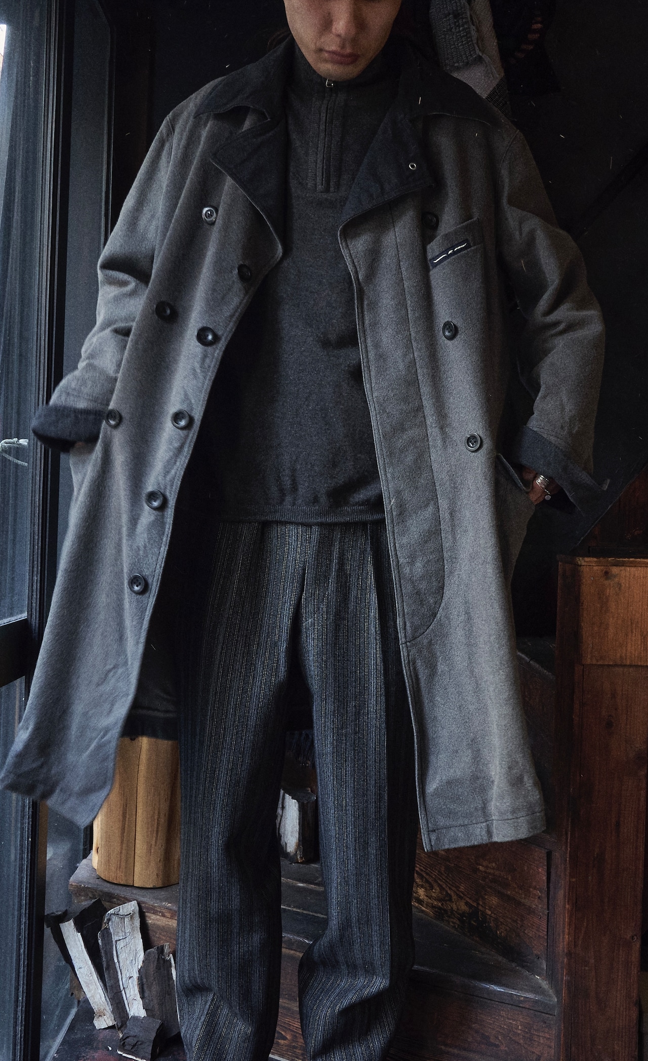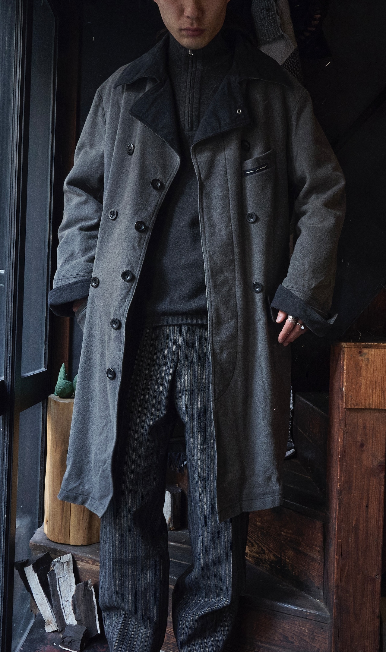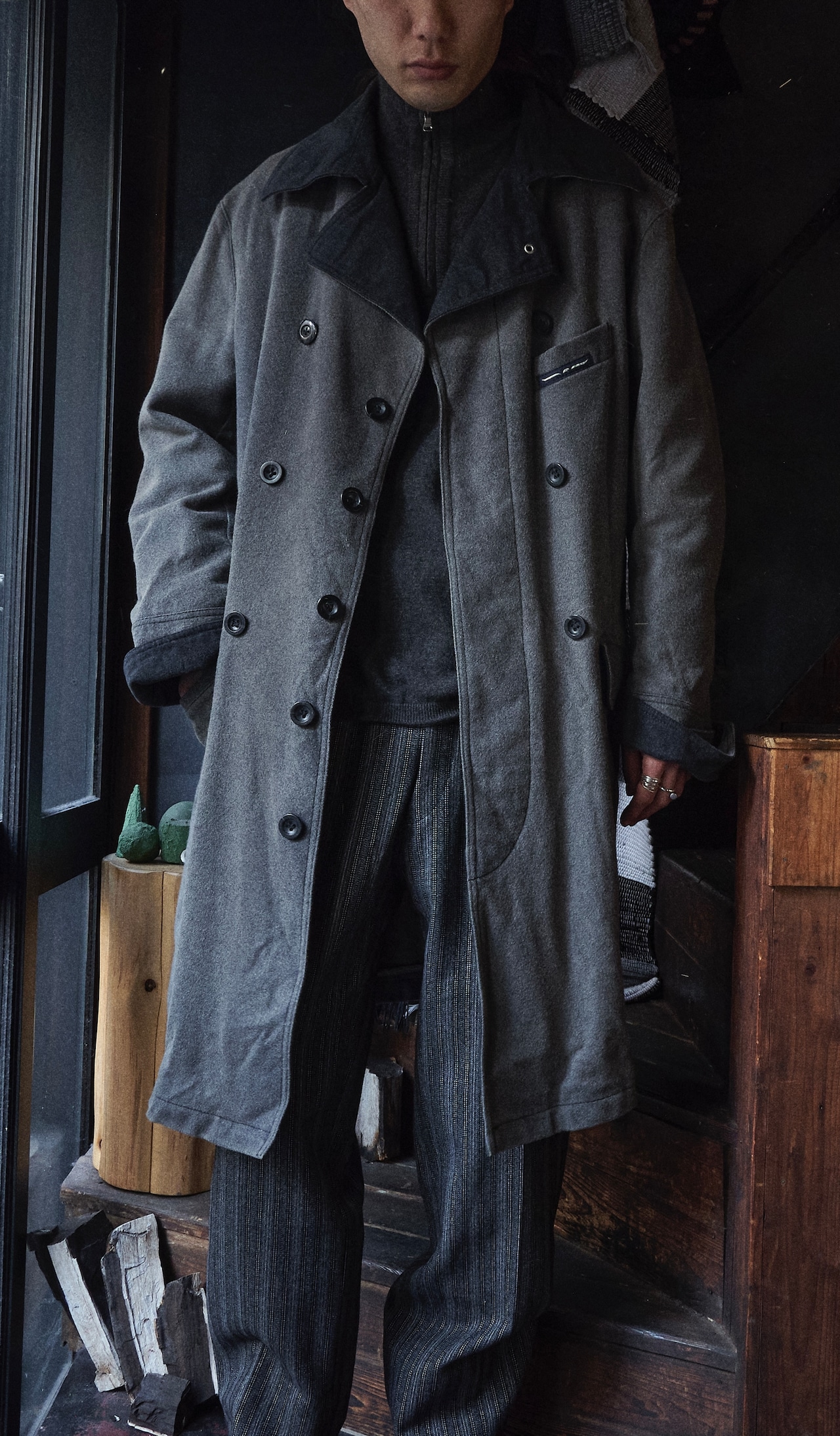 ARMANI jeans Wool × Nylon Double-breasted pattern long coat