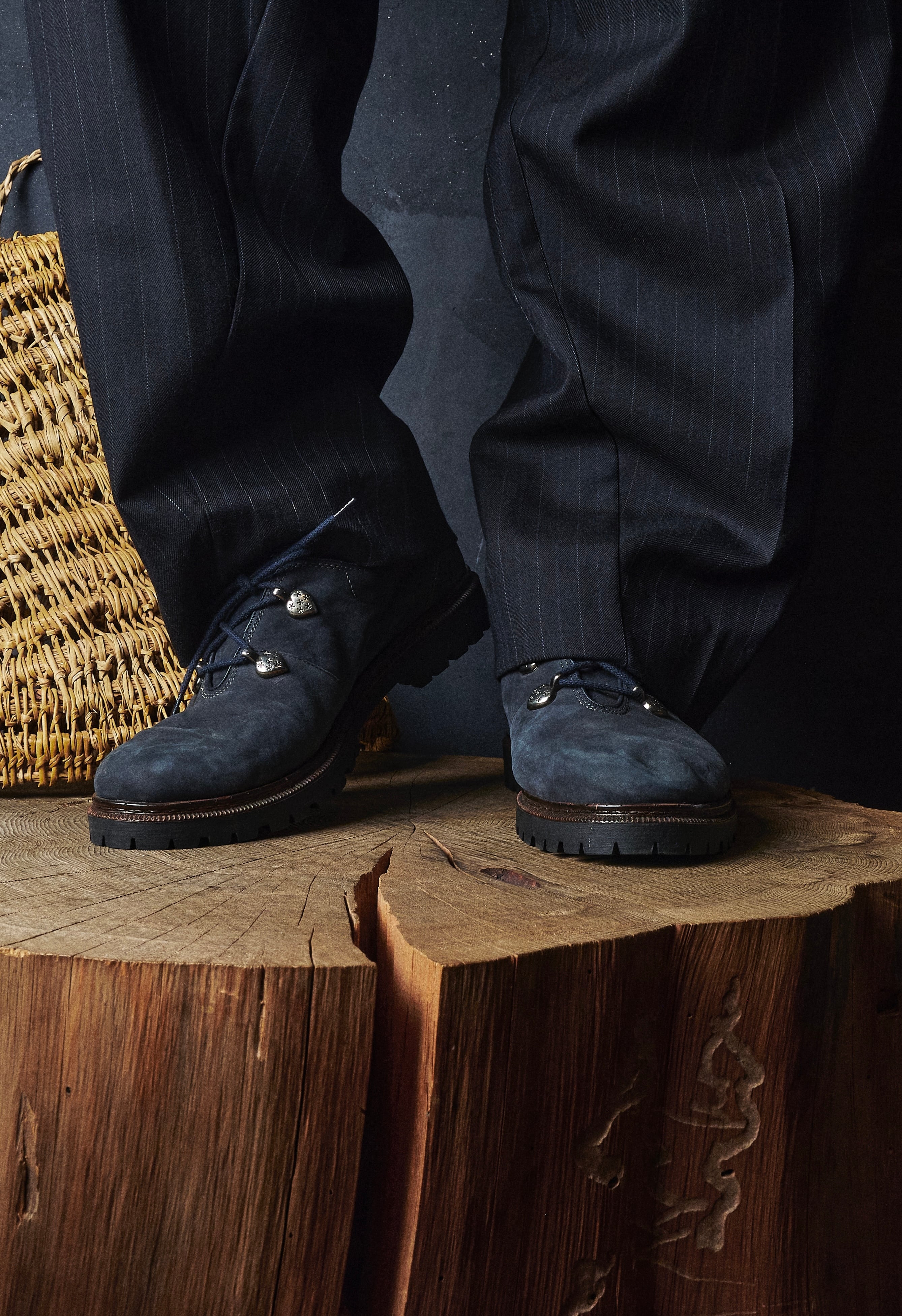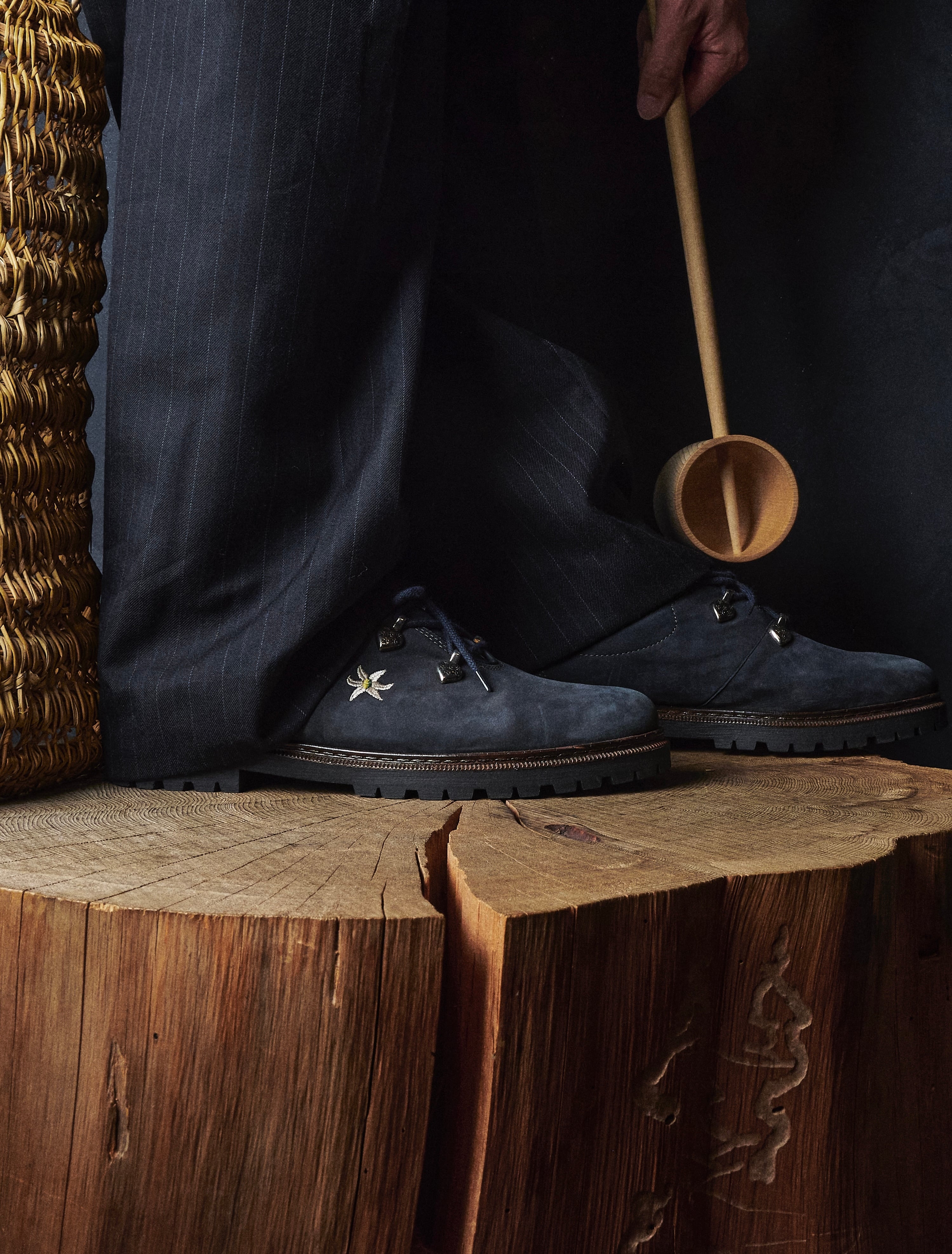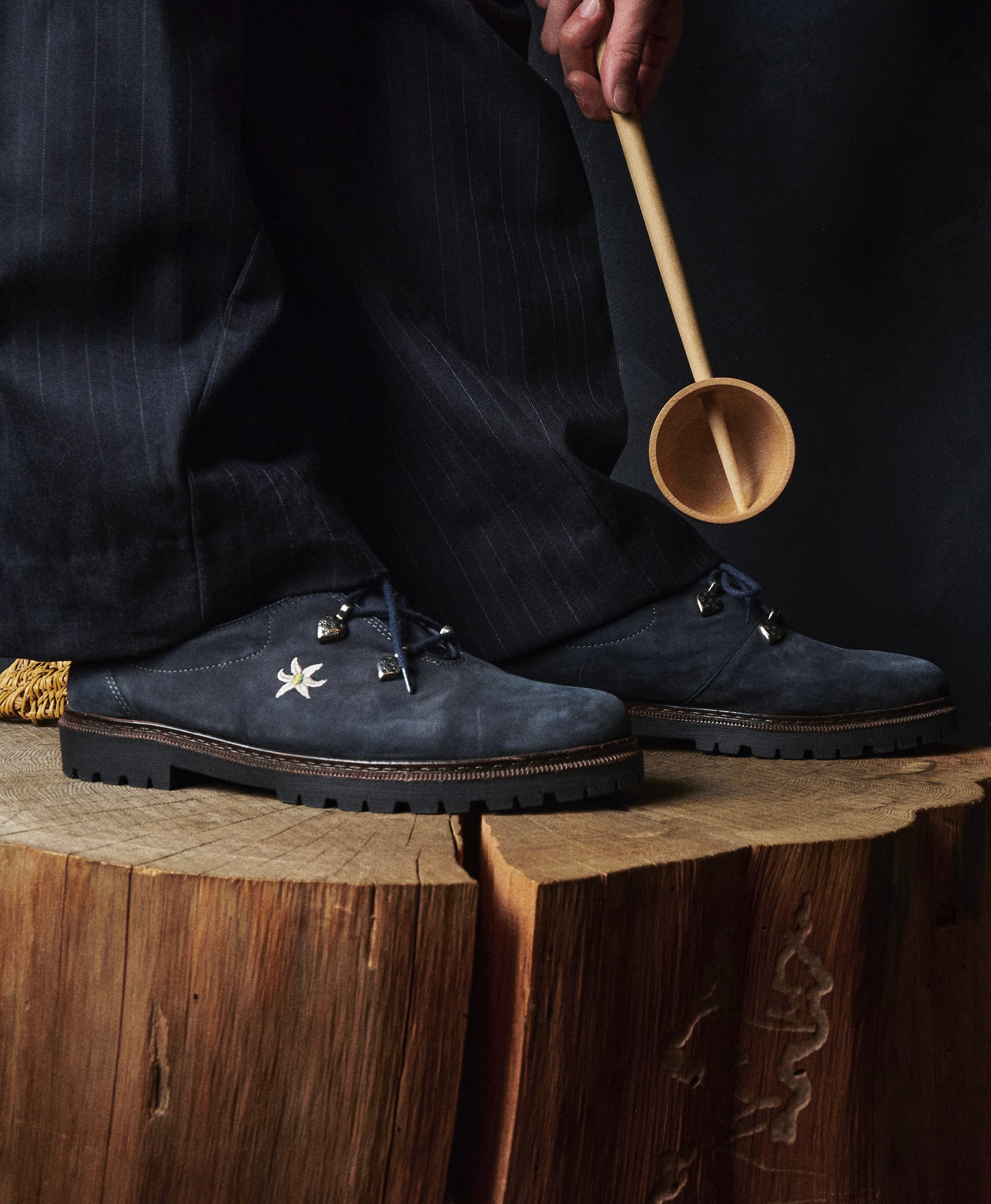 80s Austria flower-embroidered Tyrolean navy leather shoes Dead stock