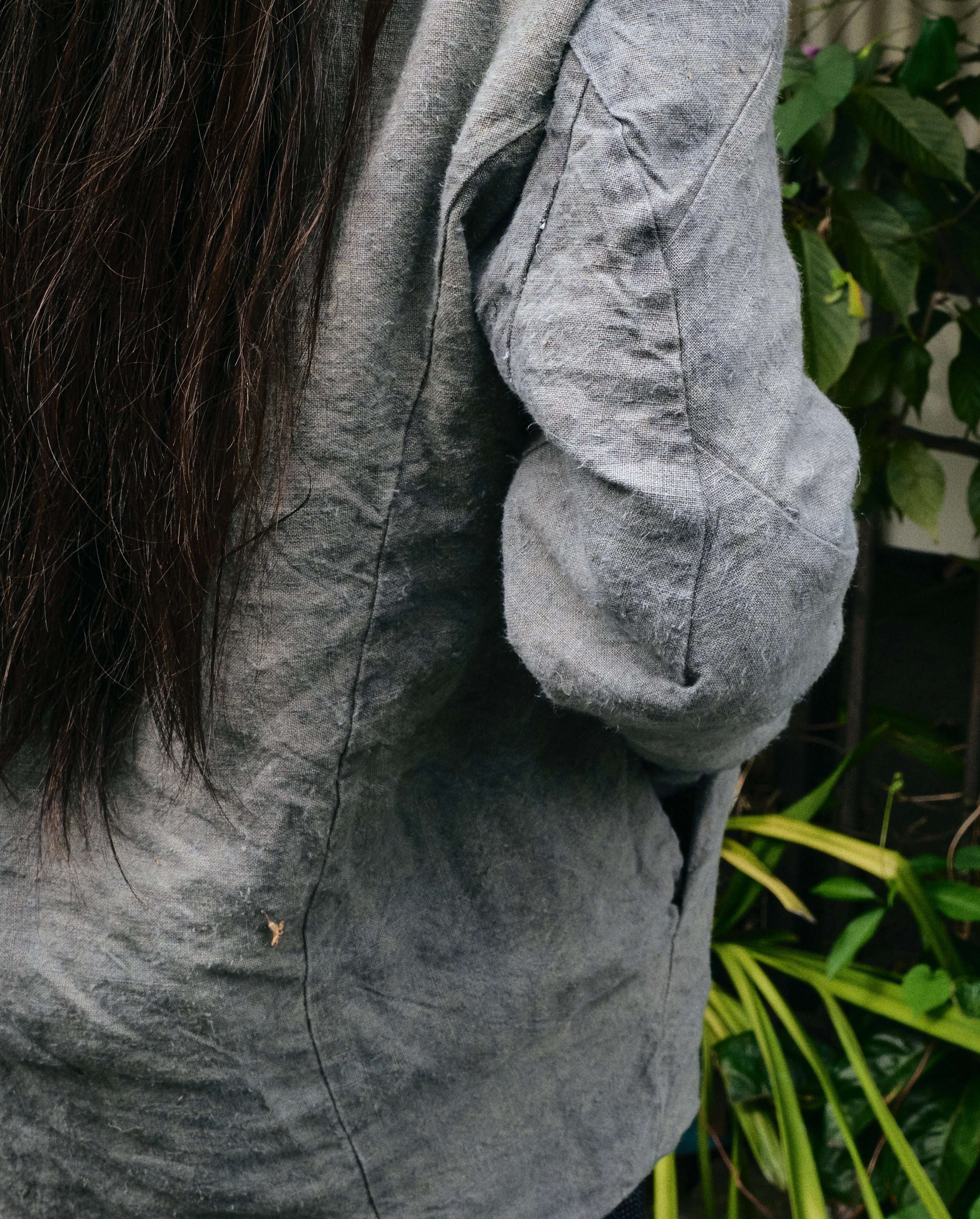 このジャケットにはフランスのアンティークリネンを使用して、裏地になキャンバス生地が使用されています。