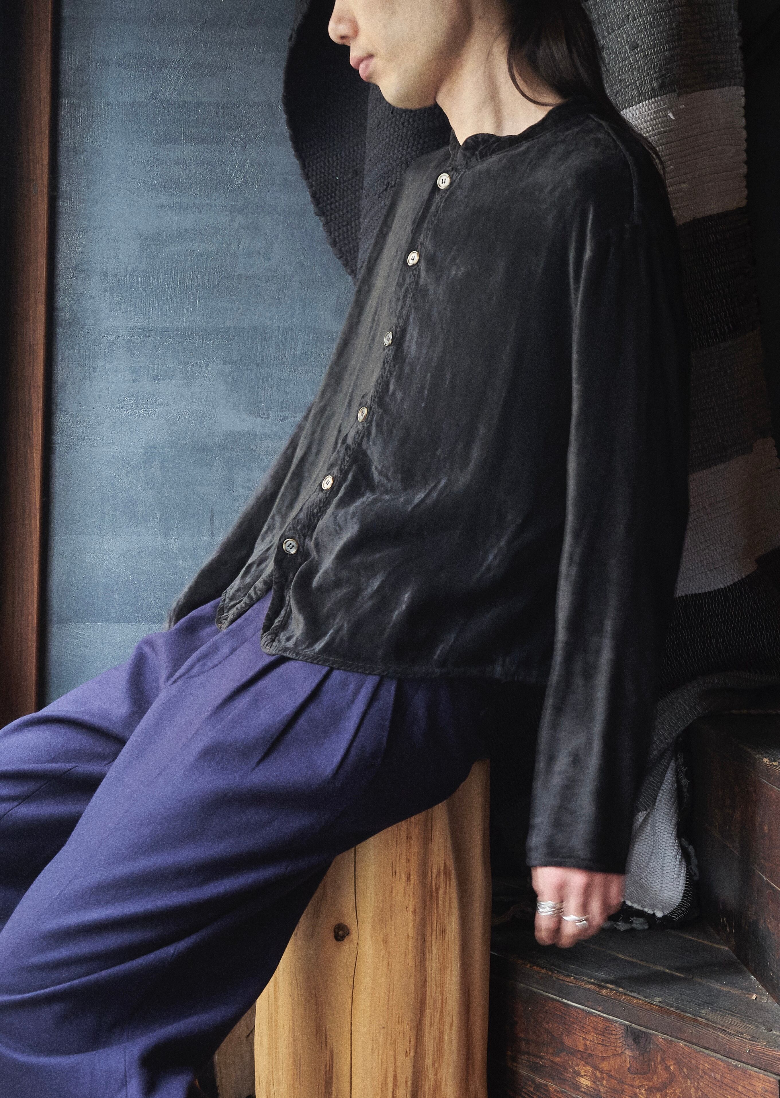 C.P. SHADES Short-length velvet fabric stand-collar shirt