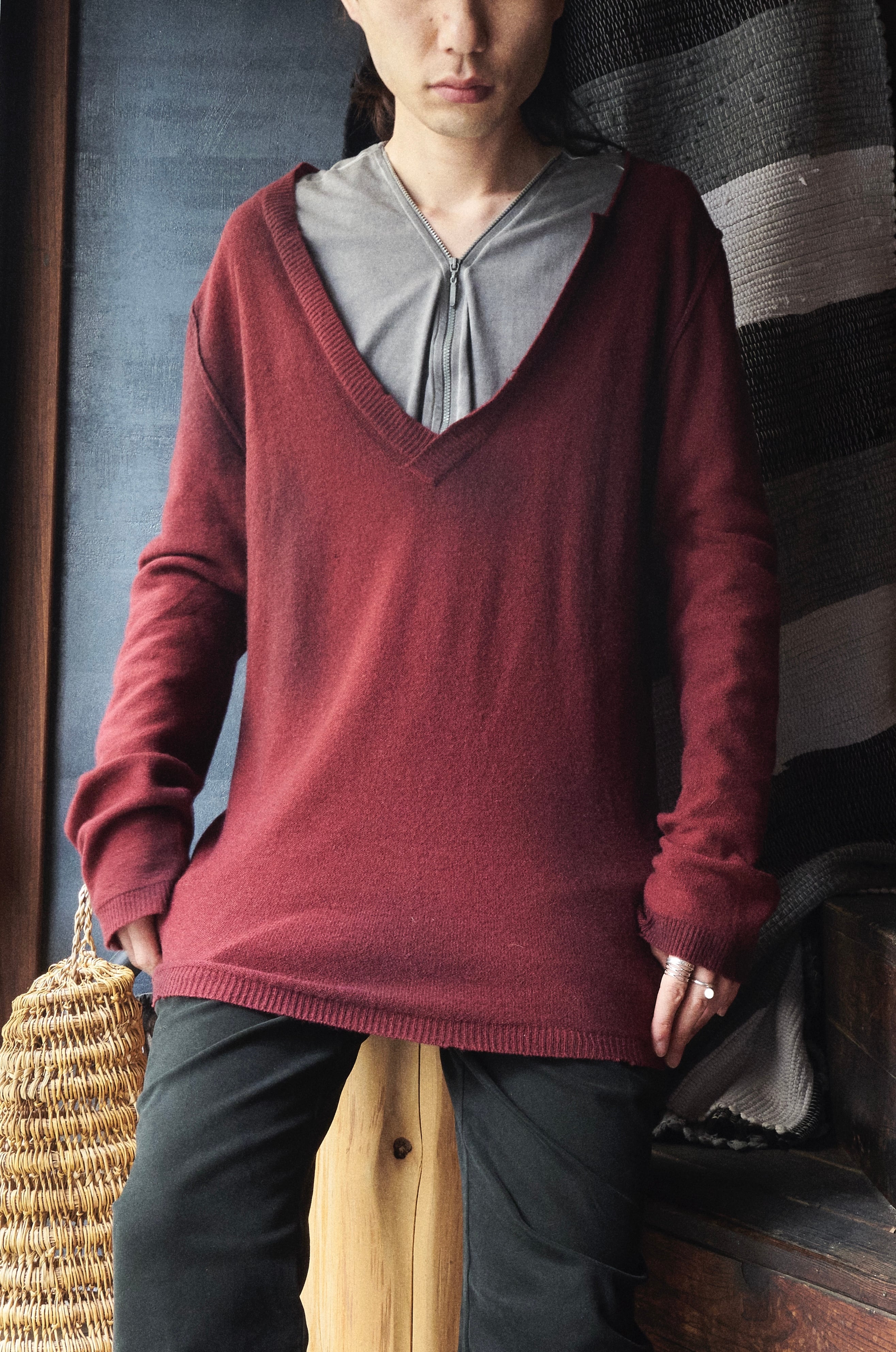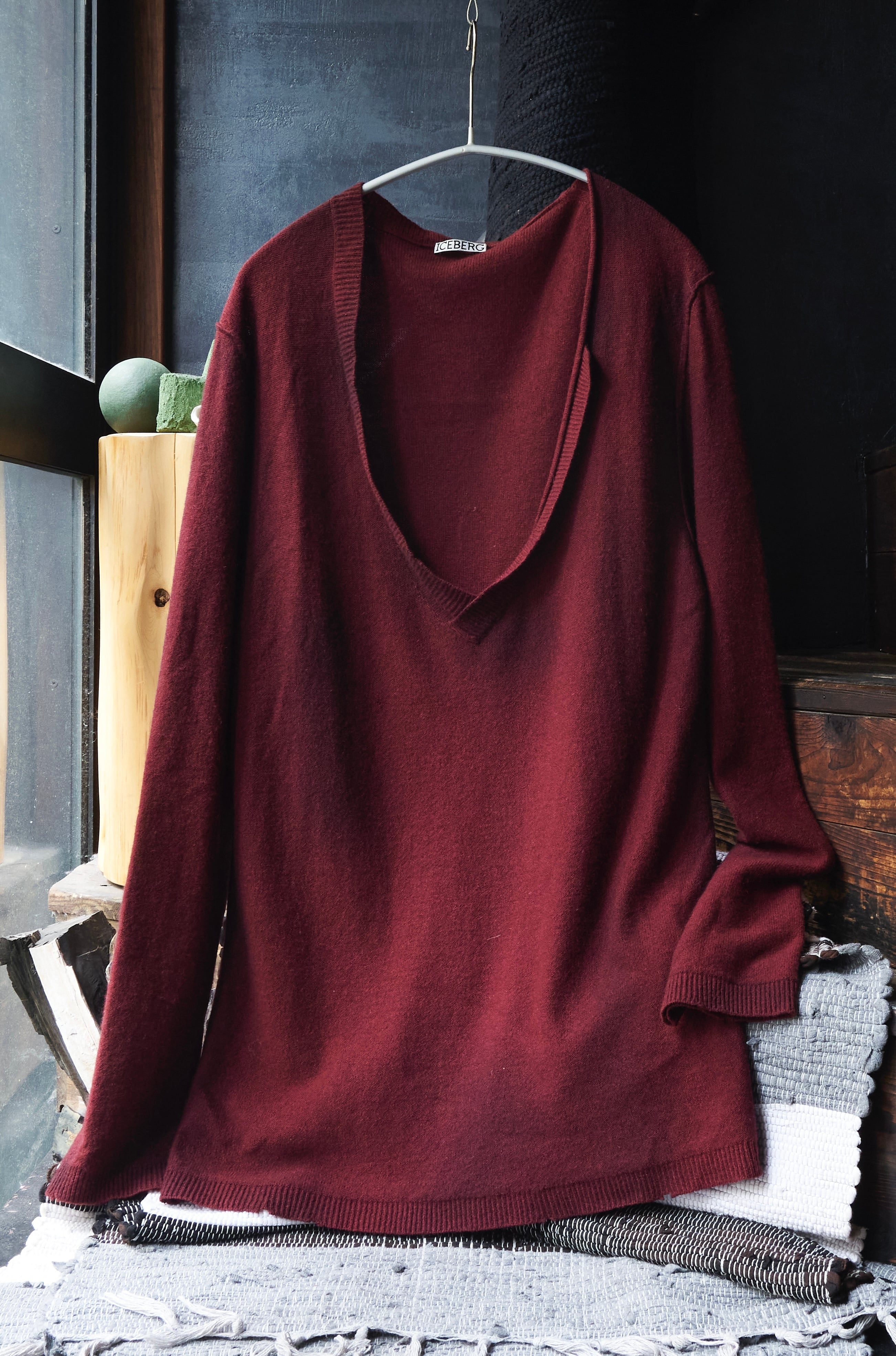 2000s ICEBERG italy production Super deep V-neck Asymmetrical designoversized gradient knit