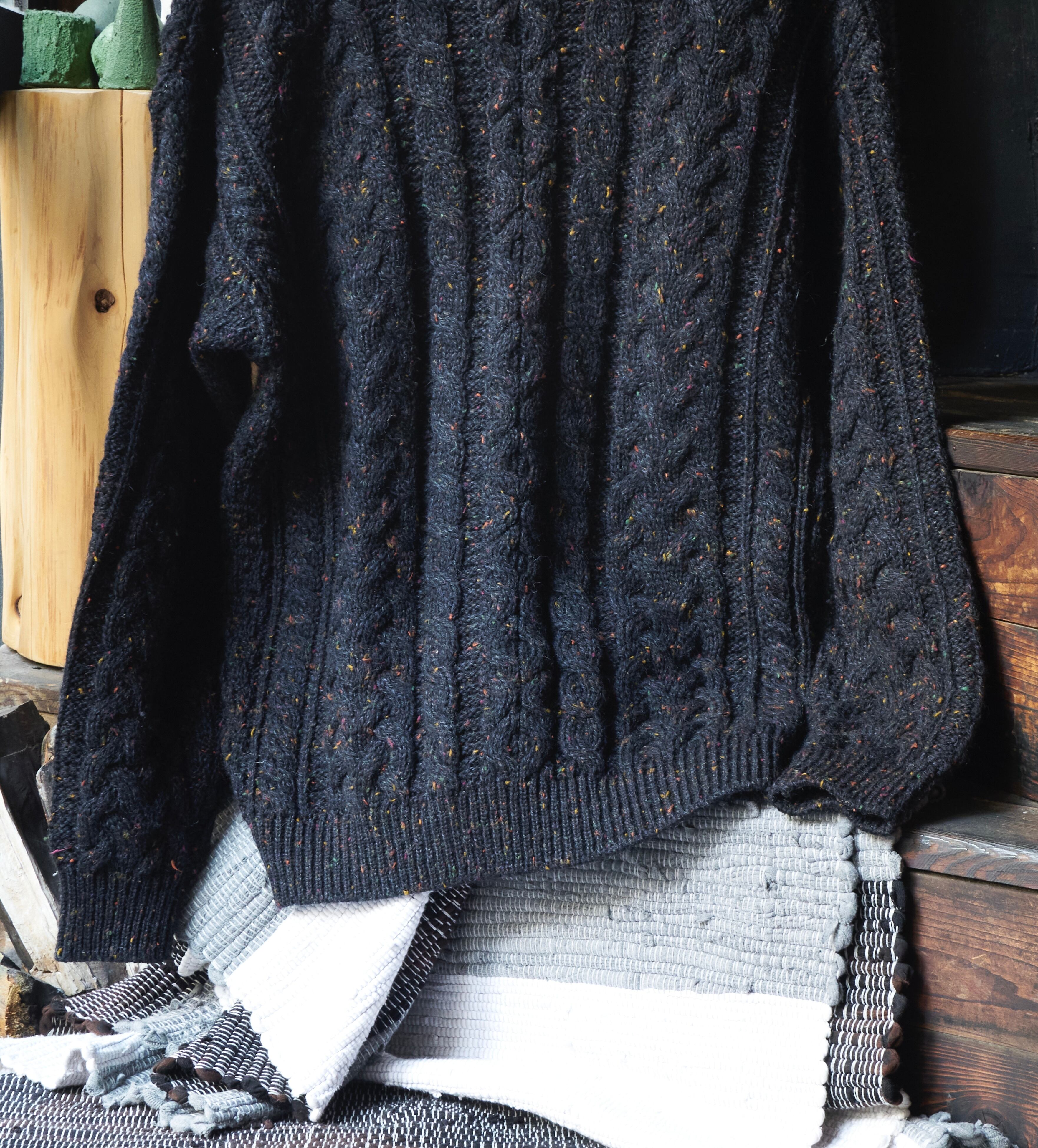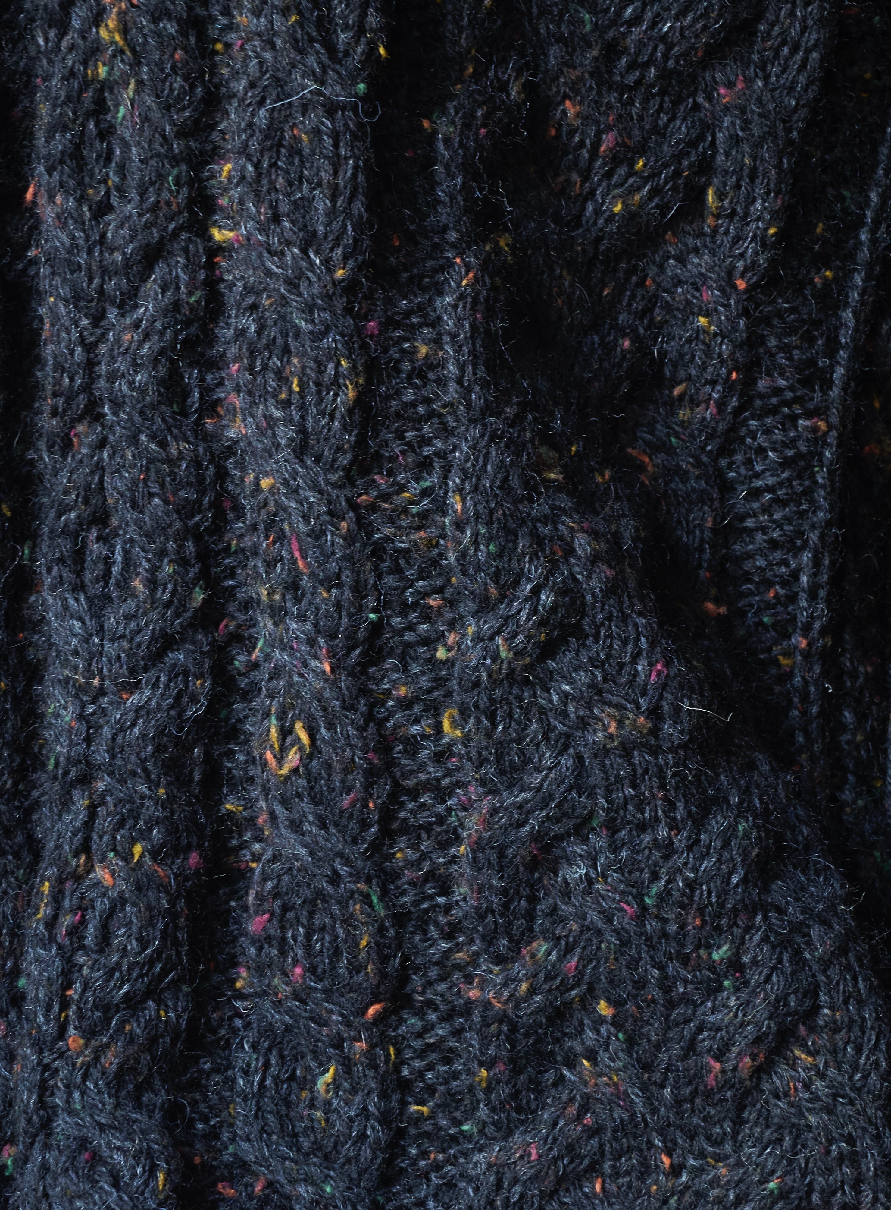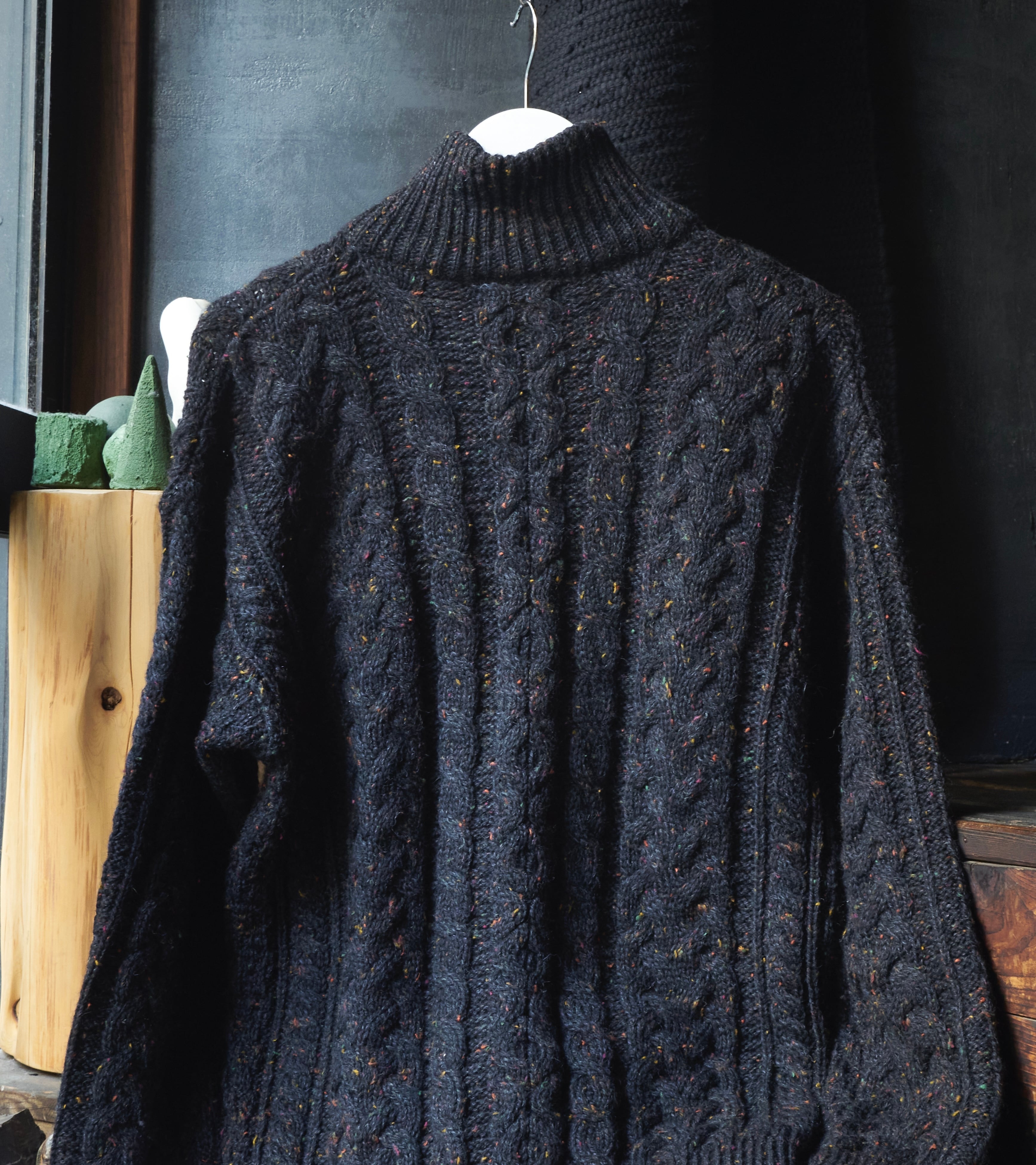 80s Ireland Black Wool Mix Color Nep Half Zip Aran Sweater