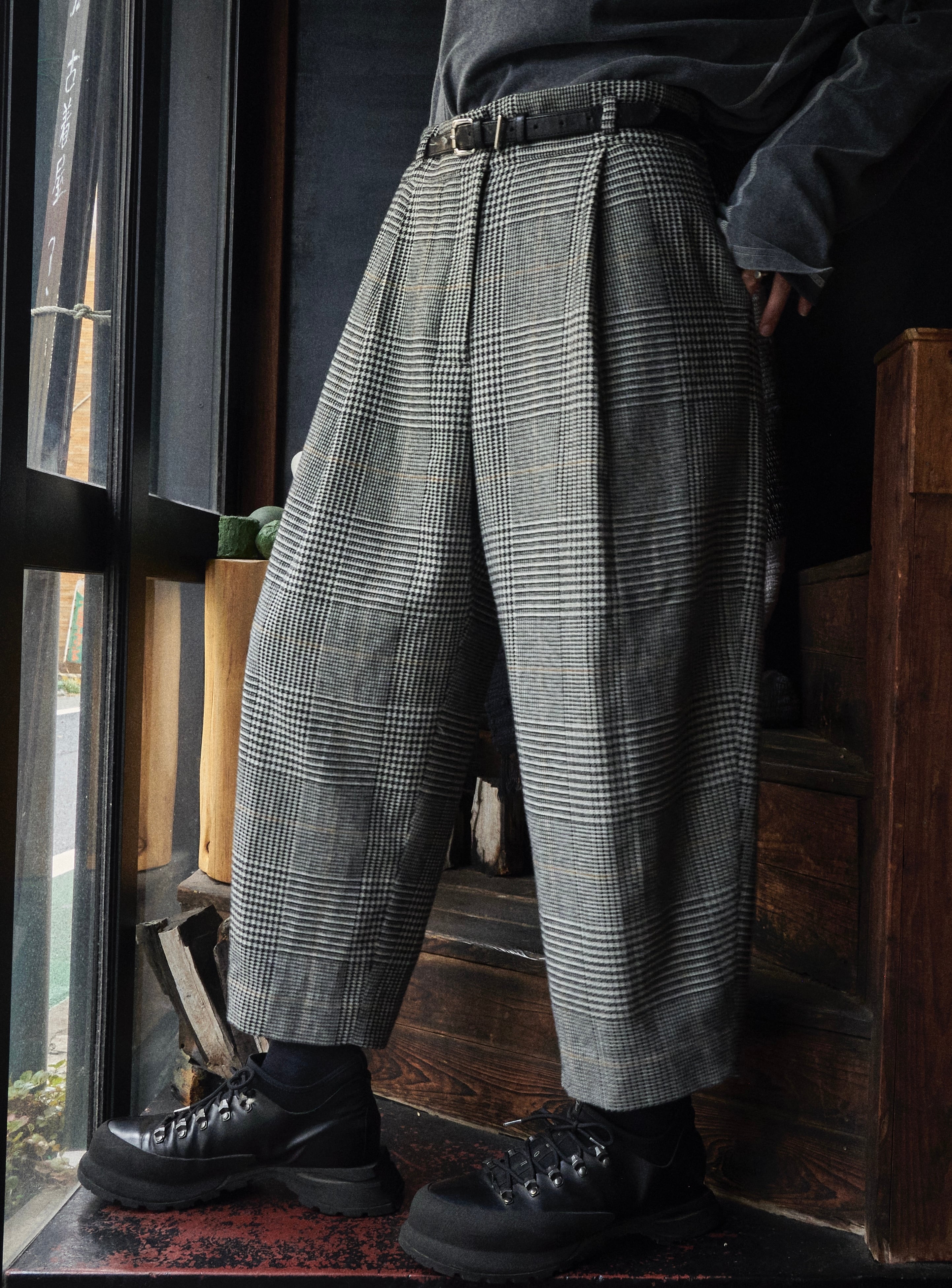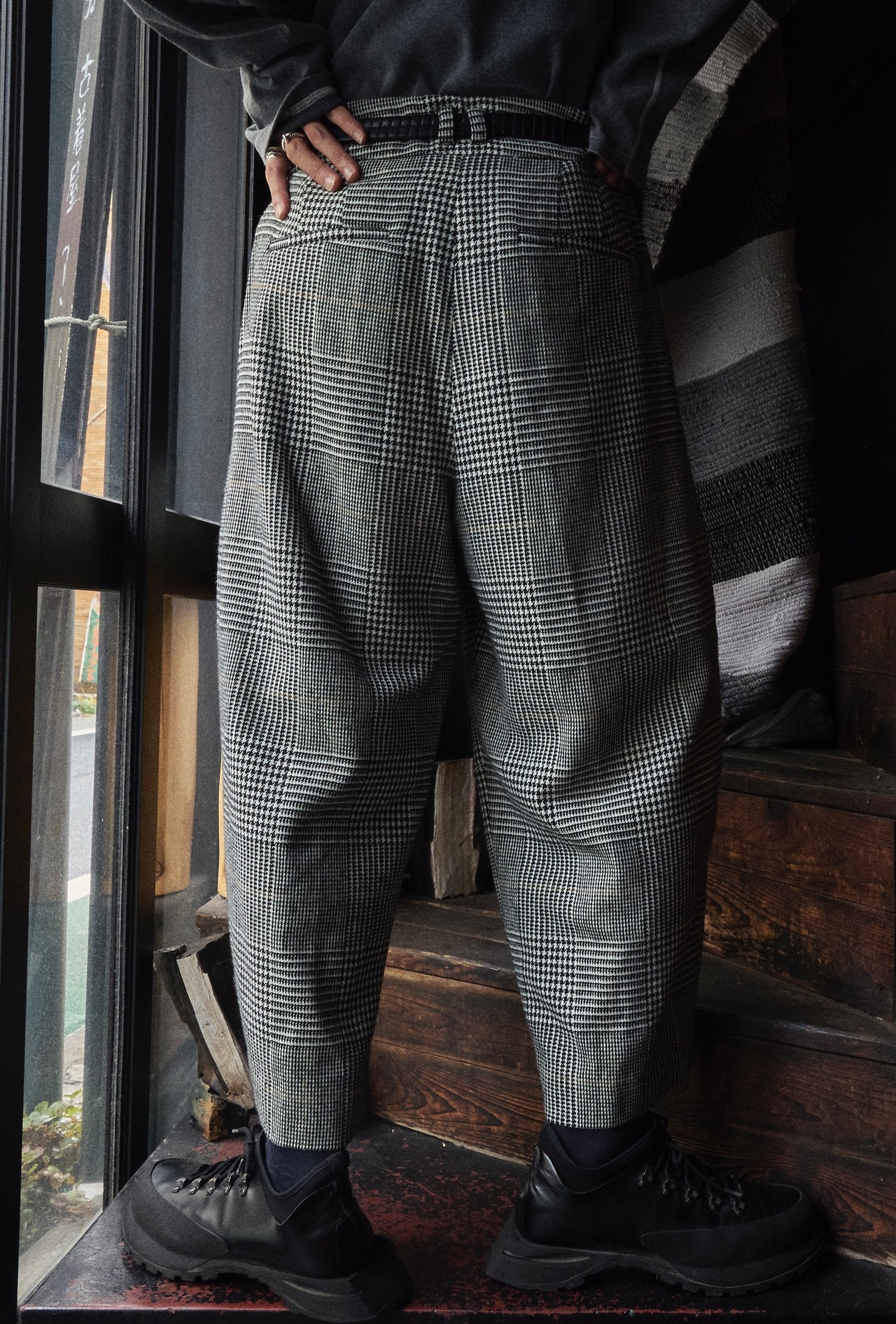 US 2010s〜 Glen Check Curved Silhouette Wide Cropped Pants