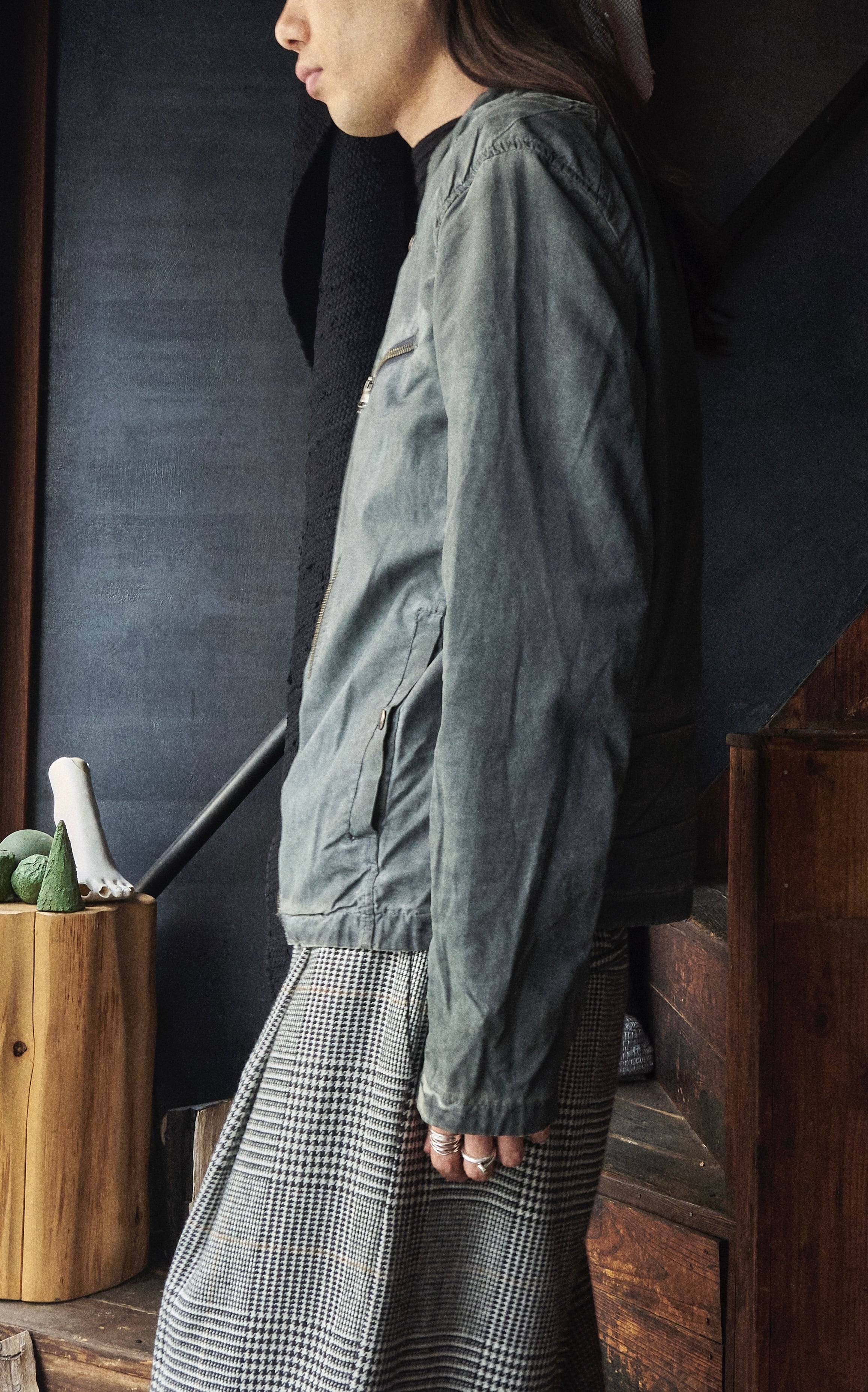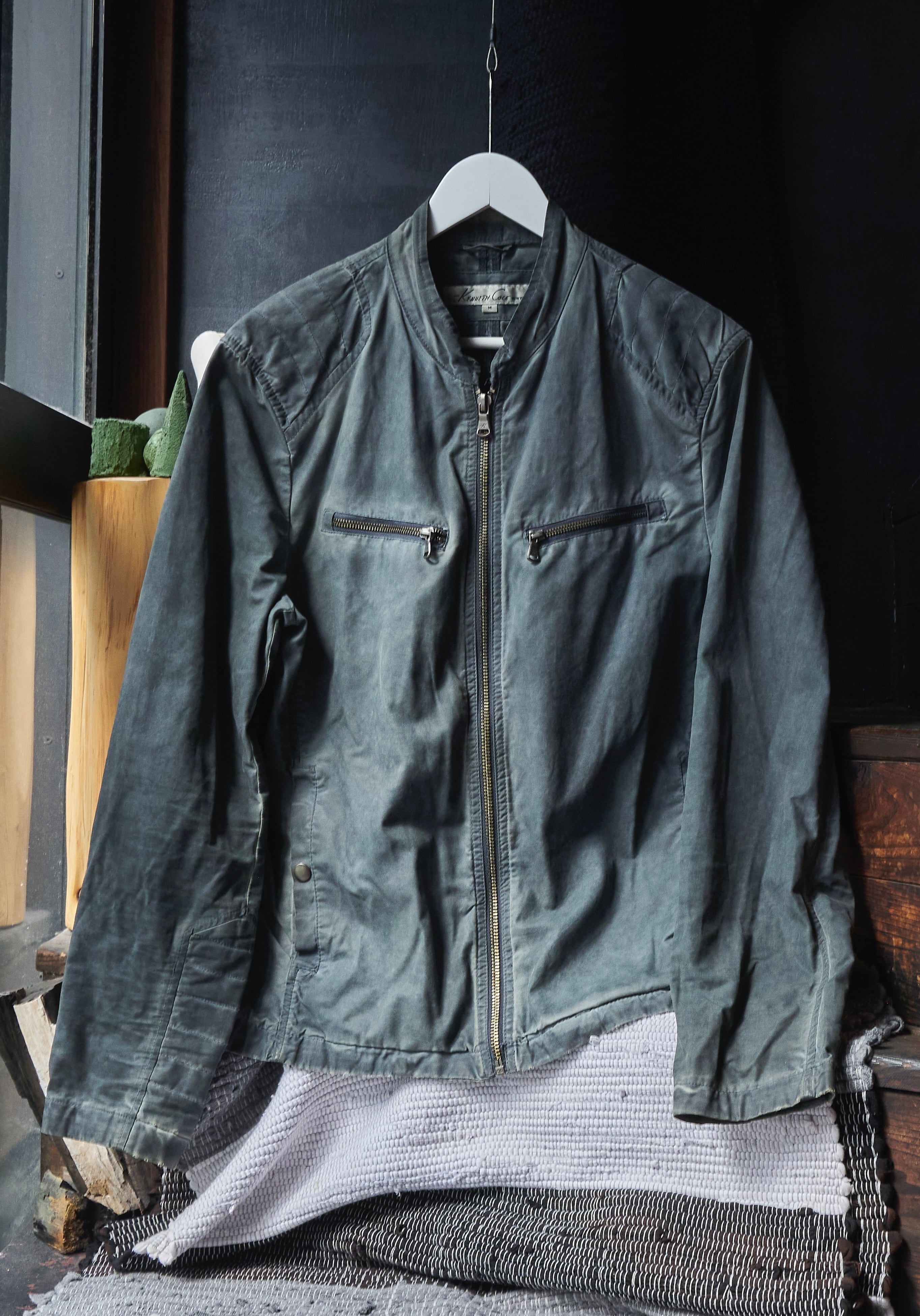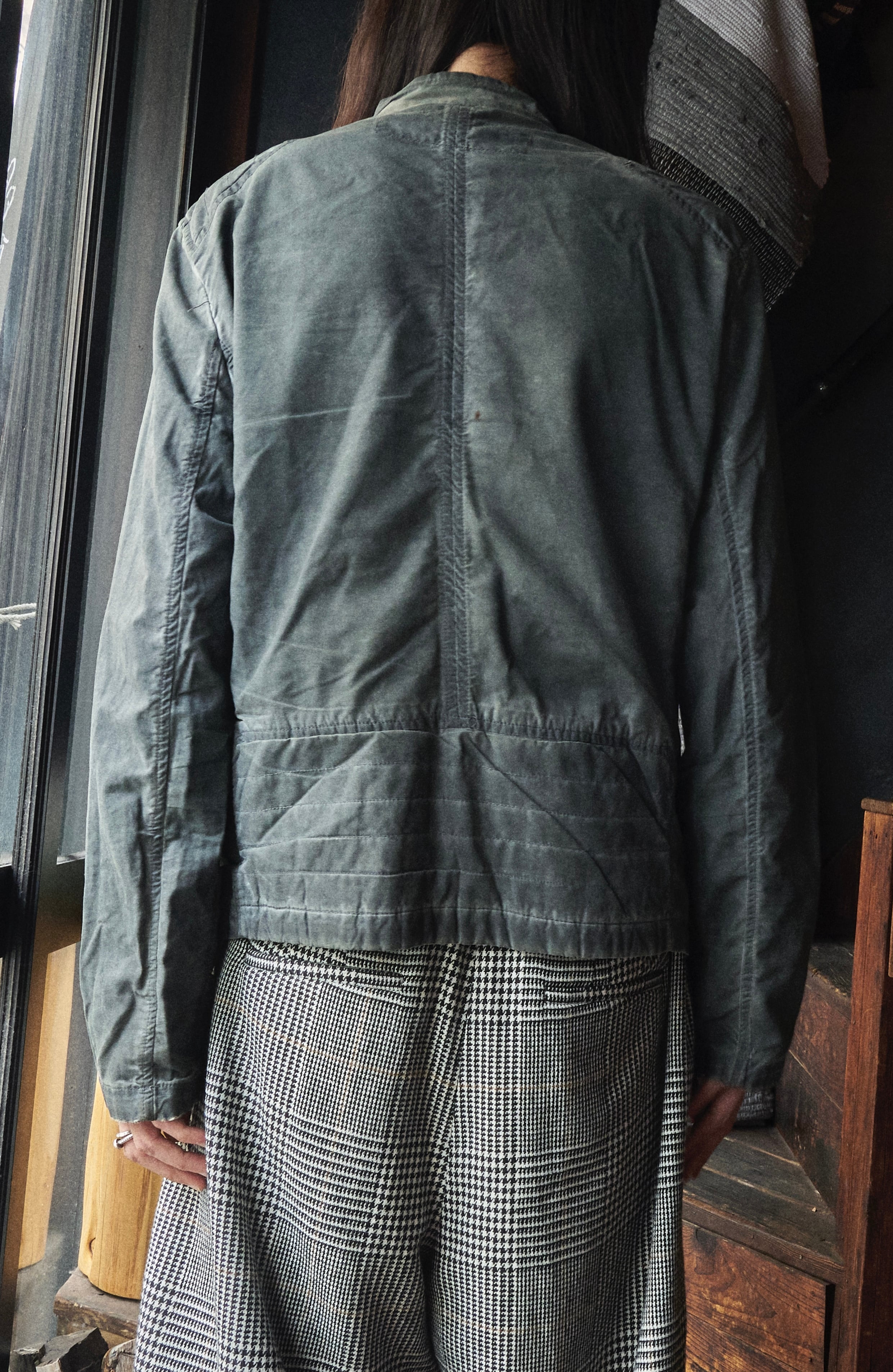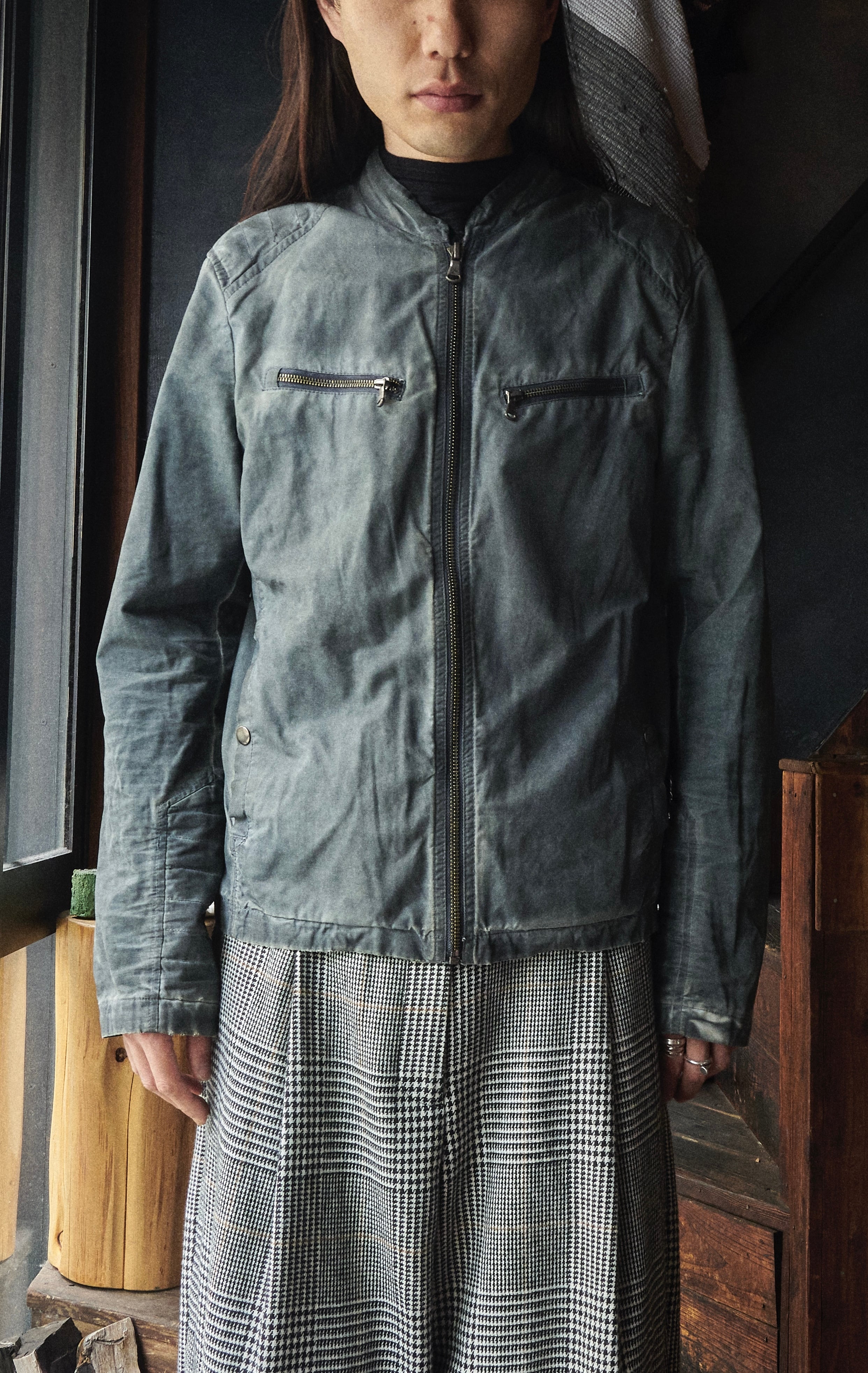 US 2010s Overdyed grey faded Motorcycle Pattern cotton coated jacket