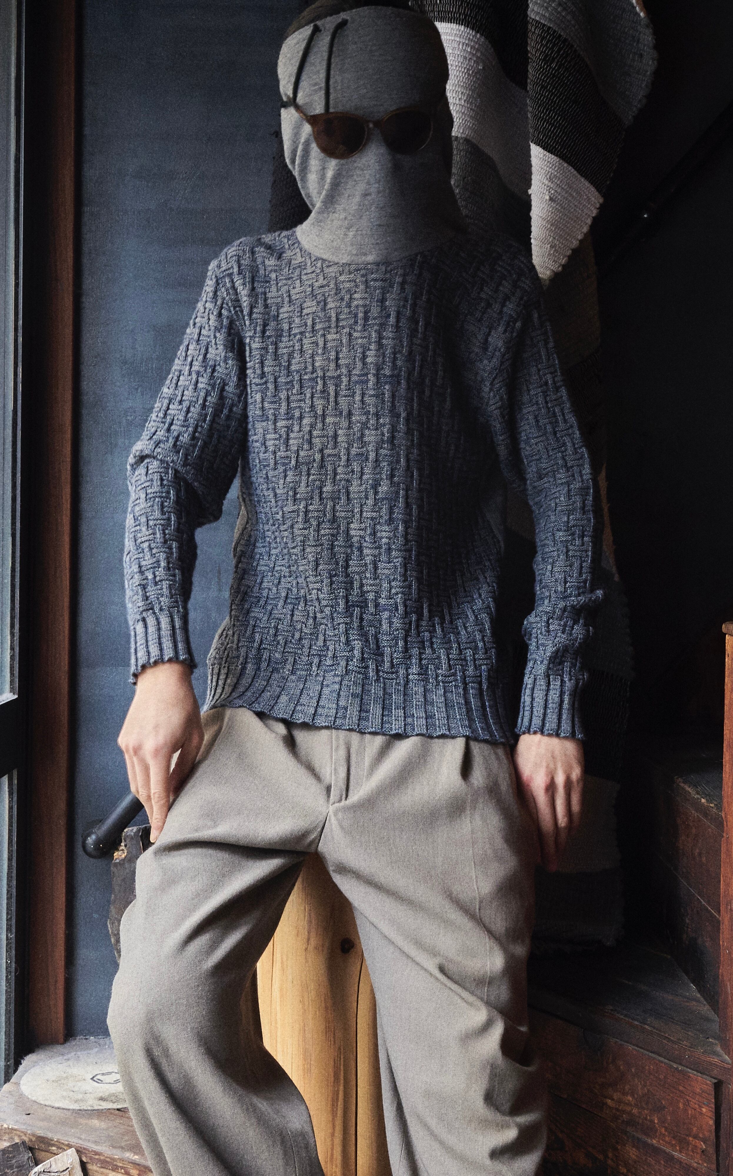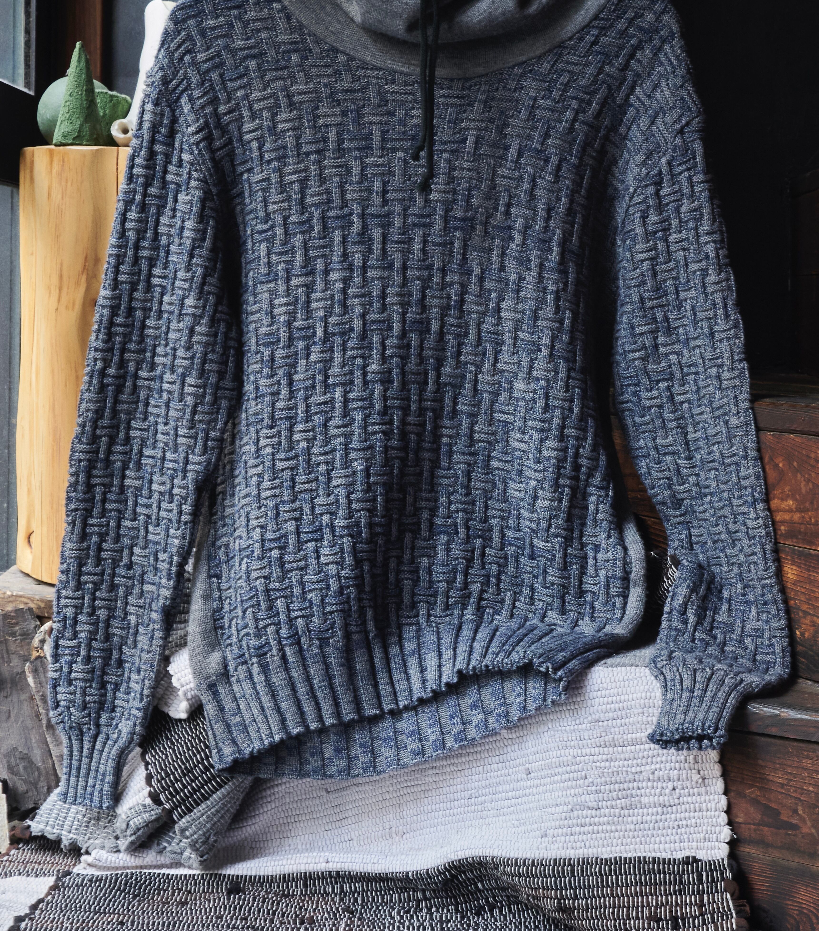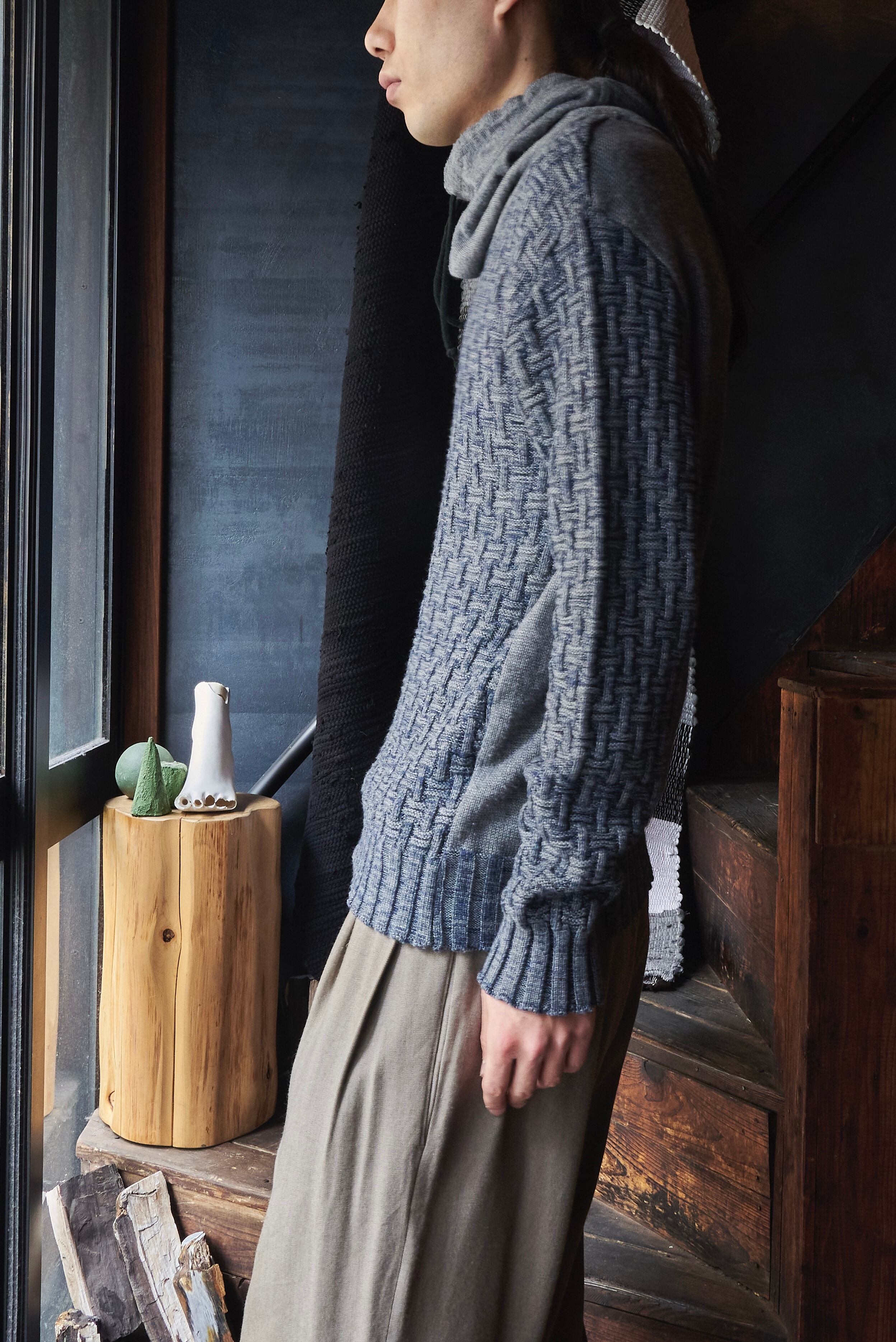 80s ITALY Merino wool x Dralon Fabric High-neck drawcord pattern knit
