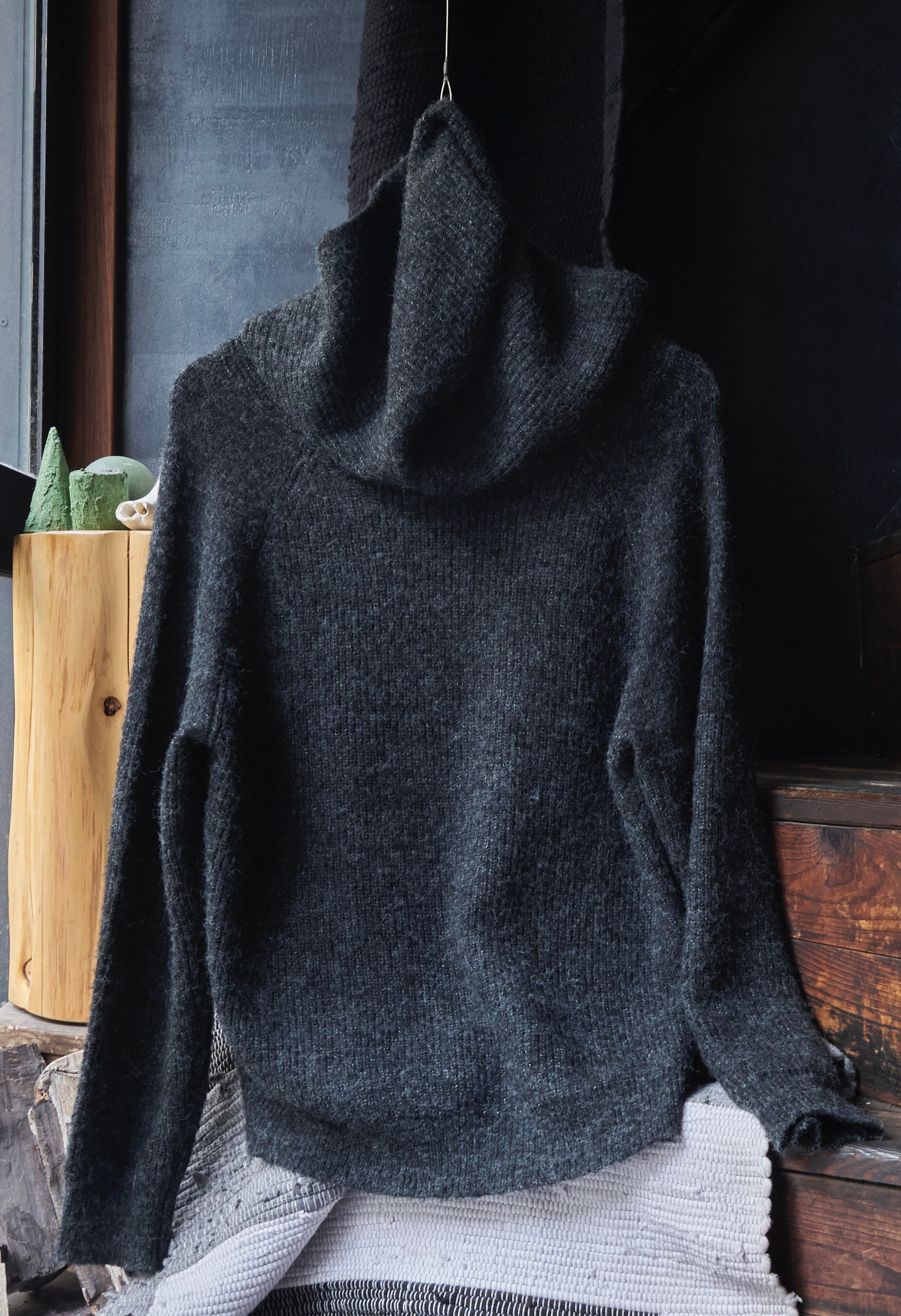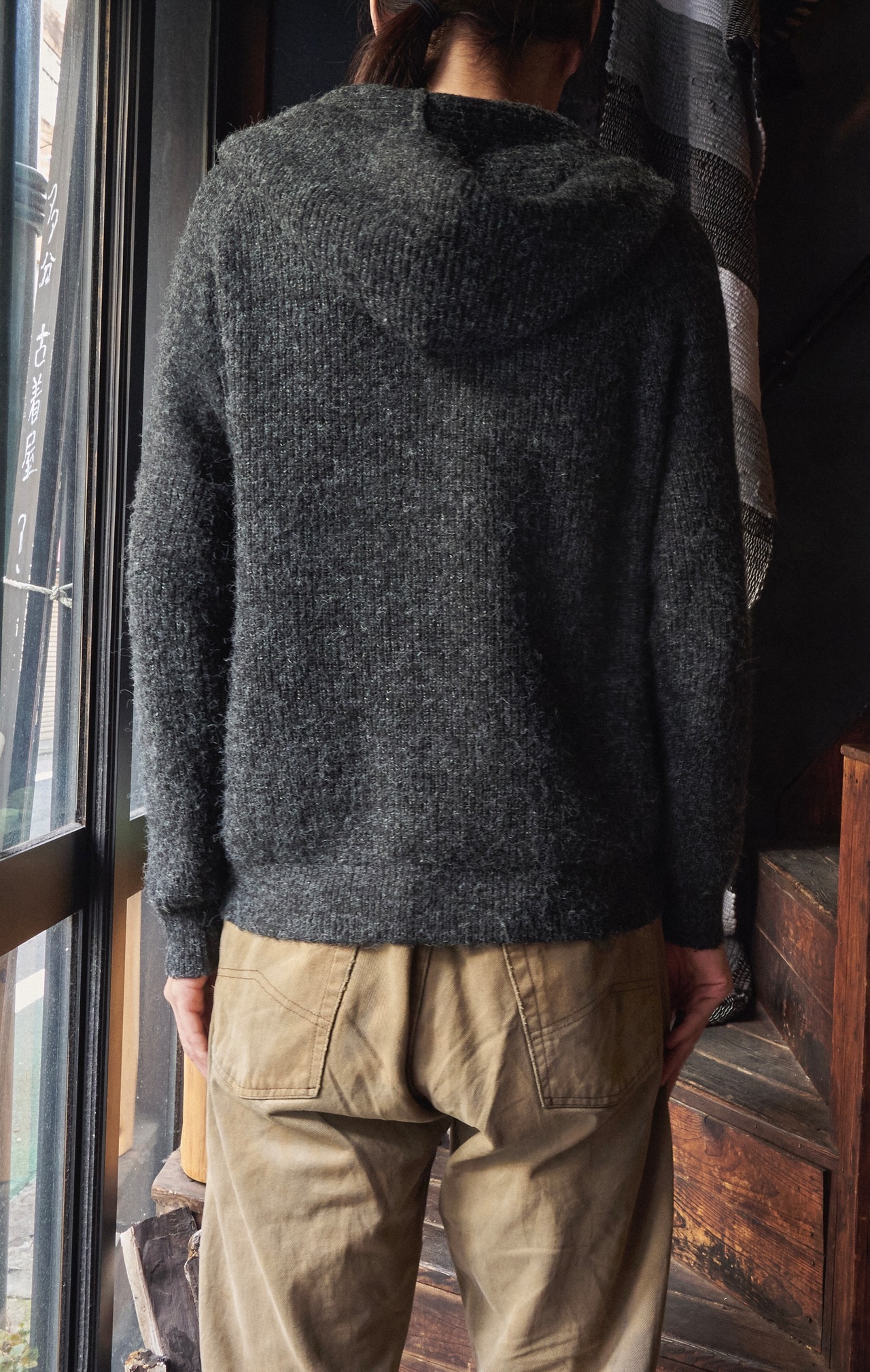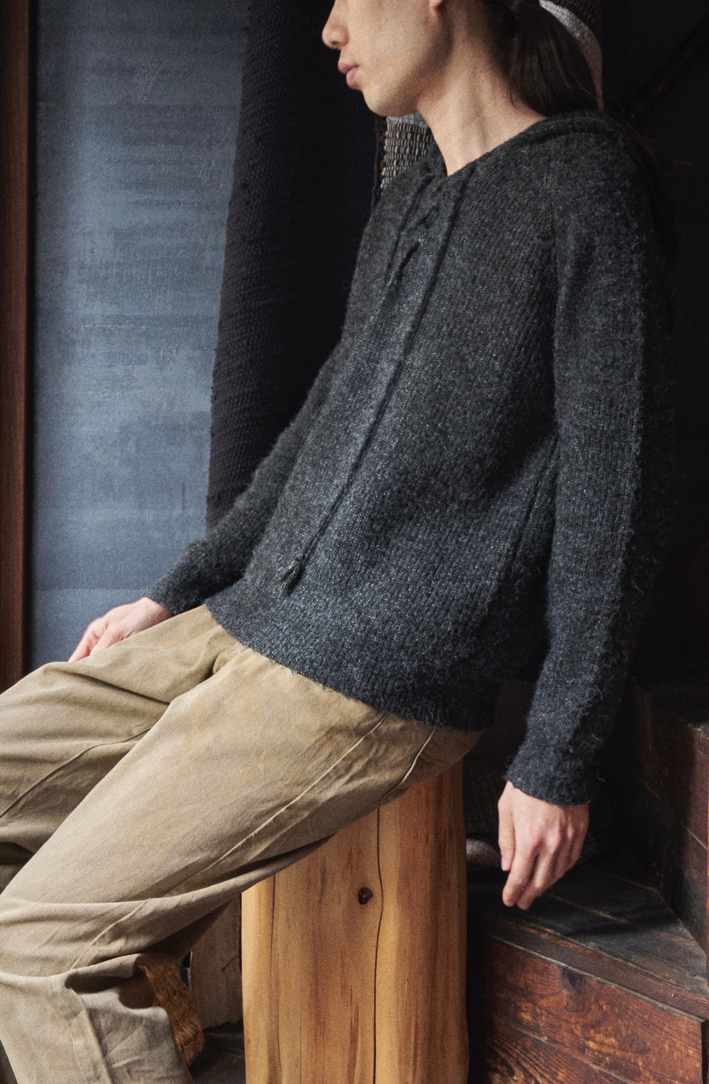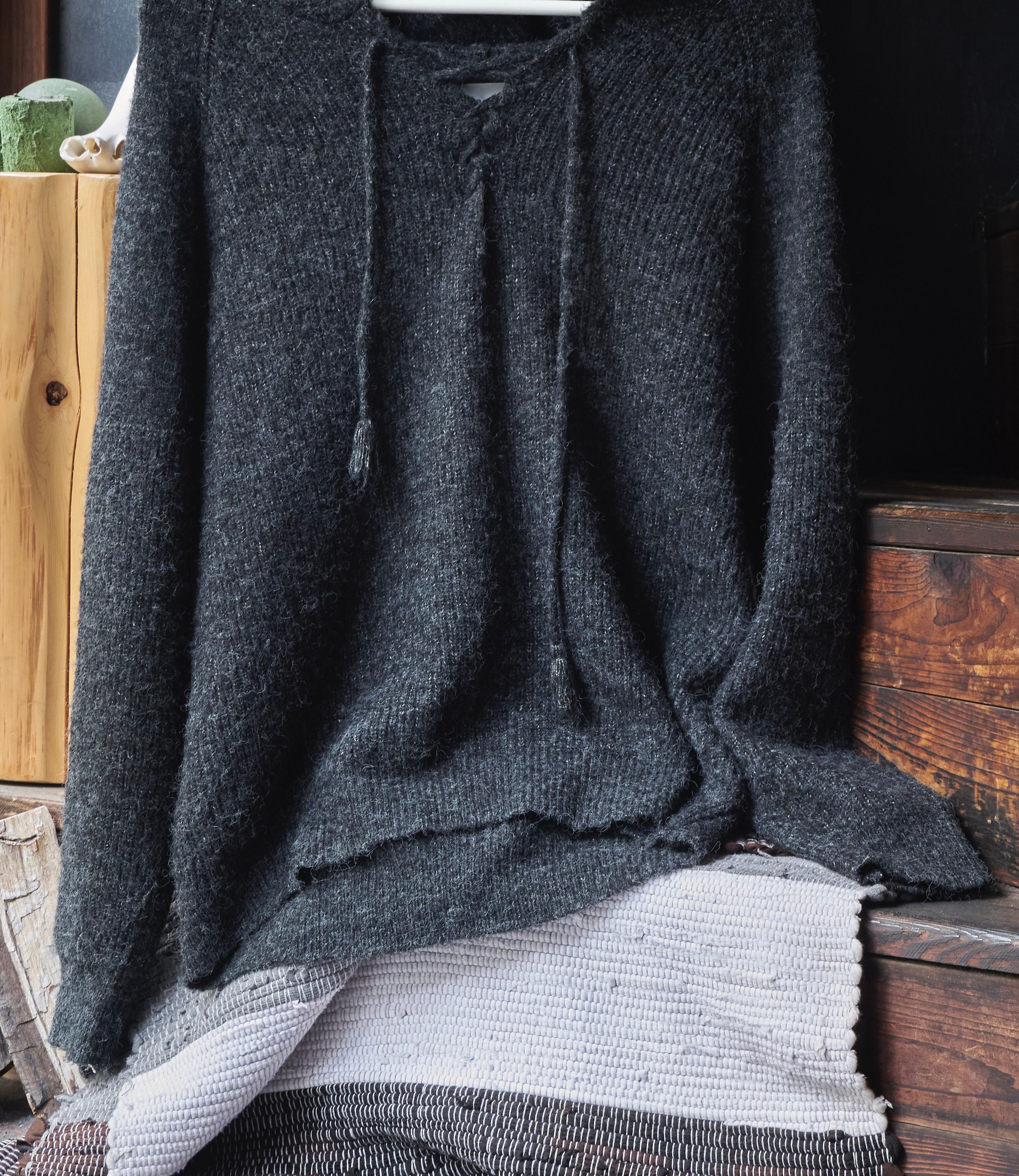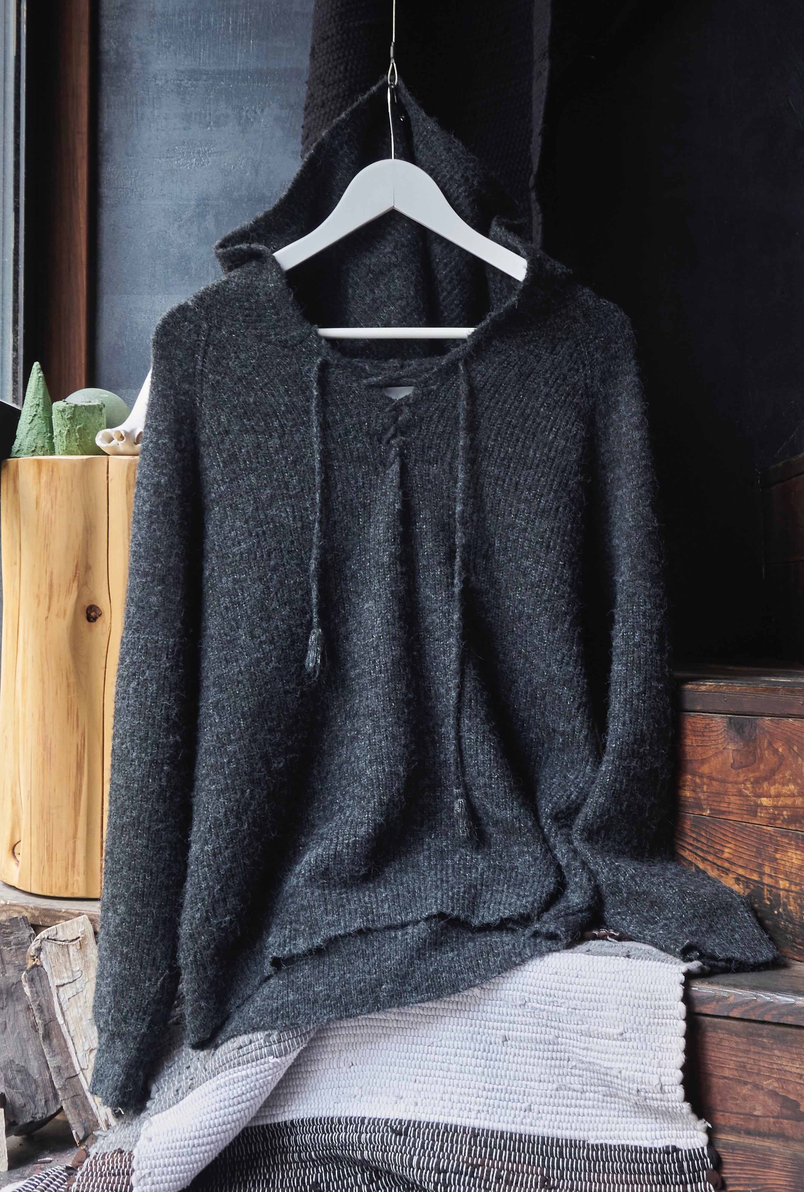 US 2010s Fluffy acrylic nylon drawcord knit hoodie