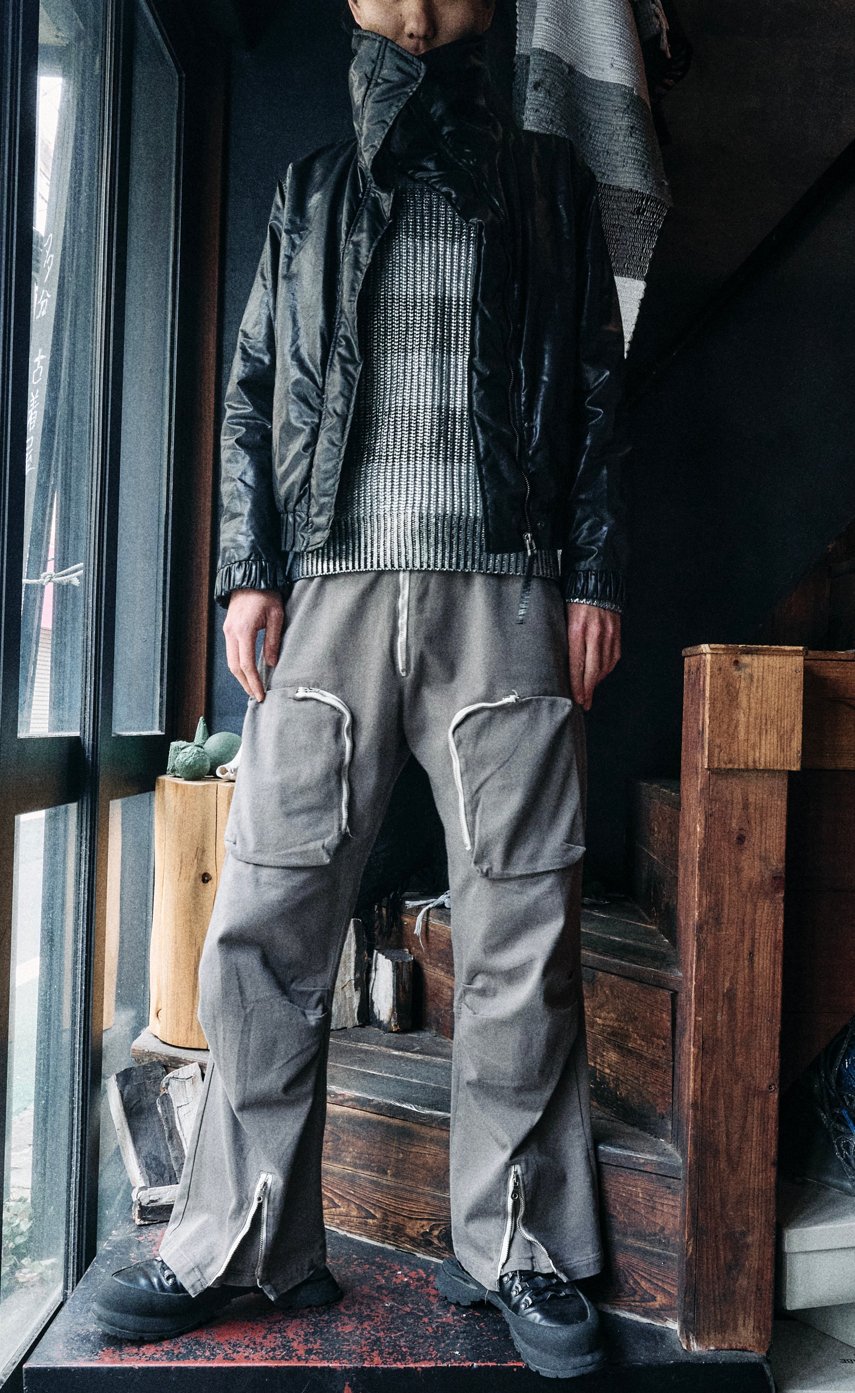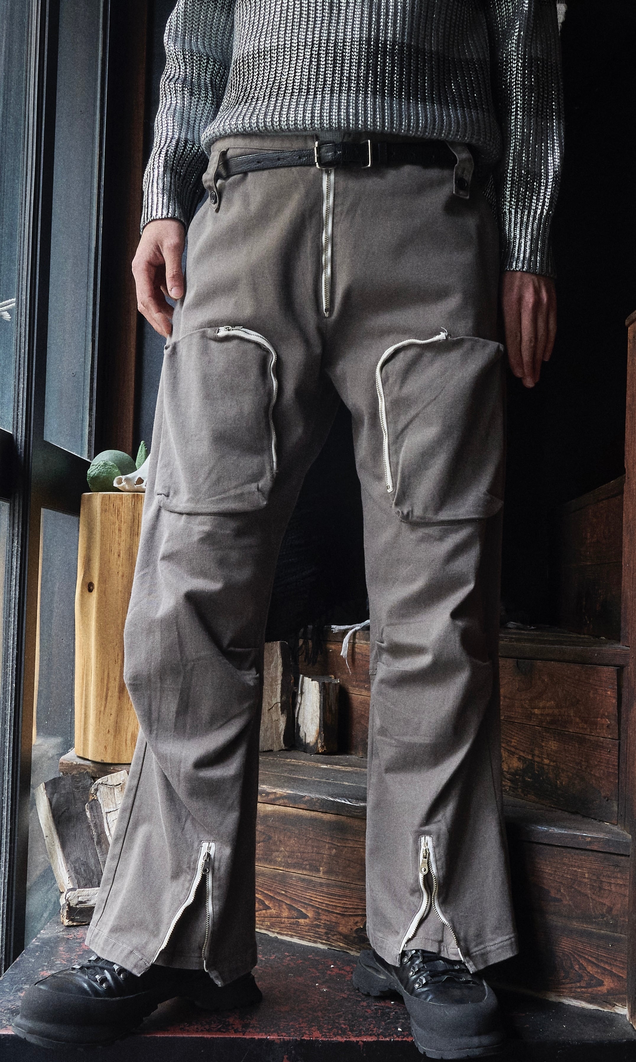 US 2010s Cotton 3D pocket knee-tuck hem zipper pants