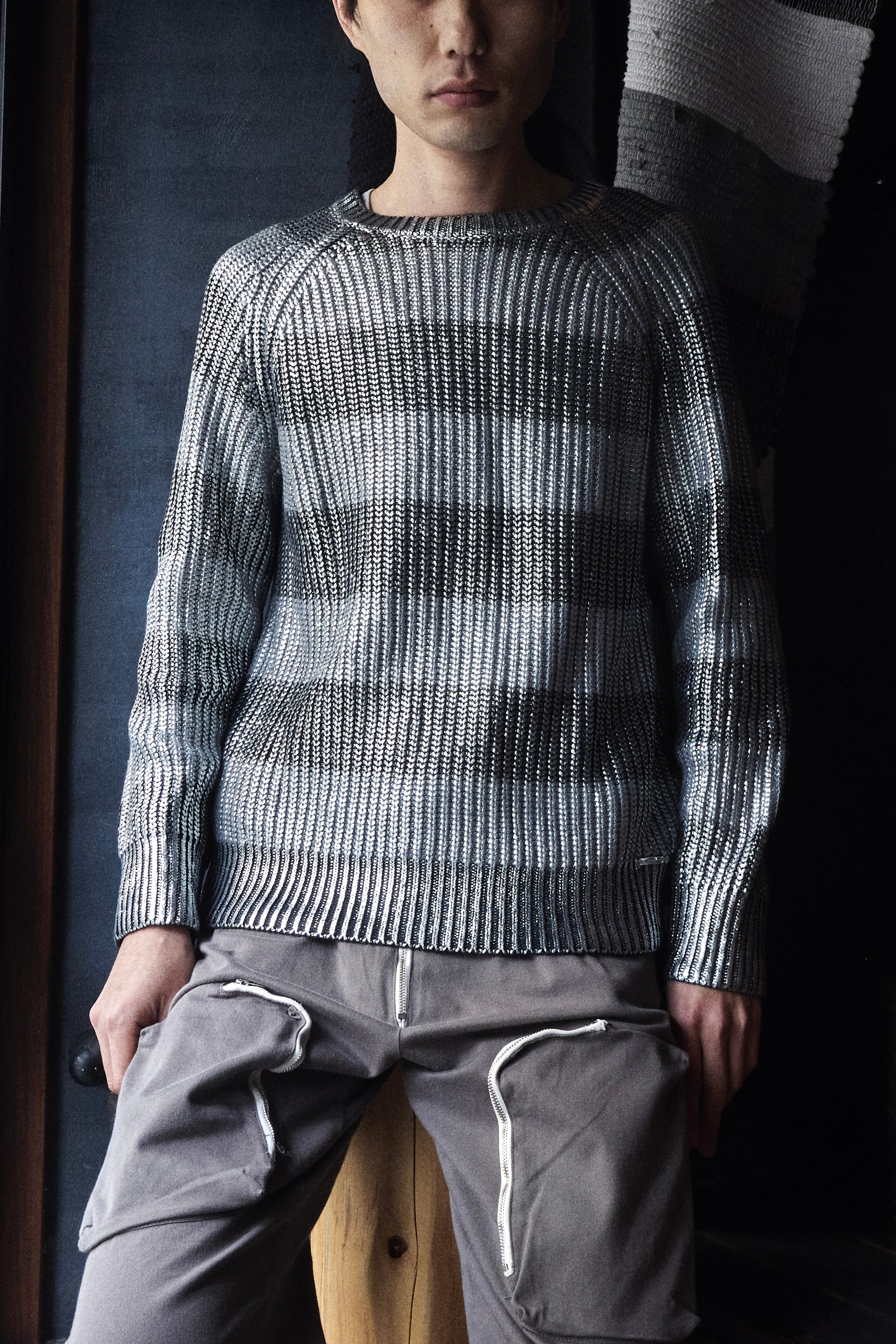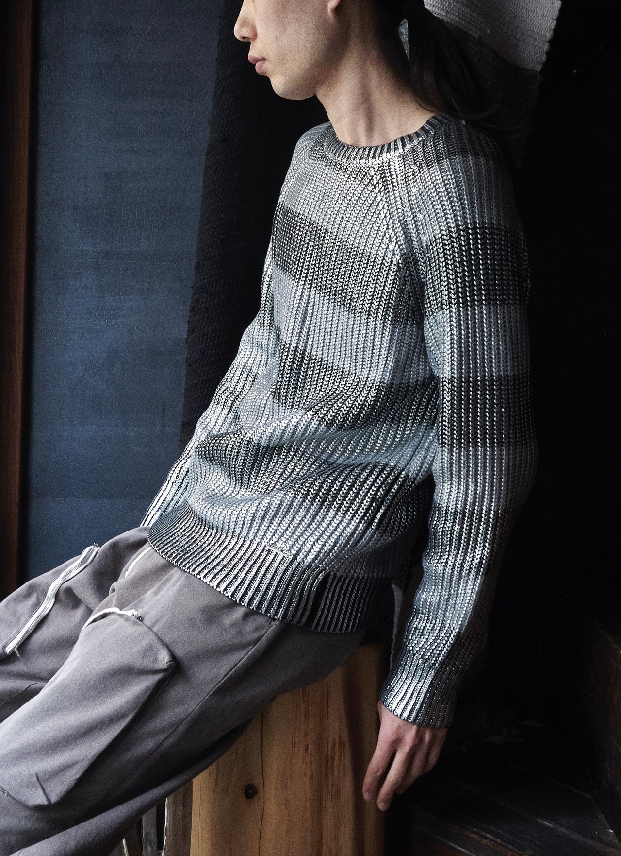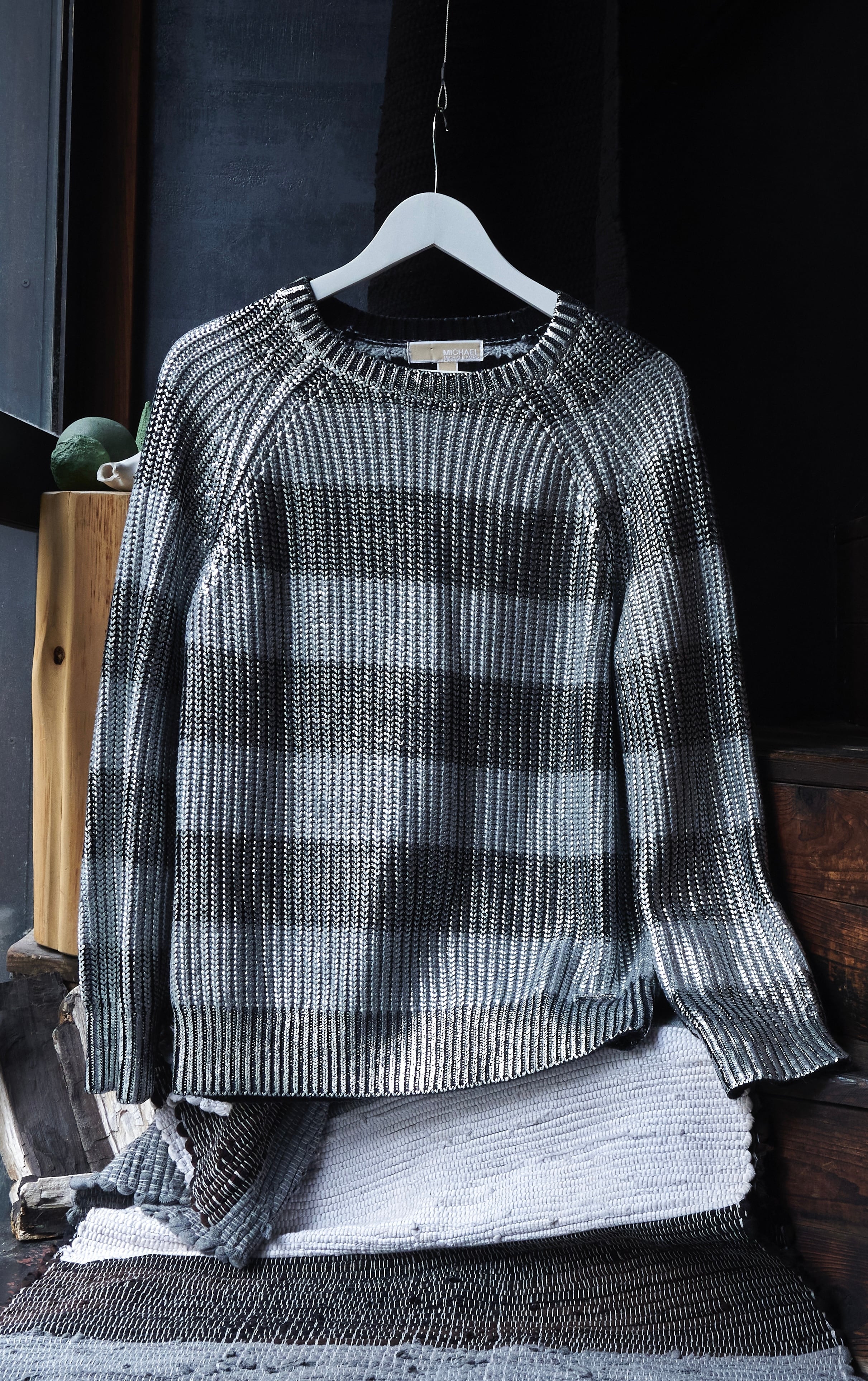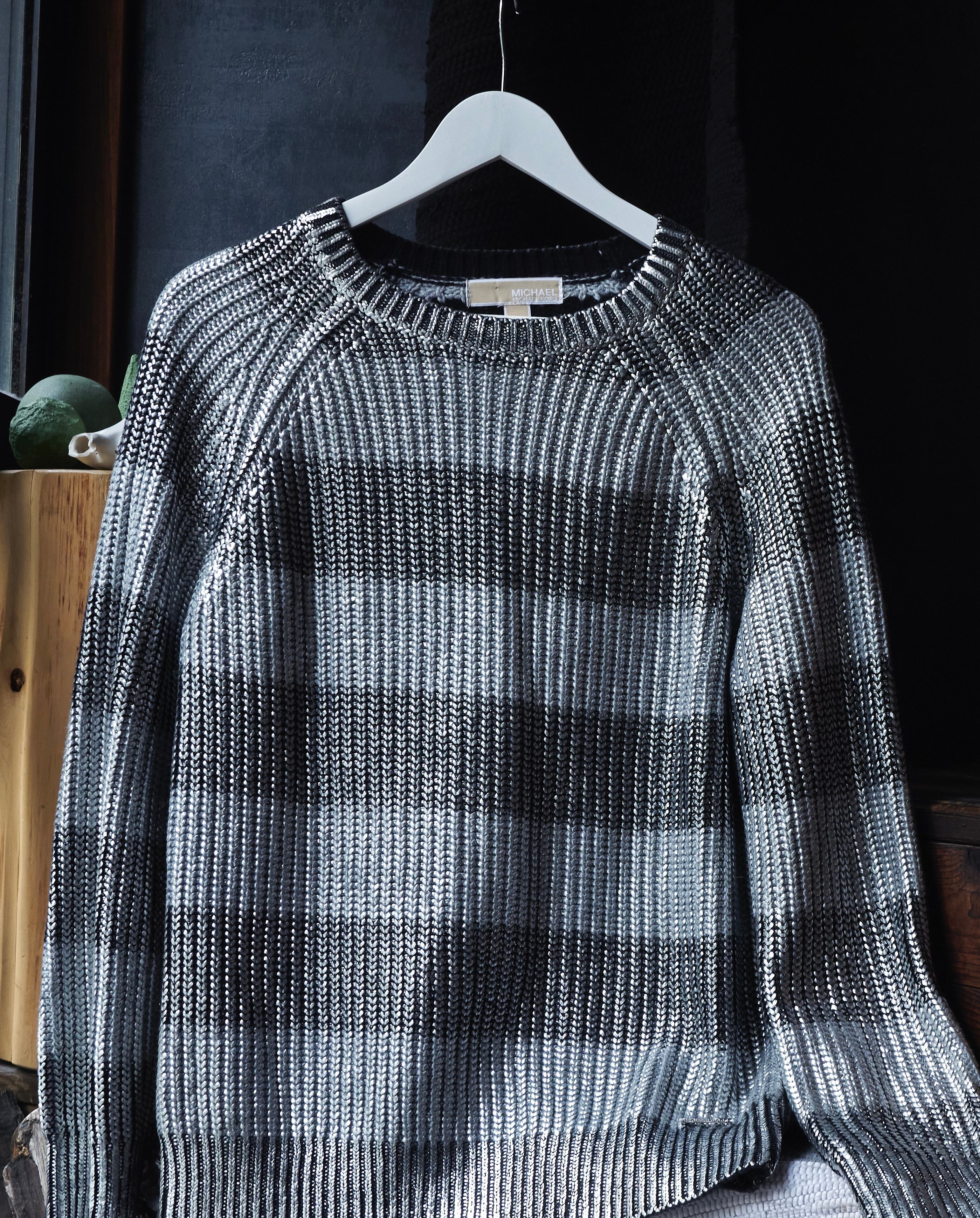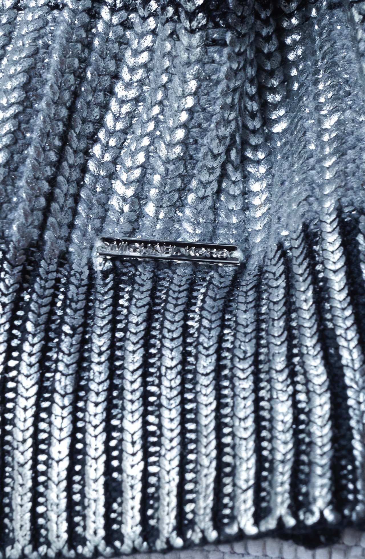 Michael Kors Silver Coated Cotton Rayon Angora fabric Border Knit