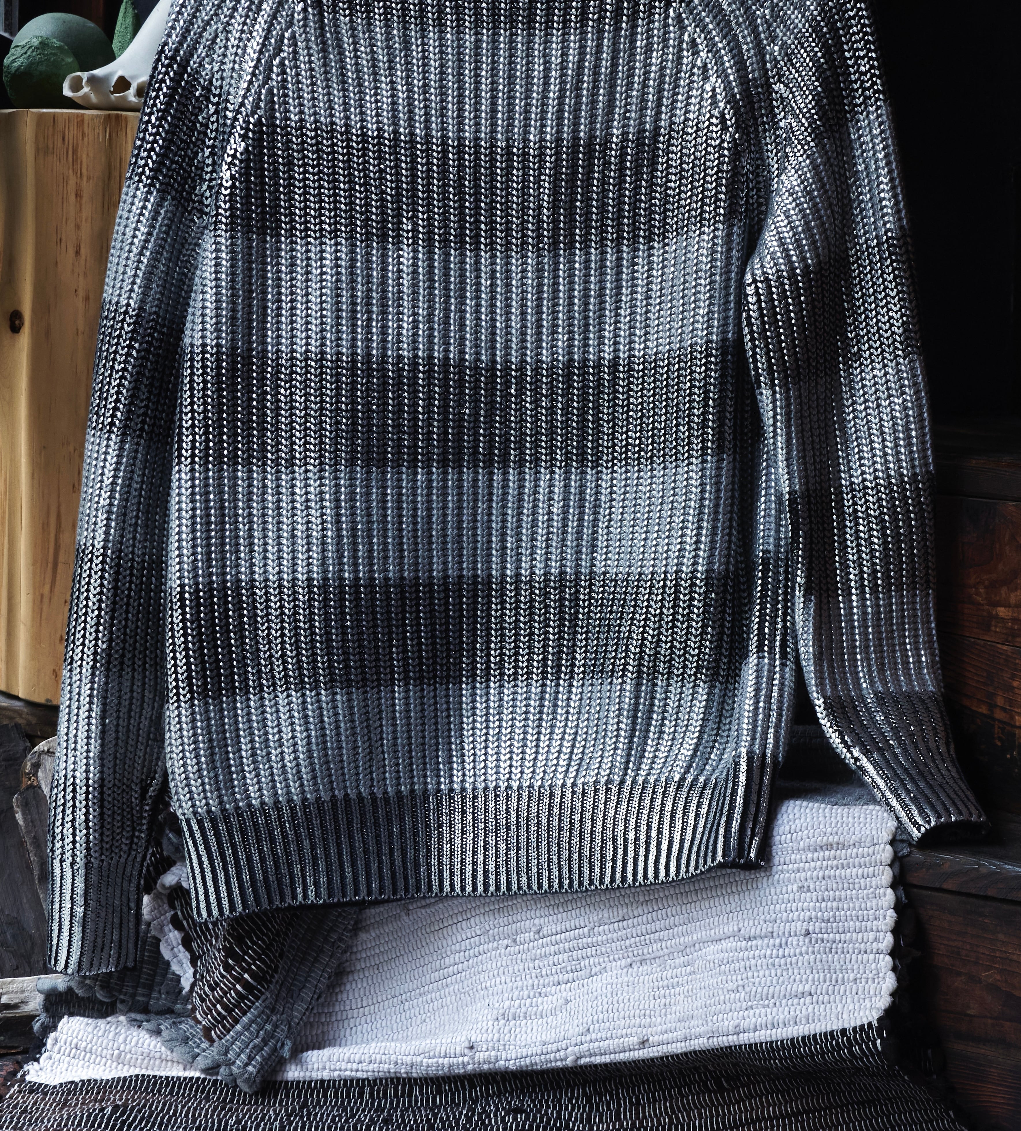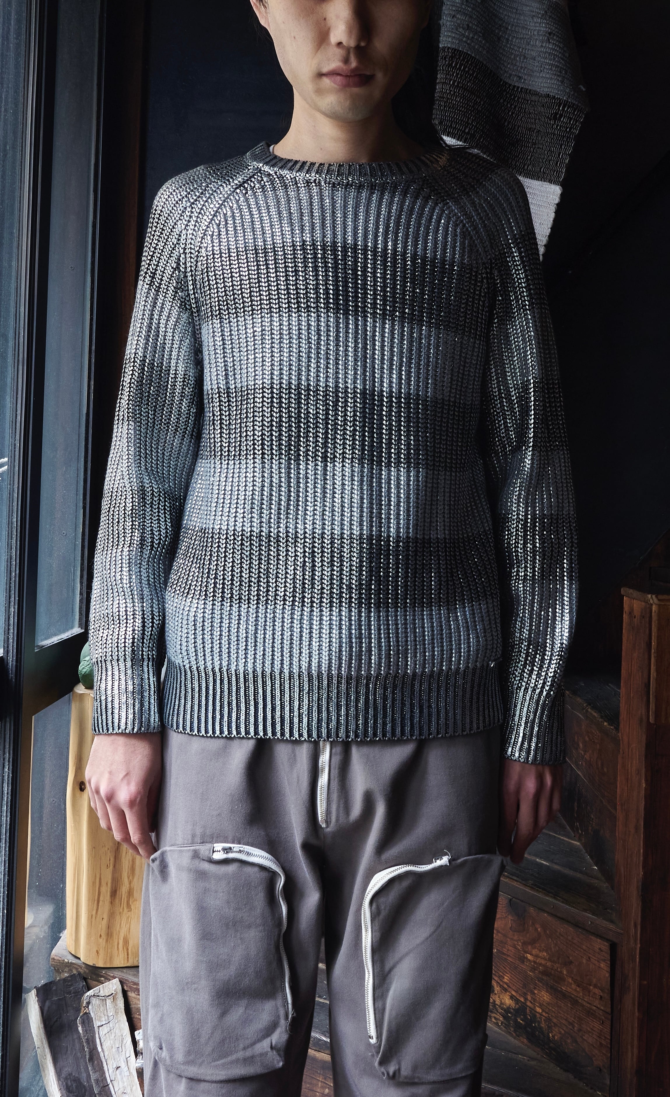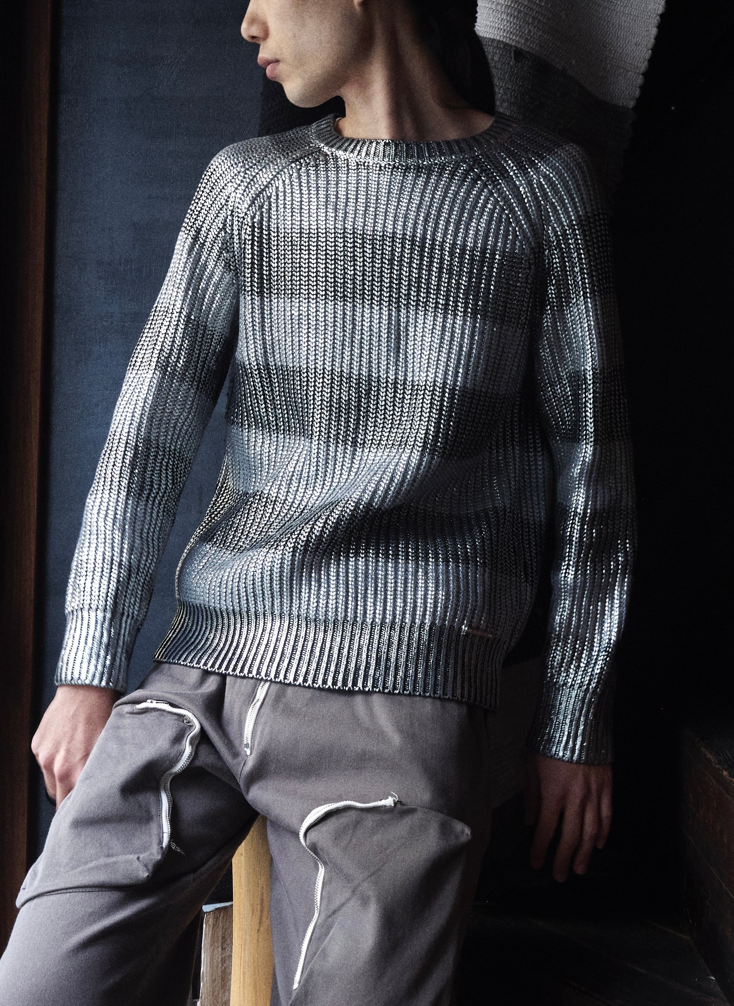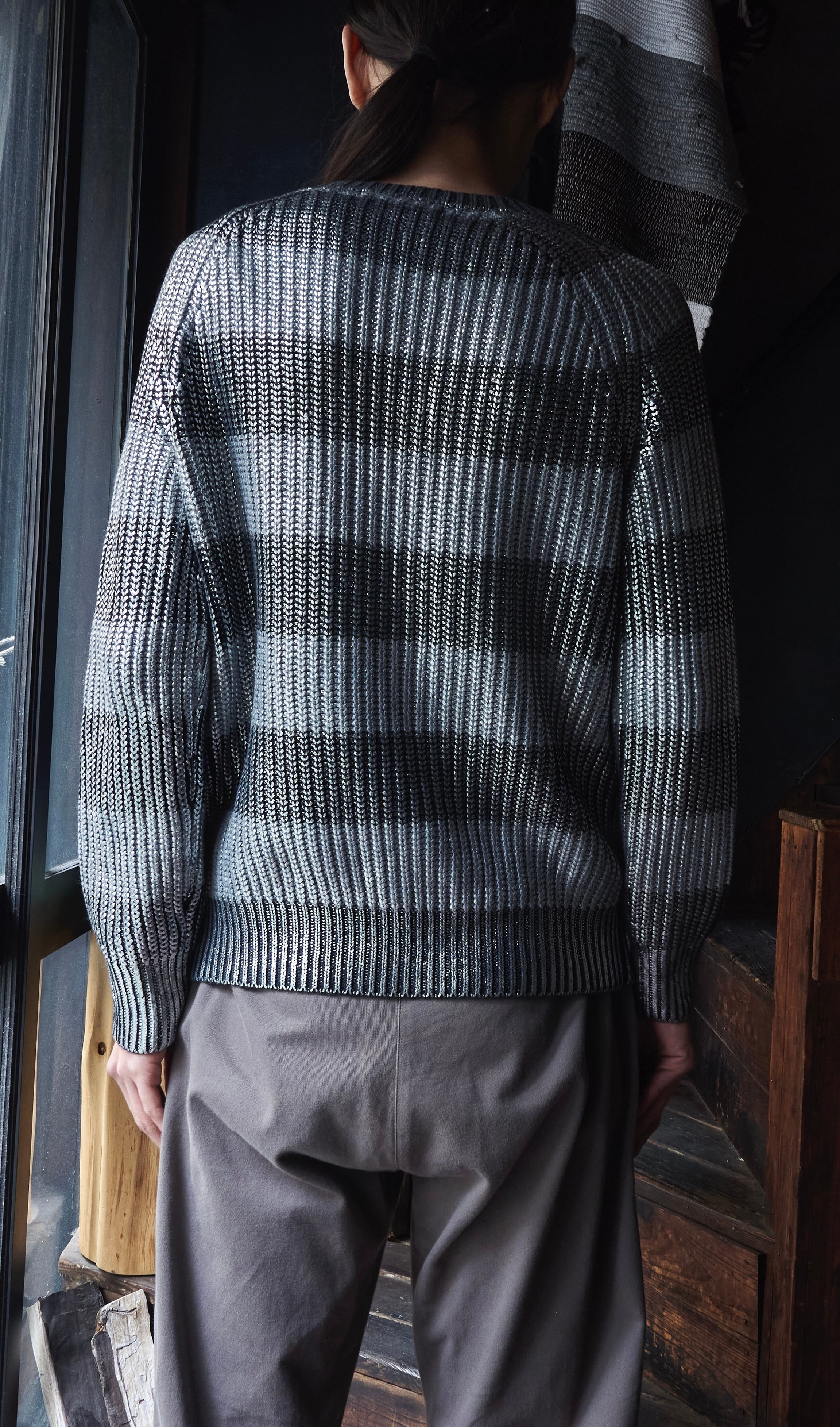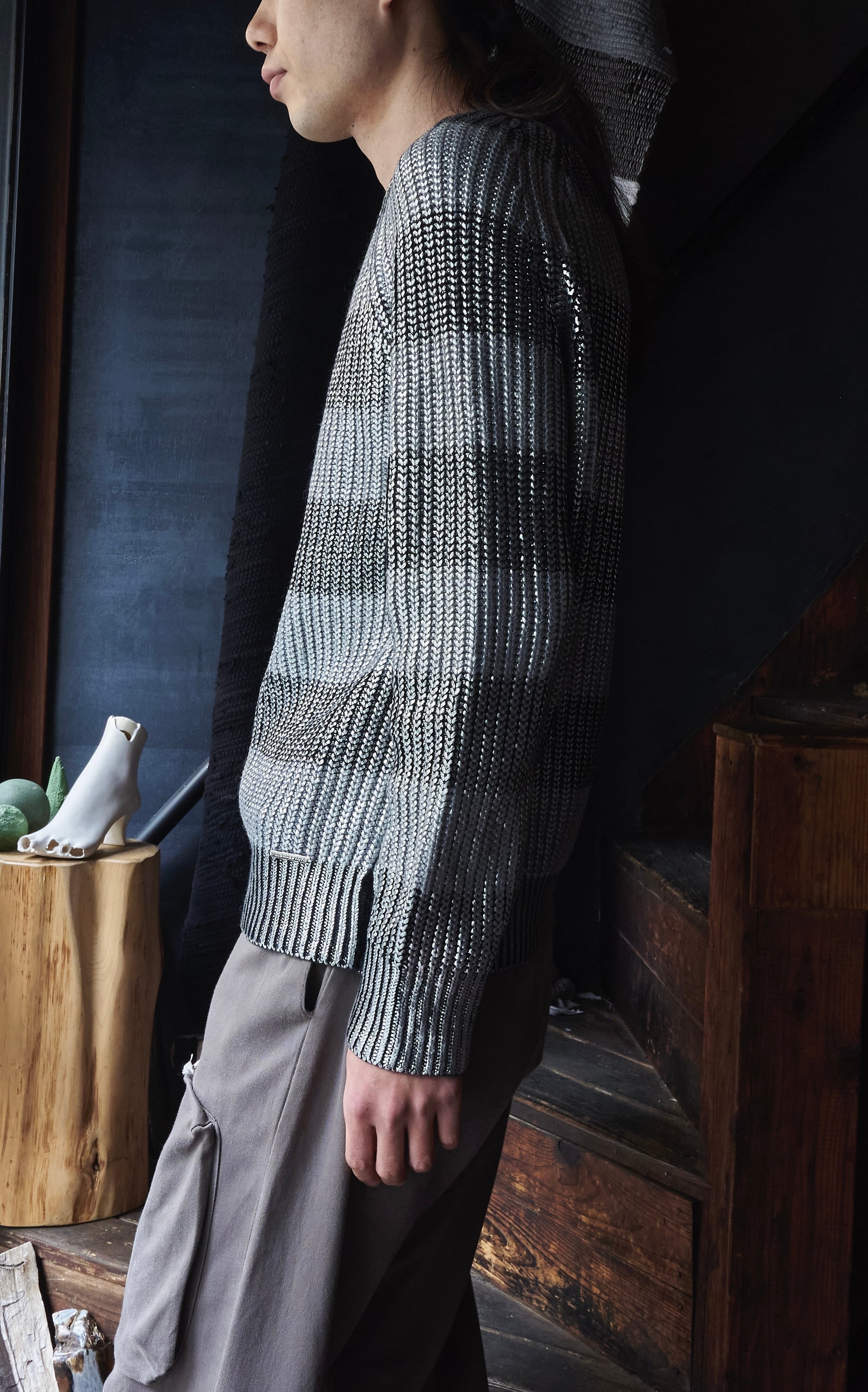 Michael Kors Silver Coated Cotton Rayon Angora fabric Border Knit