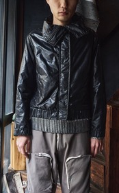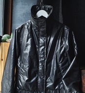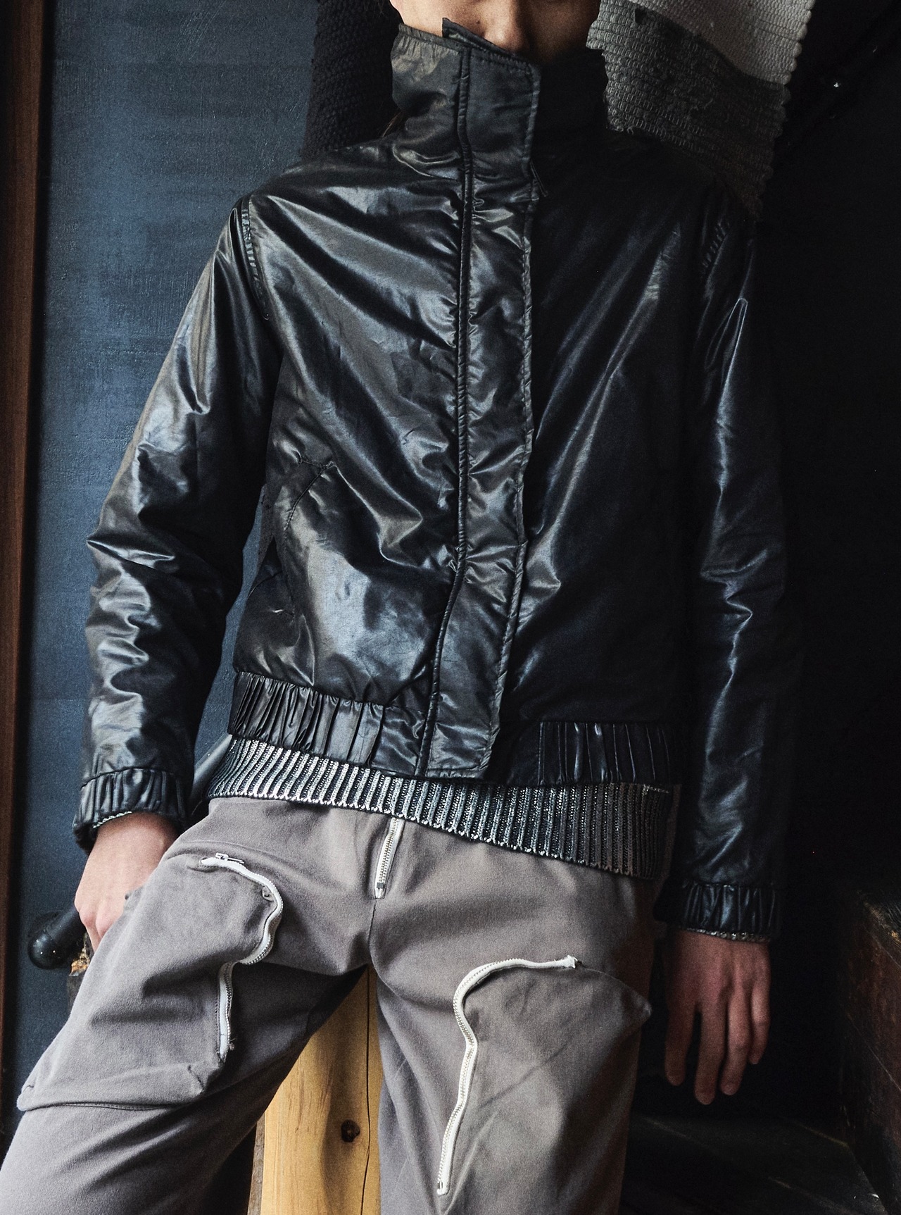 US 2000s Black Glossy Polyester High Neck Short Length Puffer Jacket
