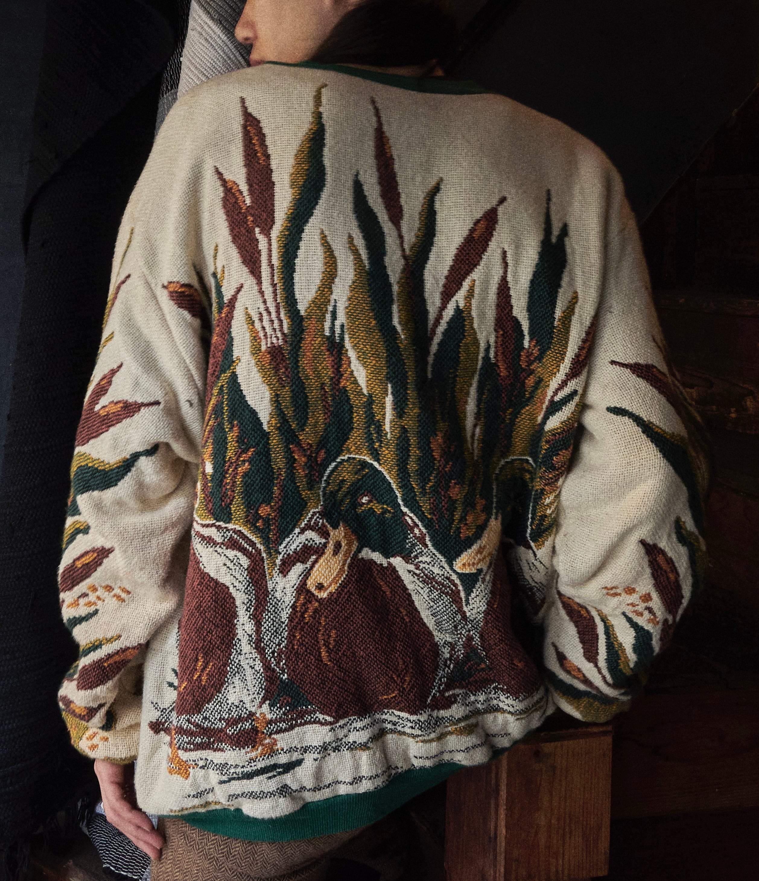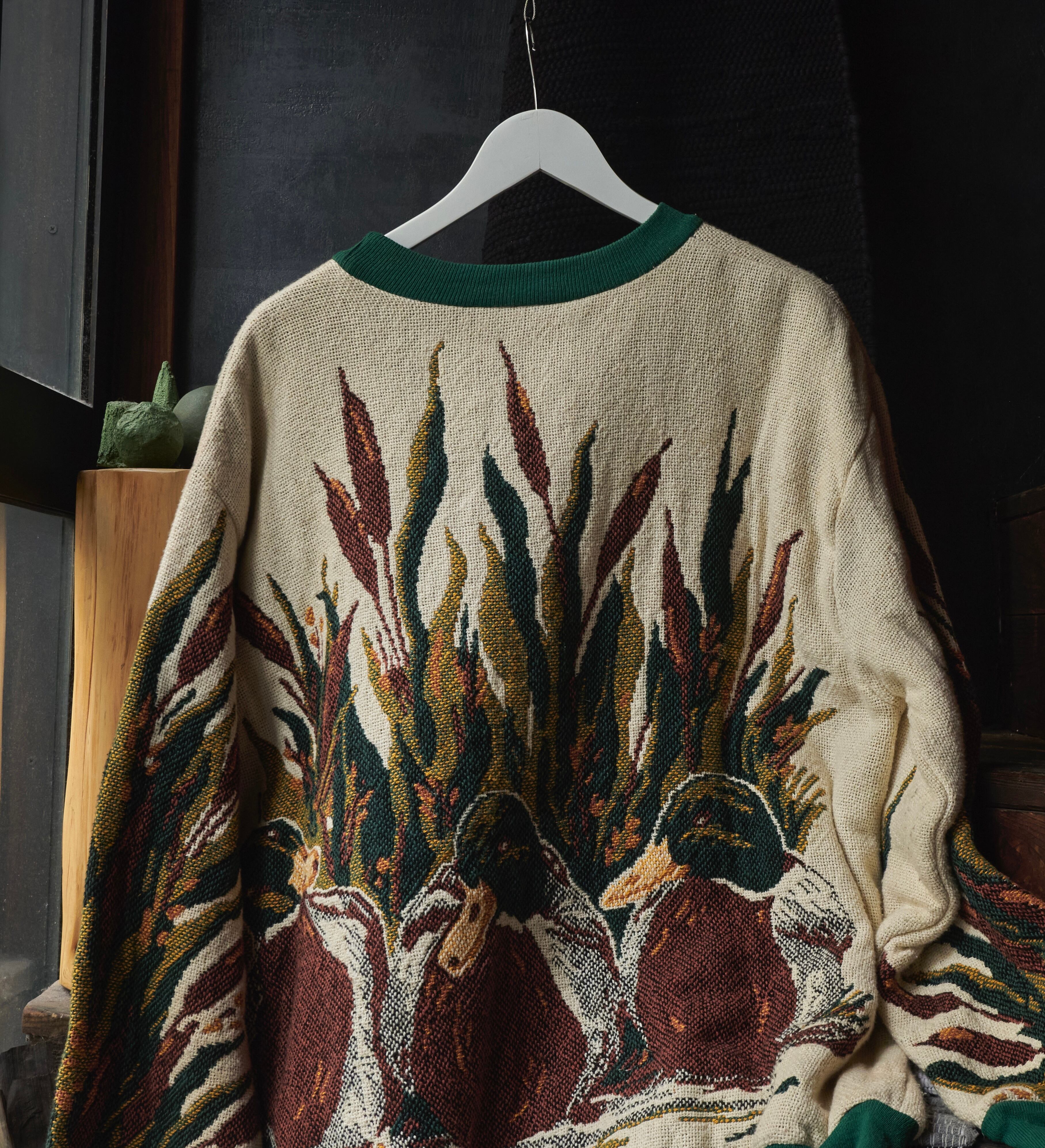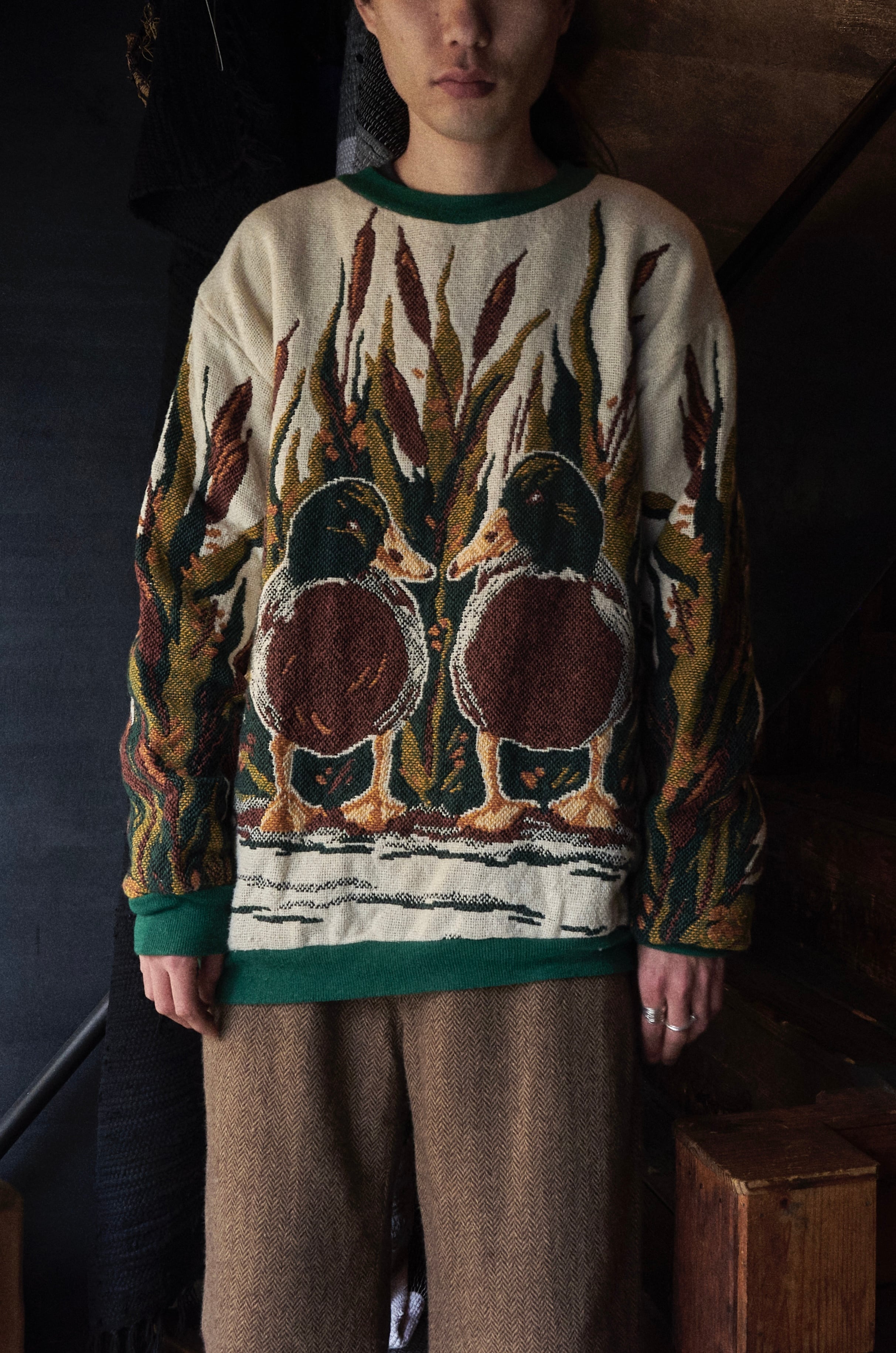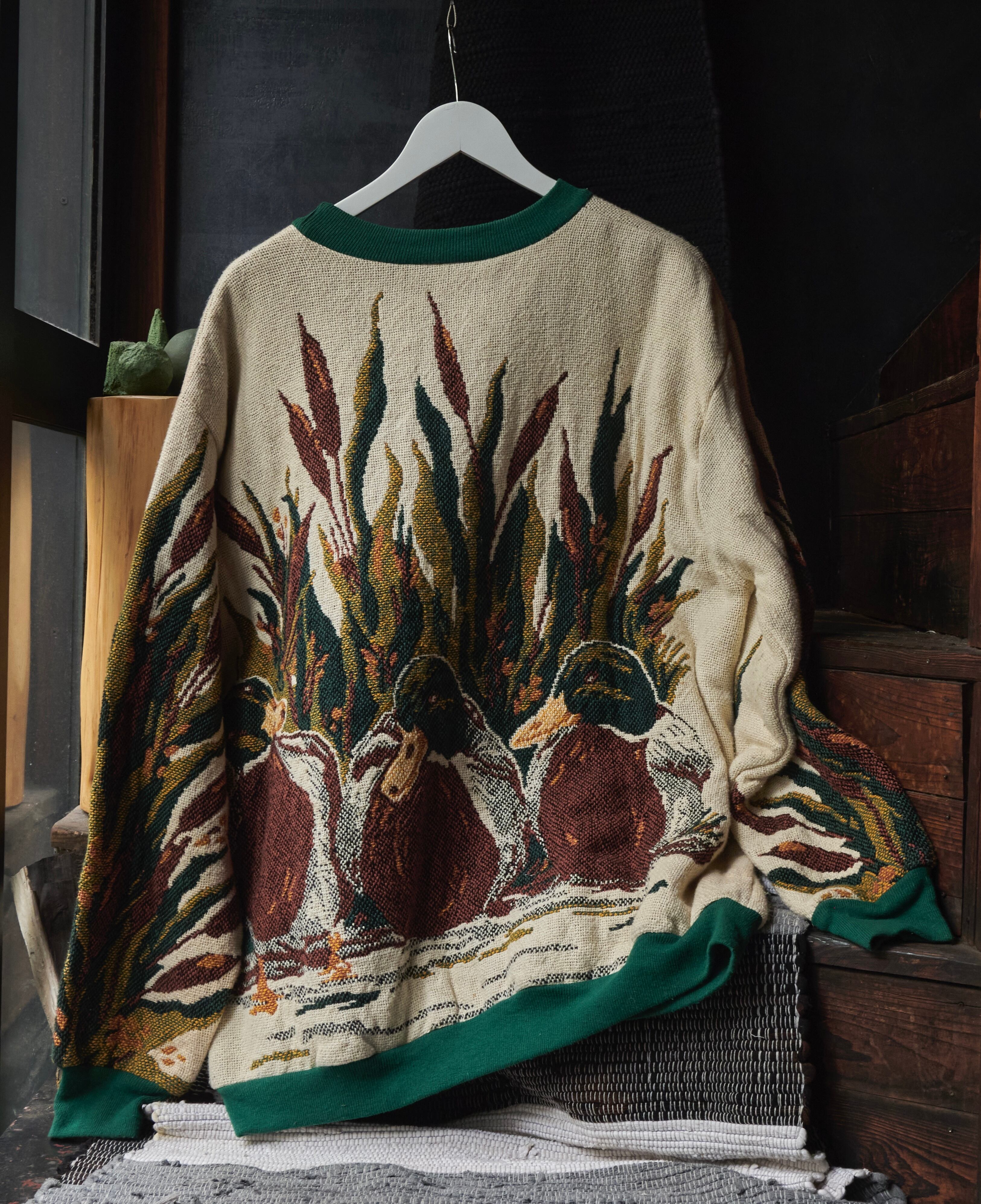 US 90s Camo Gobelin pattern woven cotton knit sweatshirt