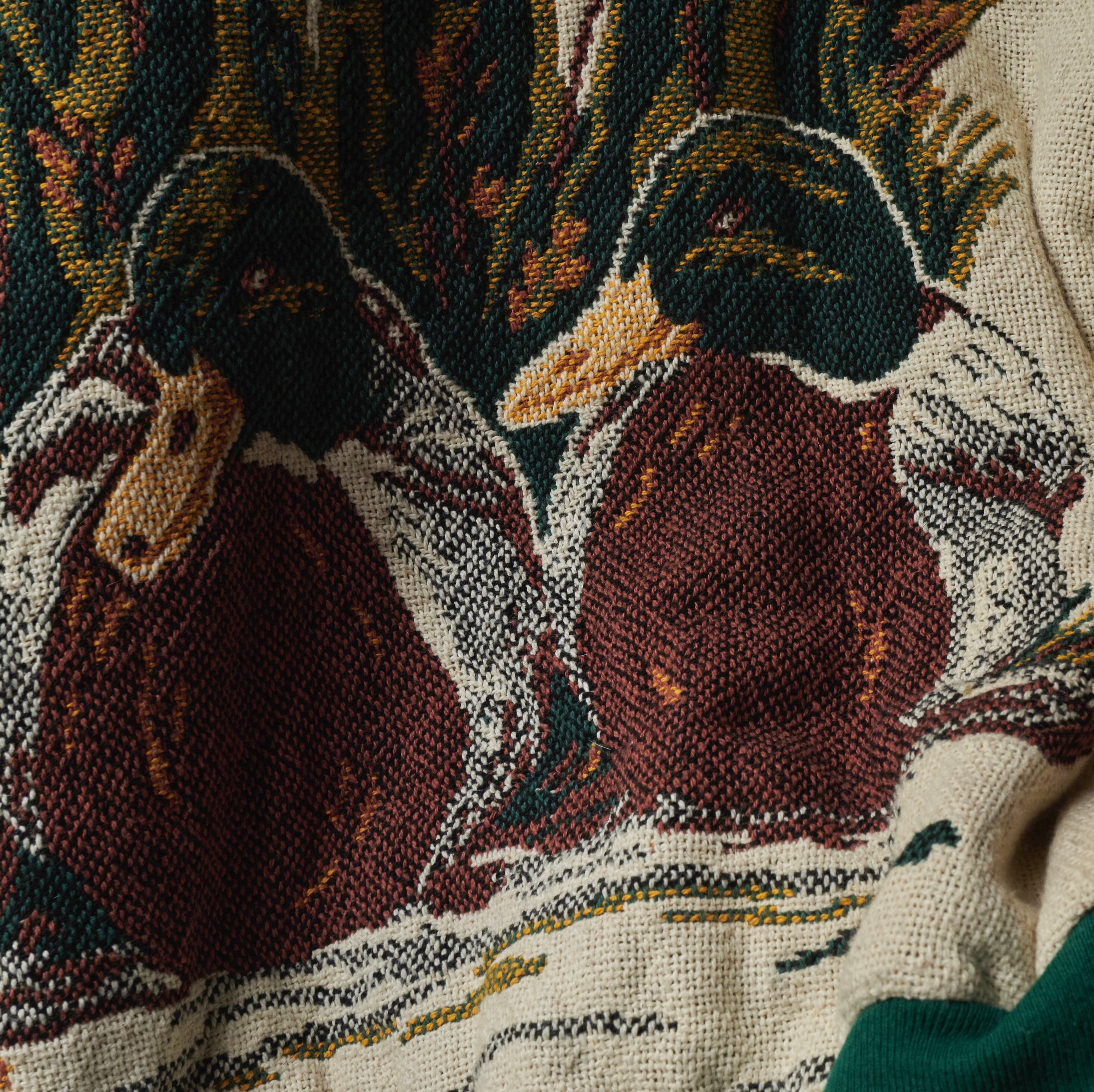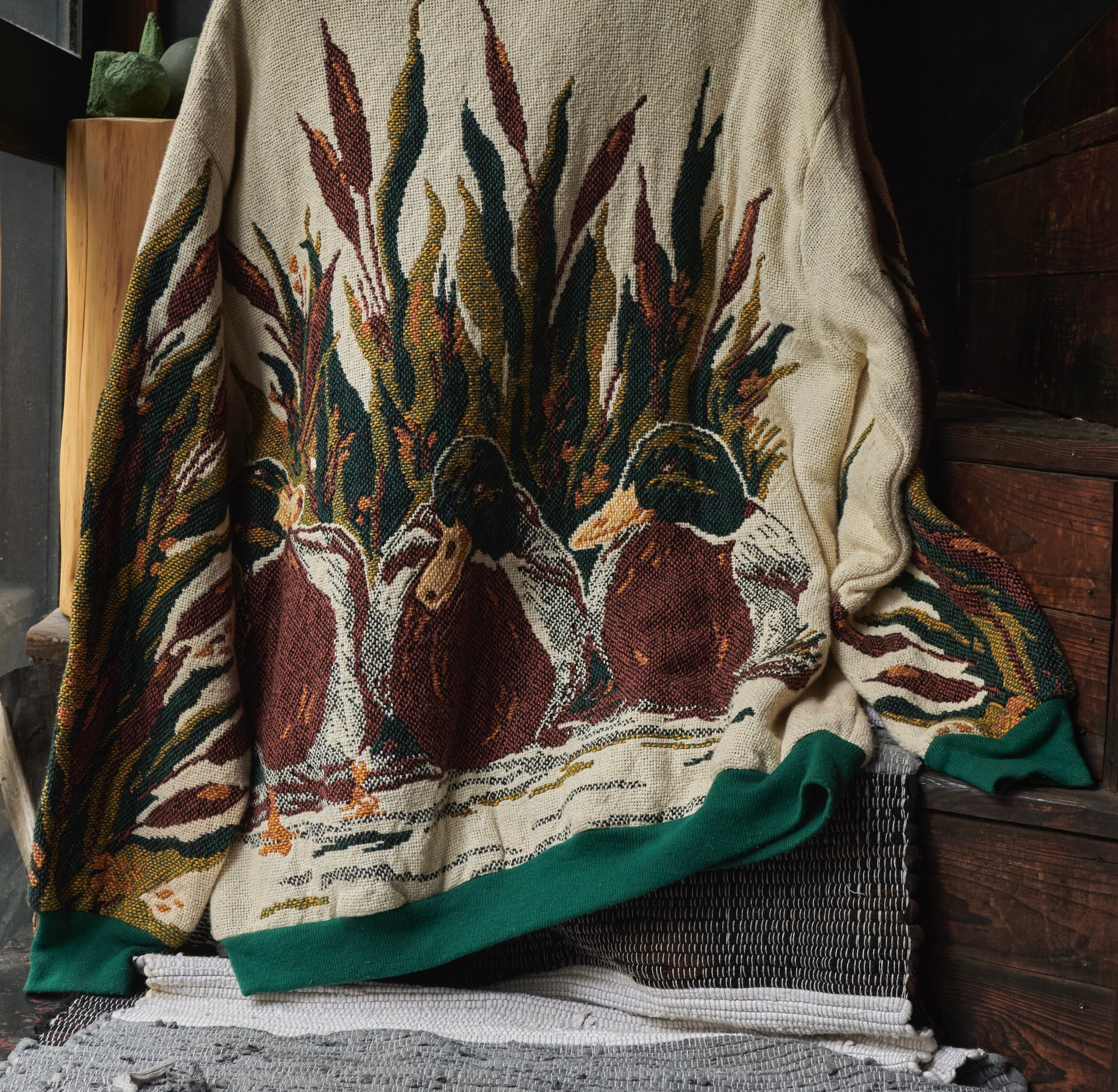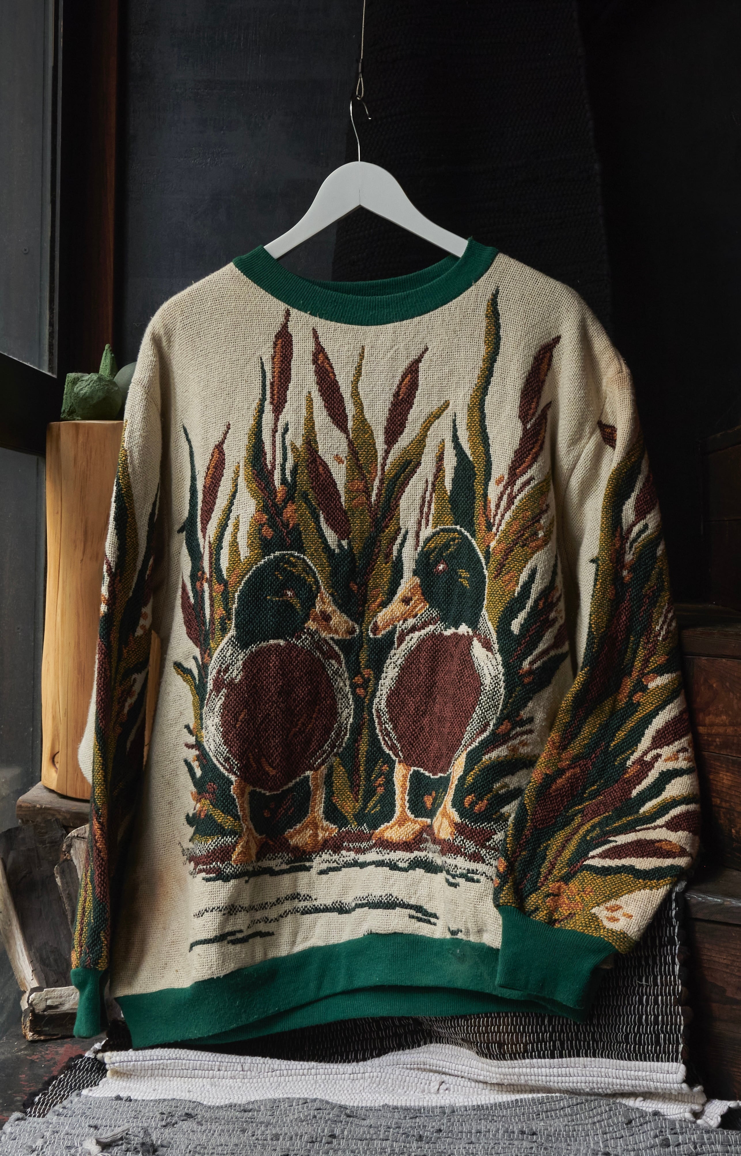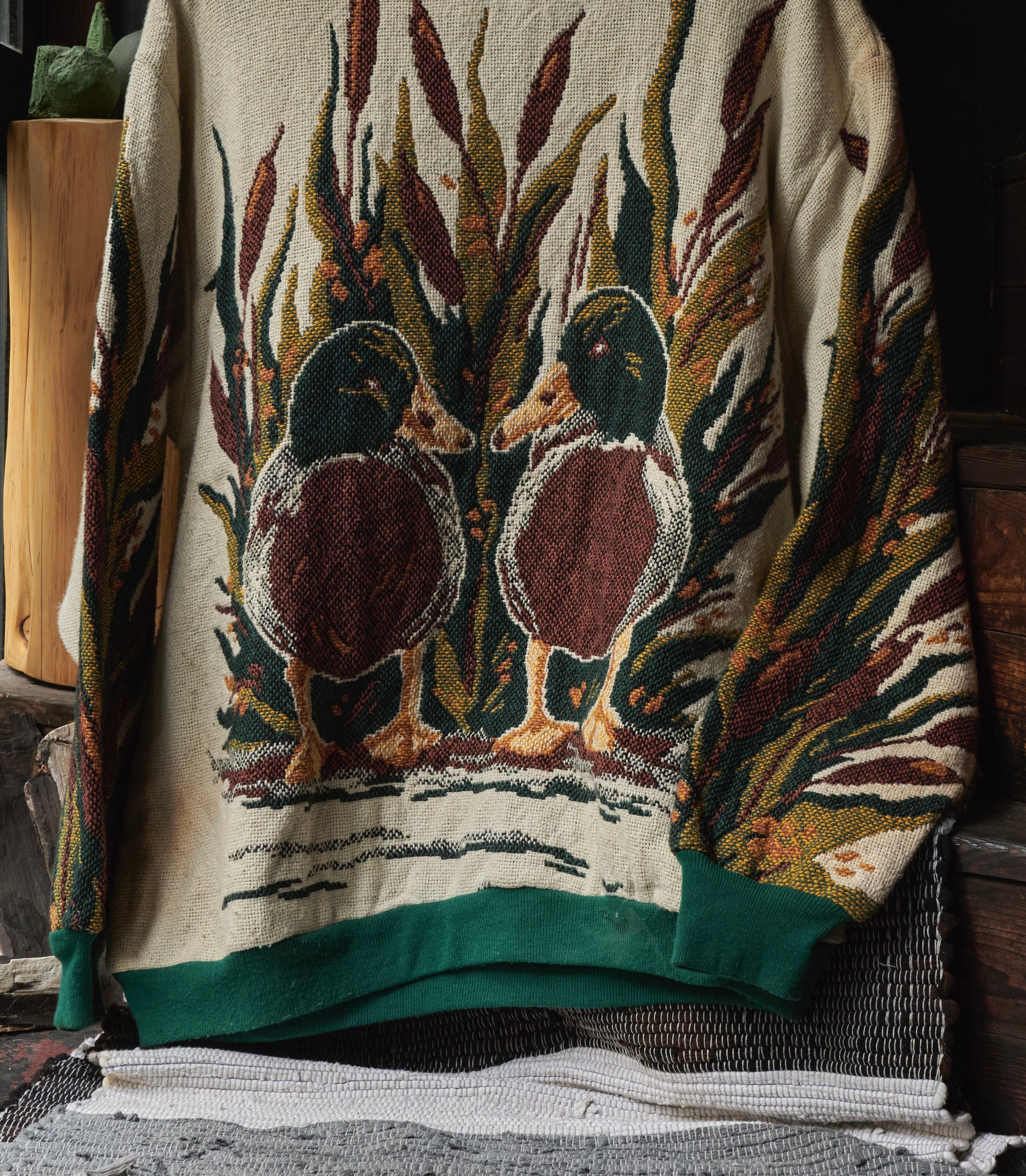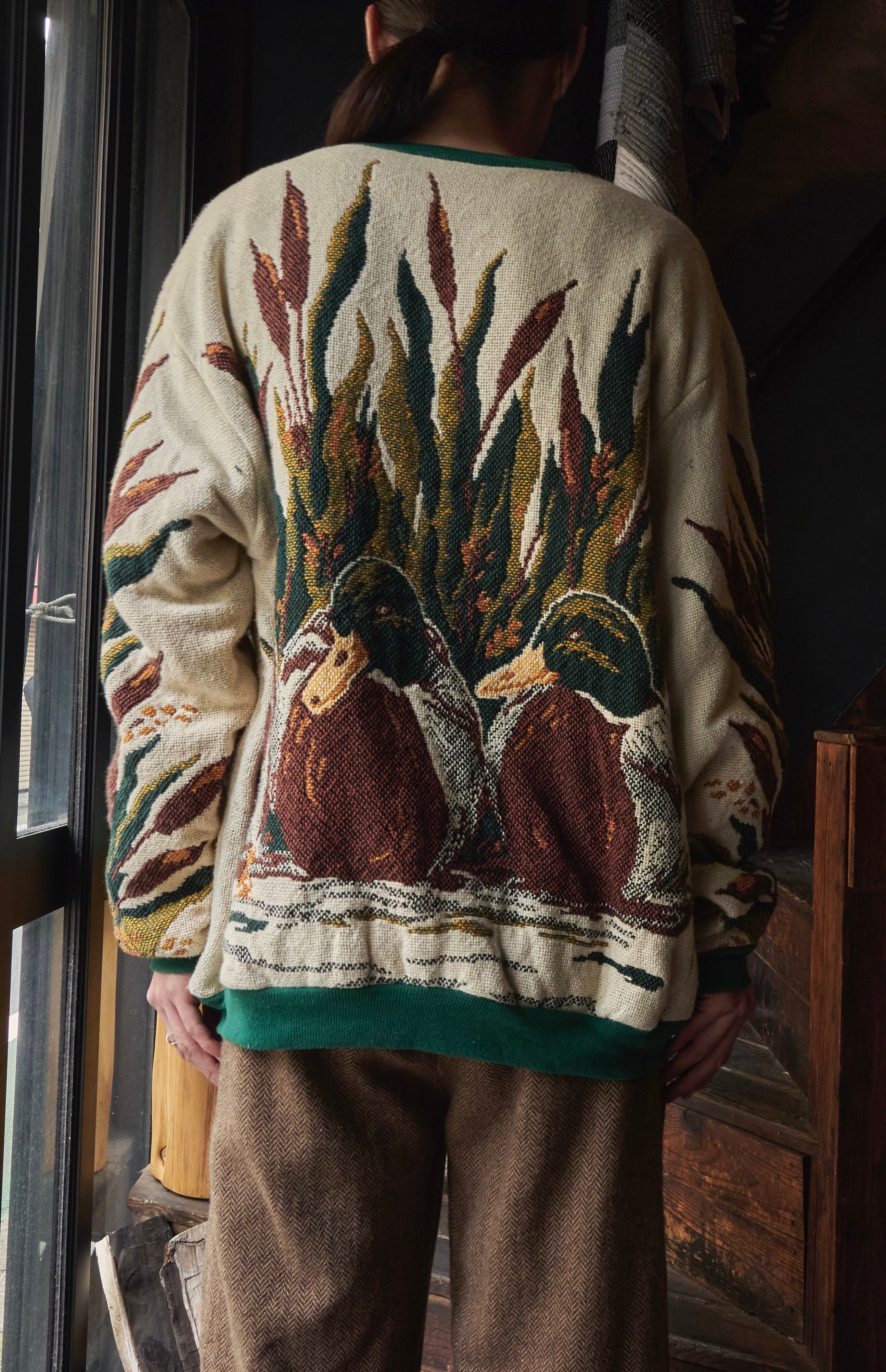 US 90s Camo Gobelin pattern woven cotton knit sweatshirt