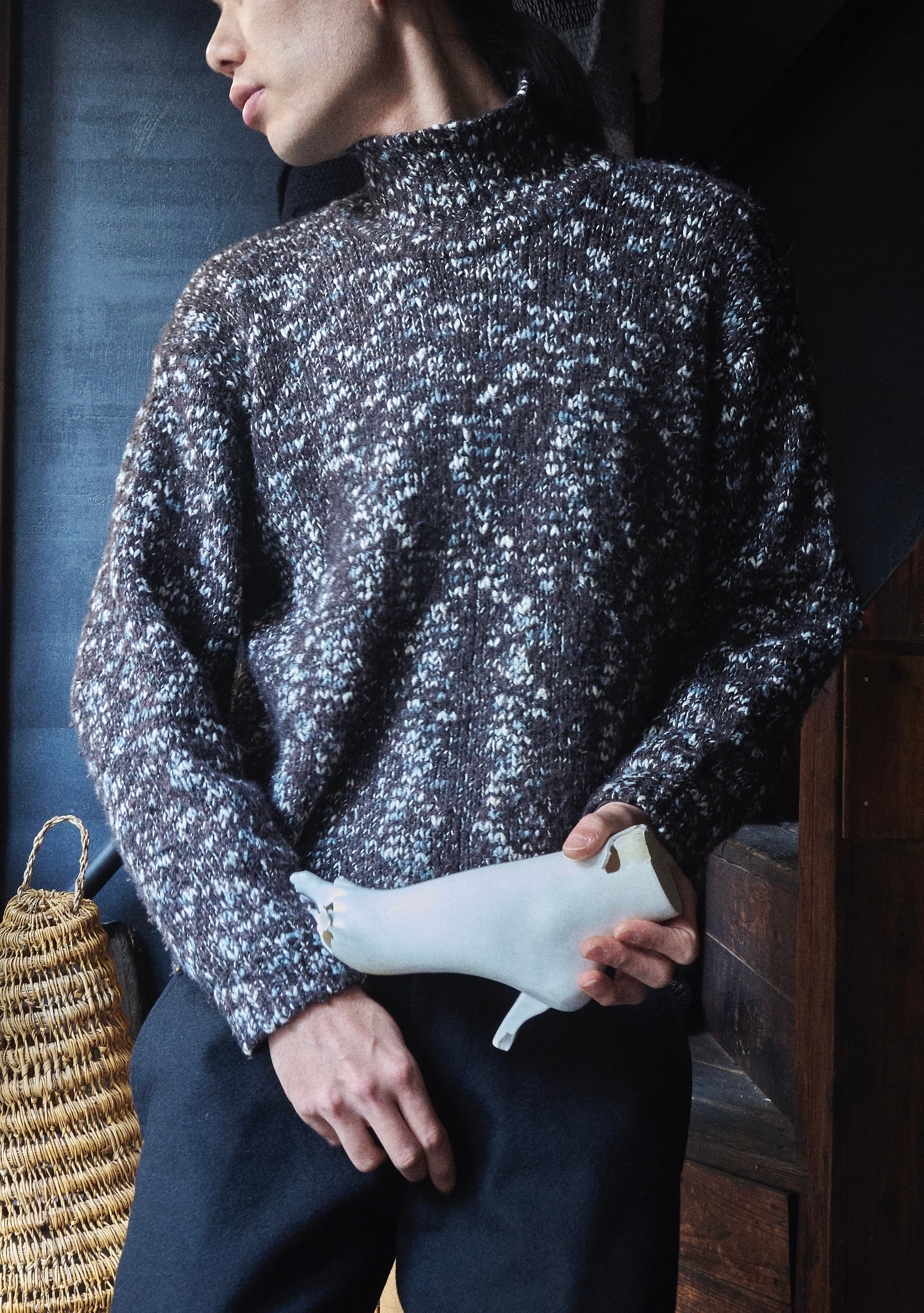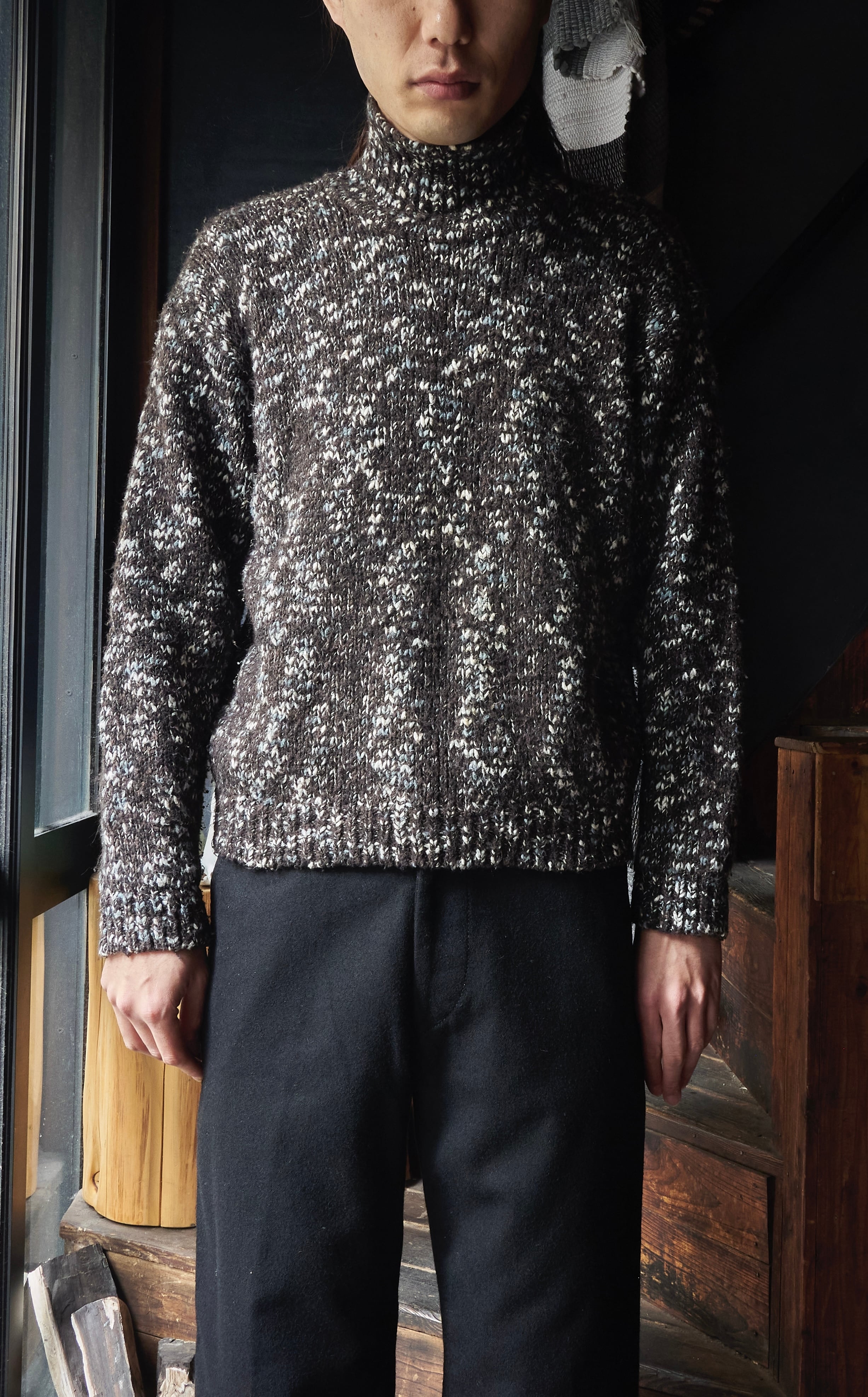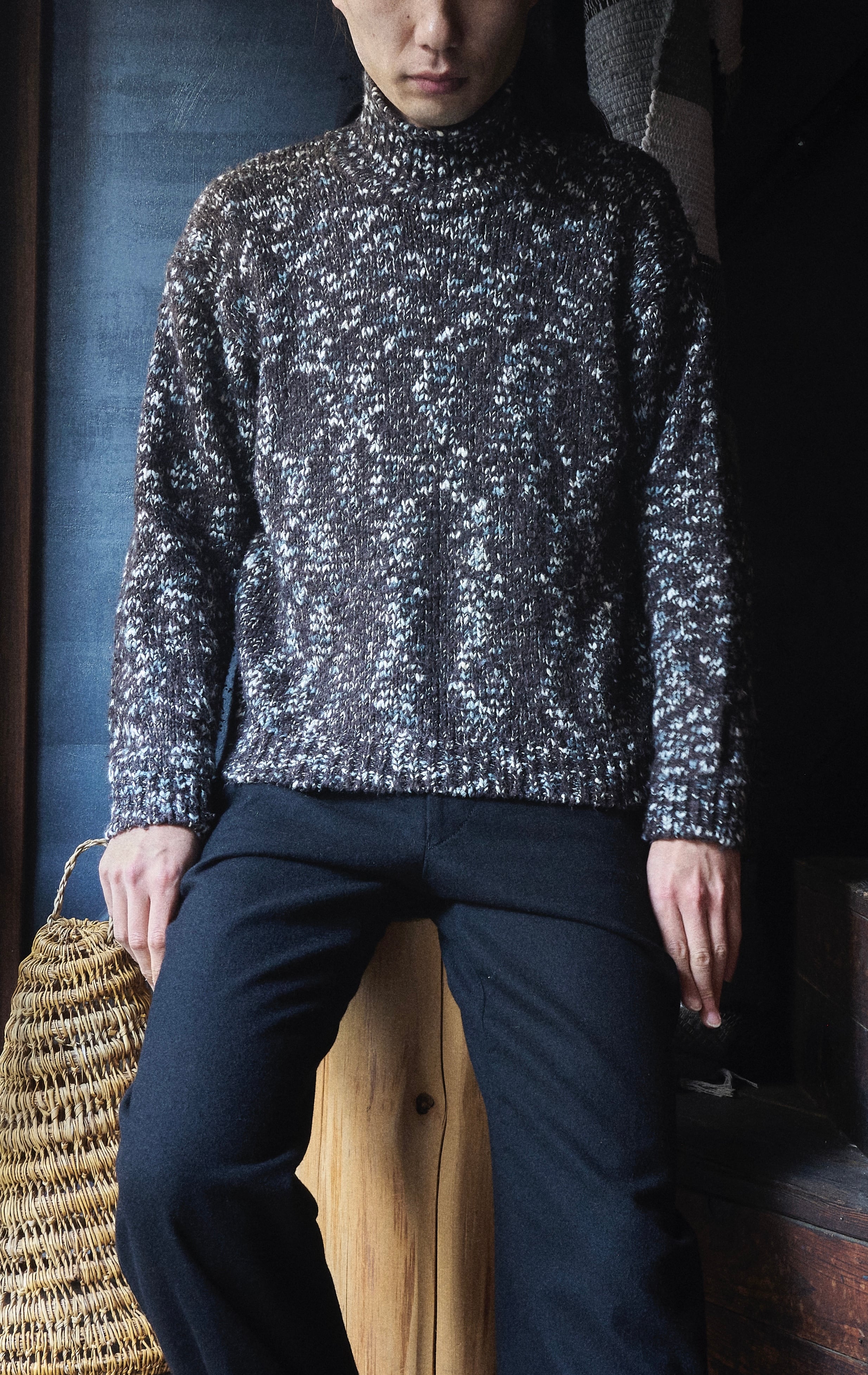 US 90s Cotton × acrylic Mix Nep Short Length Turtleneck Knit