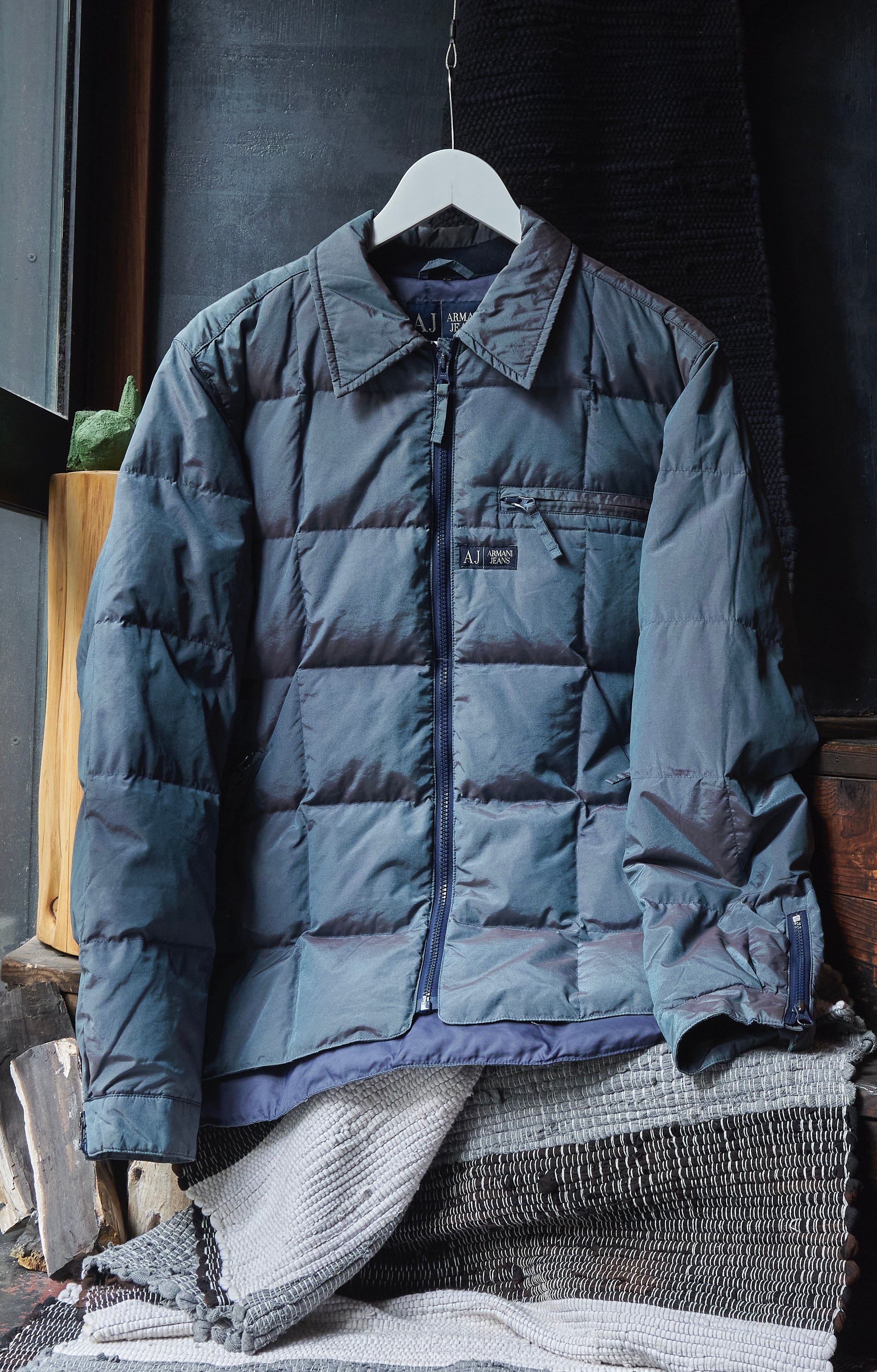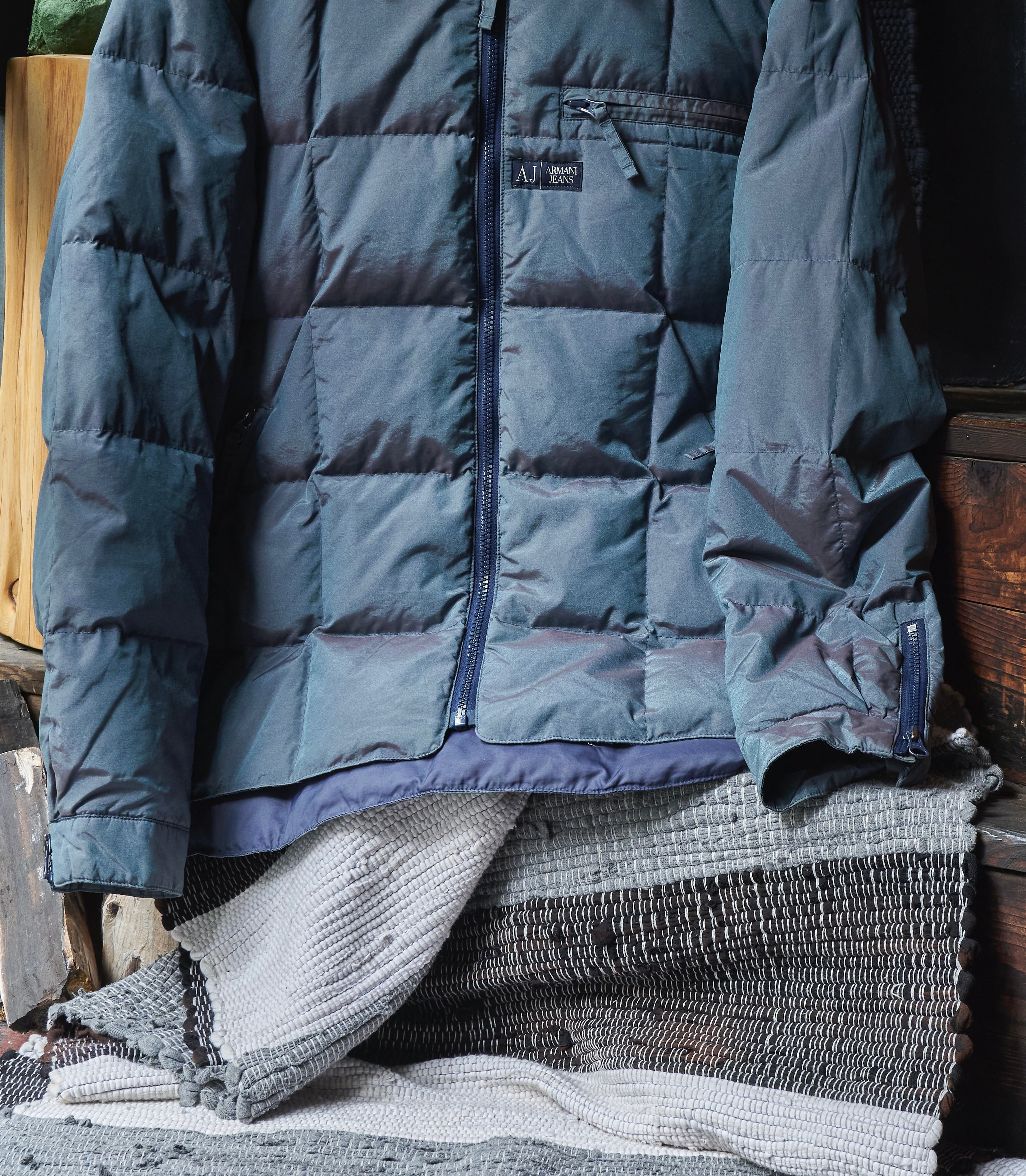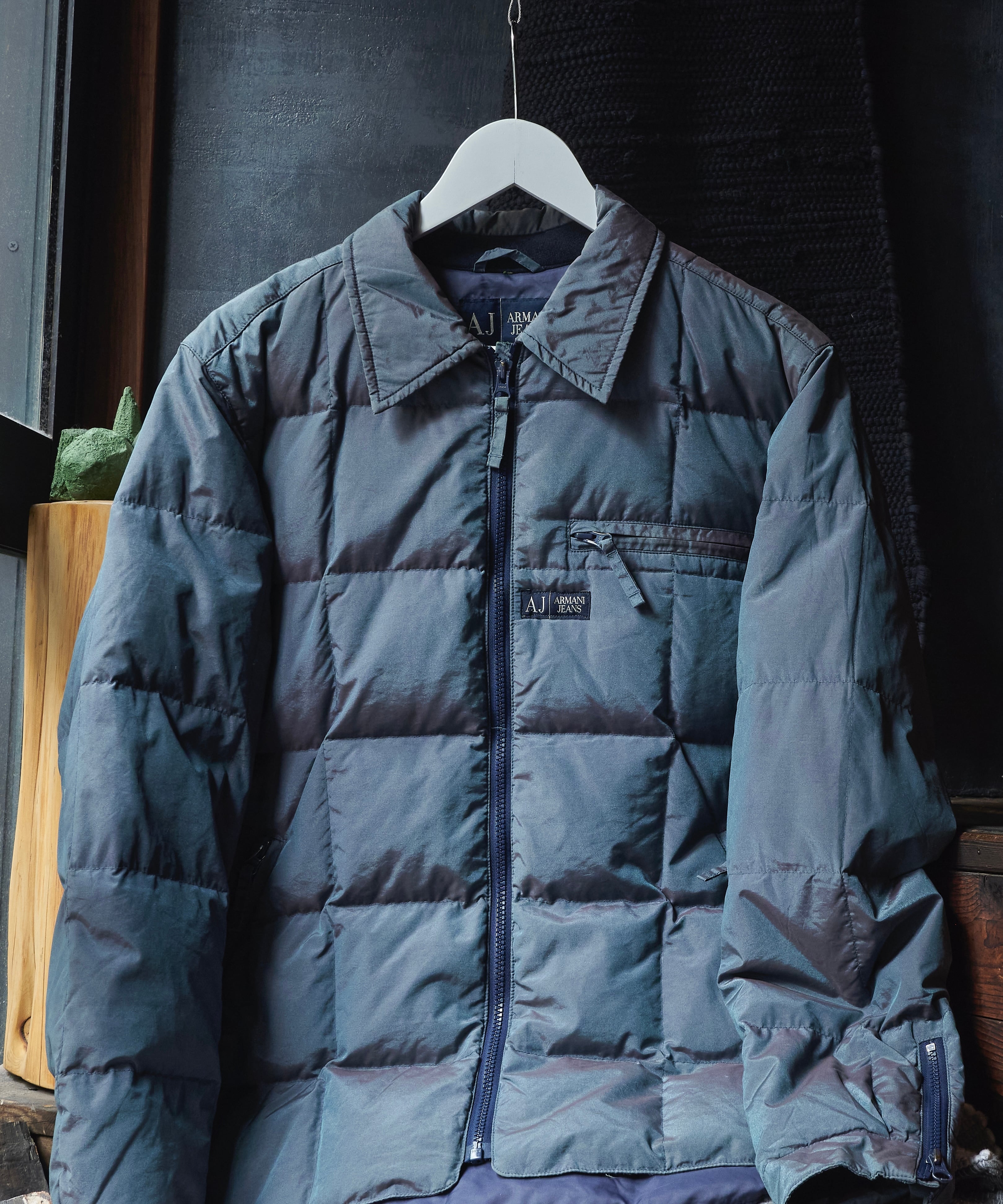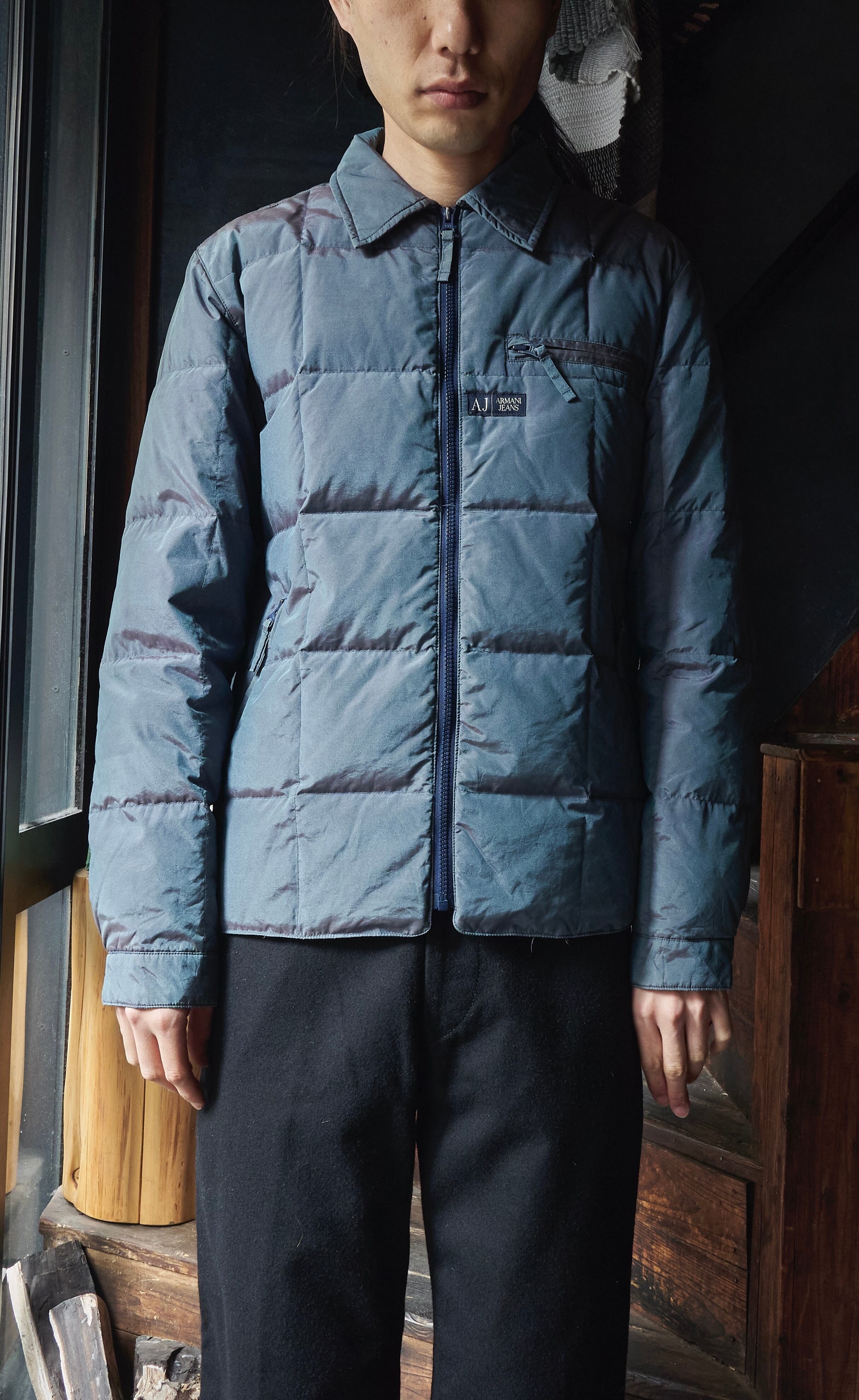 ARMANI jeans Jewel Beetle Blue Nylon Cotton Zipper Puff Jacket