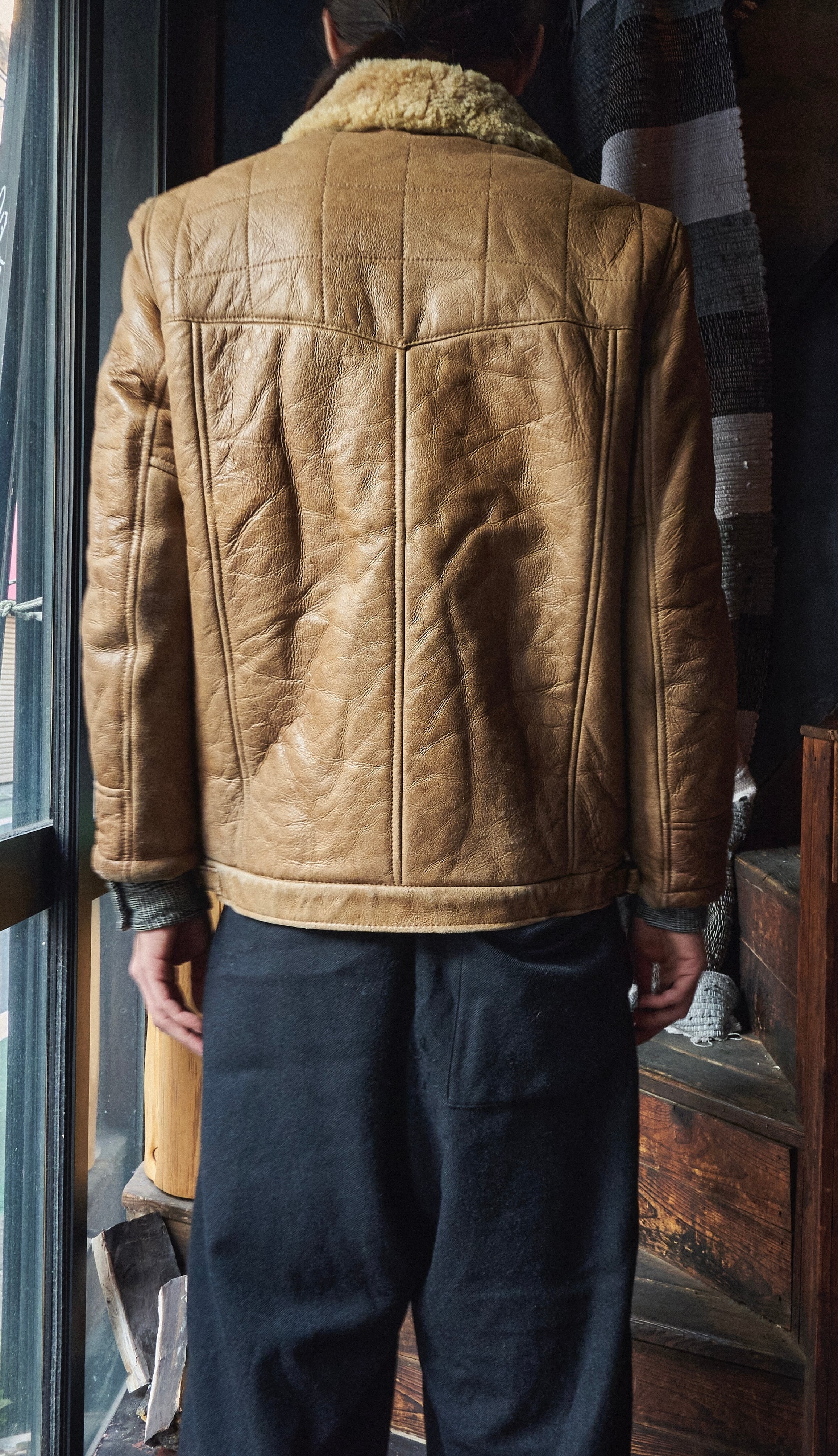 ドイツの素晴らしいvintageのムートンジャケットです。ナッパレザーとは、生後1年未満のラムレザーをナッパなめしという特別ななめし方で加工した高品質なレザーを指します。その特徴は、非常に柔らかくしなやかな手触りです。ムートンは羊の毛皮(シープスキン)を加工した天然素材です。羊の毛皮の表面をスエードに仕上げにするのが特徴です。