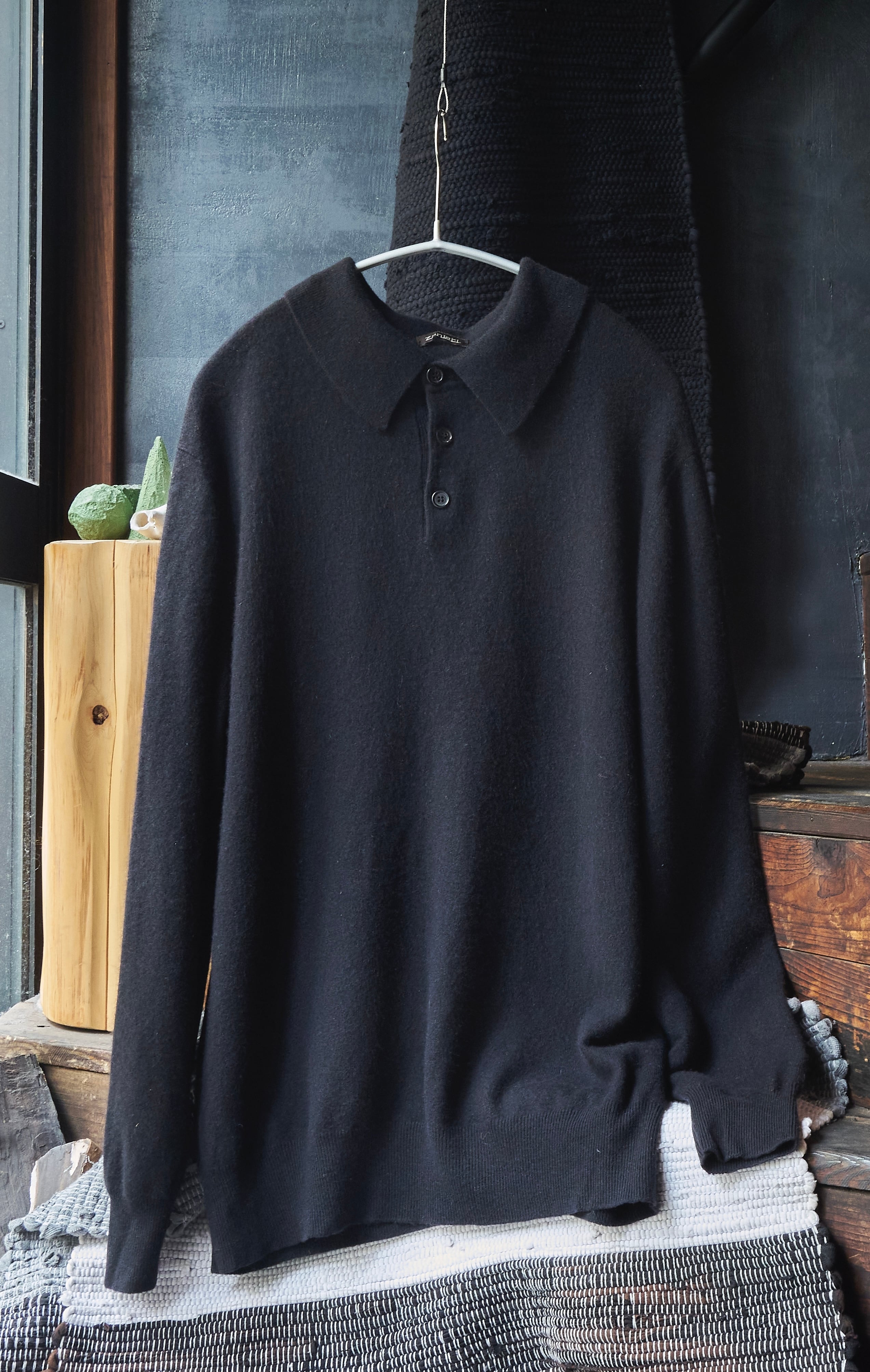 2000s ITALY Black cashmere knit polo