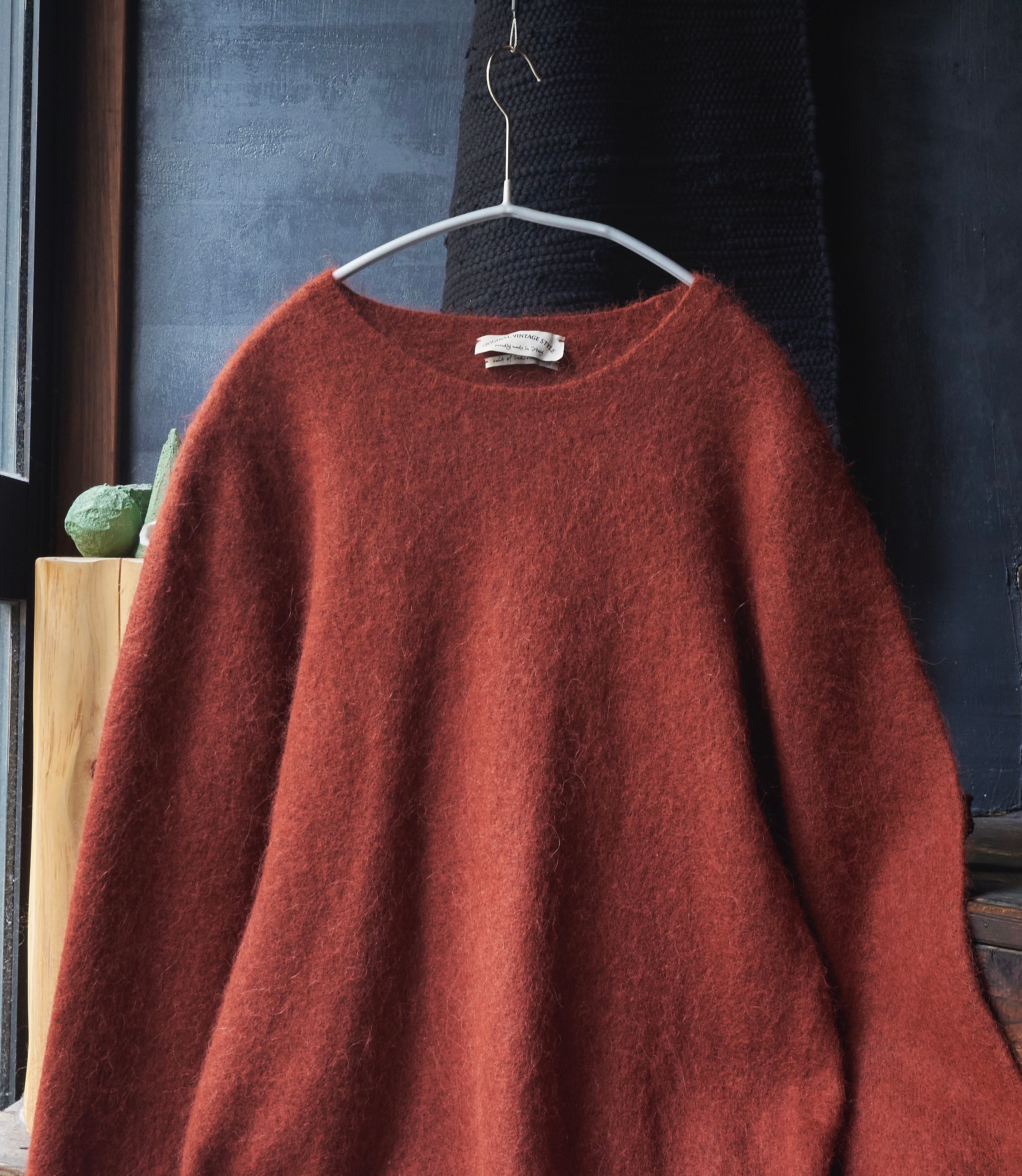2000s ITALY Alpaca x Nylon x Wool fabric Orange knit