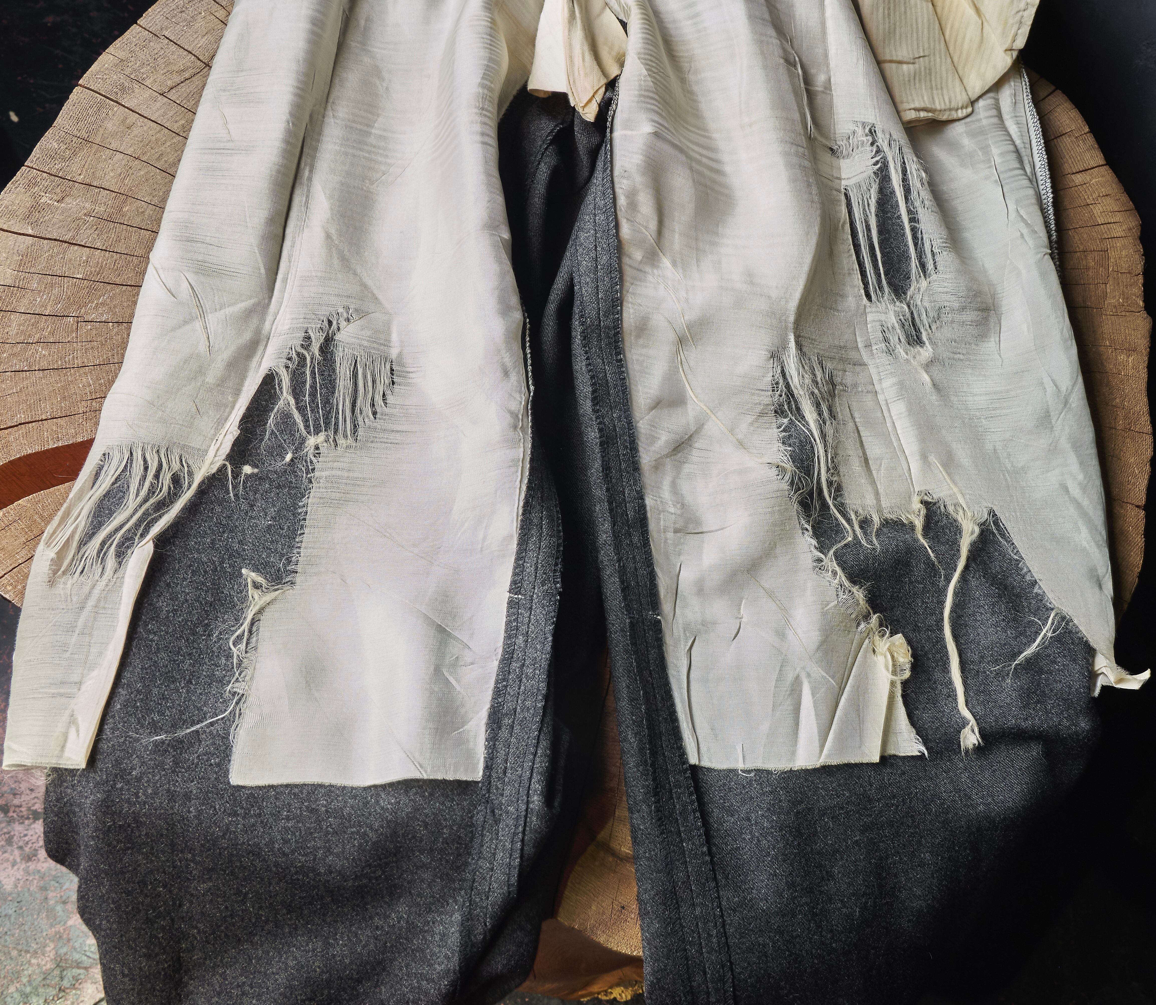 ※膝抜け防止用、キュプラ当て布に破れがございます。膝抜けなどの心配はございません。