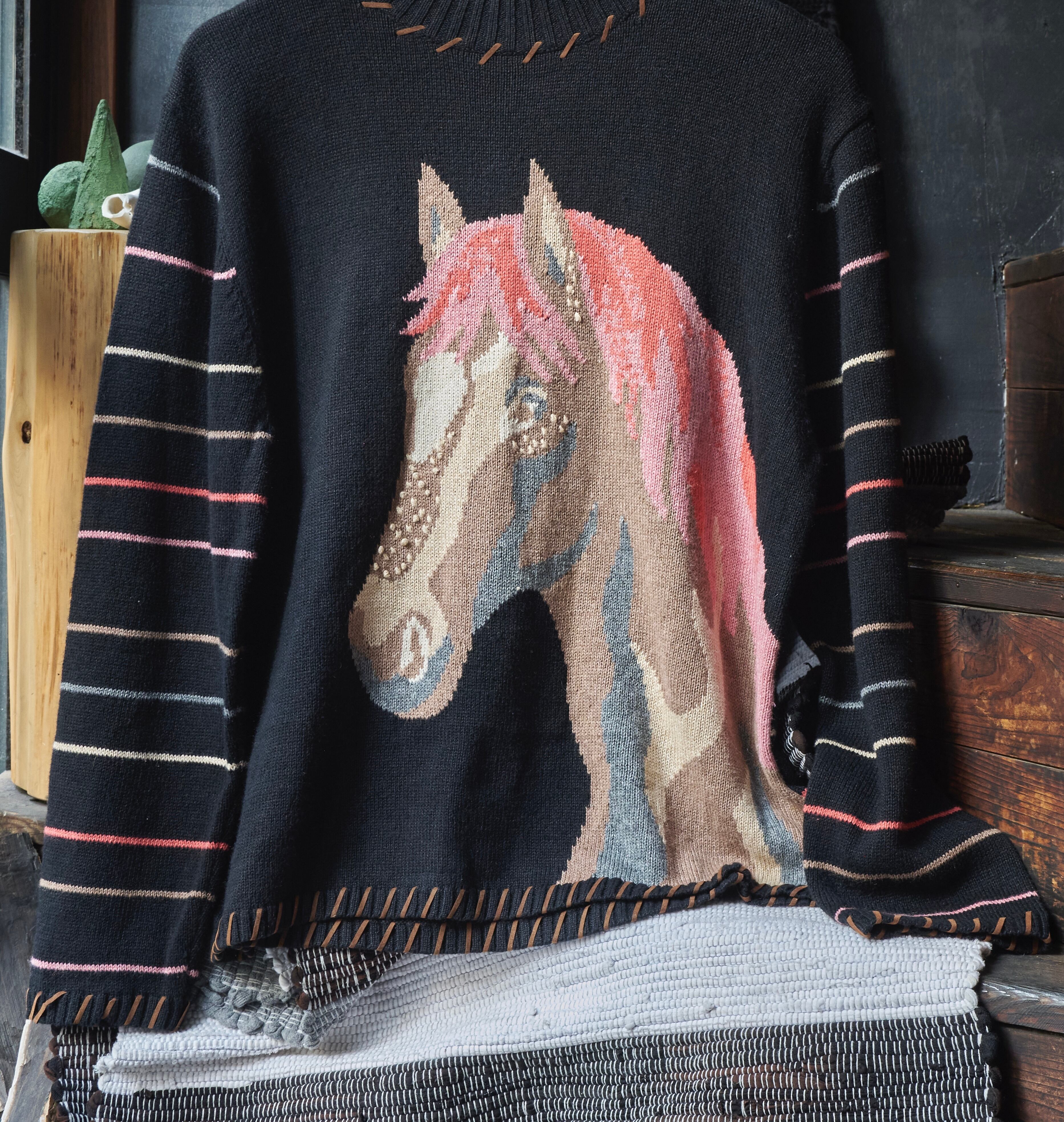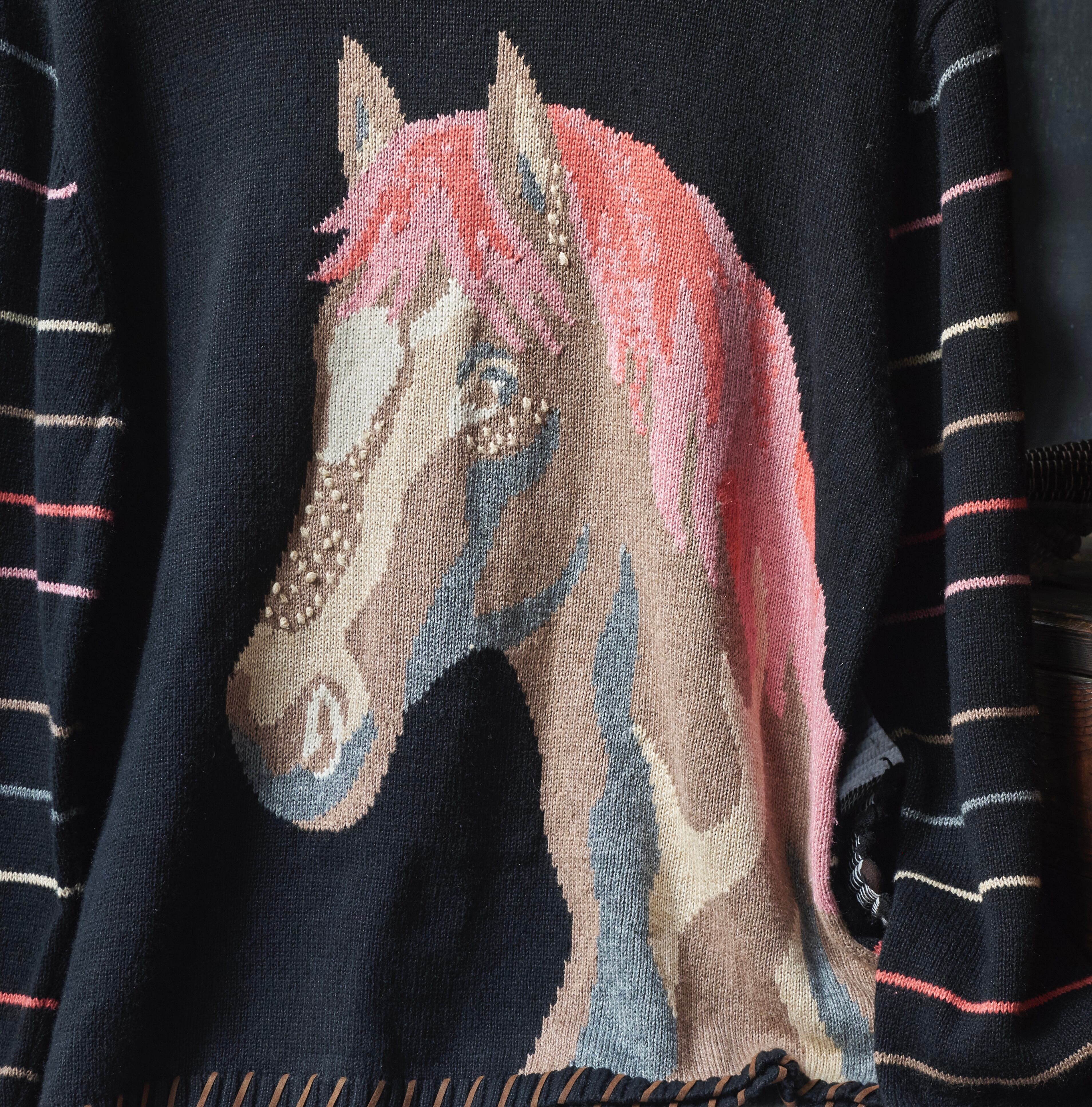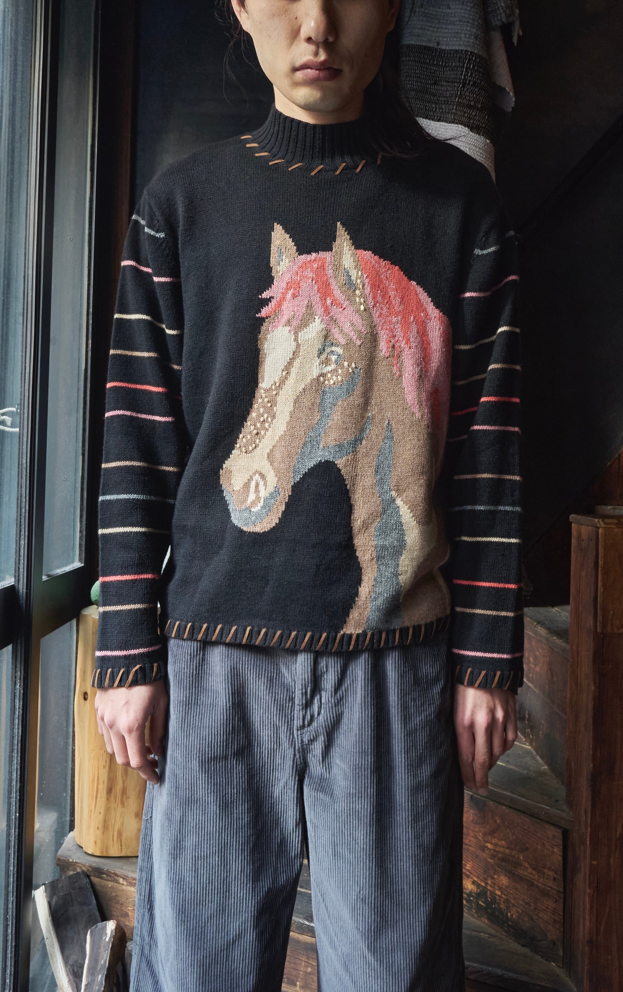 US 2010s Horse pattern knitting Sleeve border mock neck knit