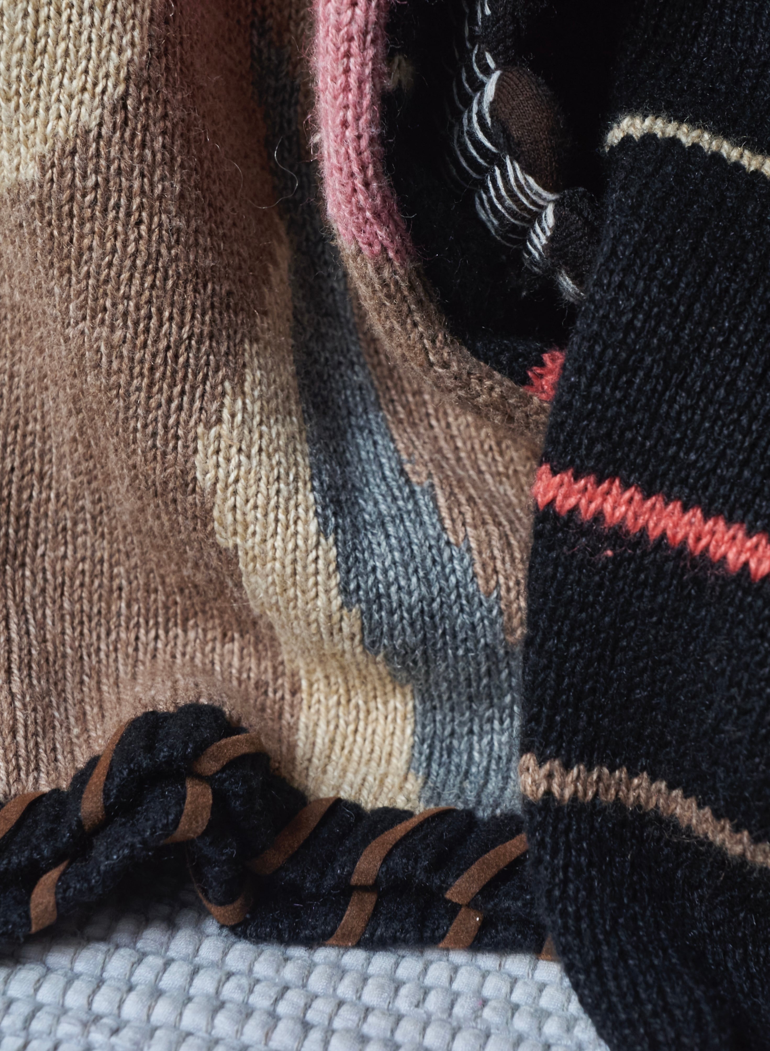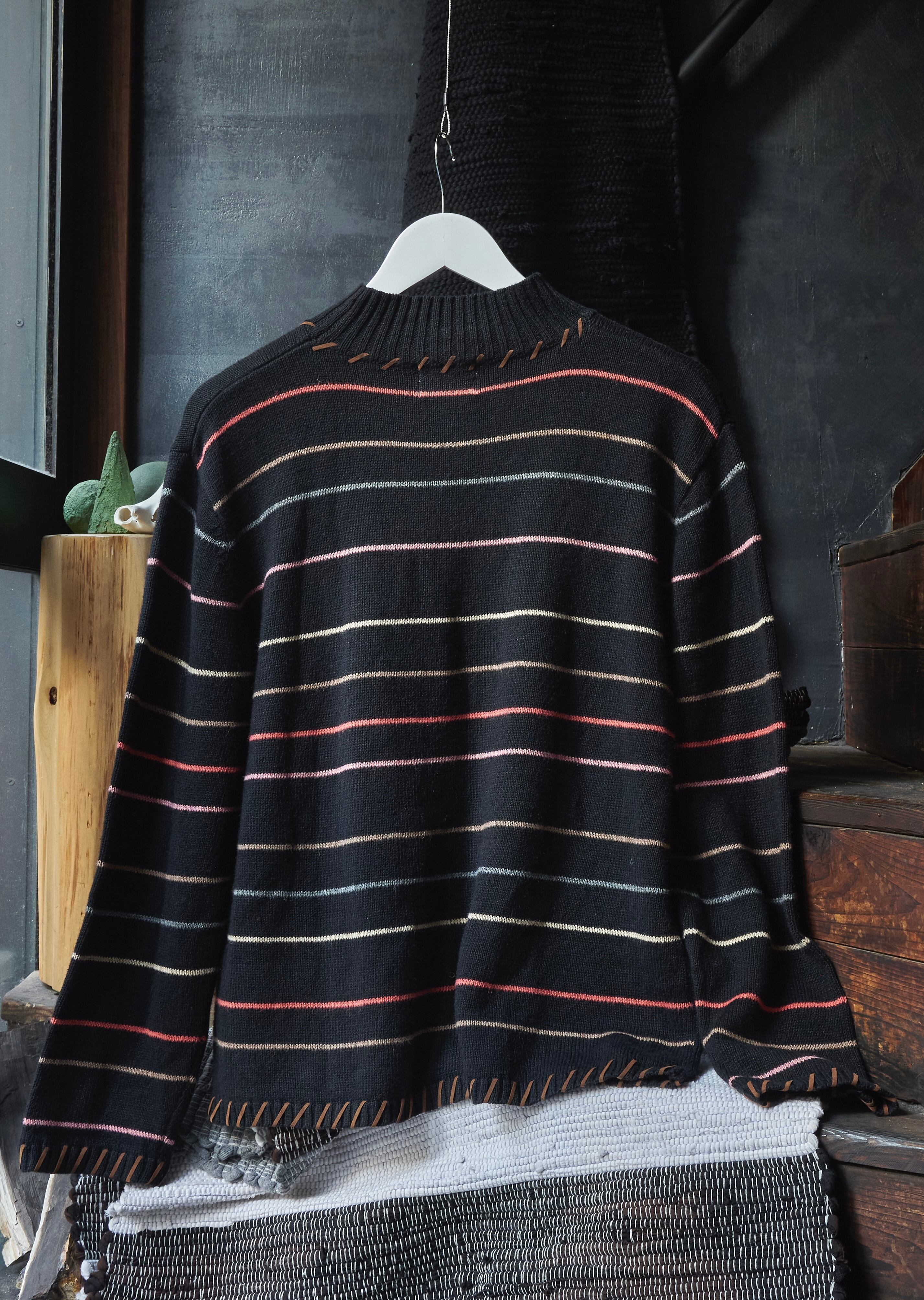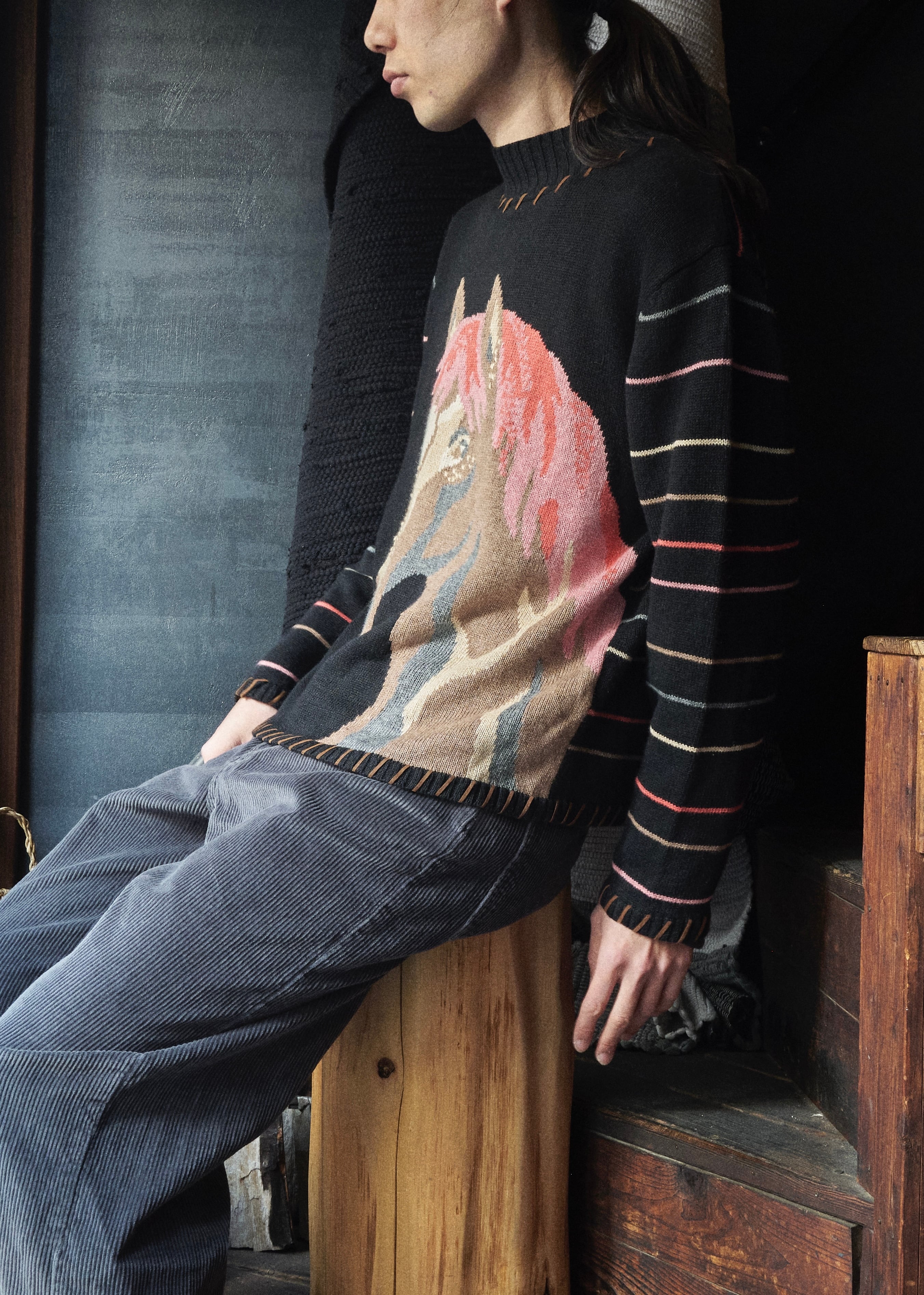 US 2010s Horse pattern knitting Sleeve border mock neck knit