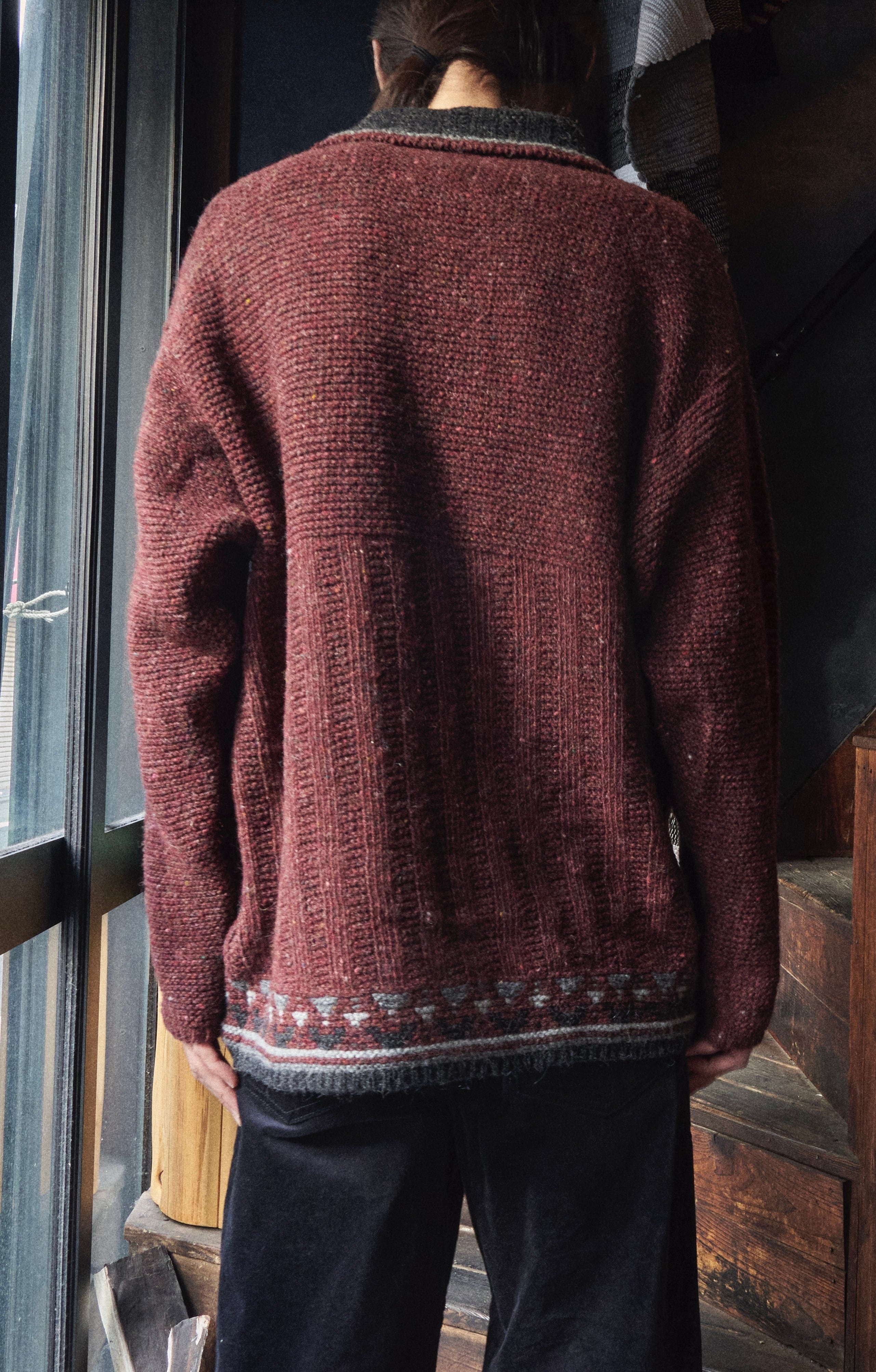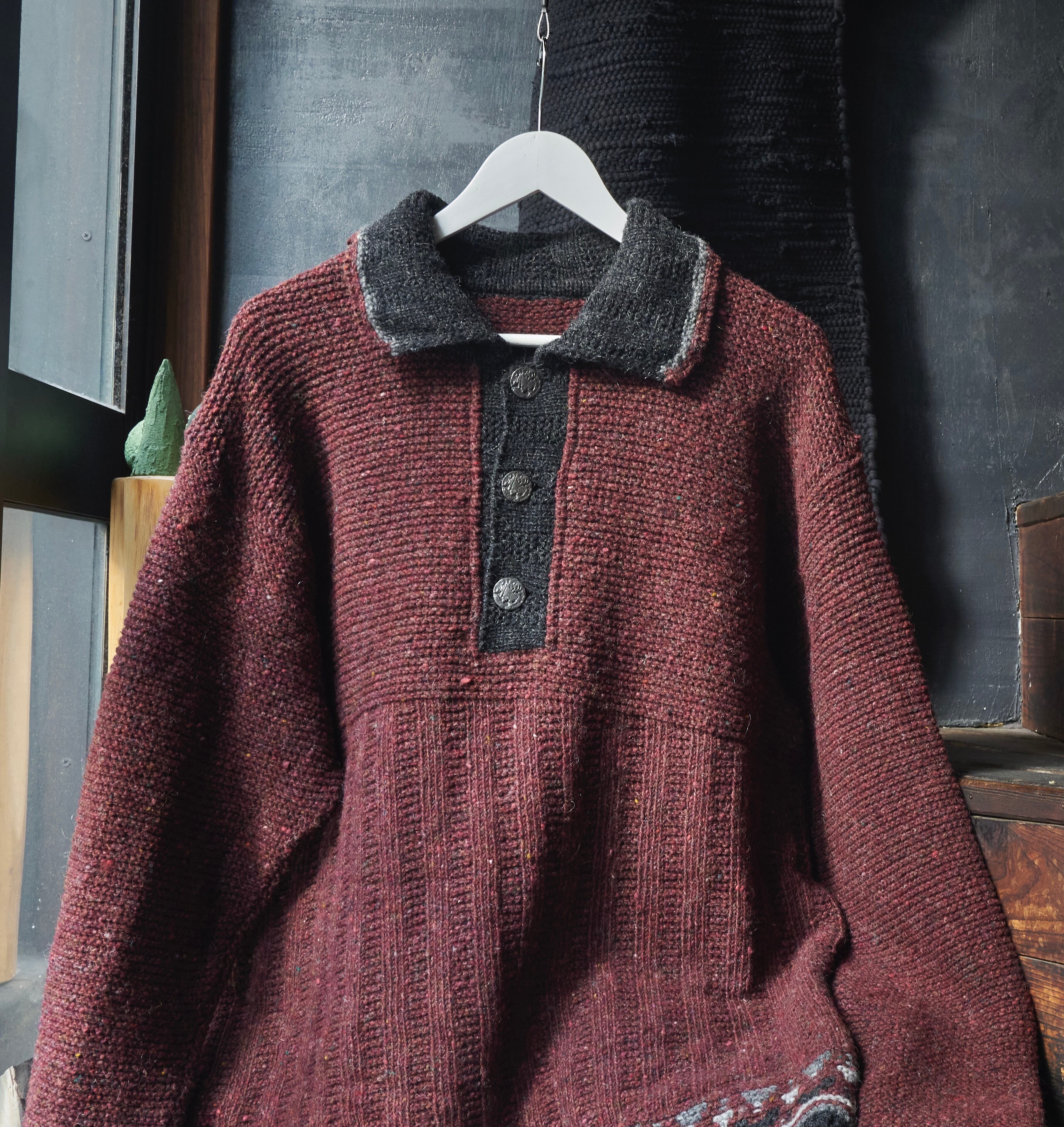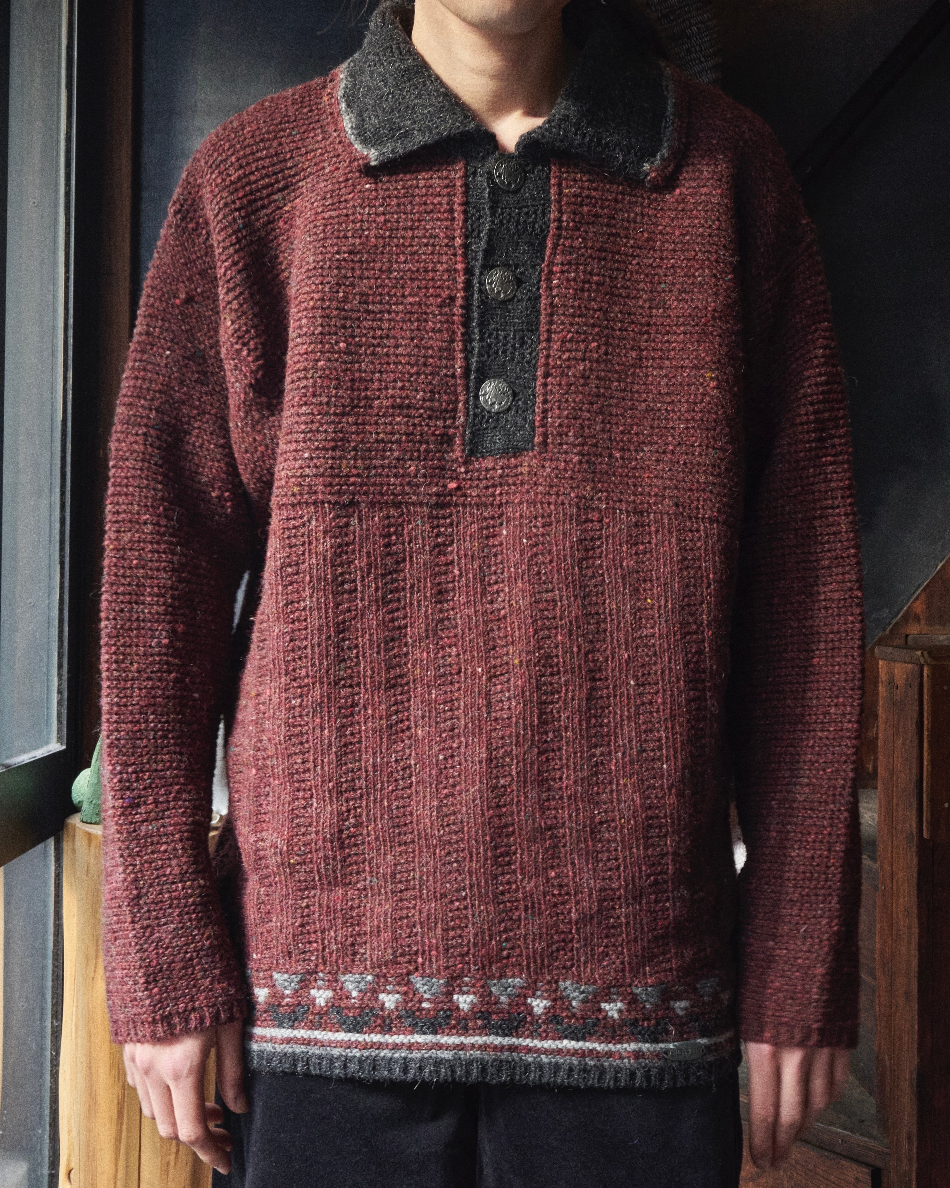 80s Austria Burgundy Mix Colorful Nep Knit Polo