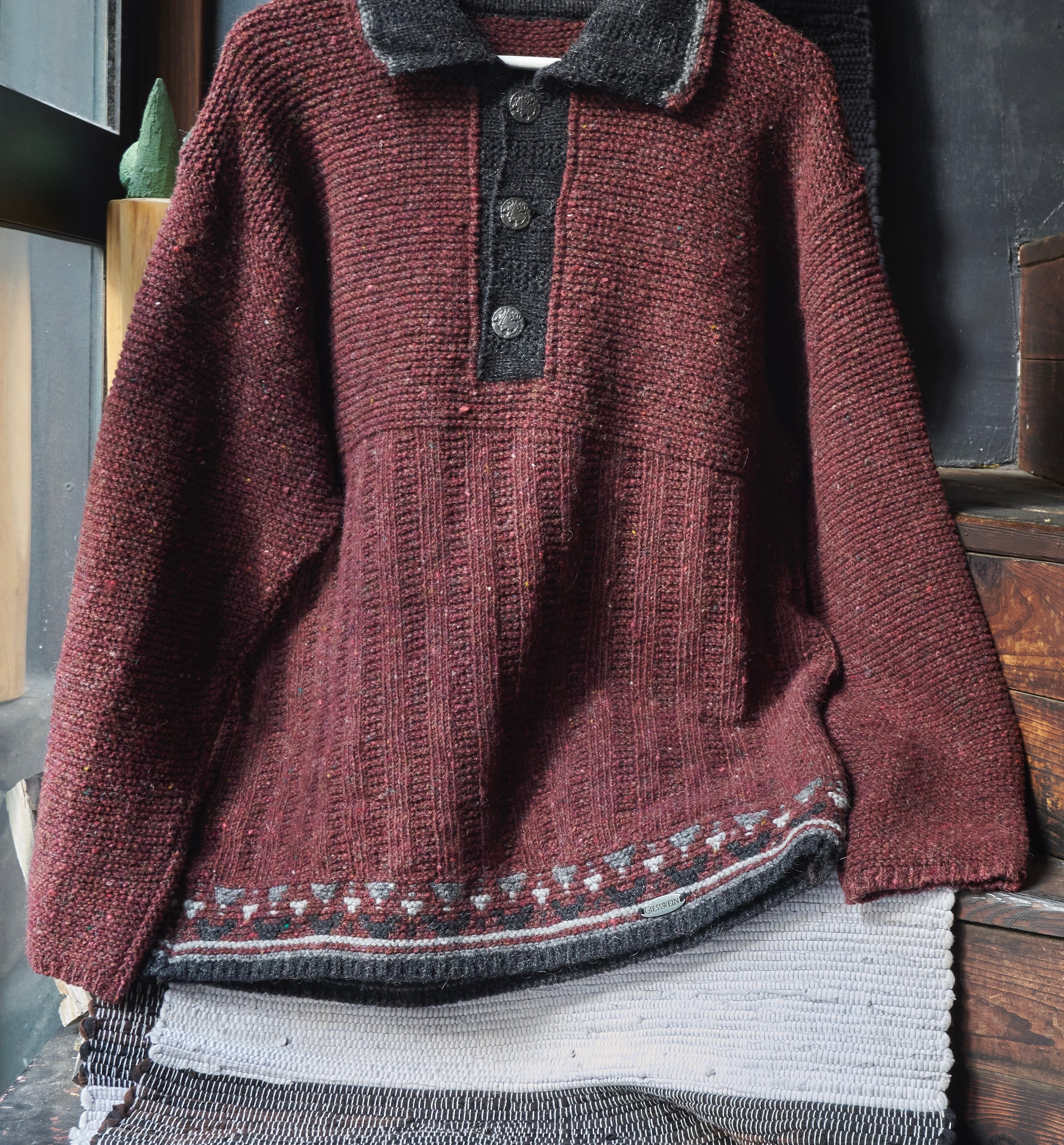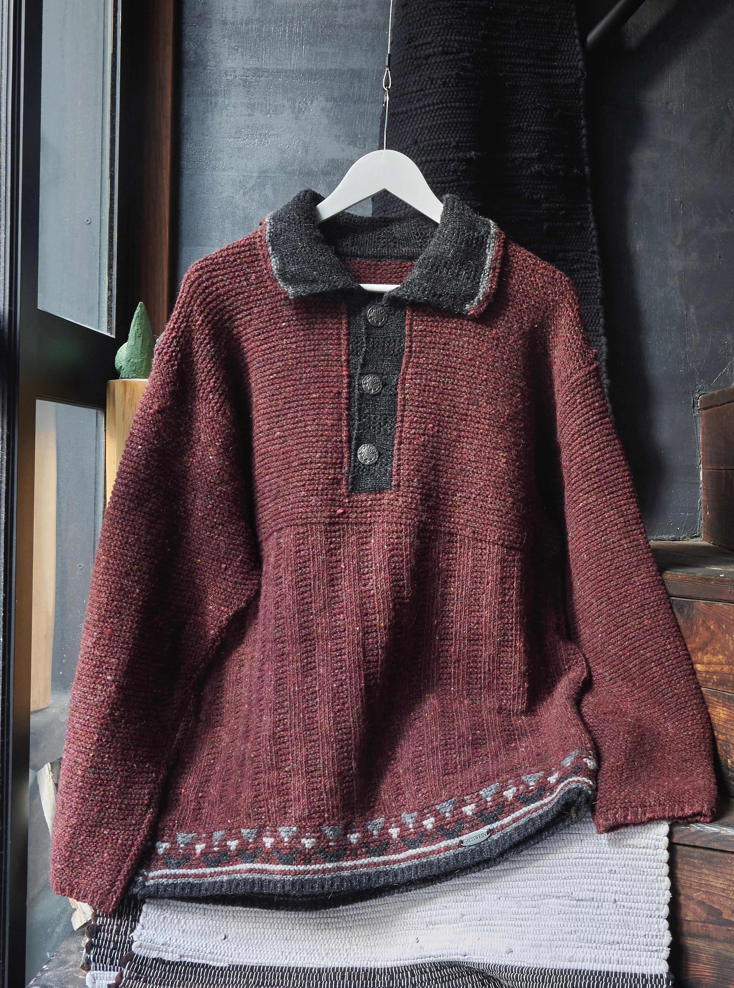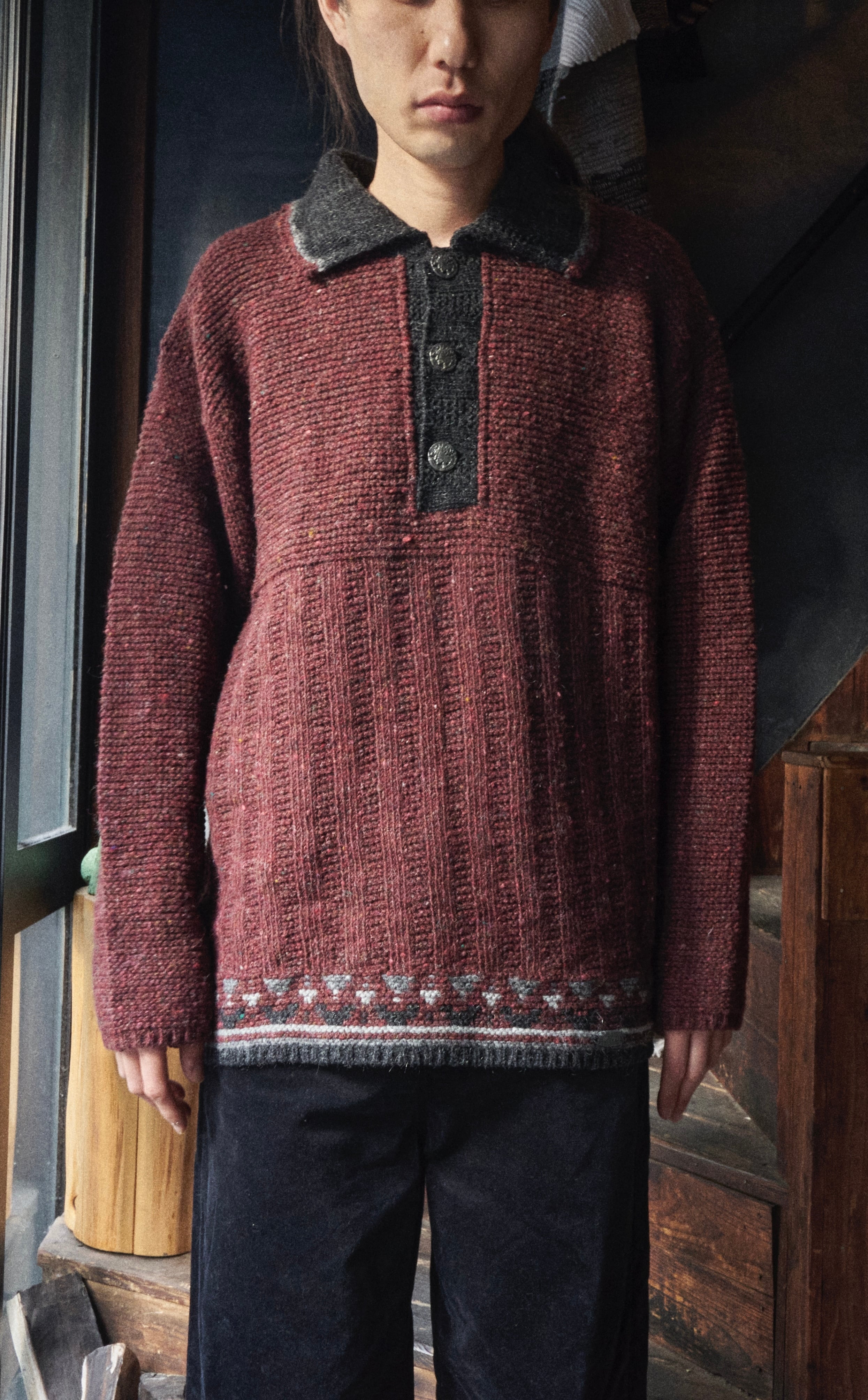80s Austria Burgundy Mix Colorful Nep Knit Polo