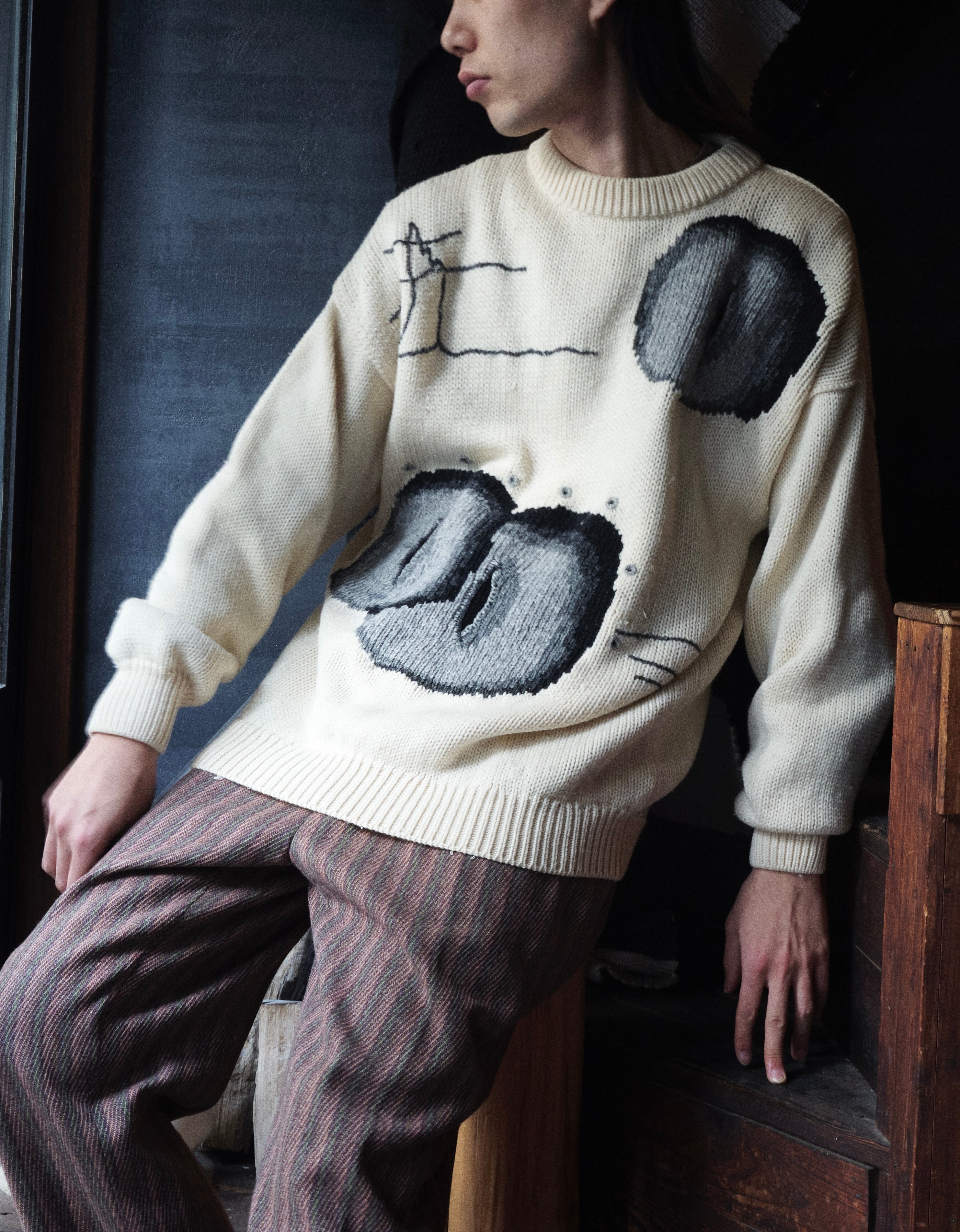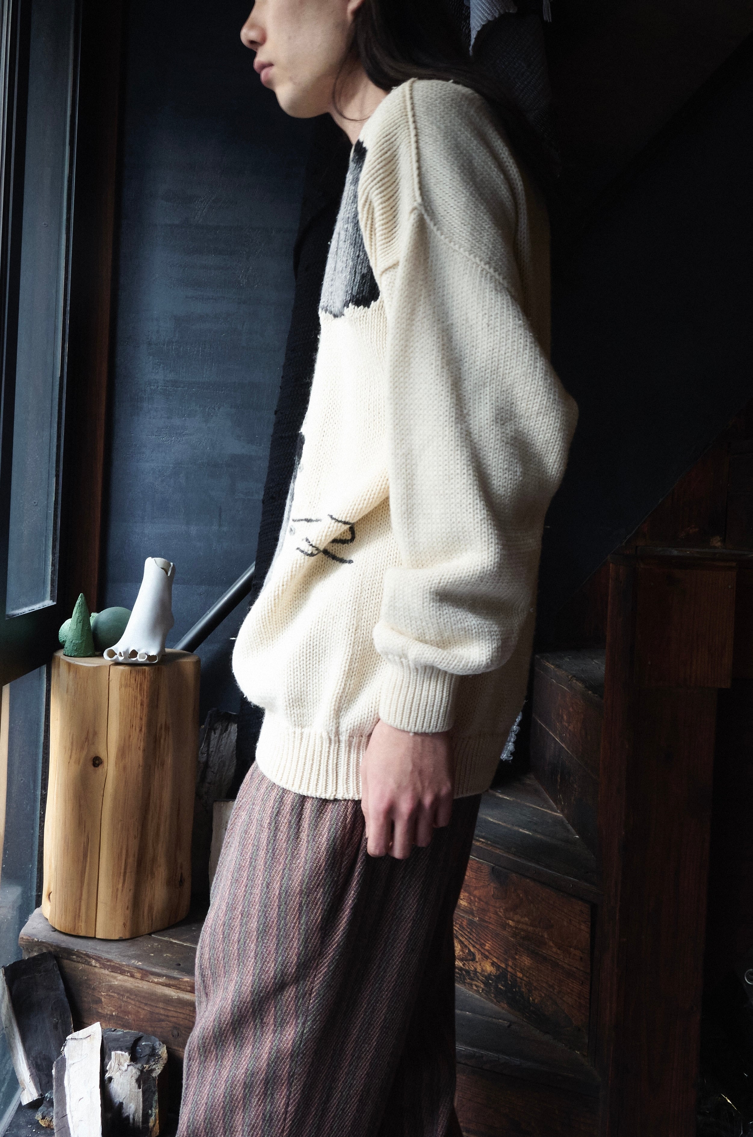 そんなブランドの服は素材に特化されているアイテムが多く、本国イタリアから派遣されましたこちらのニットはあまり見た事ないアートパターン。