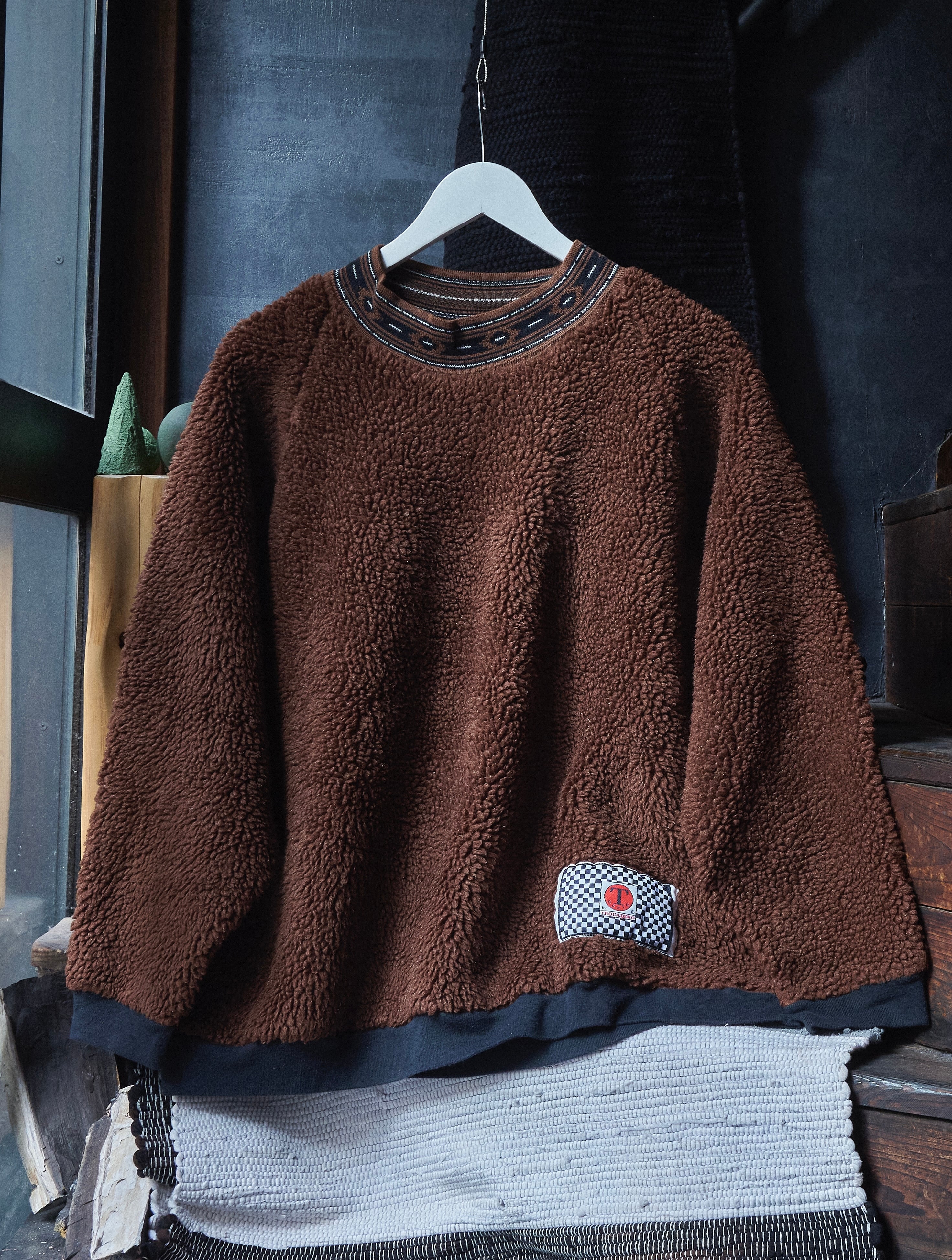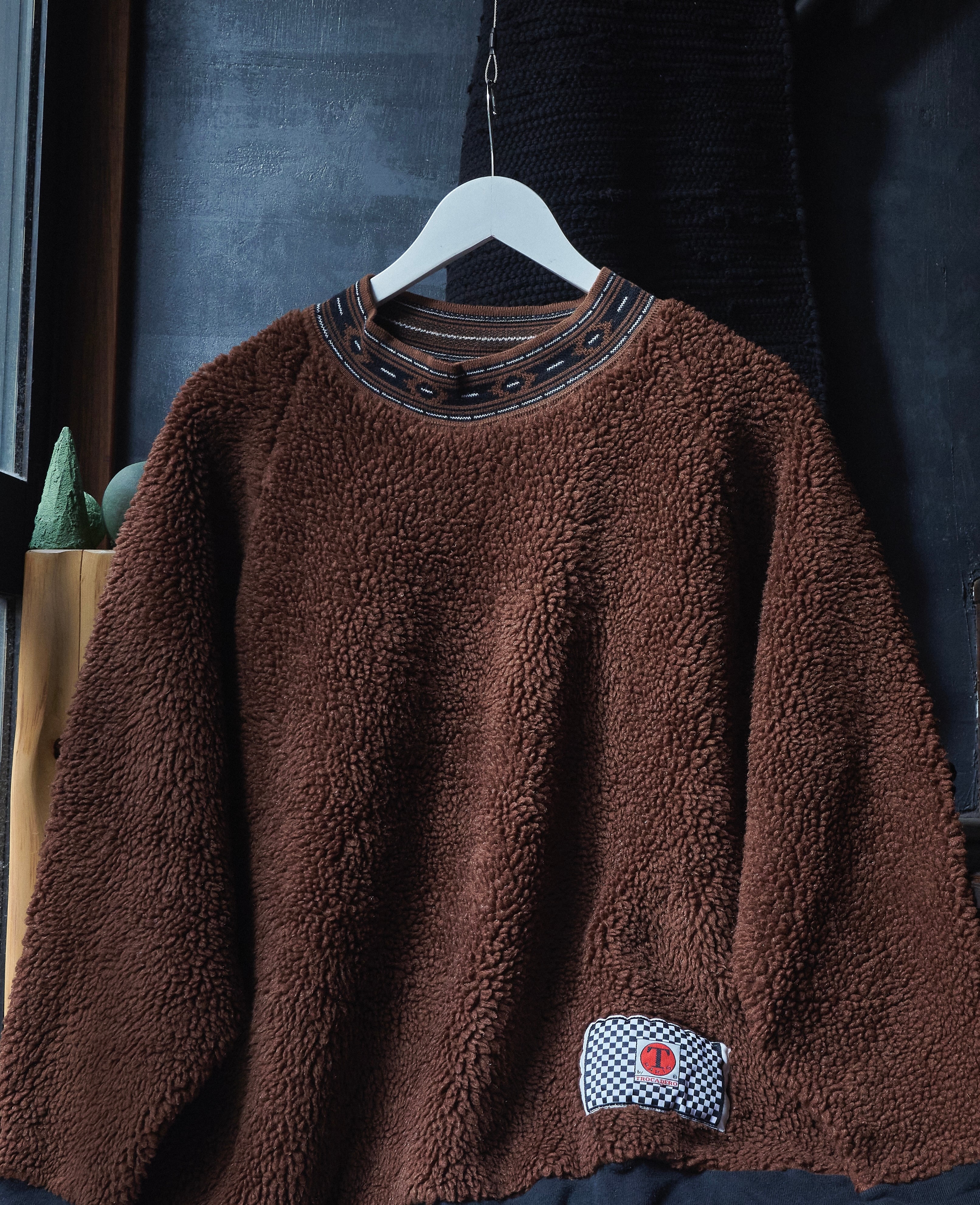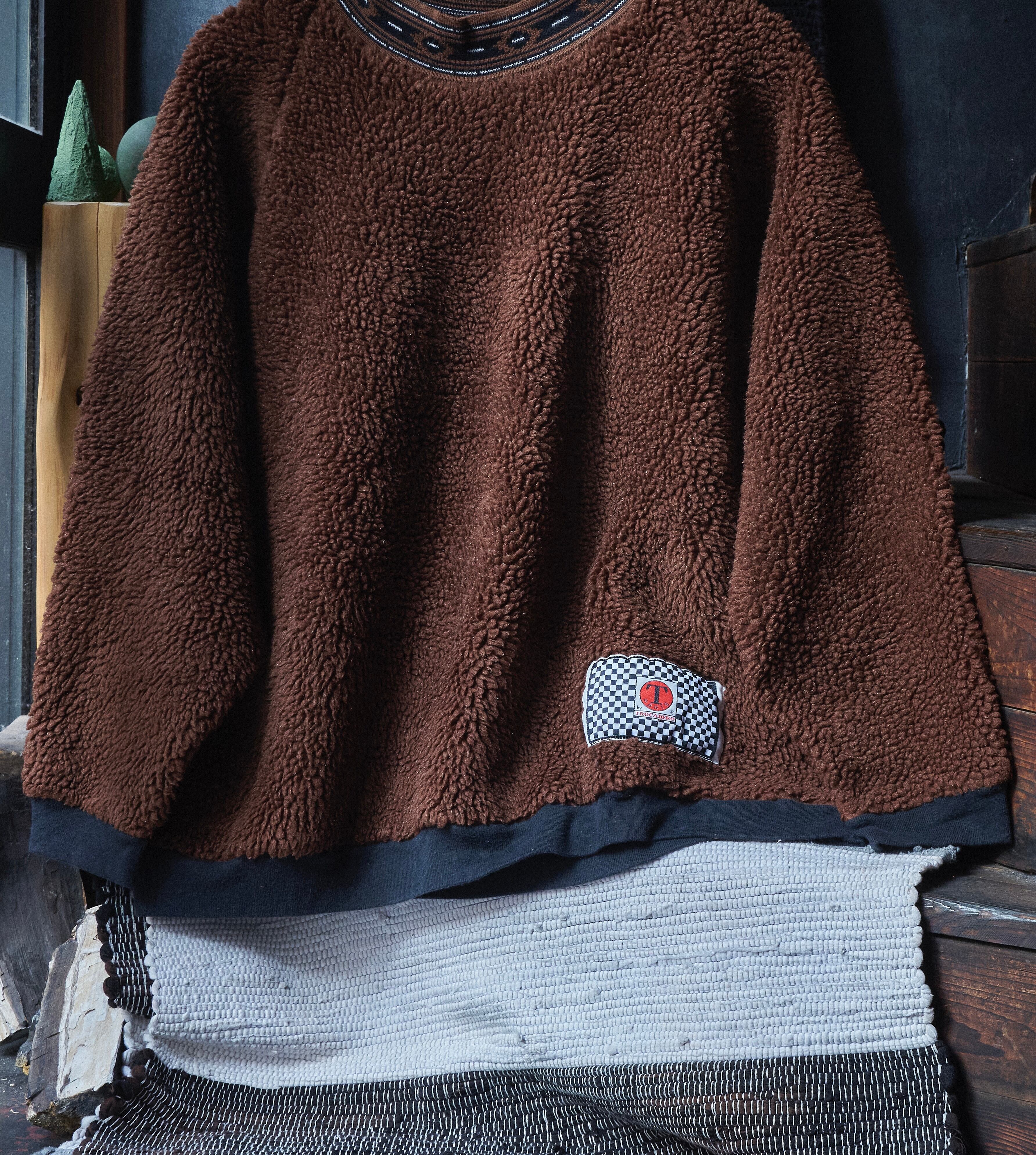 90s euro Fluffy crew neck brown fleece