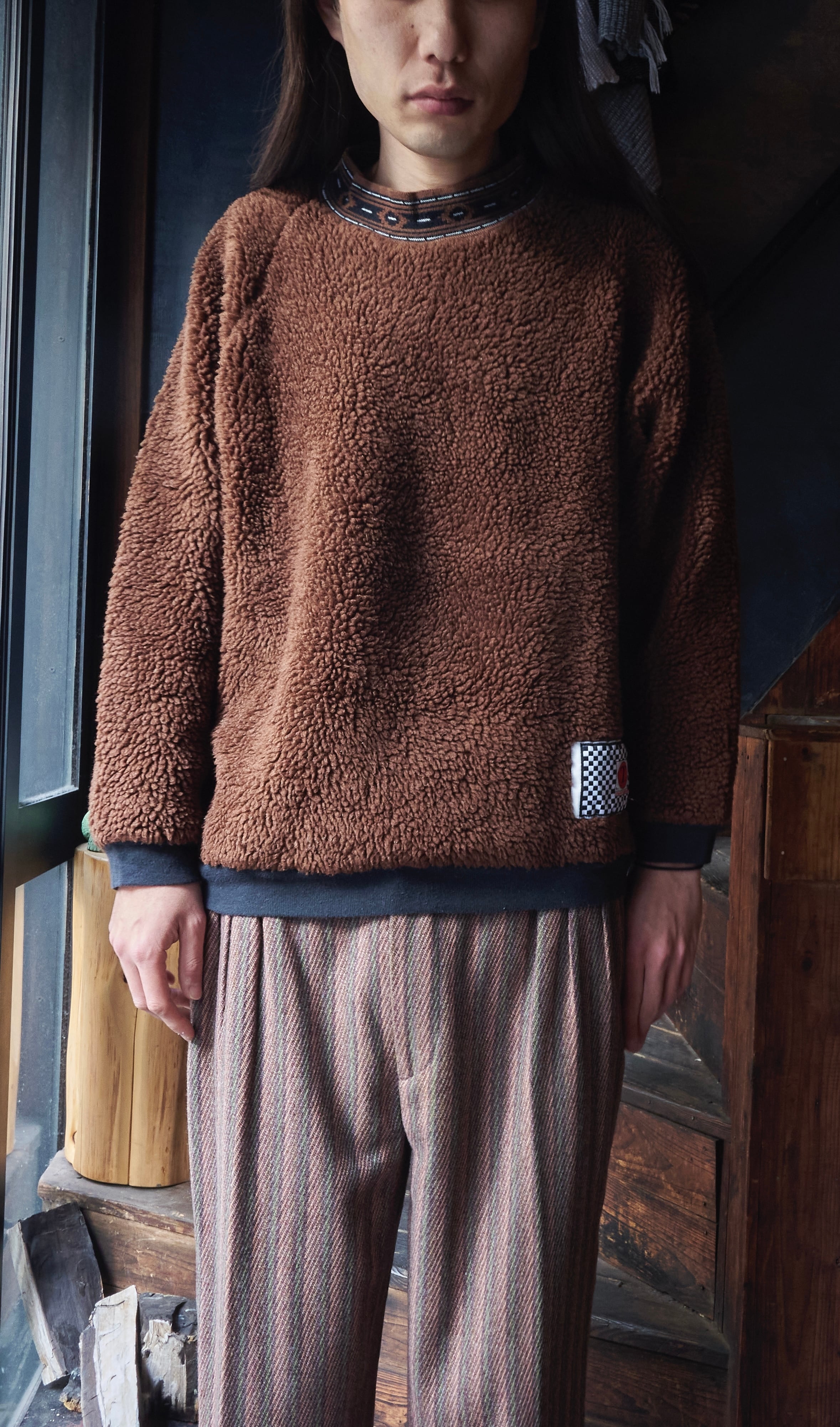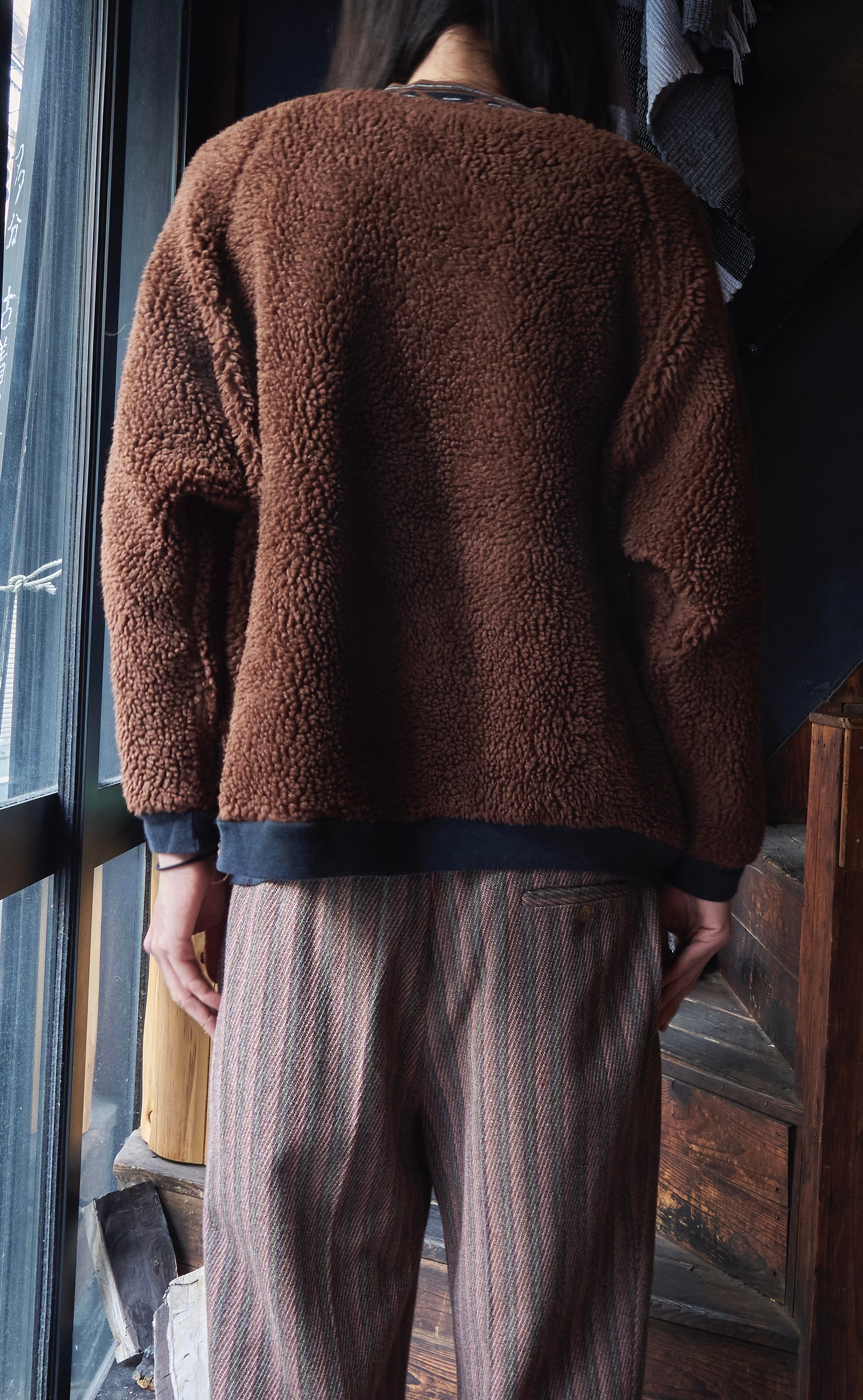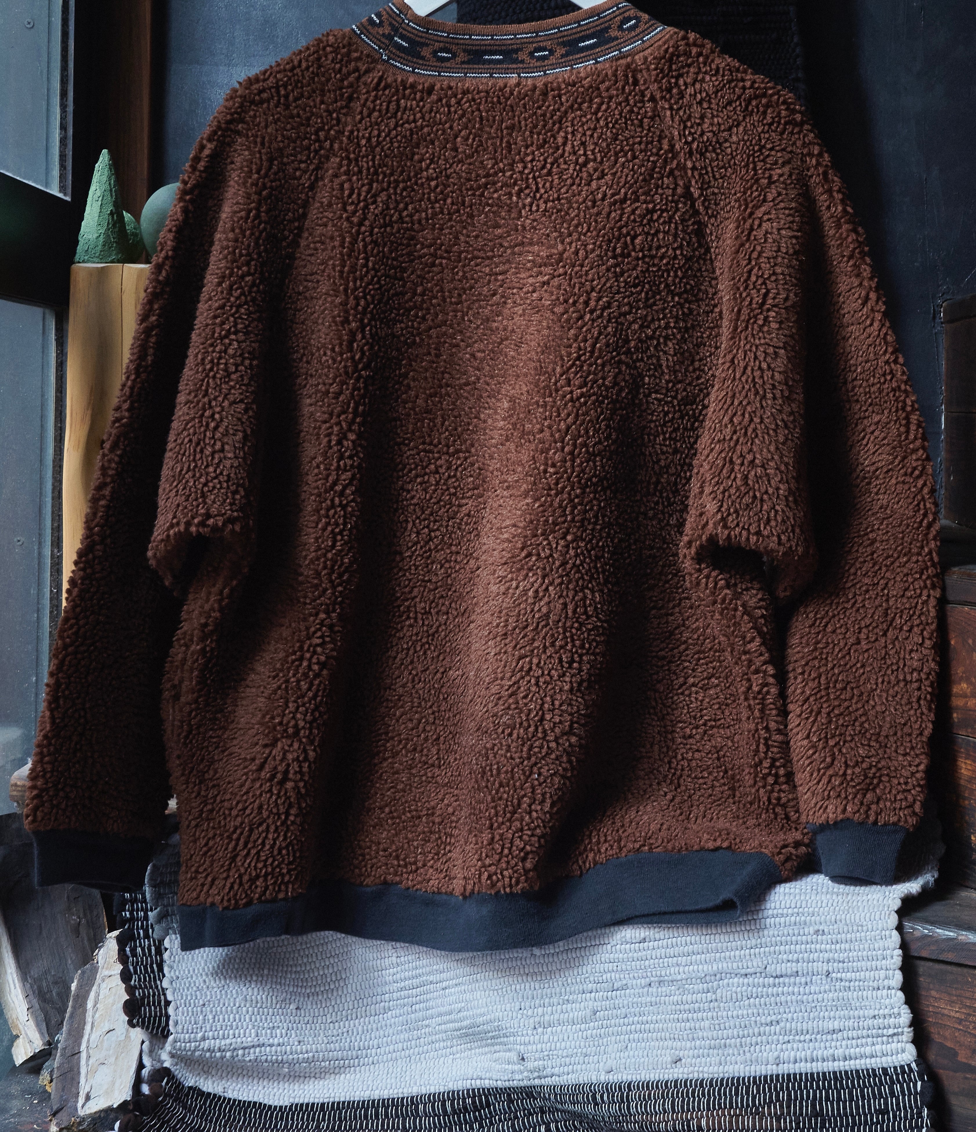 90s euro Fluffy crew neck brown fleece