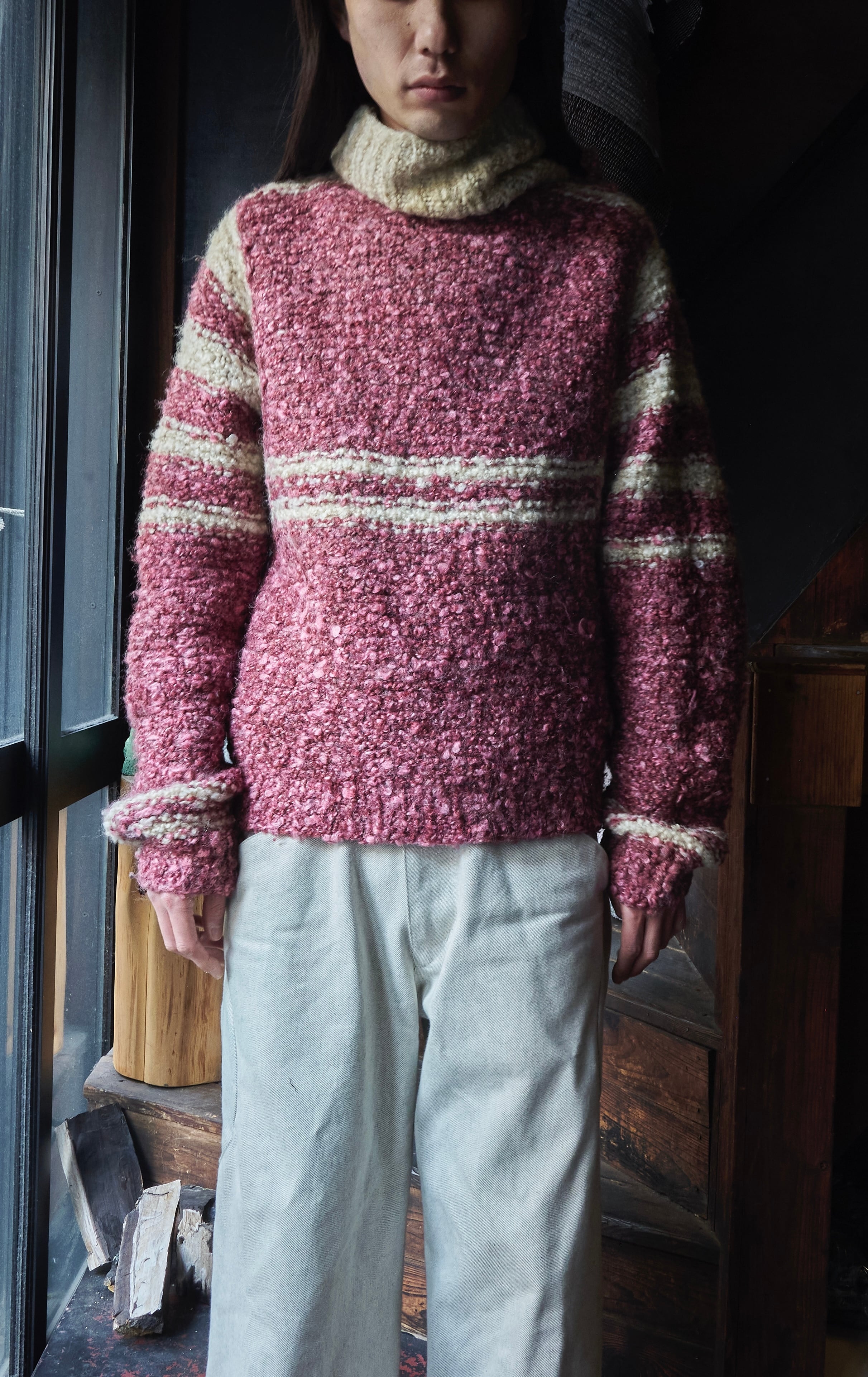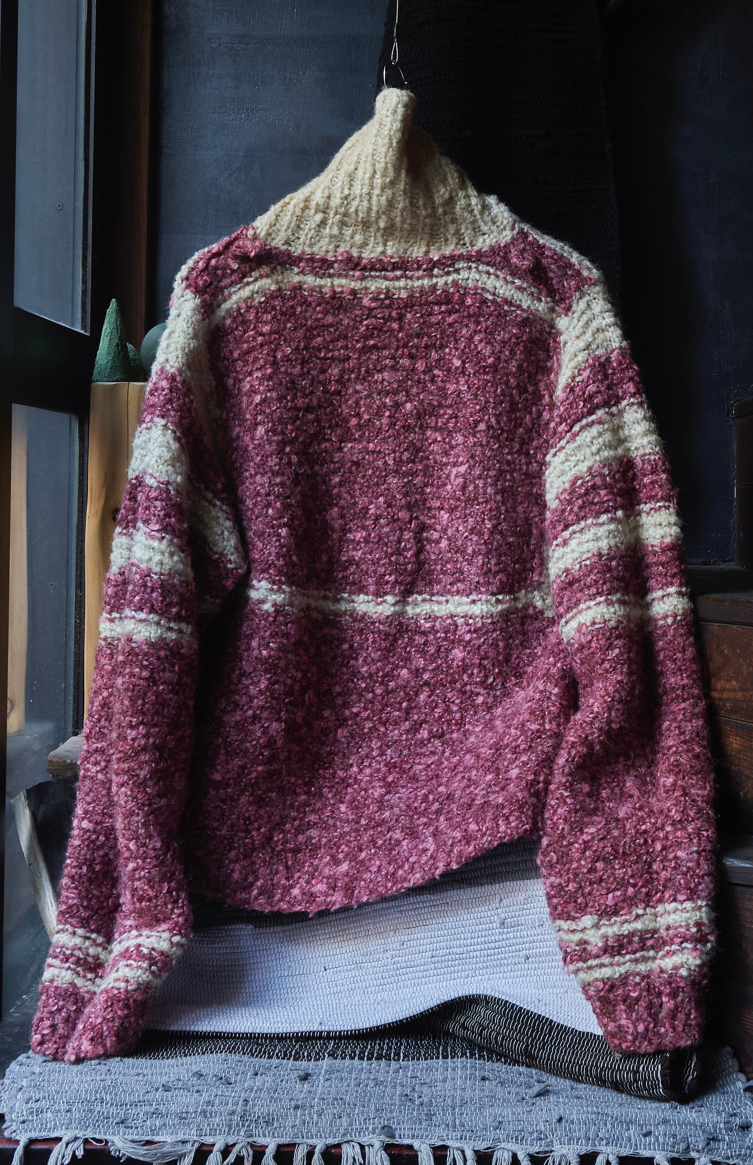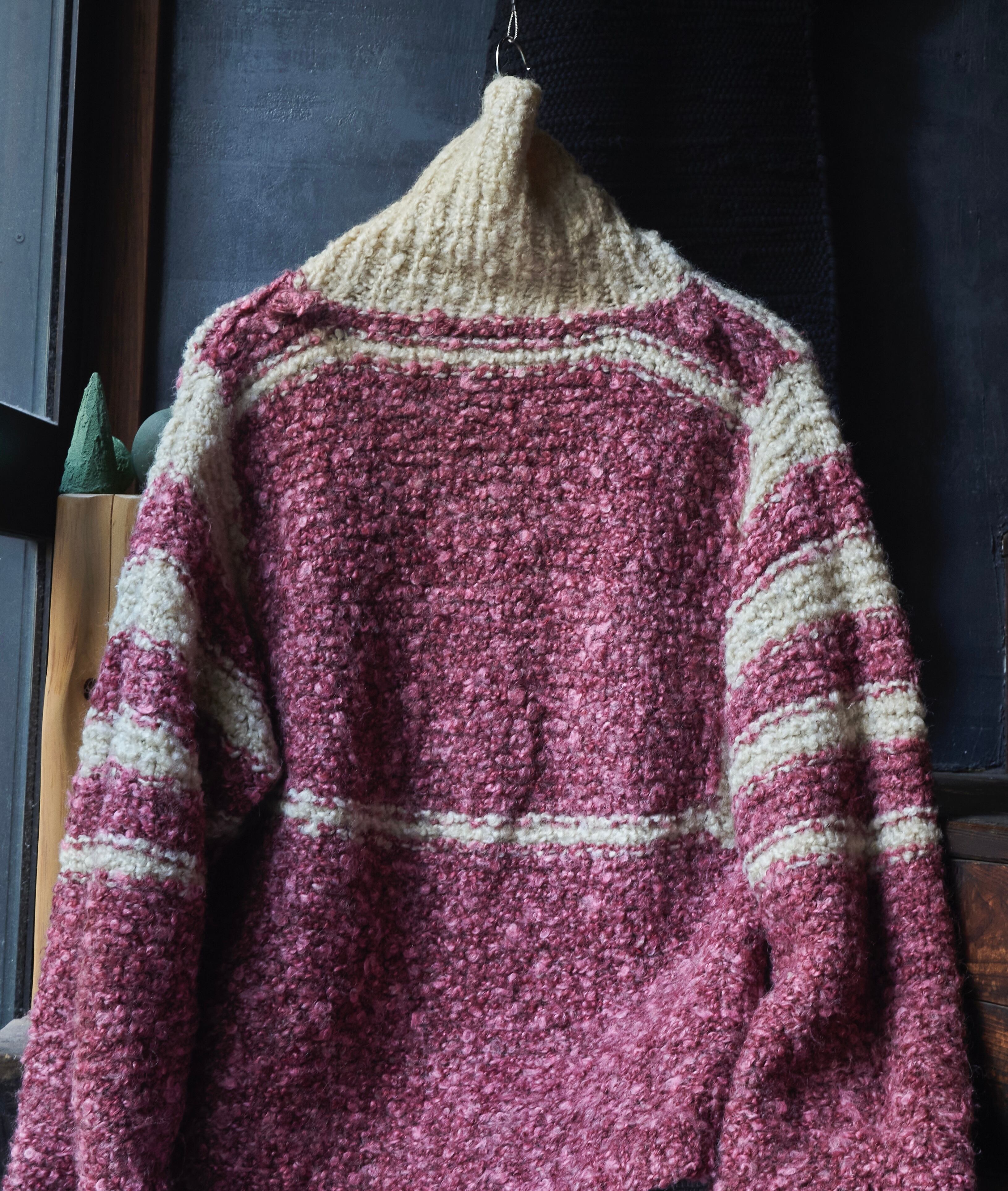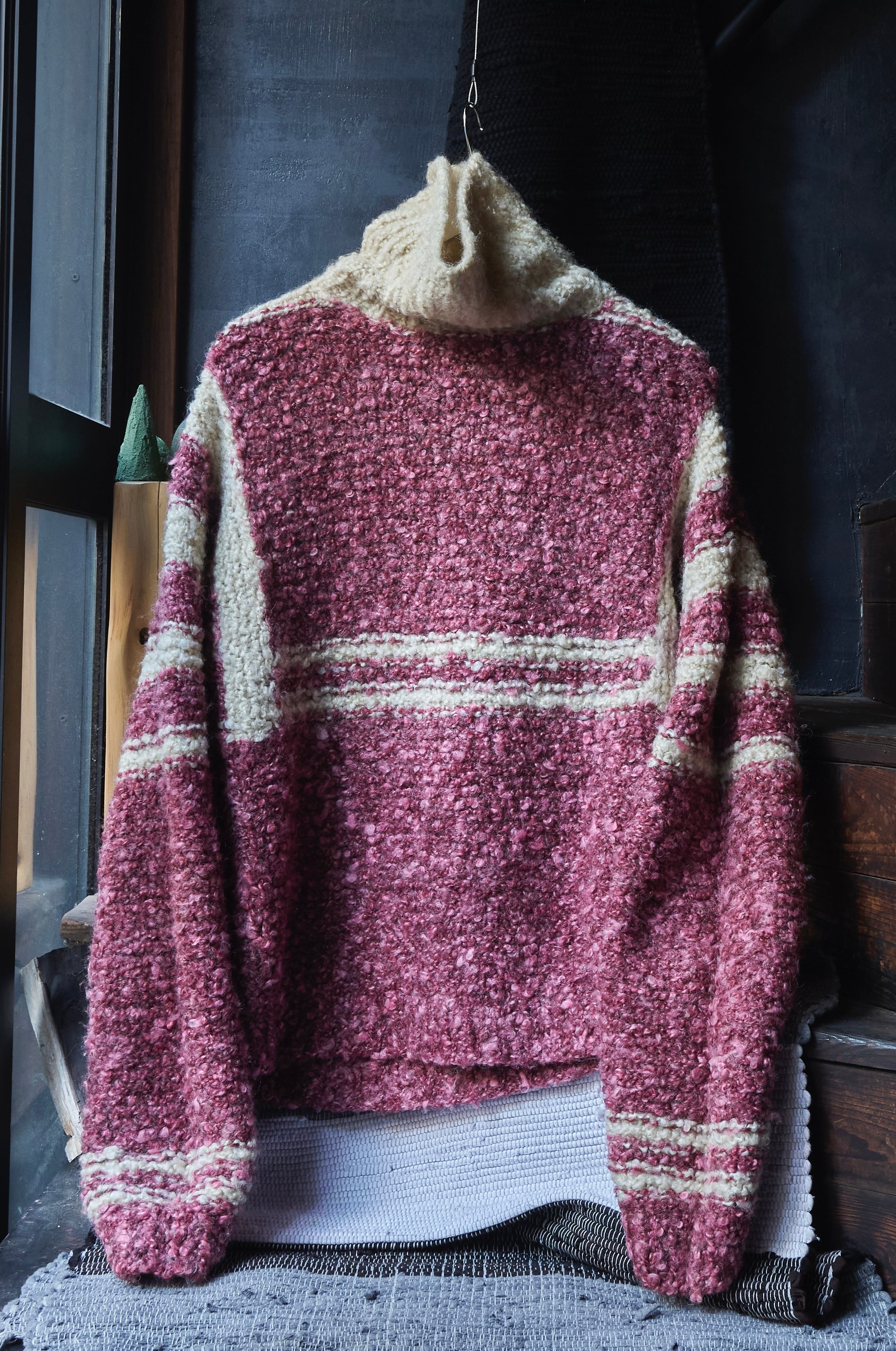 80s euro Raspberry × cream colored high-neck voluminous knit