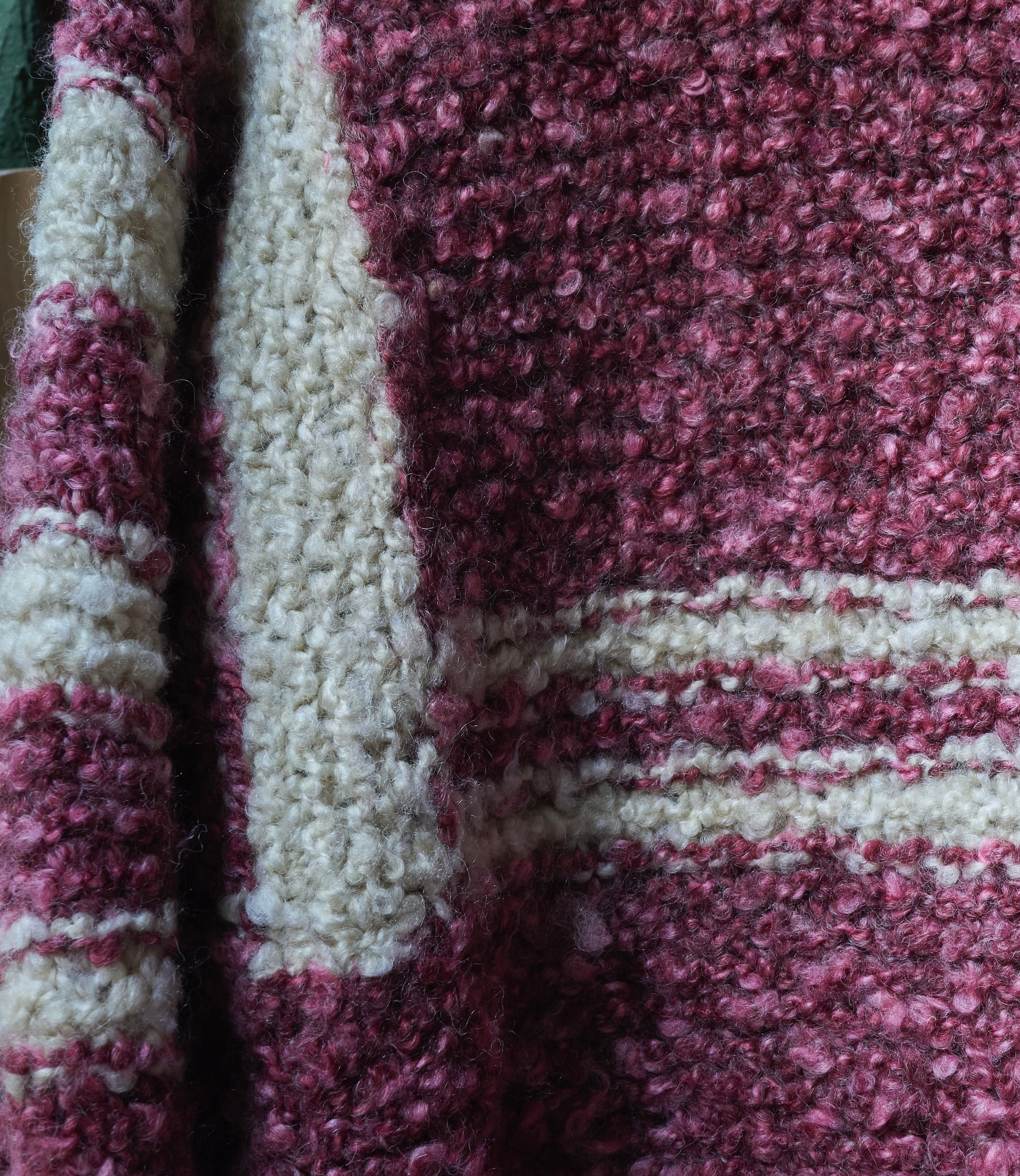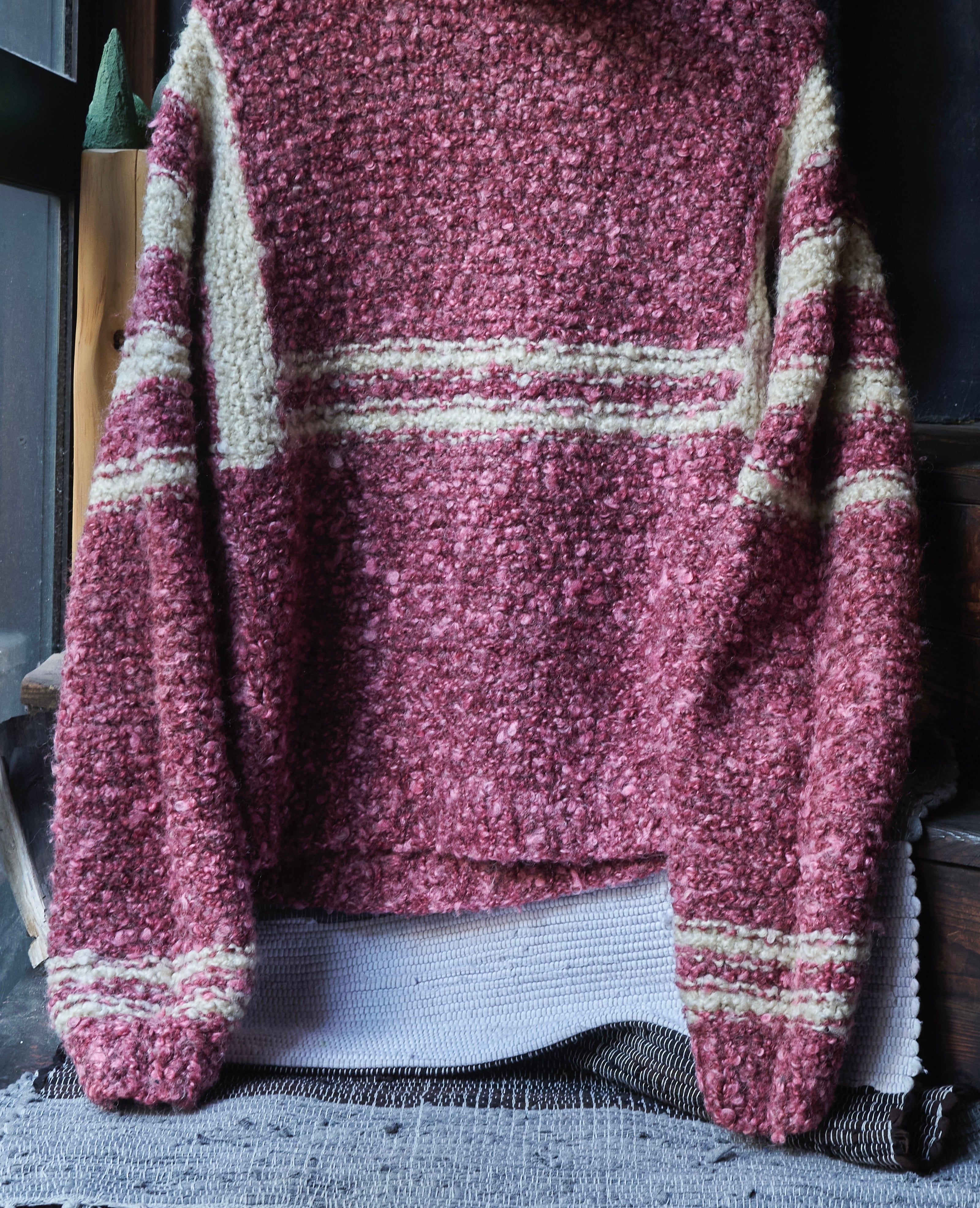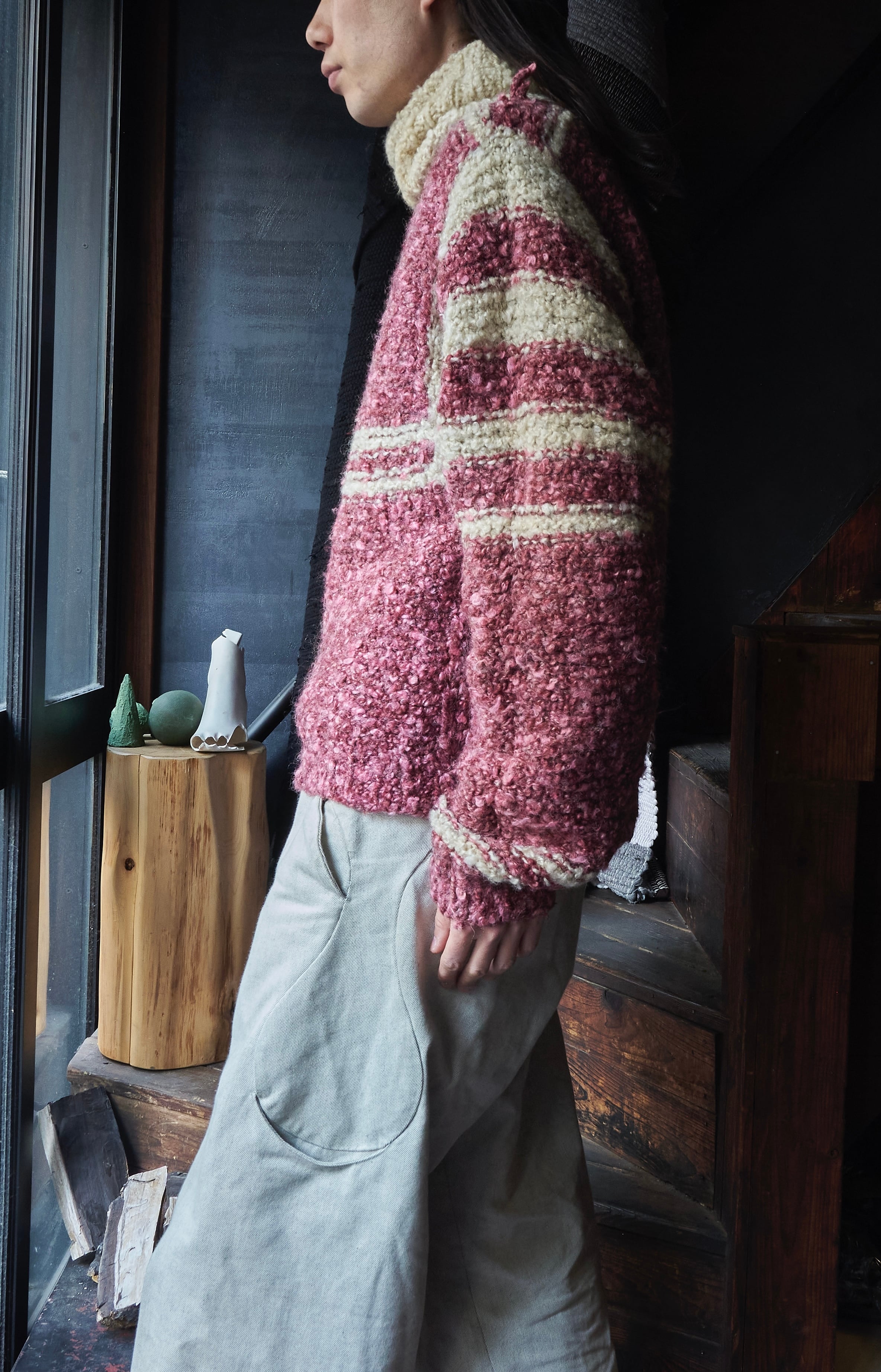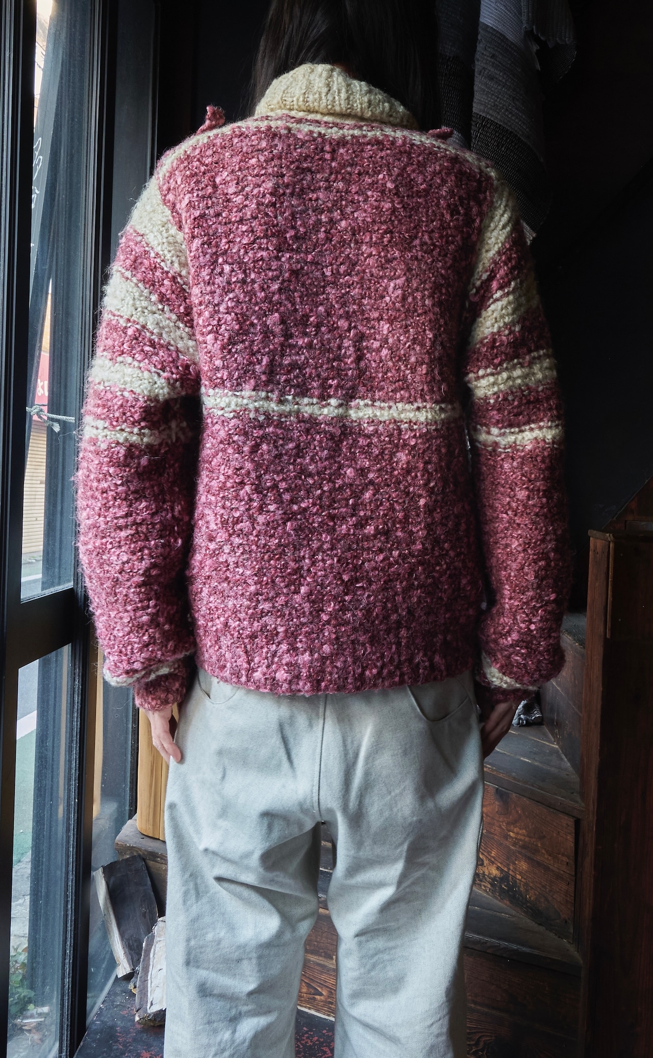 80s euro Raspberry × cream colored high-neck voluminous knit