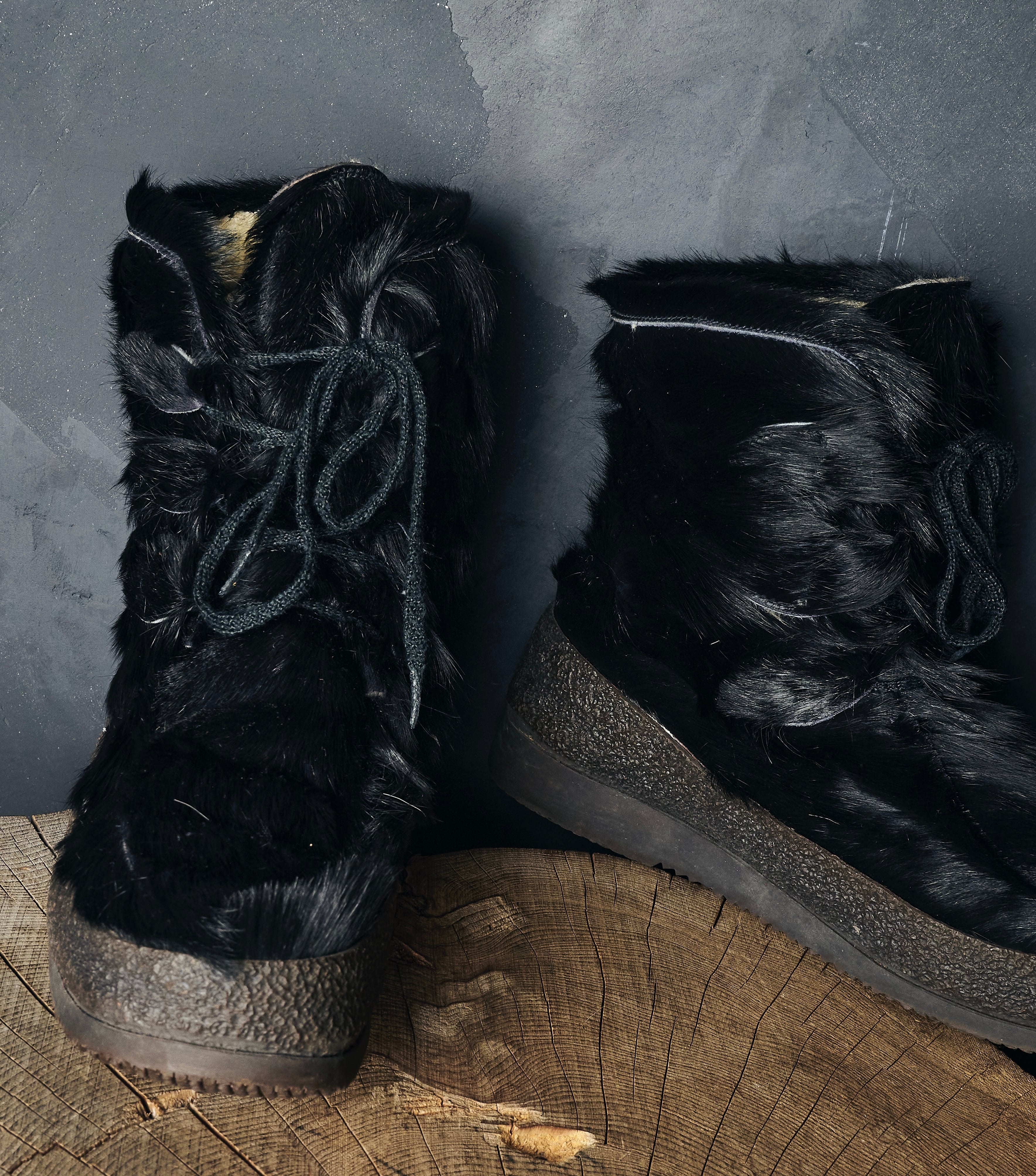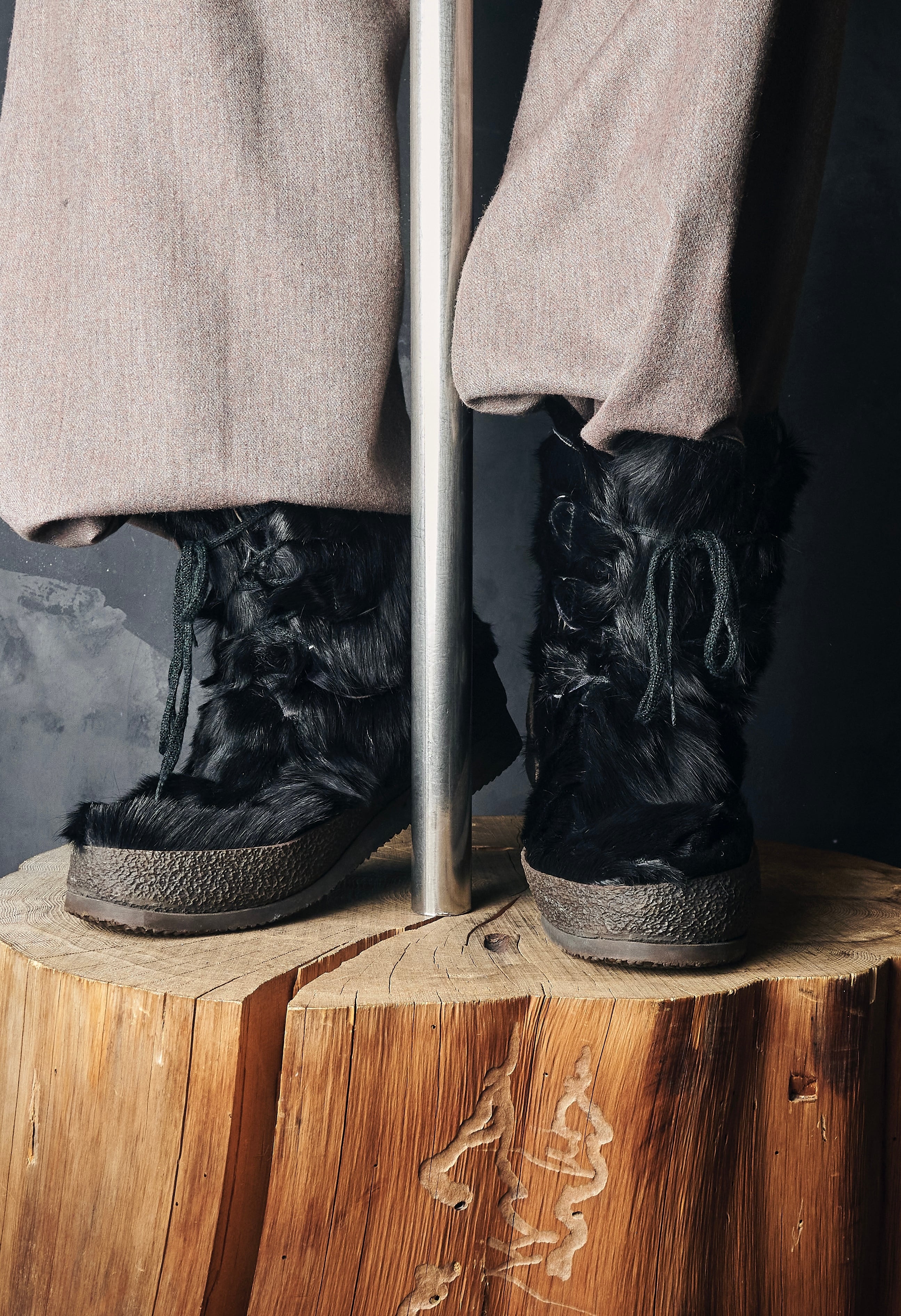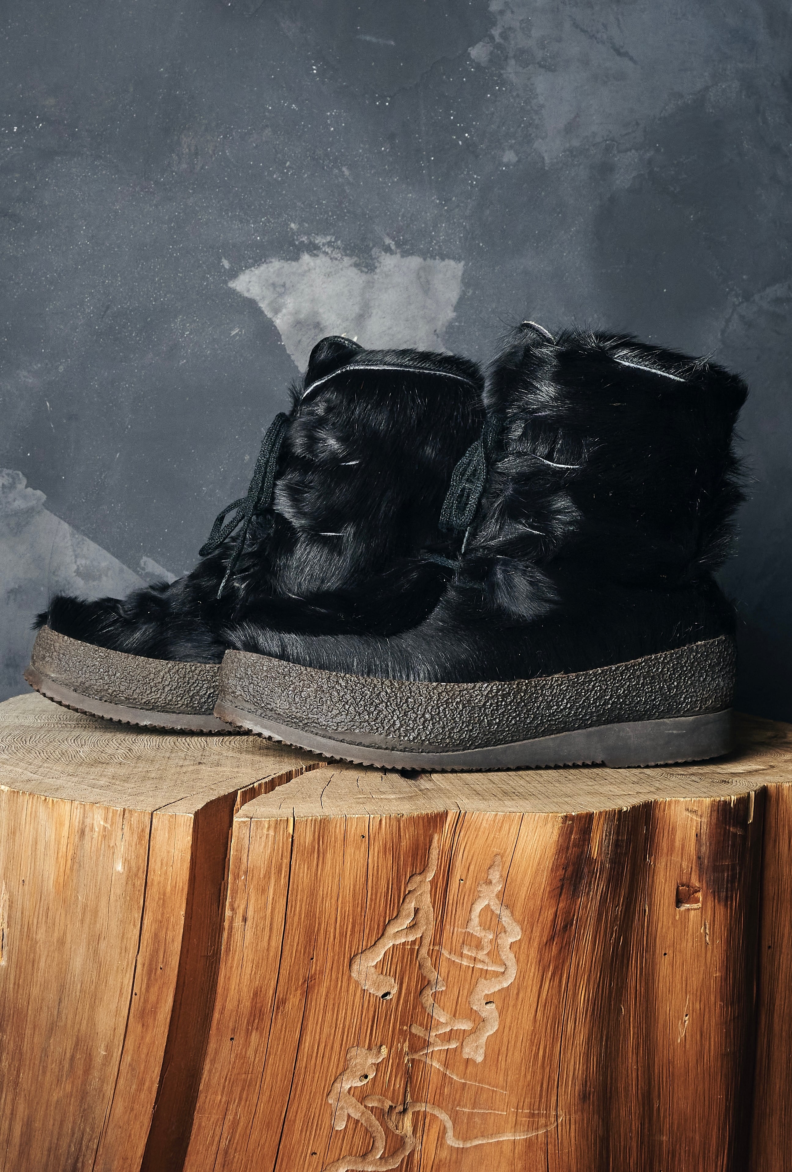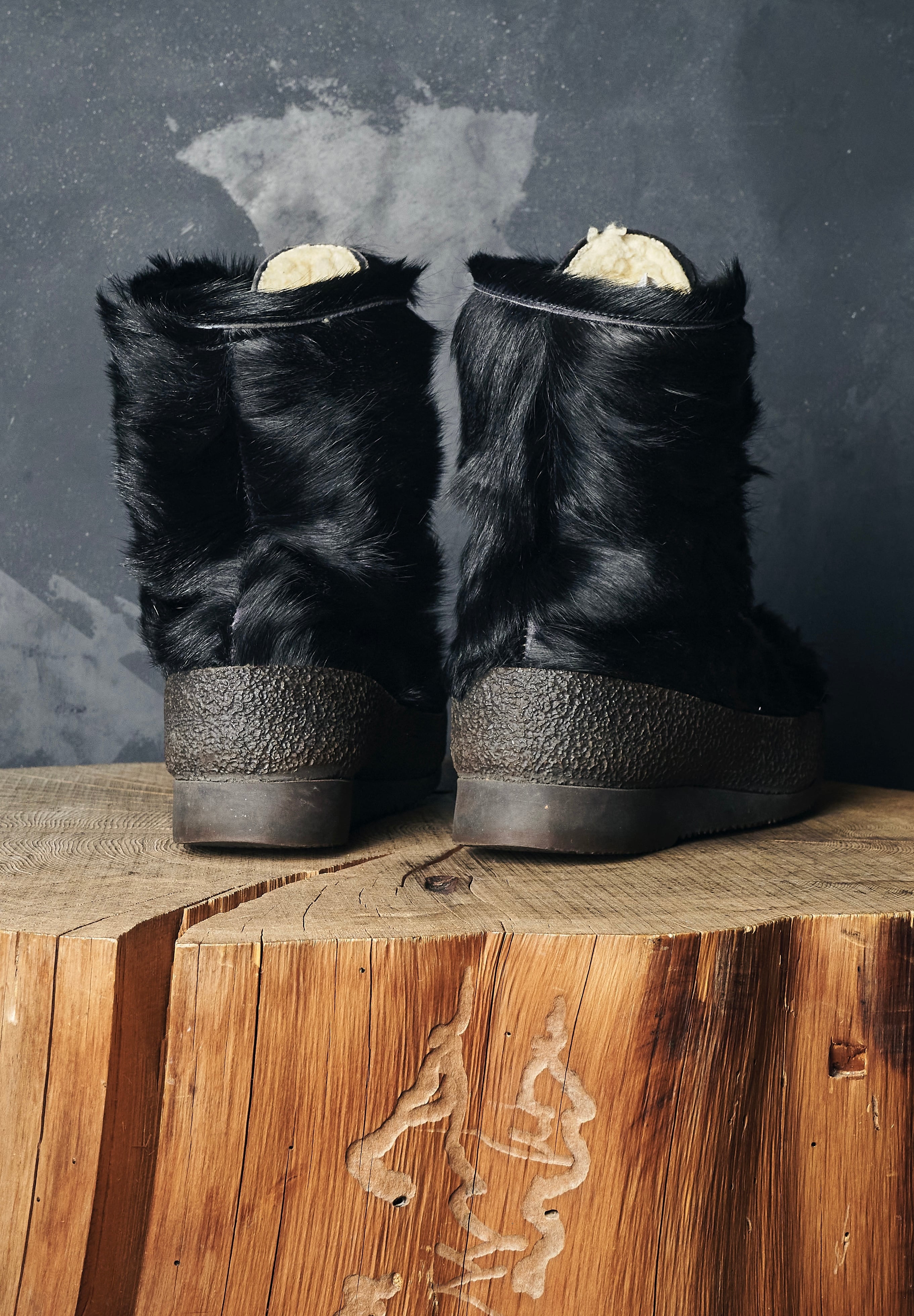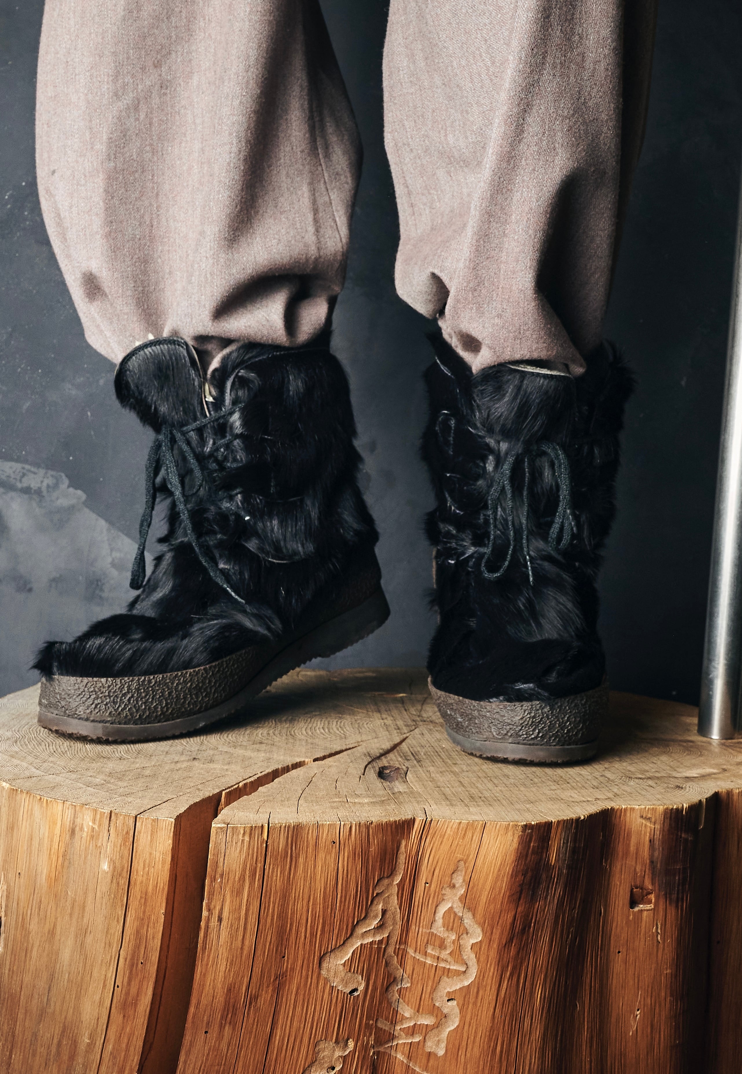 80s euro Real seal leather fur lace up Black Eskimo boots
