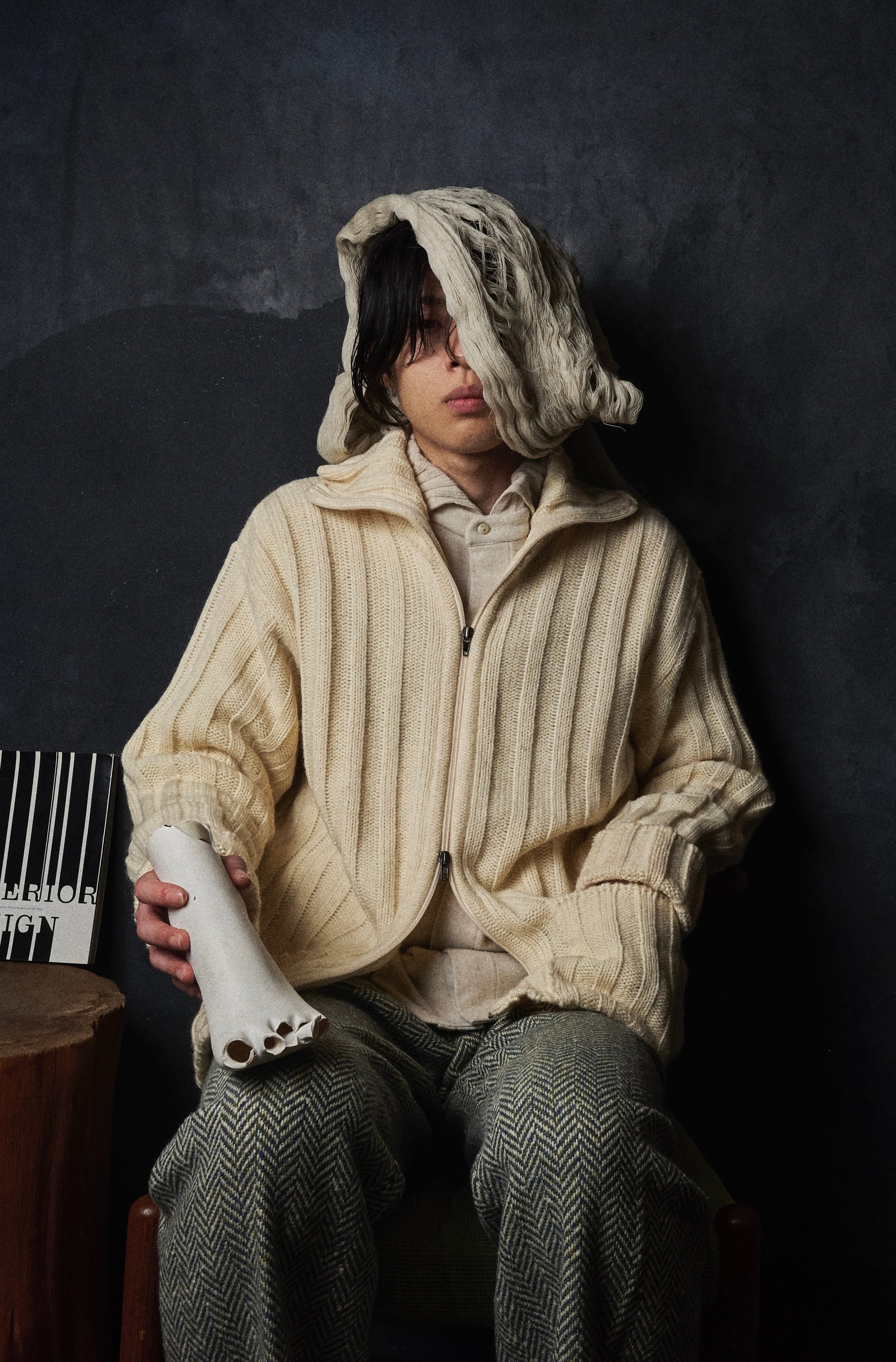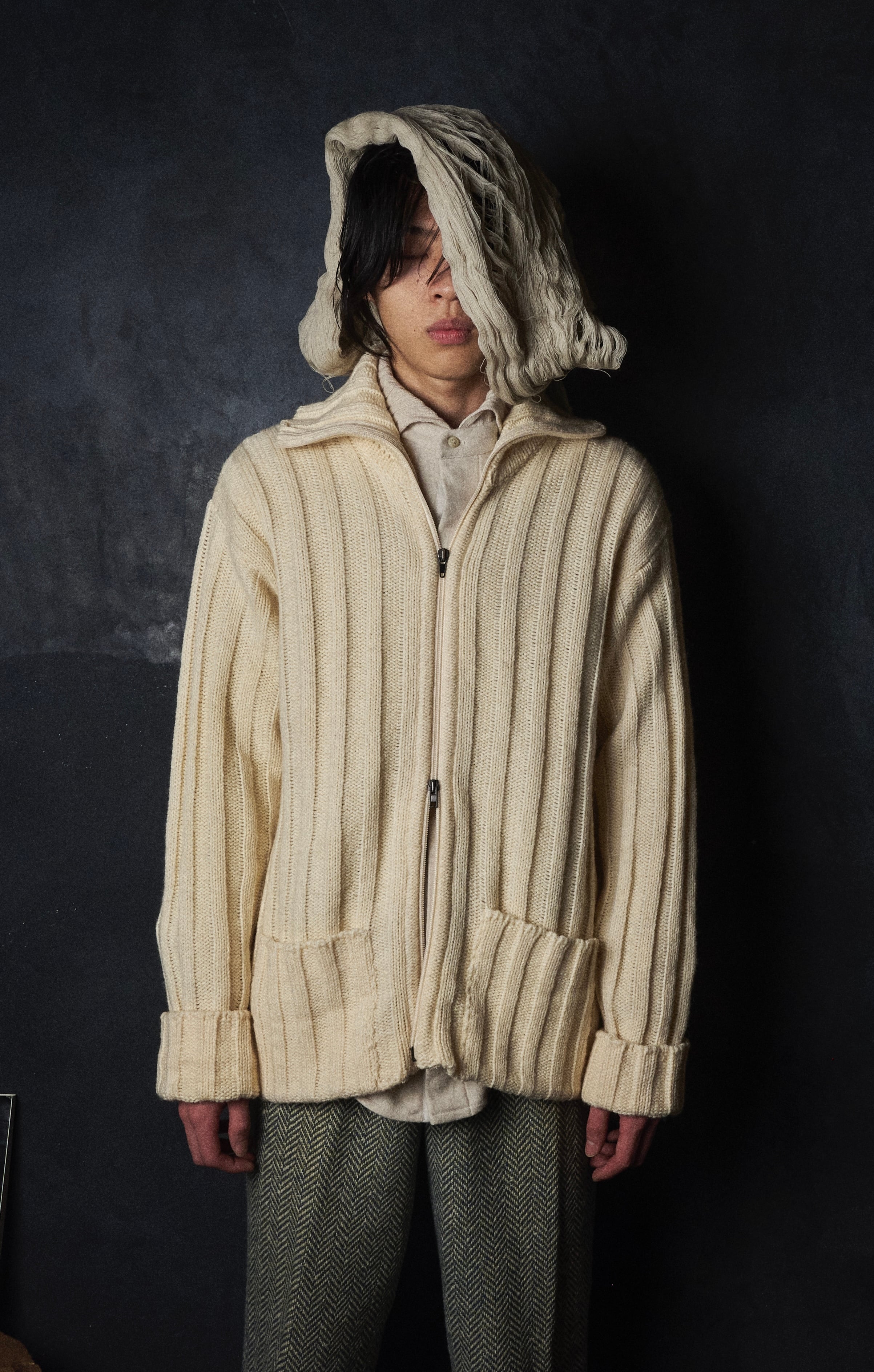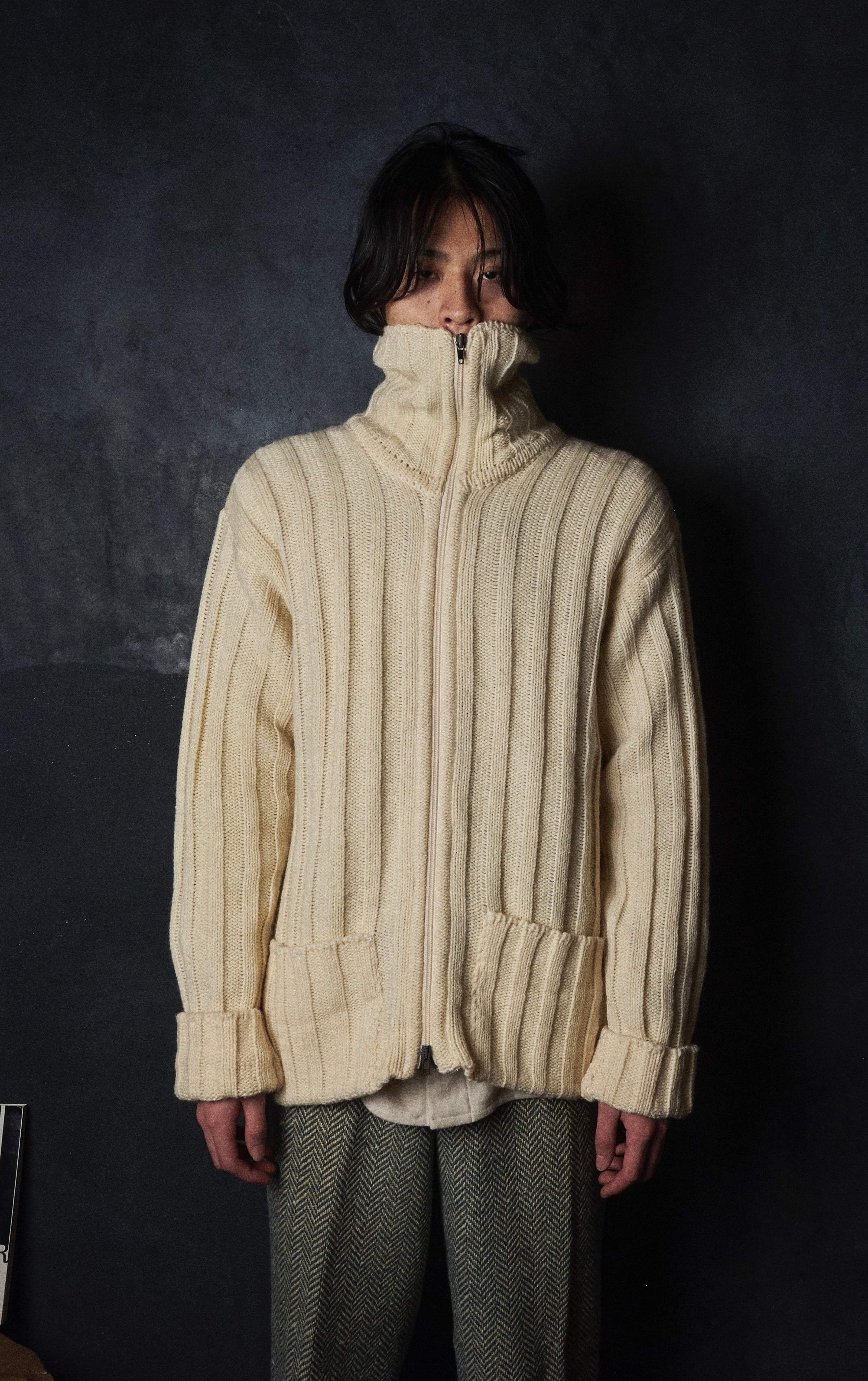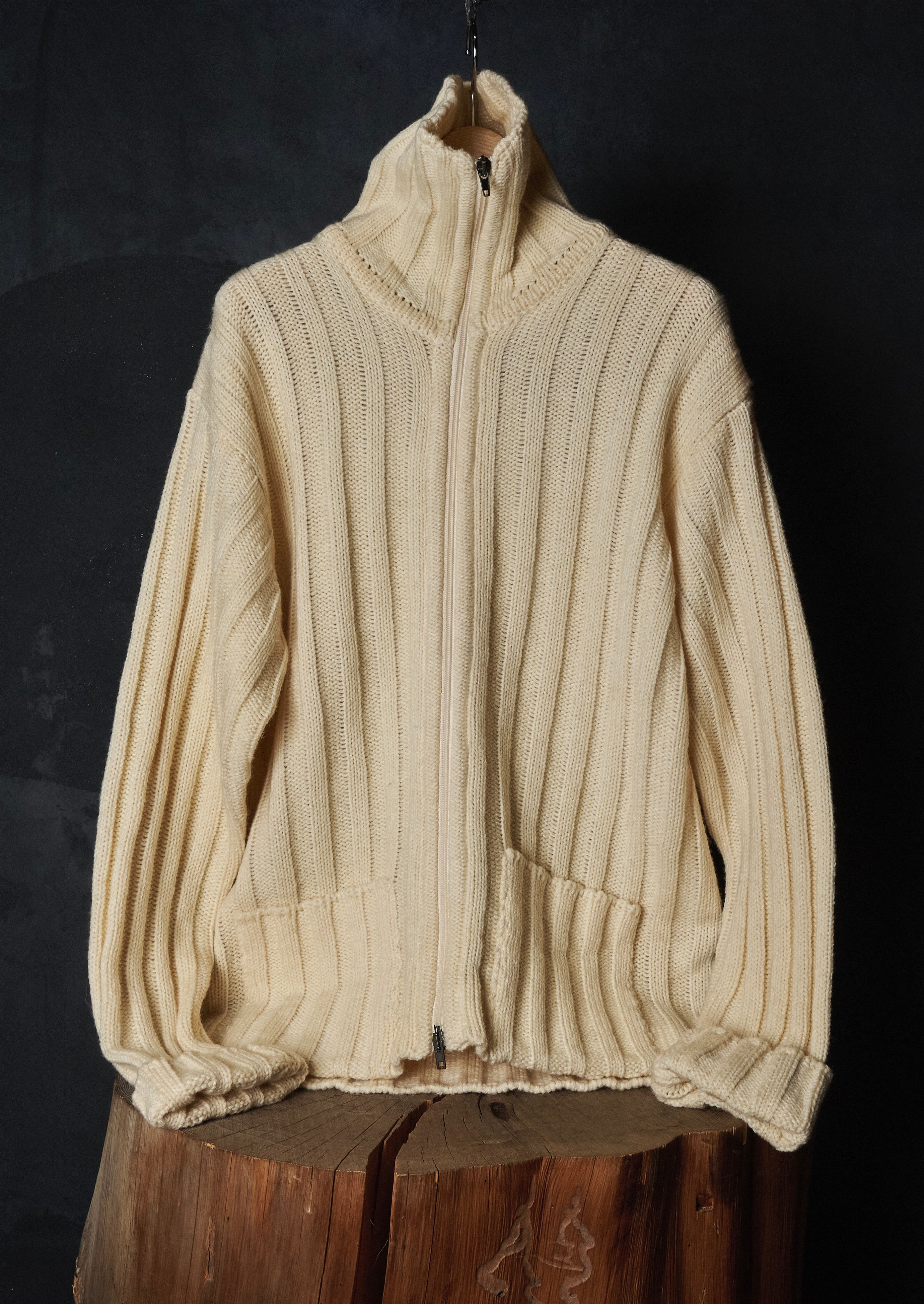2000s WALTER VAN BEIRENDONCK W.&L.T. Volume neck double zip driver's pattern knit