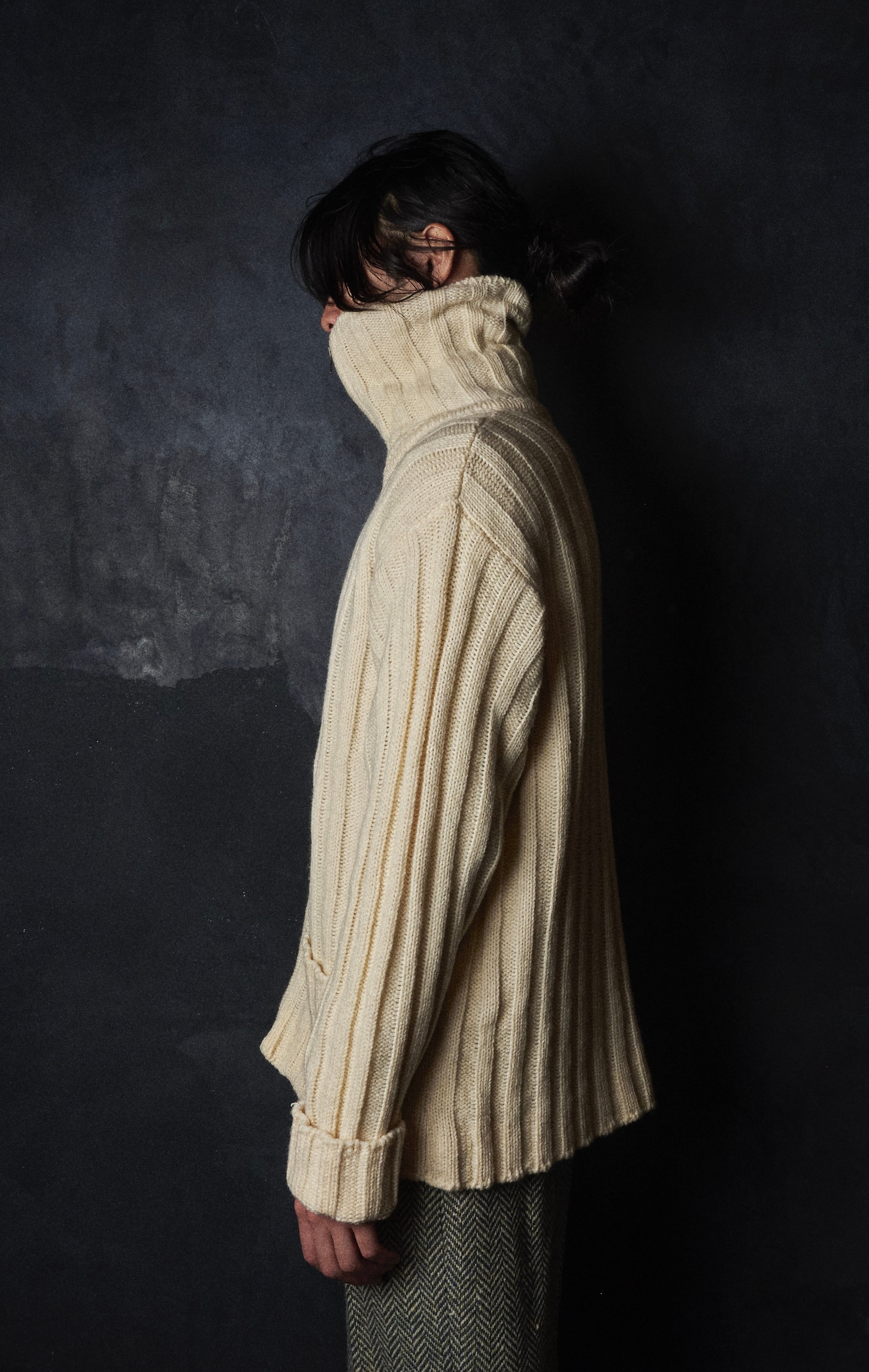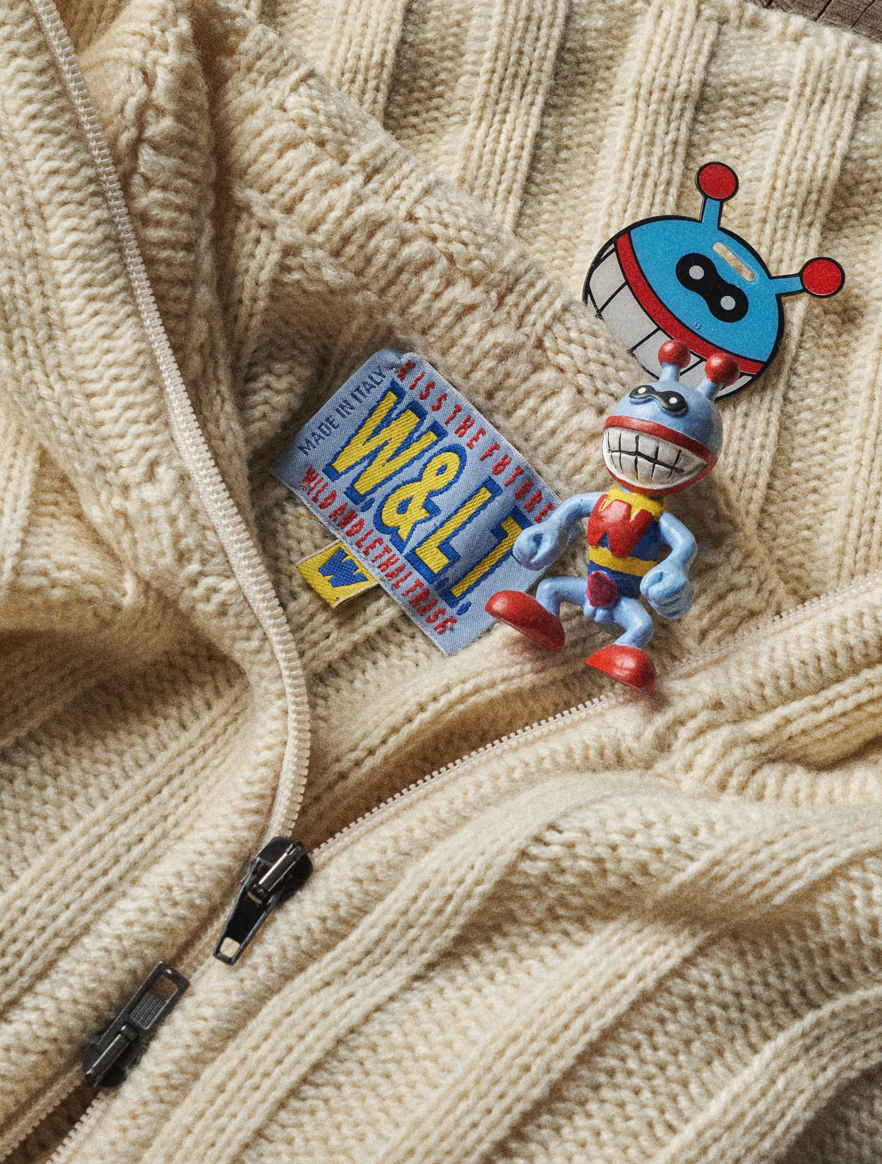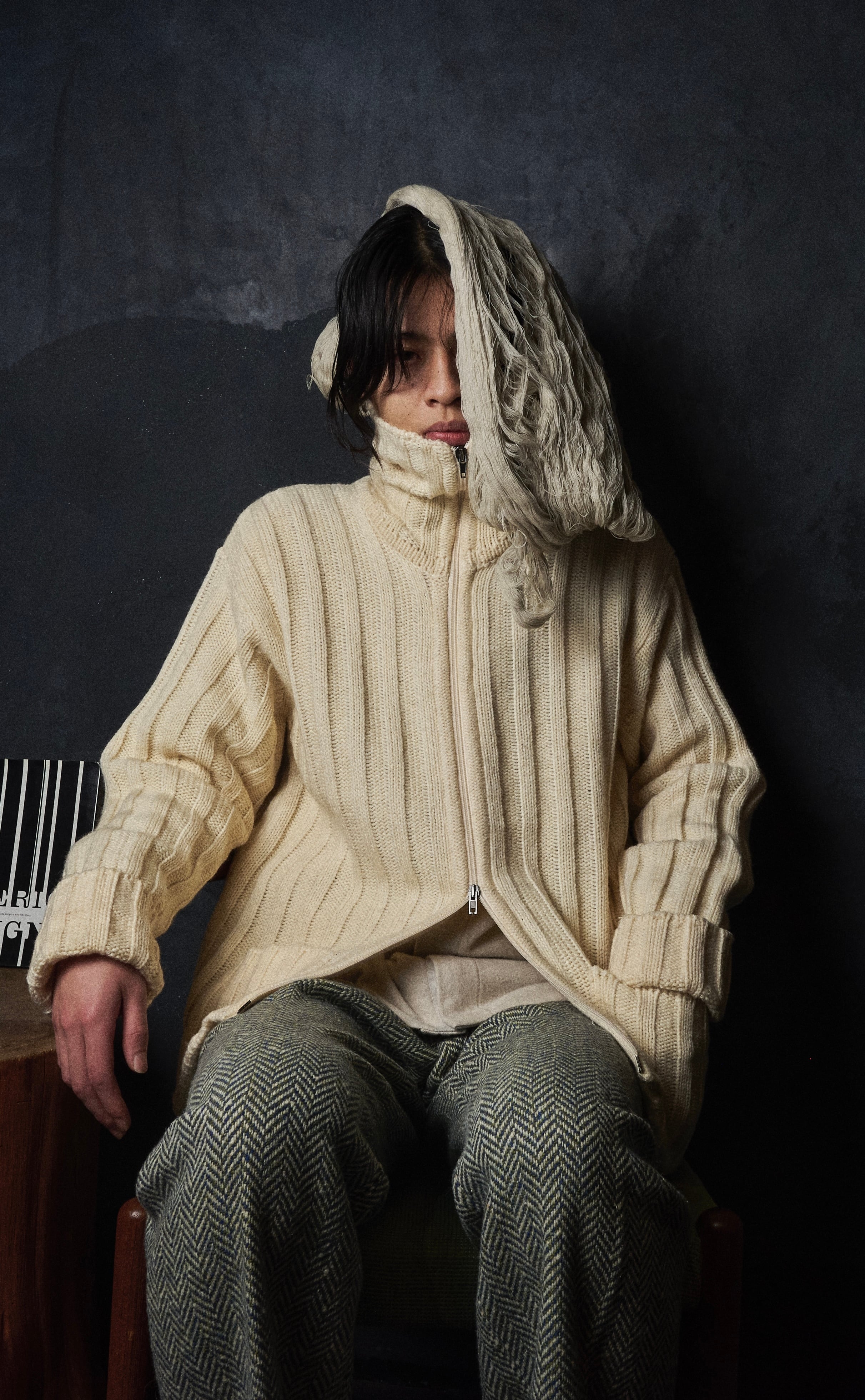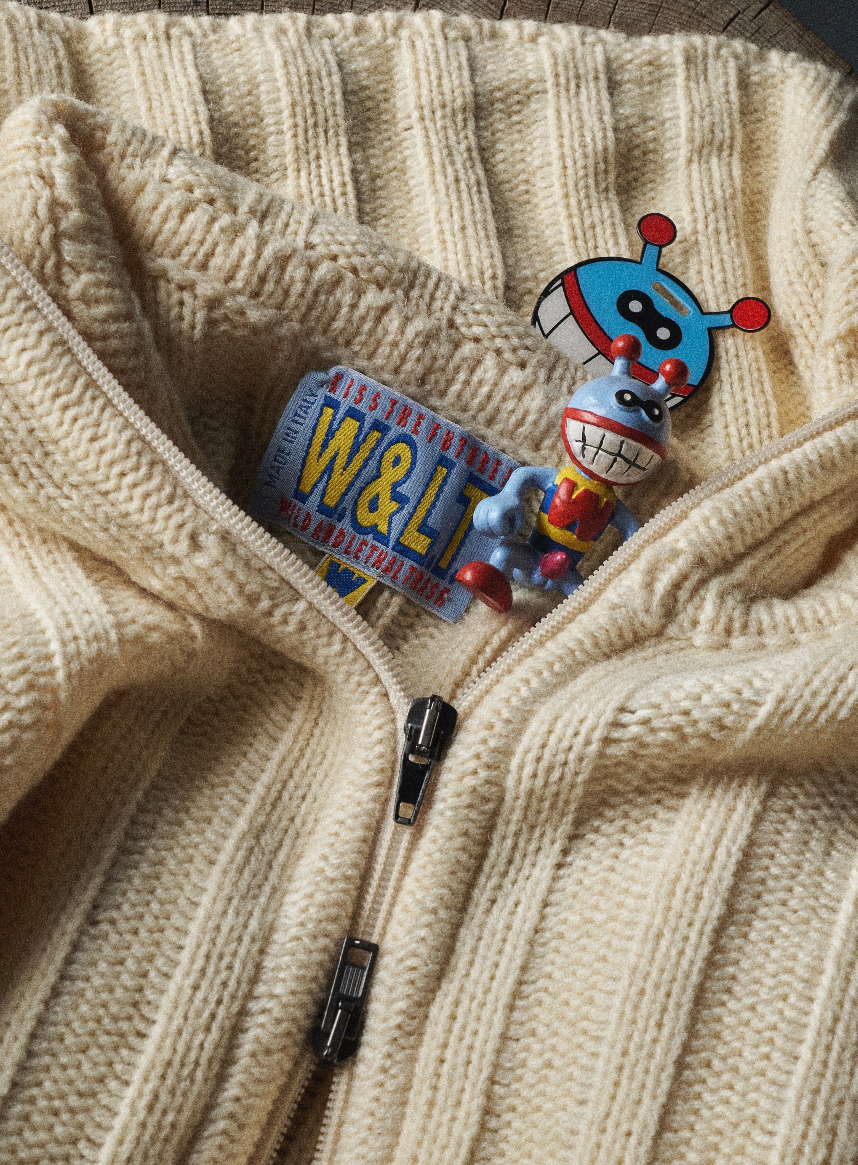 2000s WALTER VAN BEIRENDONCK W.&L.T. Volume neck double zip driver's pattern knit