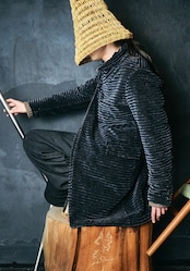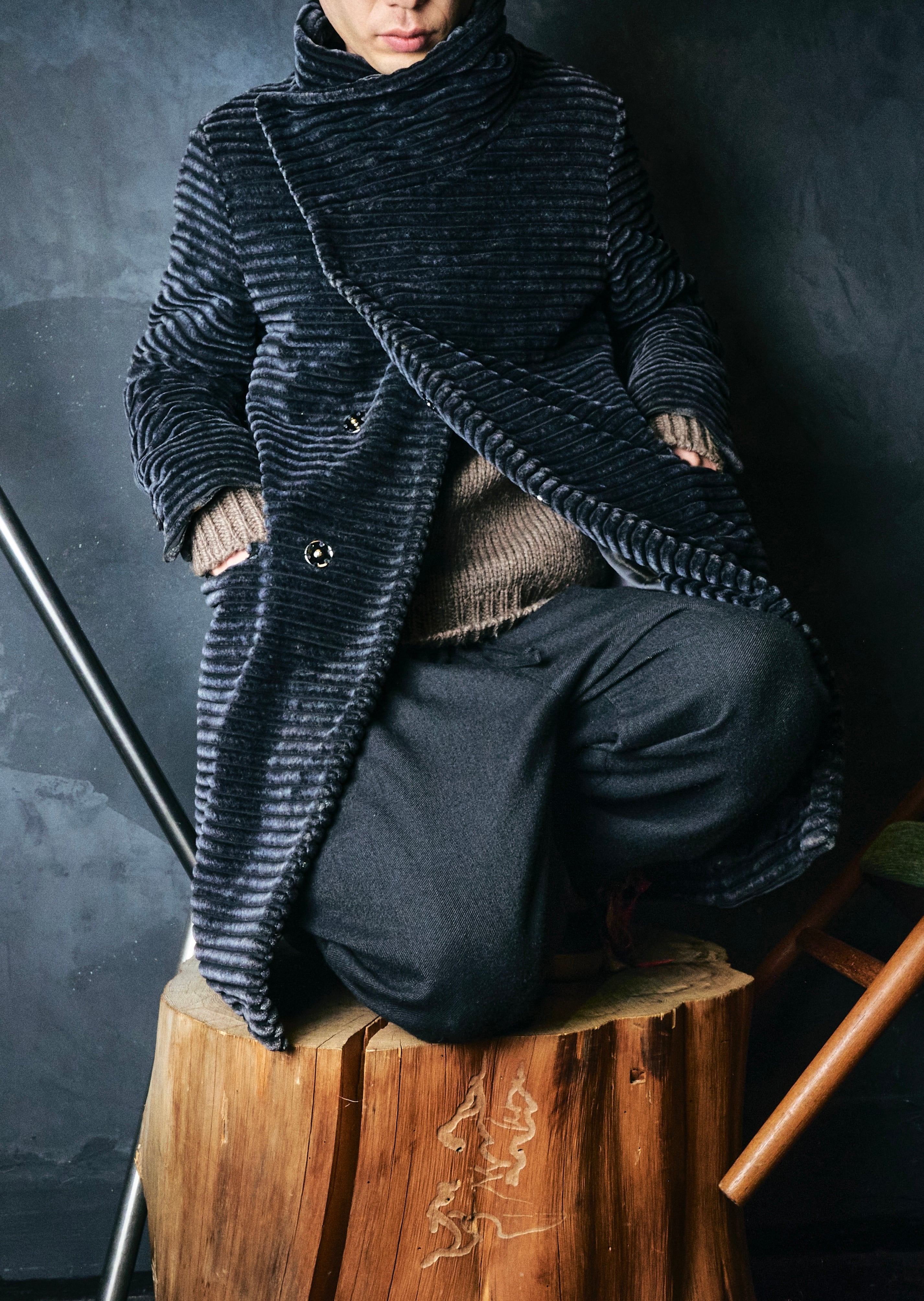 GIORGIO ARMANI 2012〜2013 AW Runway Piece Big glossy corduroy Deformed pattern coat
