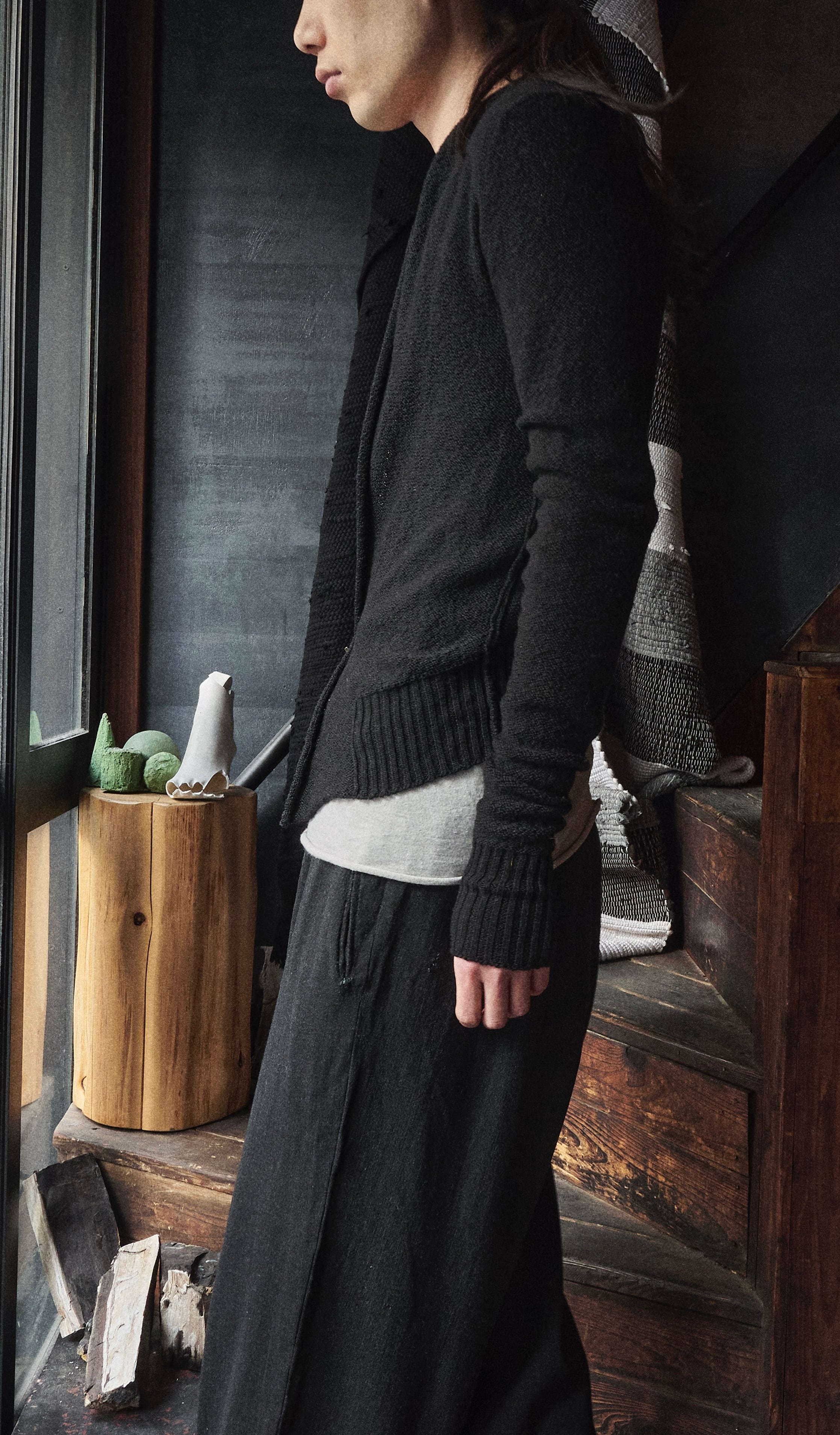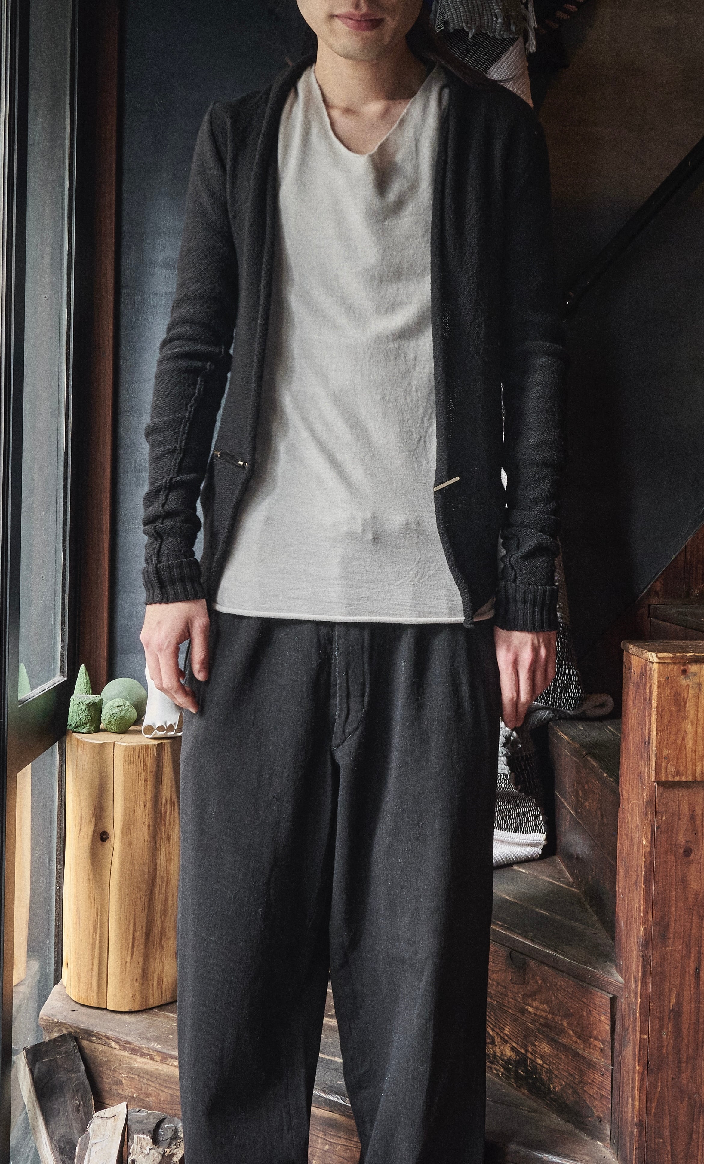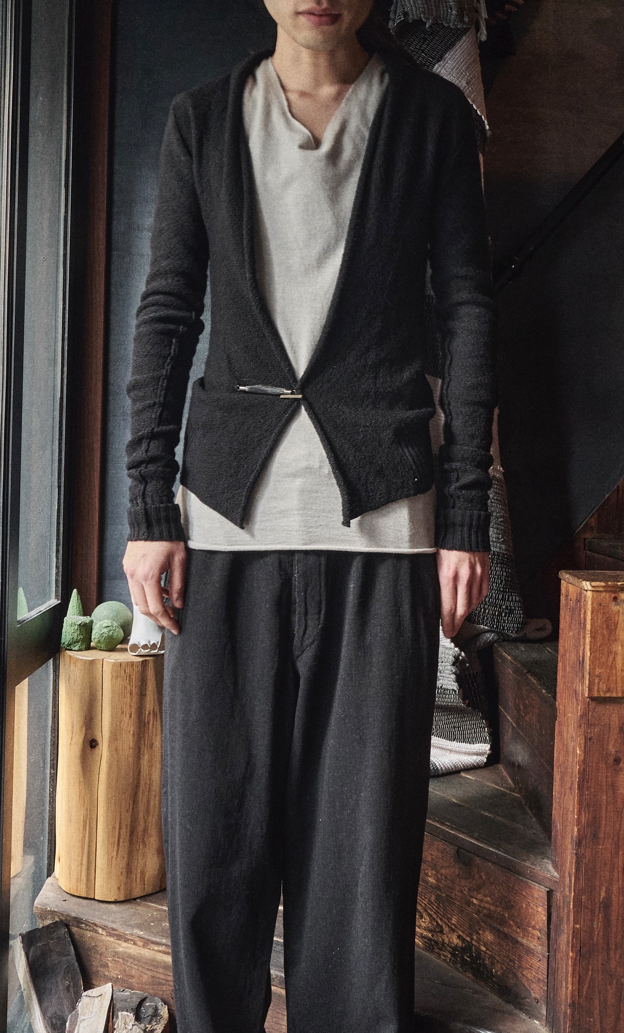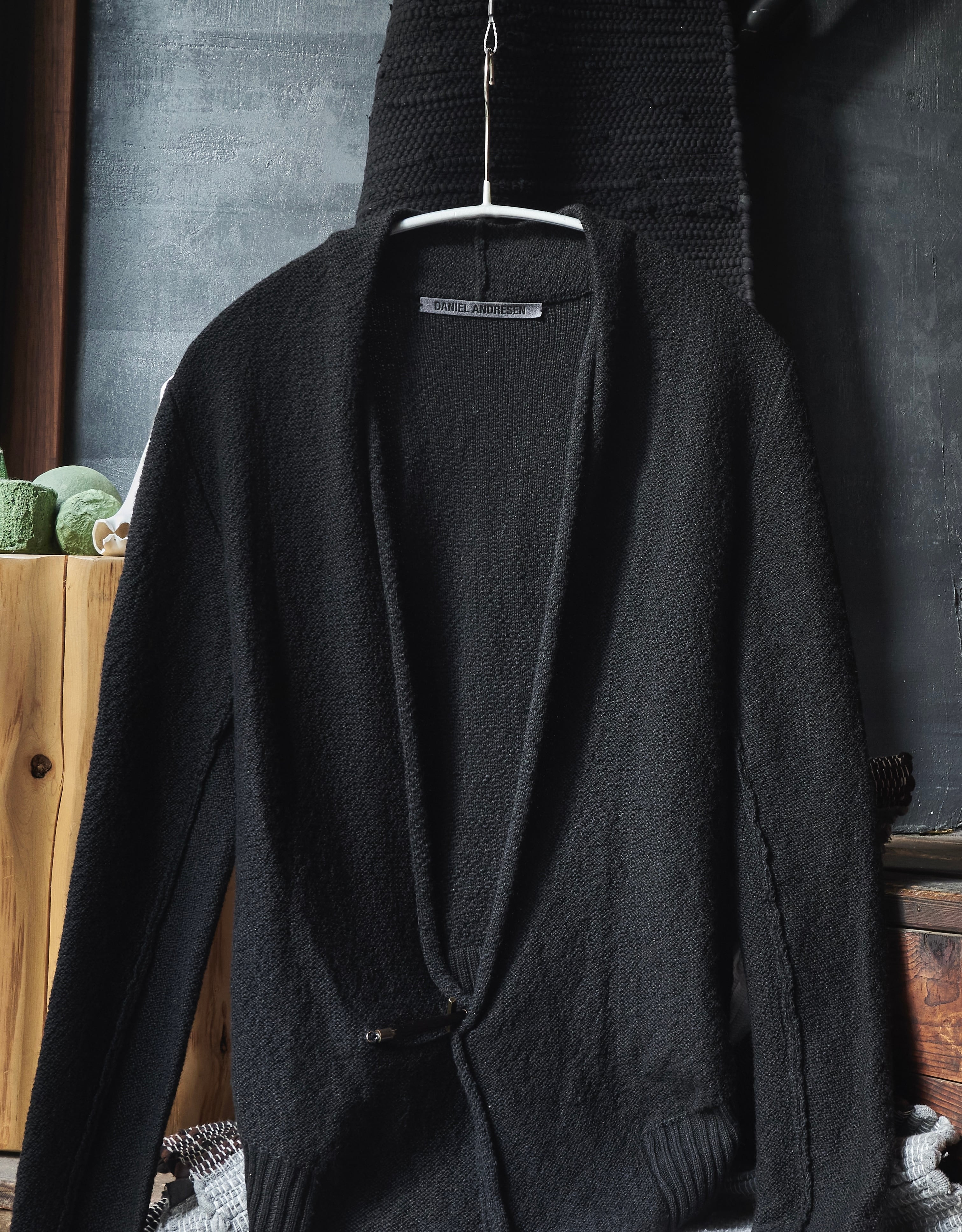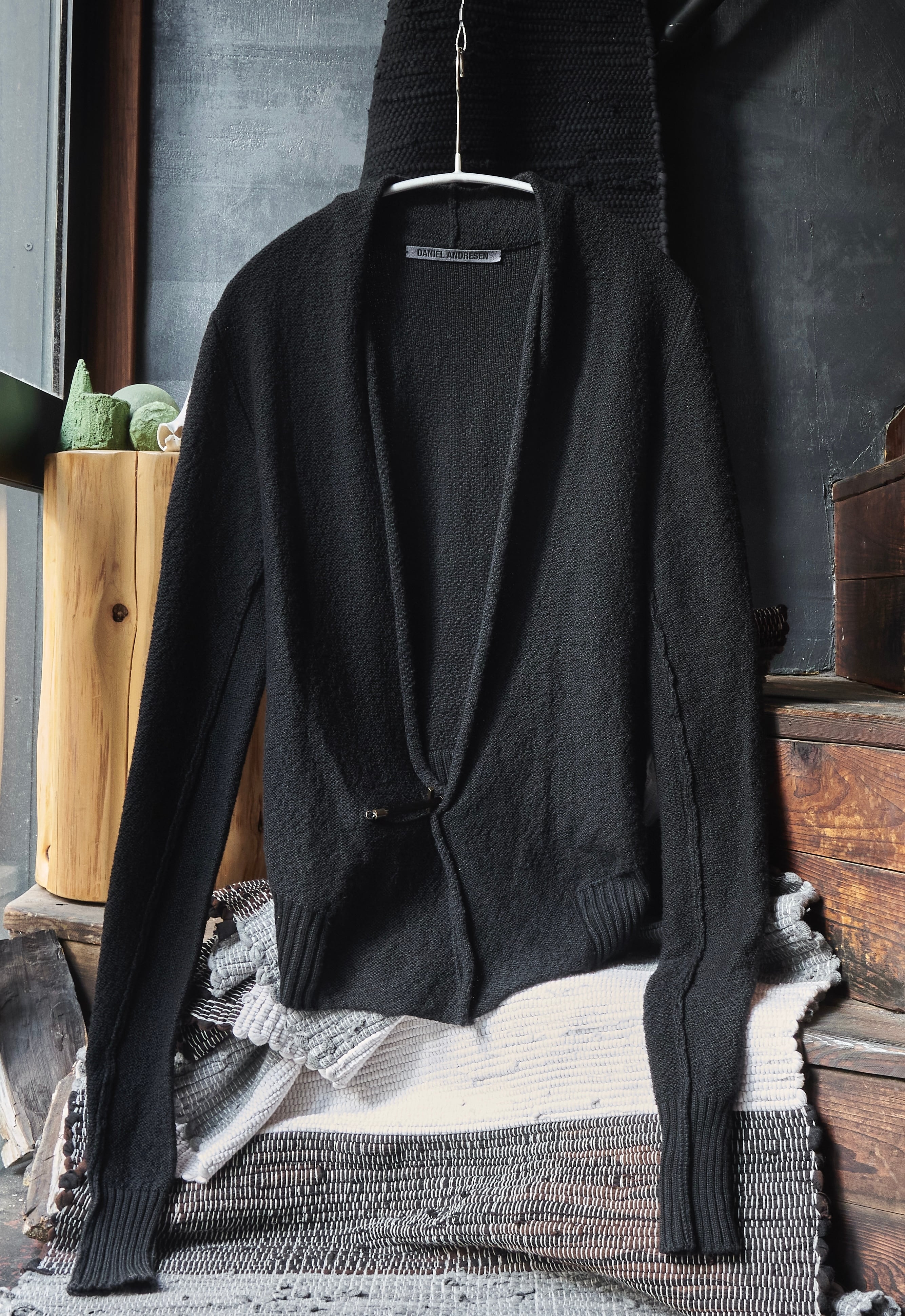 DANIEL ANDRESEN Horsehair Button Super Long Wool Linen Cardigan