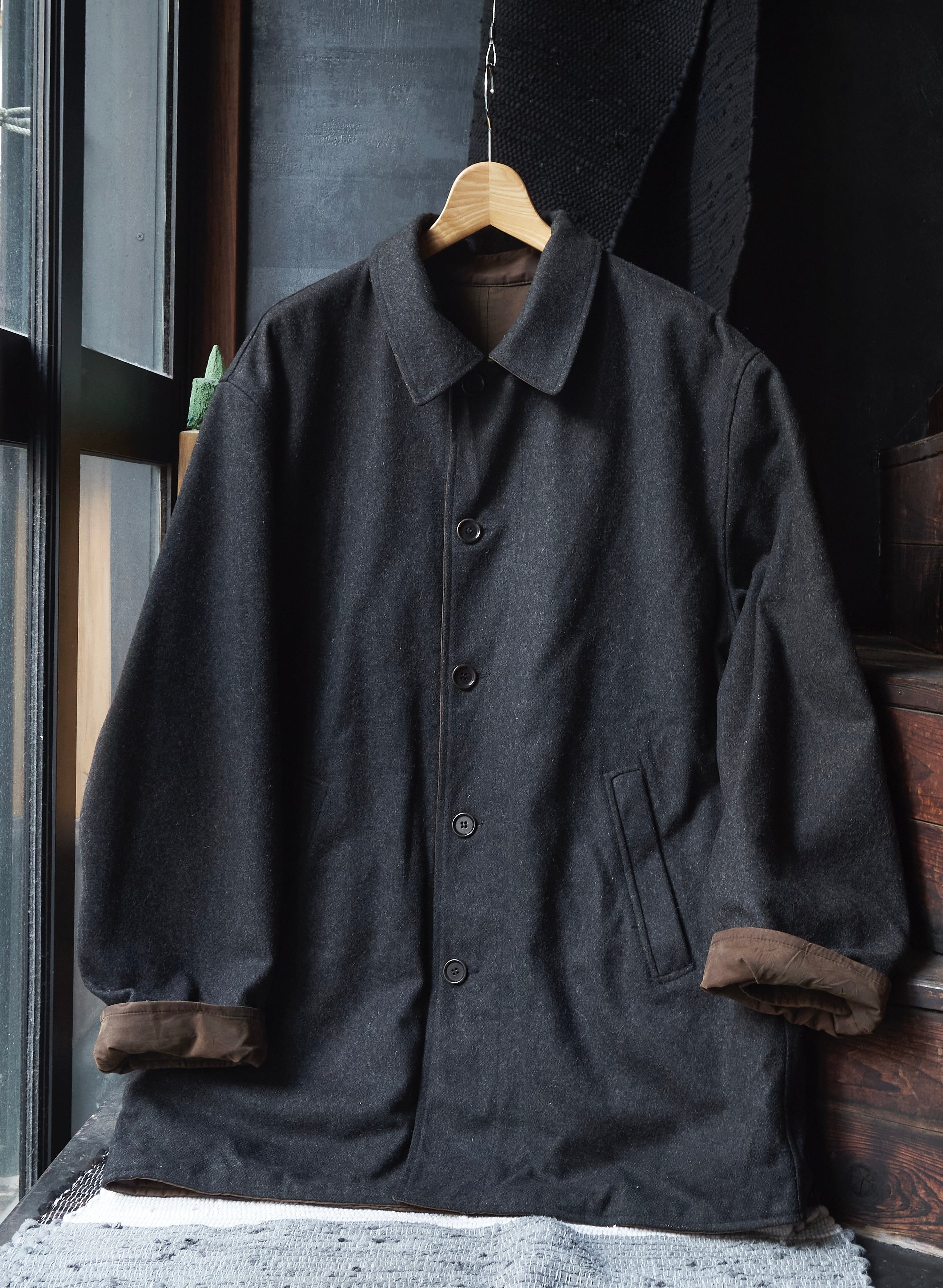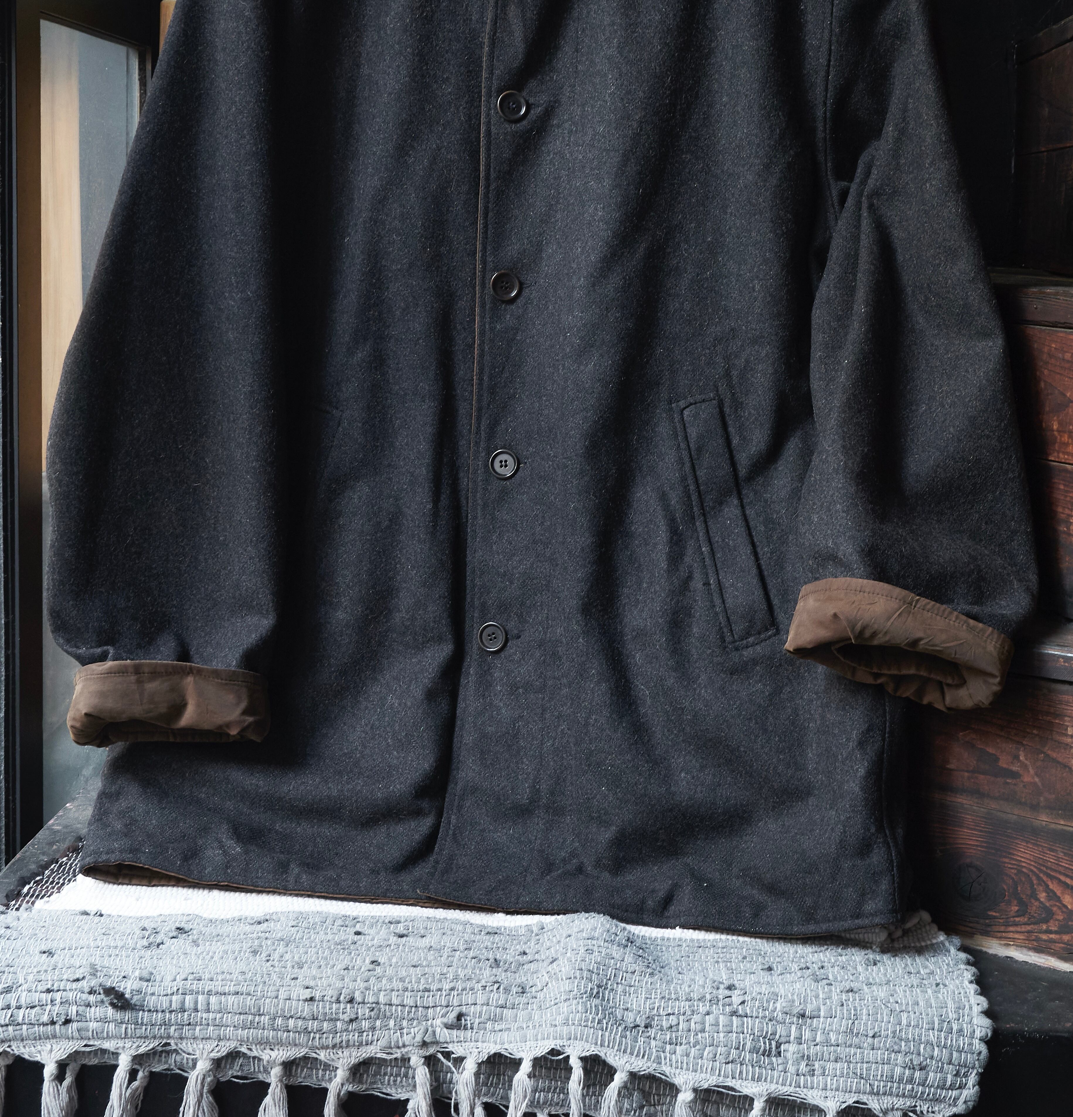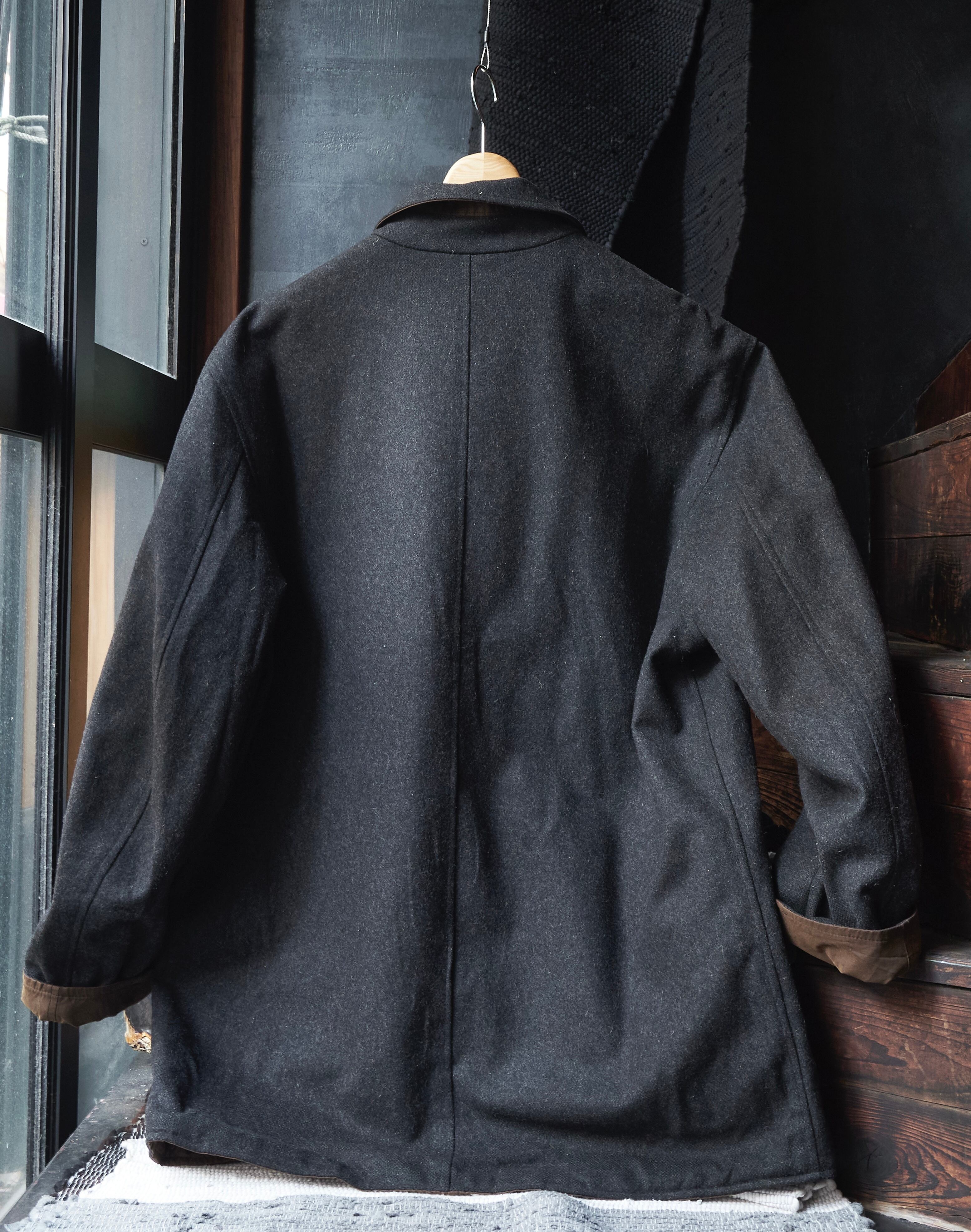 80s euro High-density cotton × wool reversible coverall pattern jacket