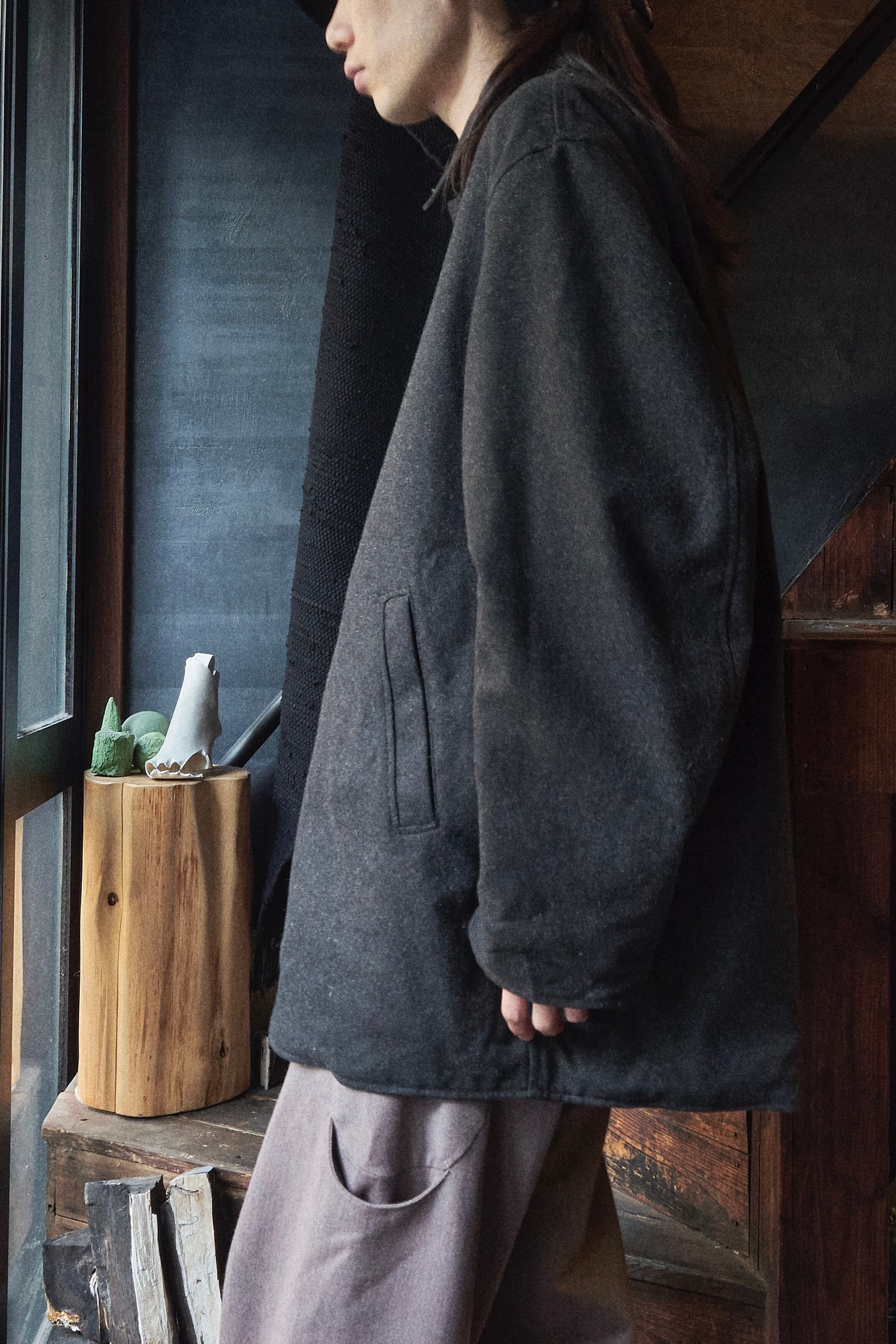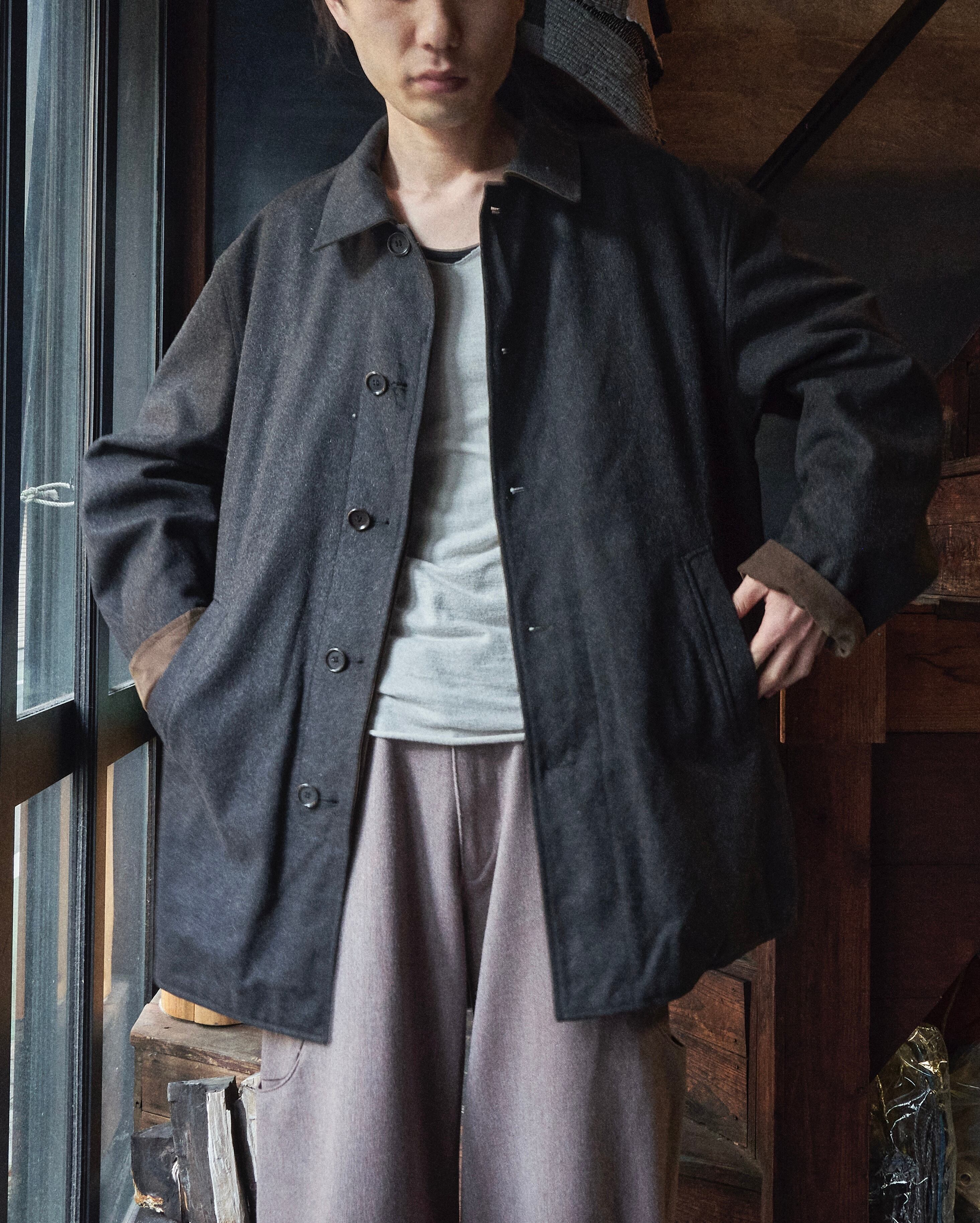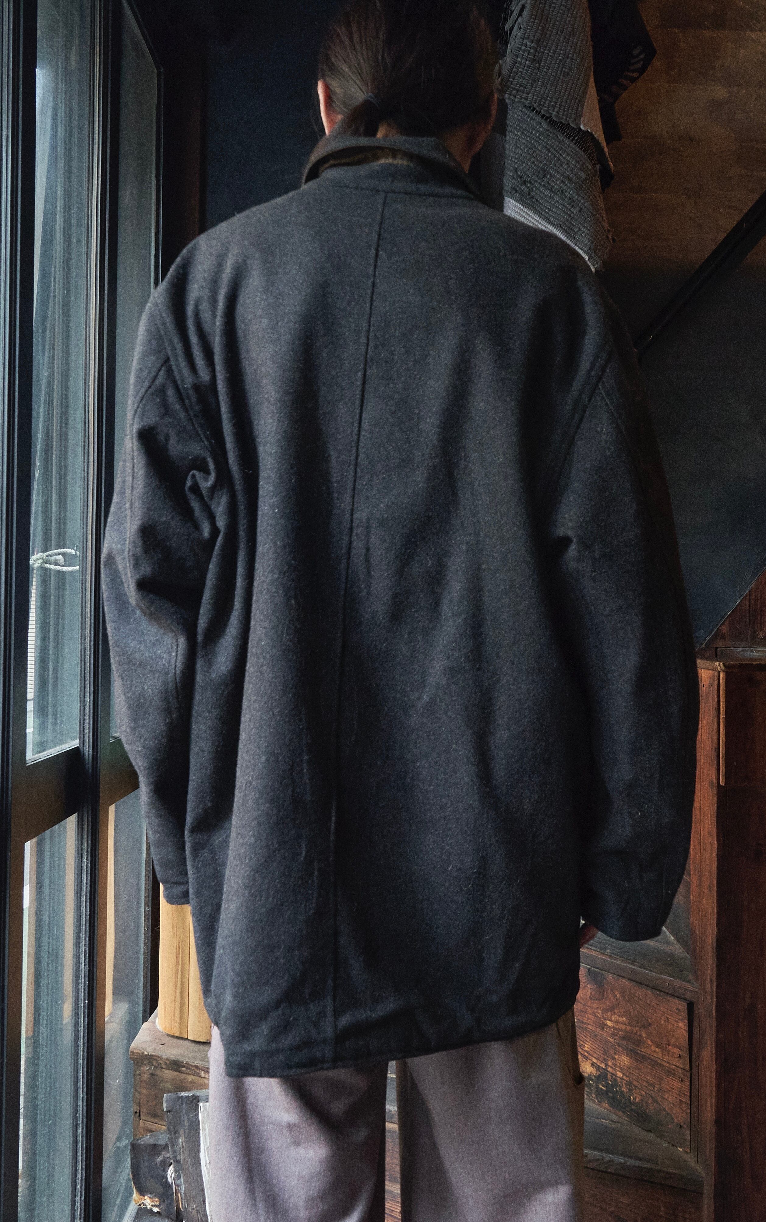 80s euro High-density cotton × wool reversible coverall pattern jacket