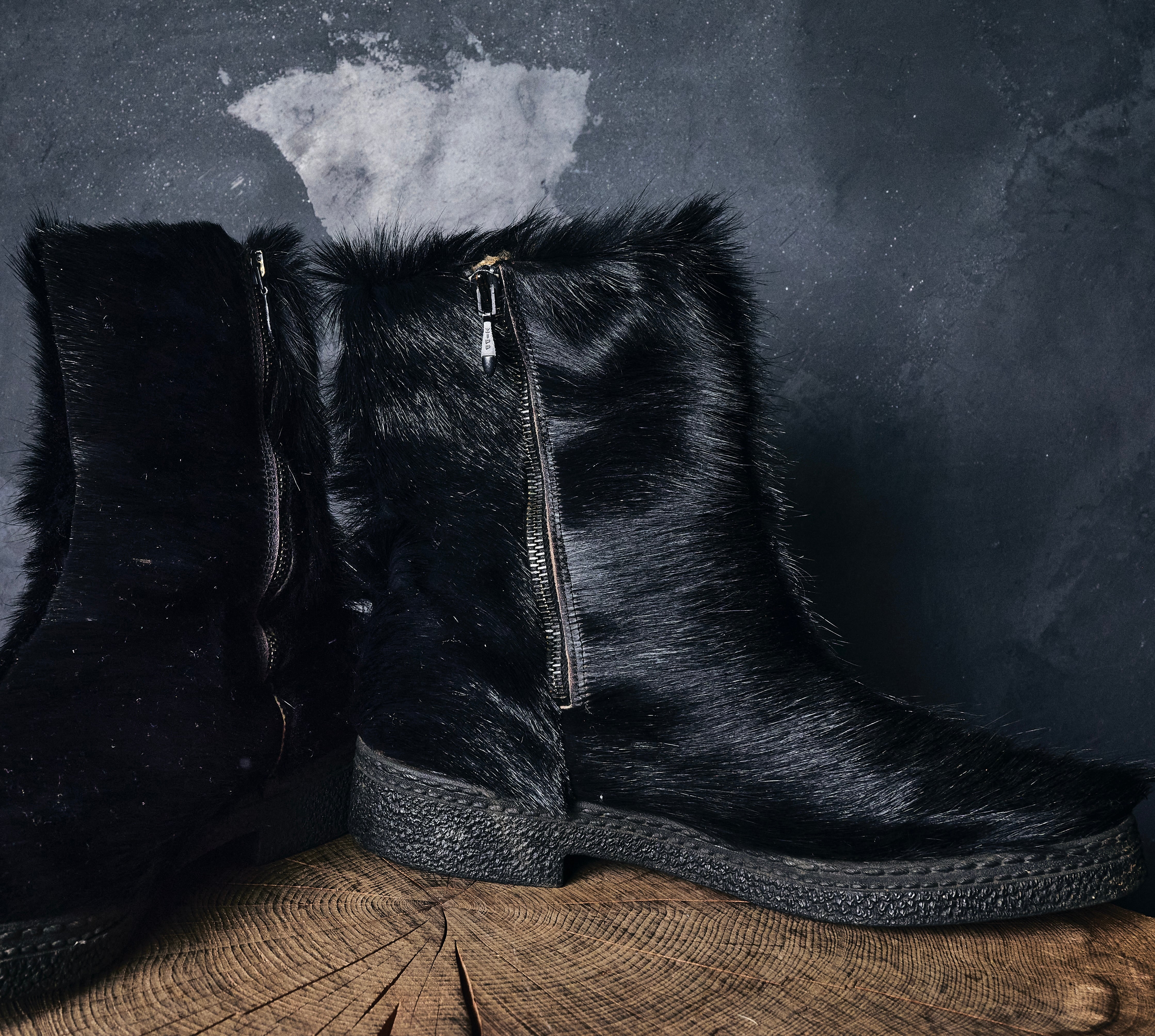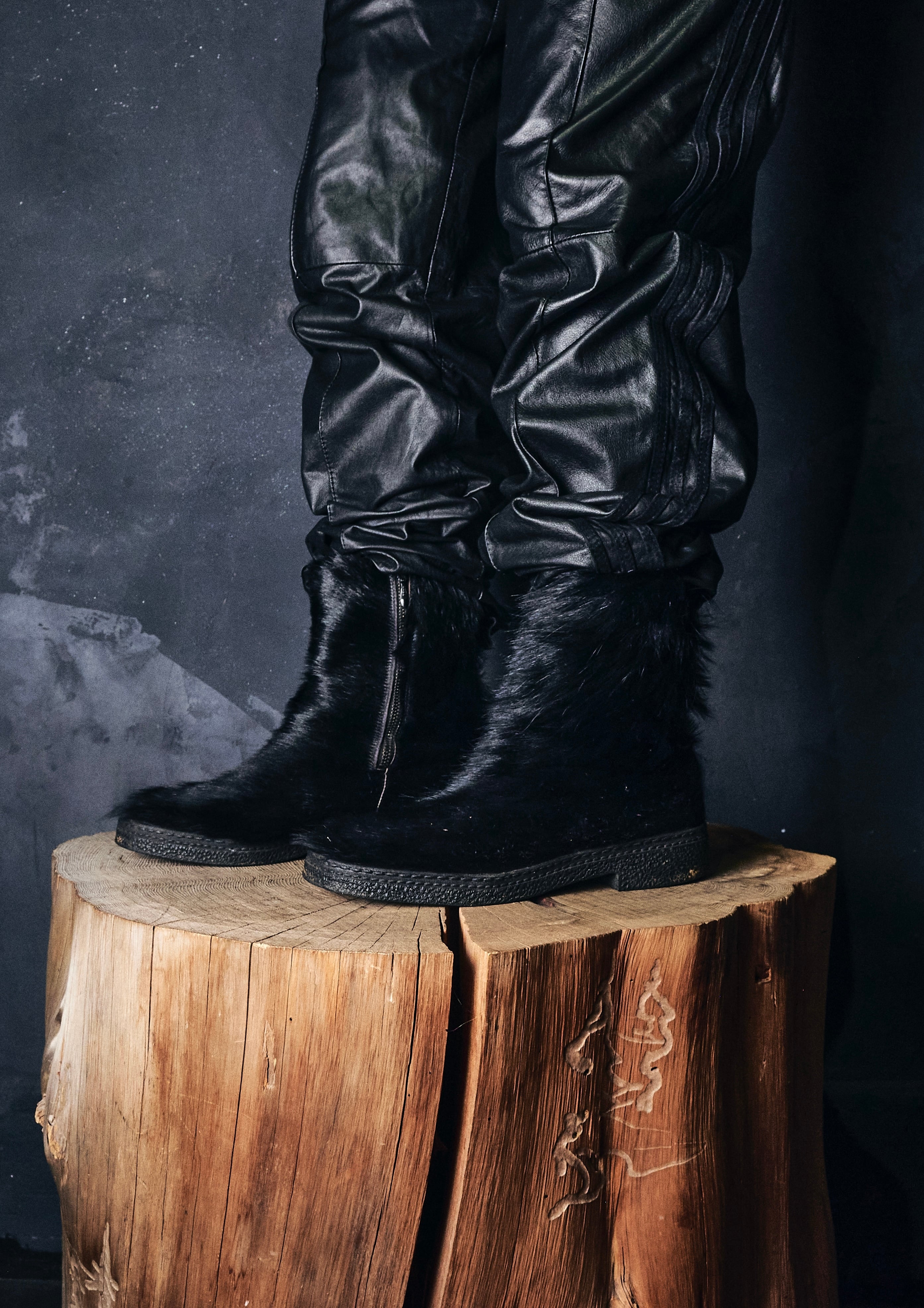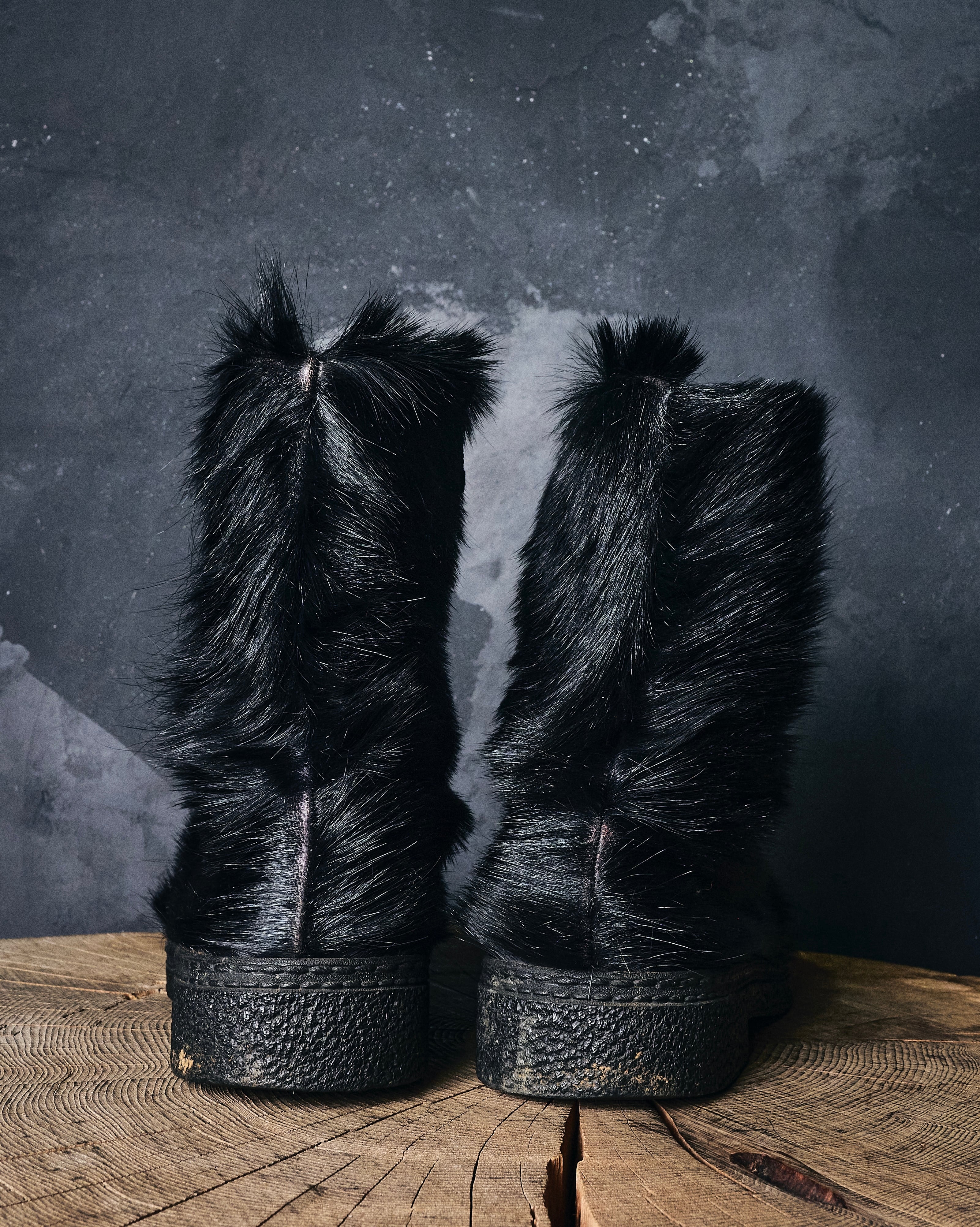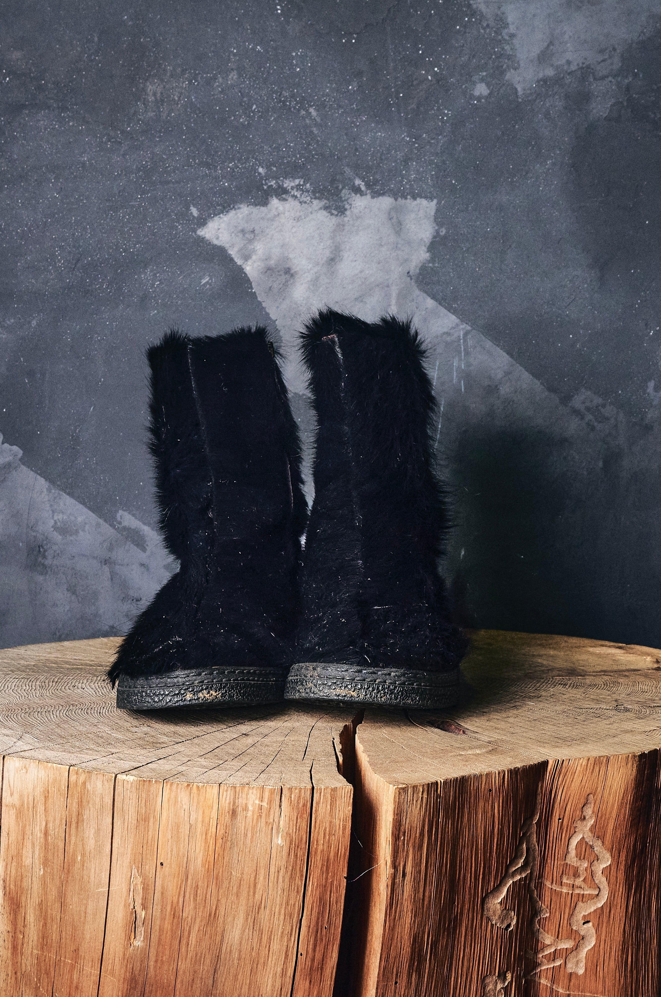 80s euro Real seal leather fur Black Eskimo Side zipper boots