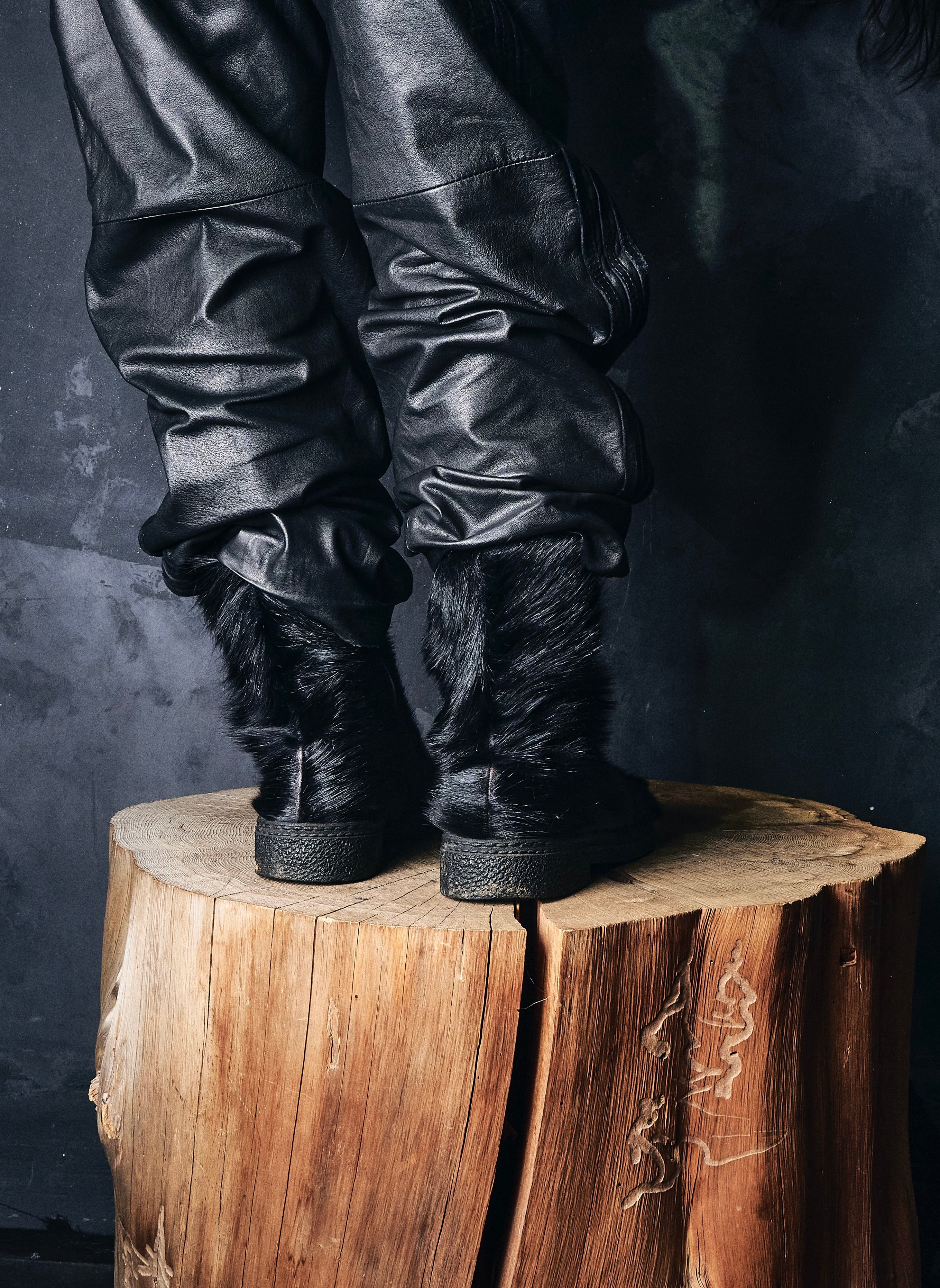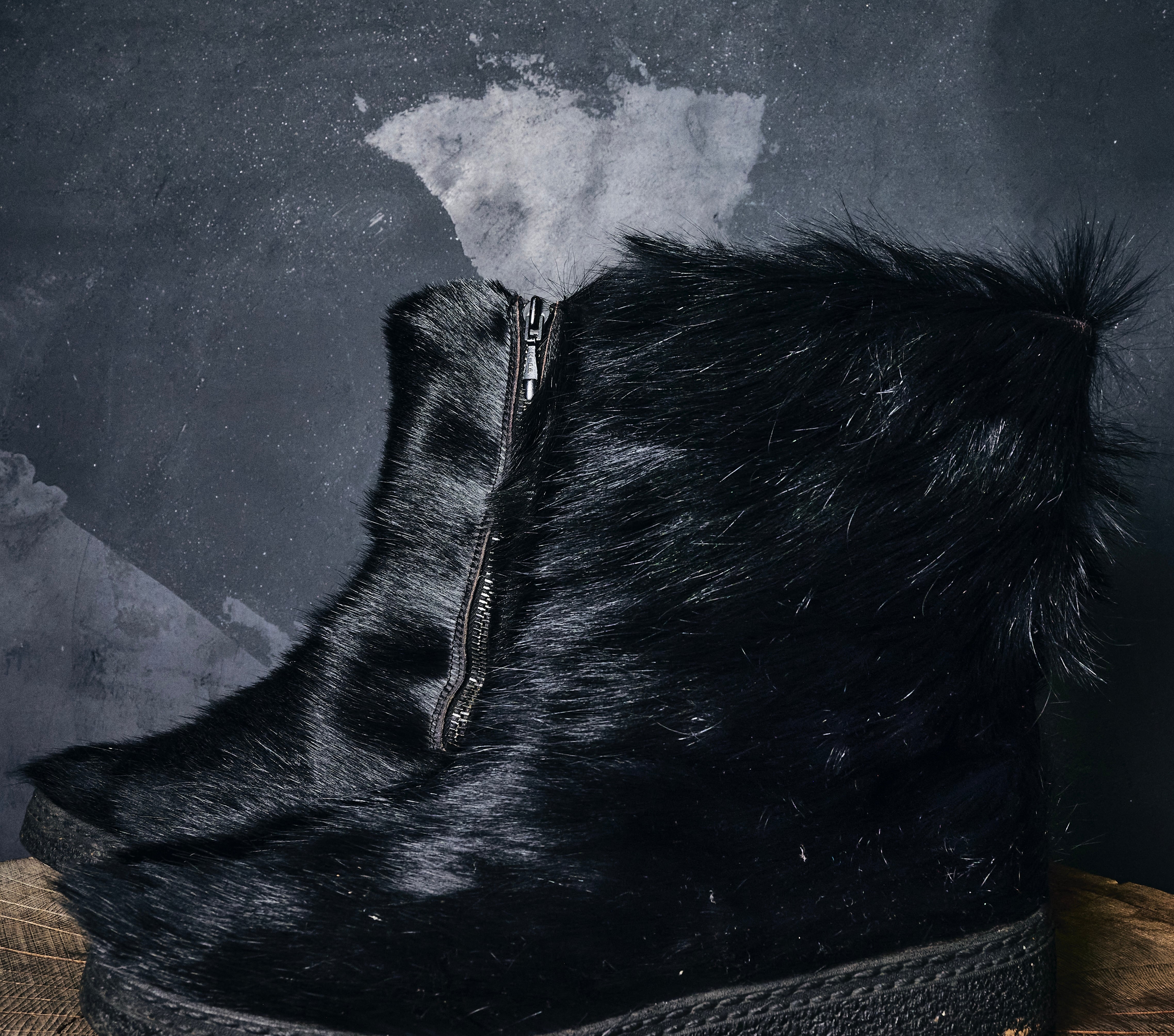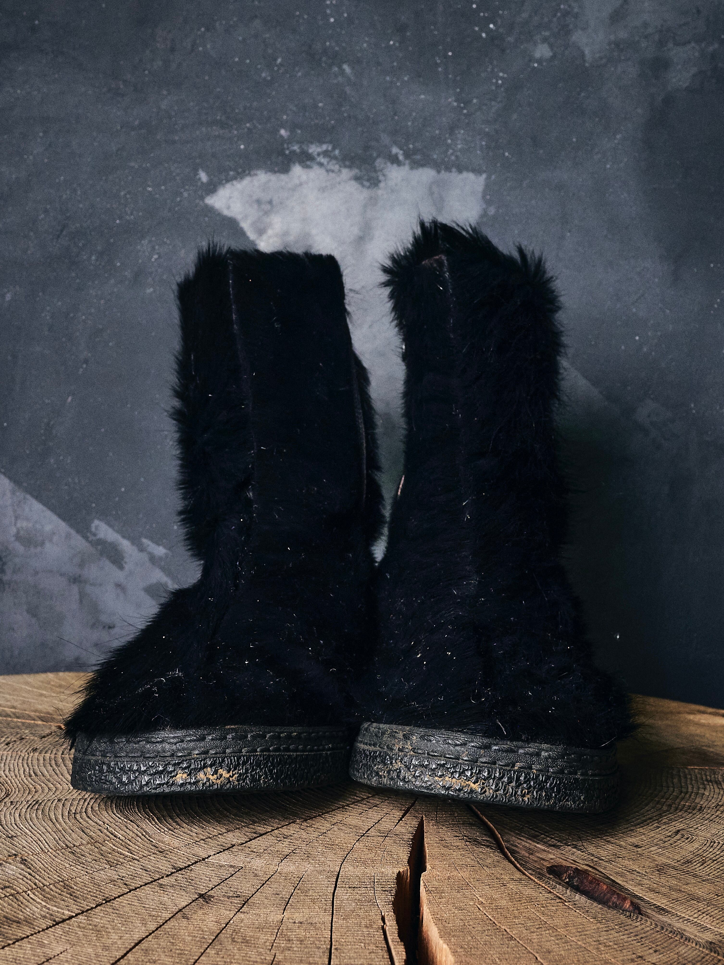 80s euro Real seal leather fur Black Eskimo Side zipper boots