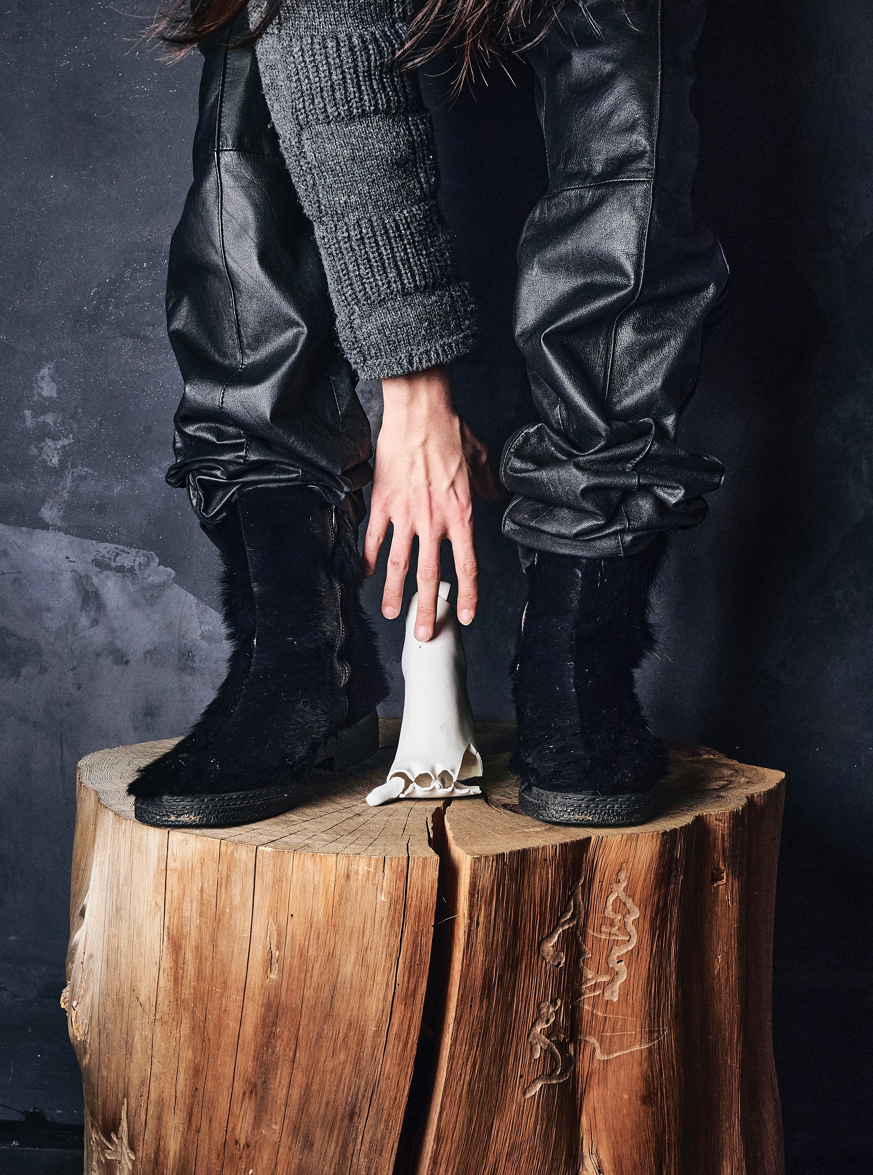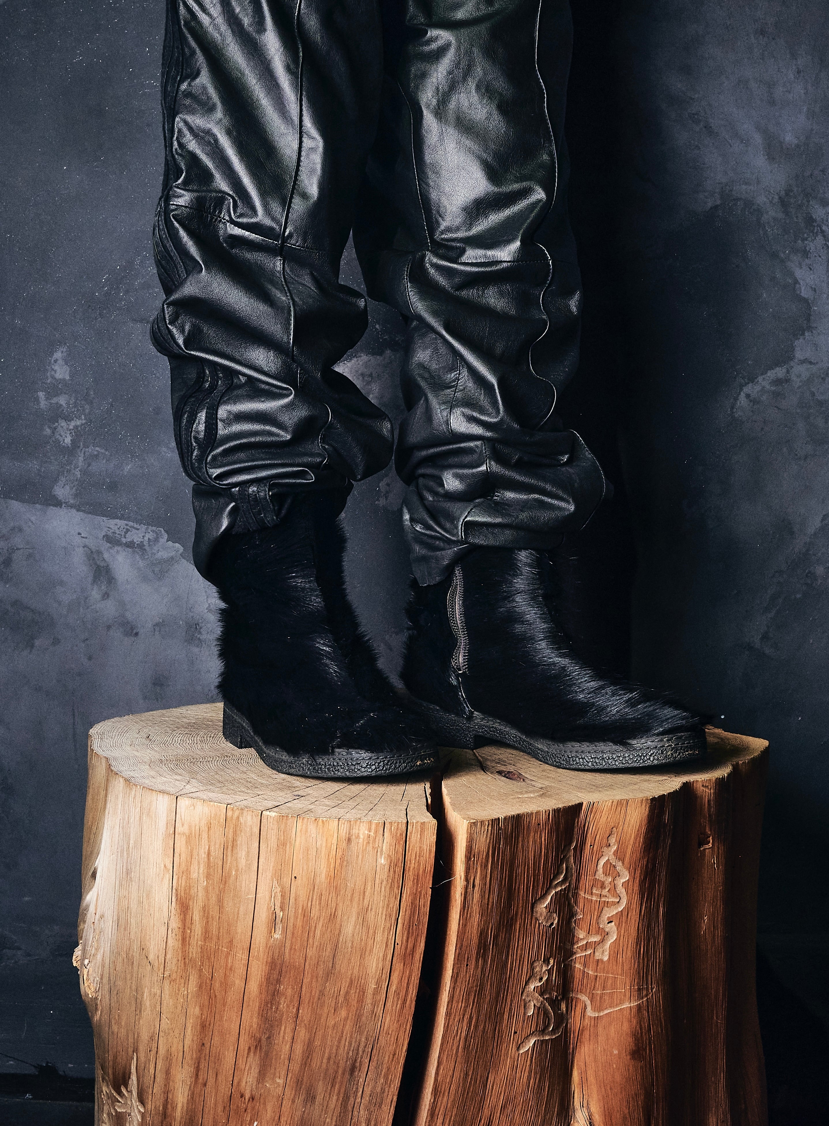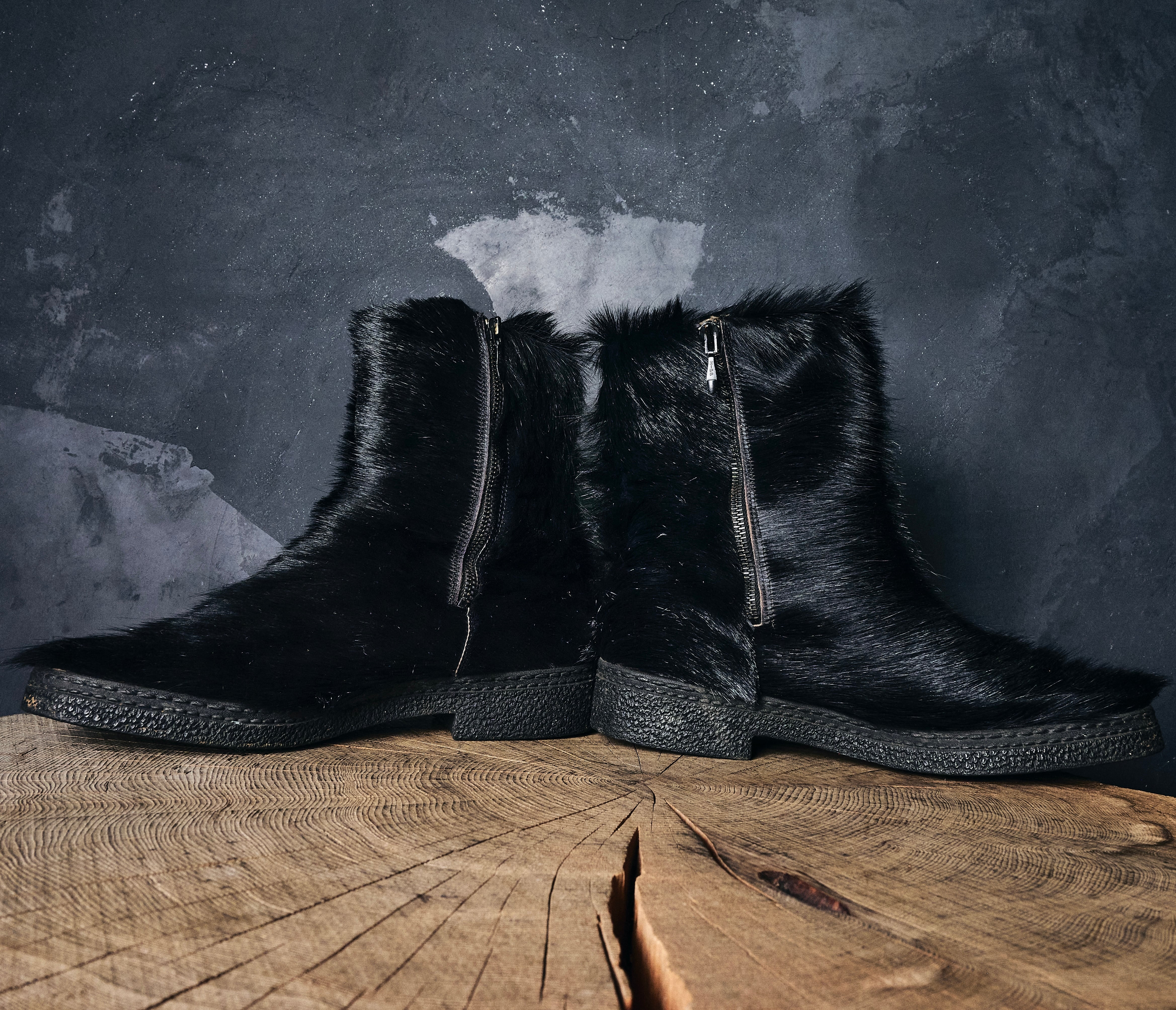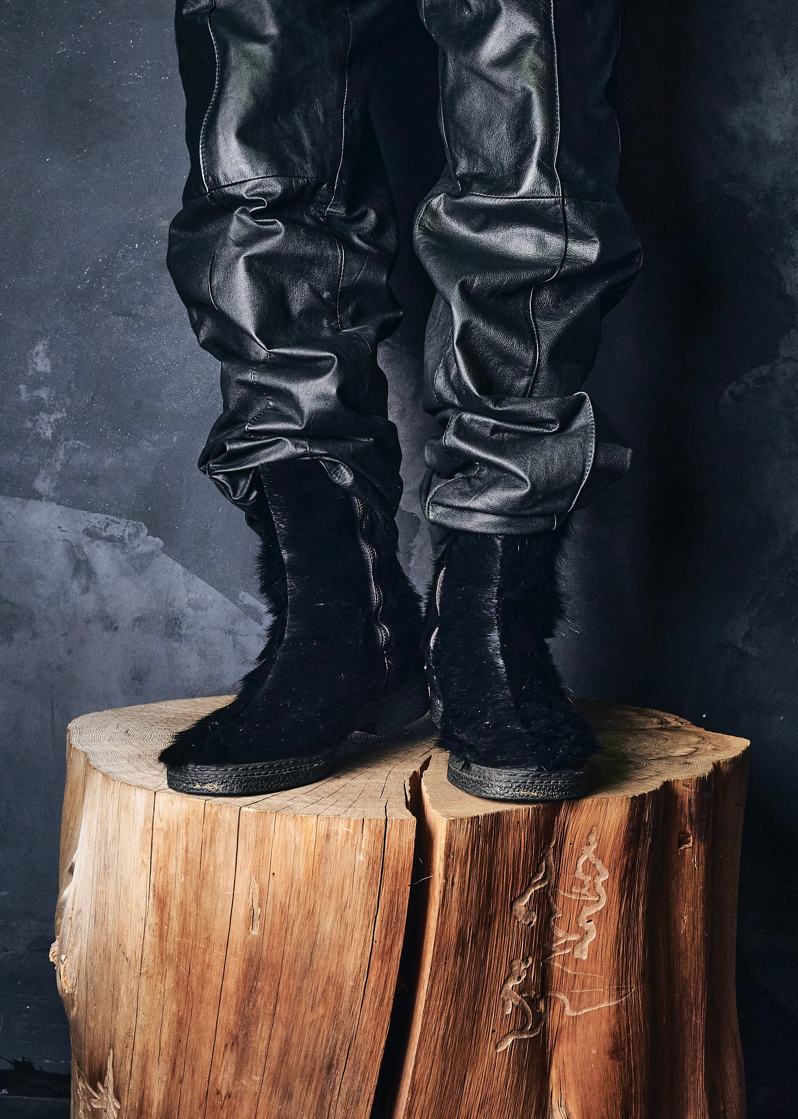 80s euro Real seal leather fur Black Eskimo Side zipper boots