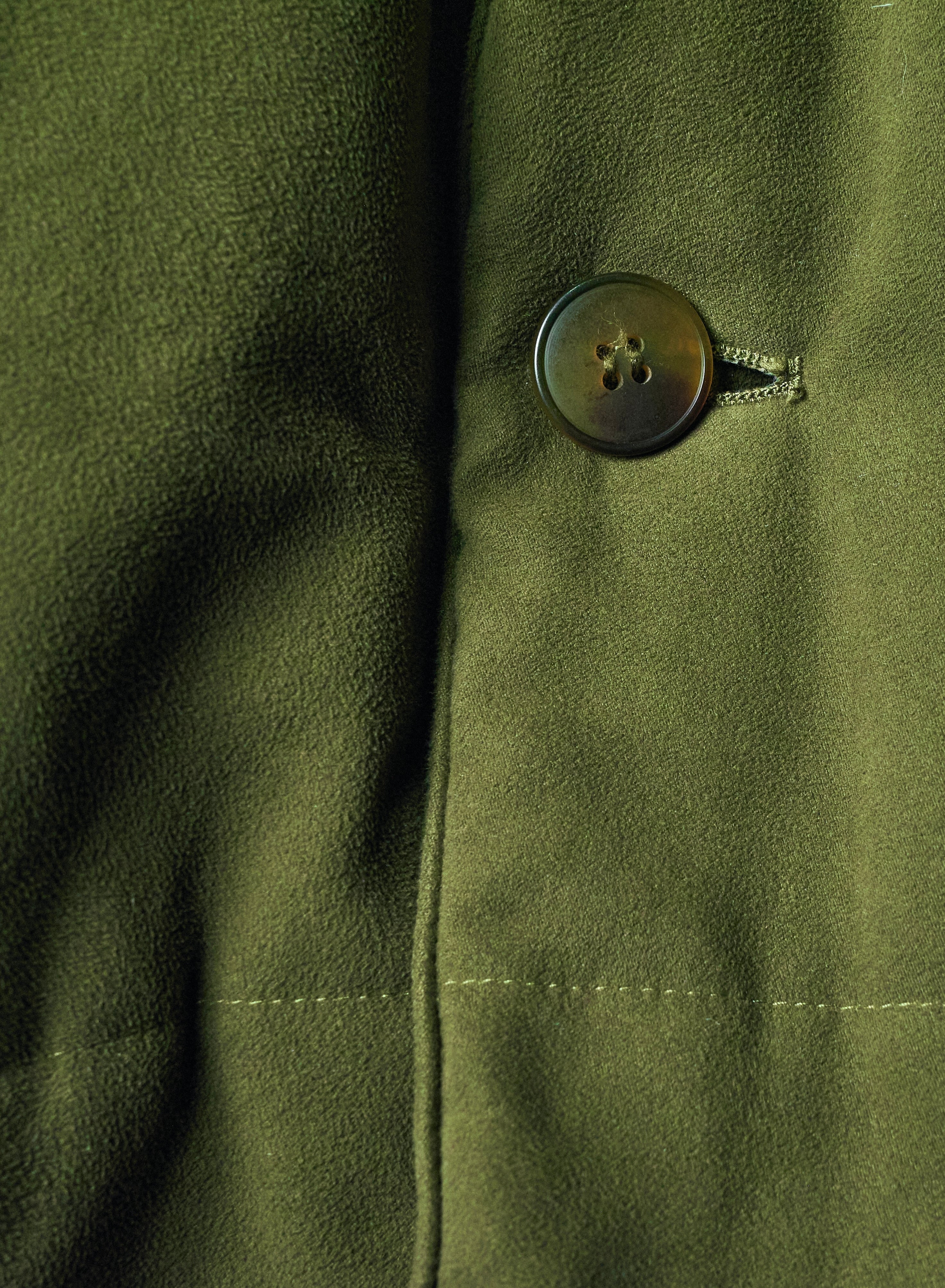 ピーチスキンの最上級ランク。そんな言葉がふさわしいコートです。触って感触に跳ね返りがあるような、そんな触り心地です。