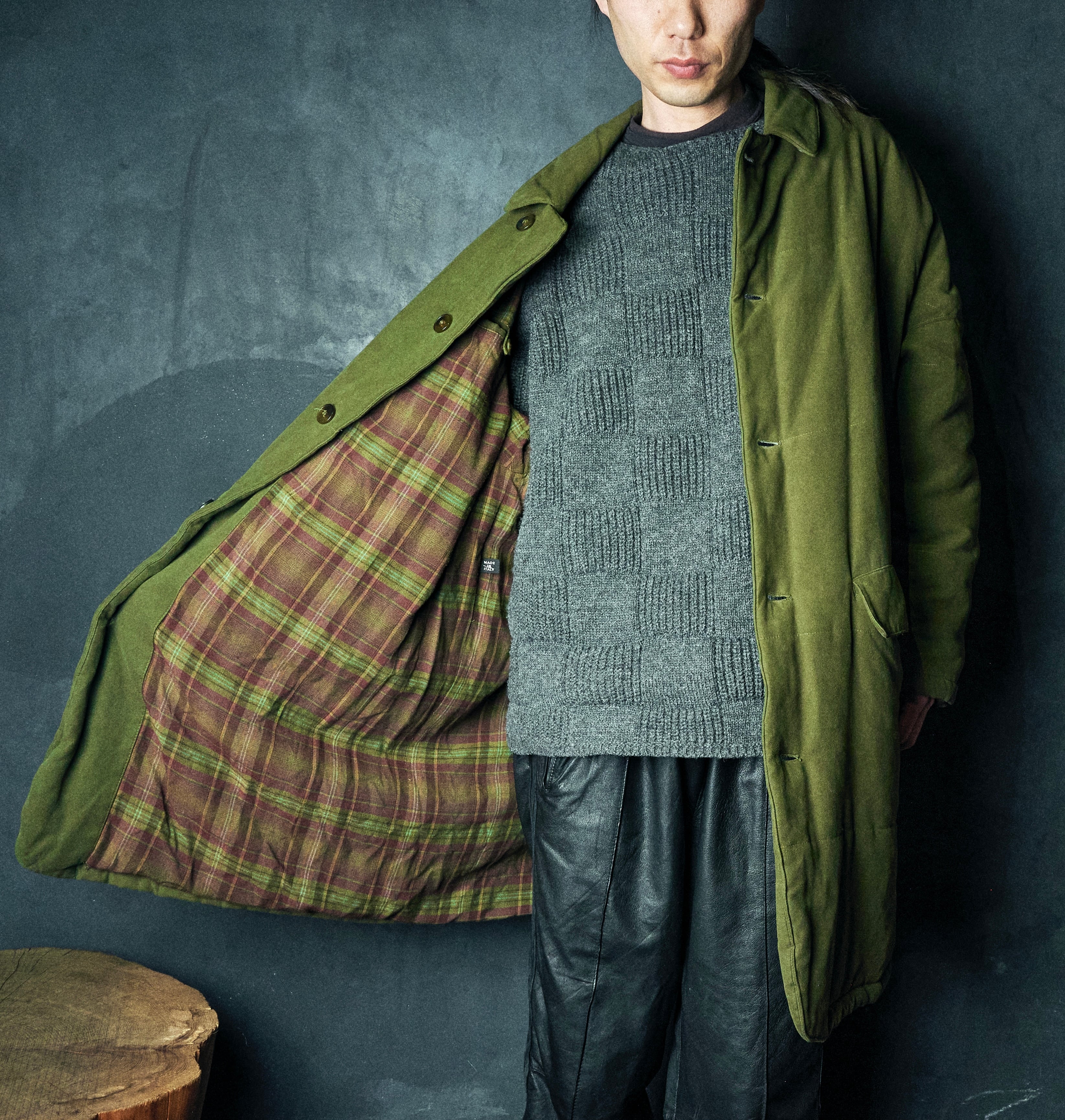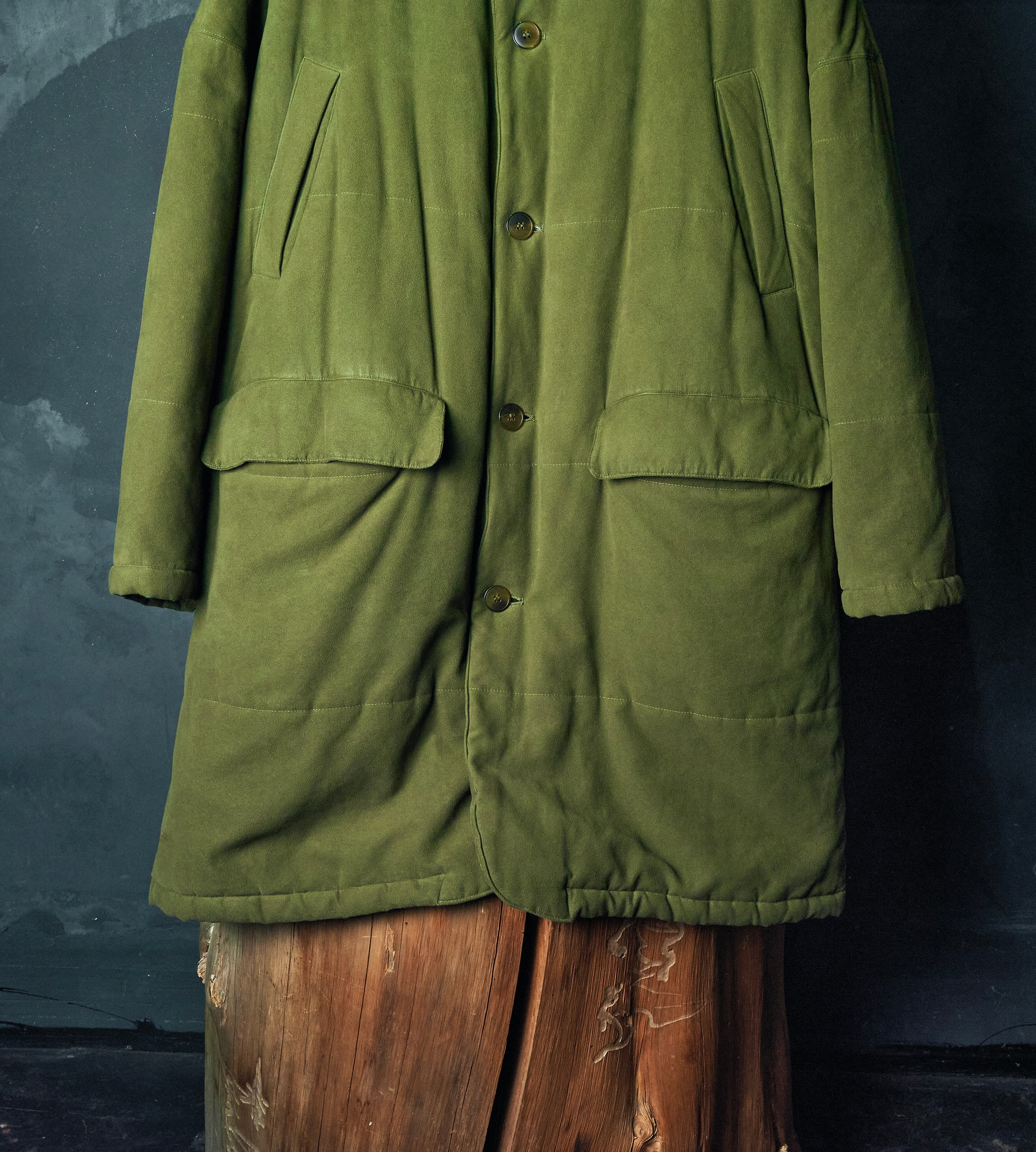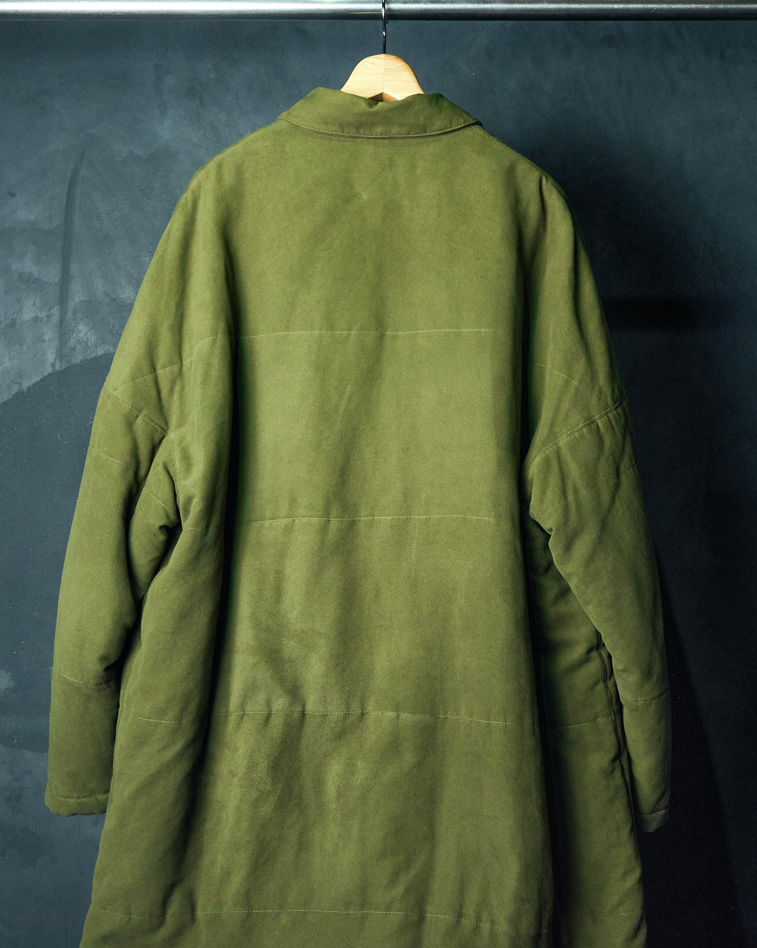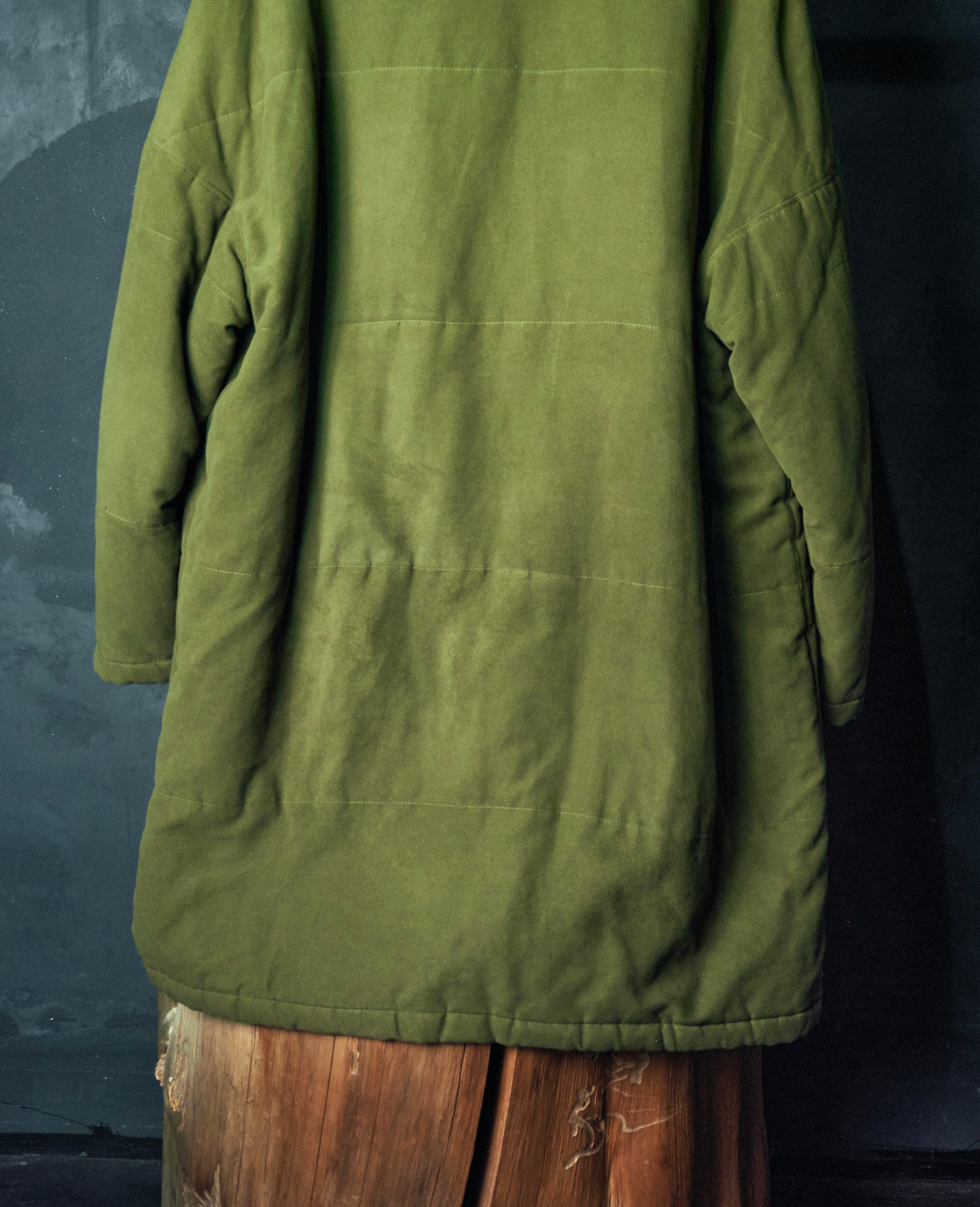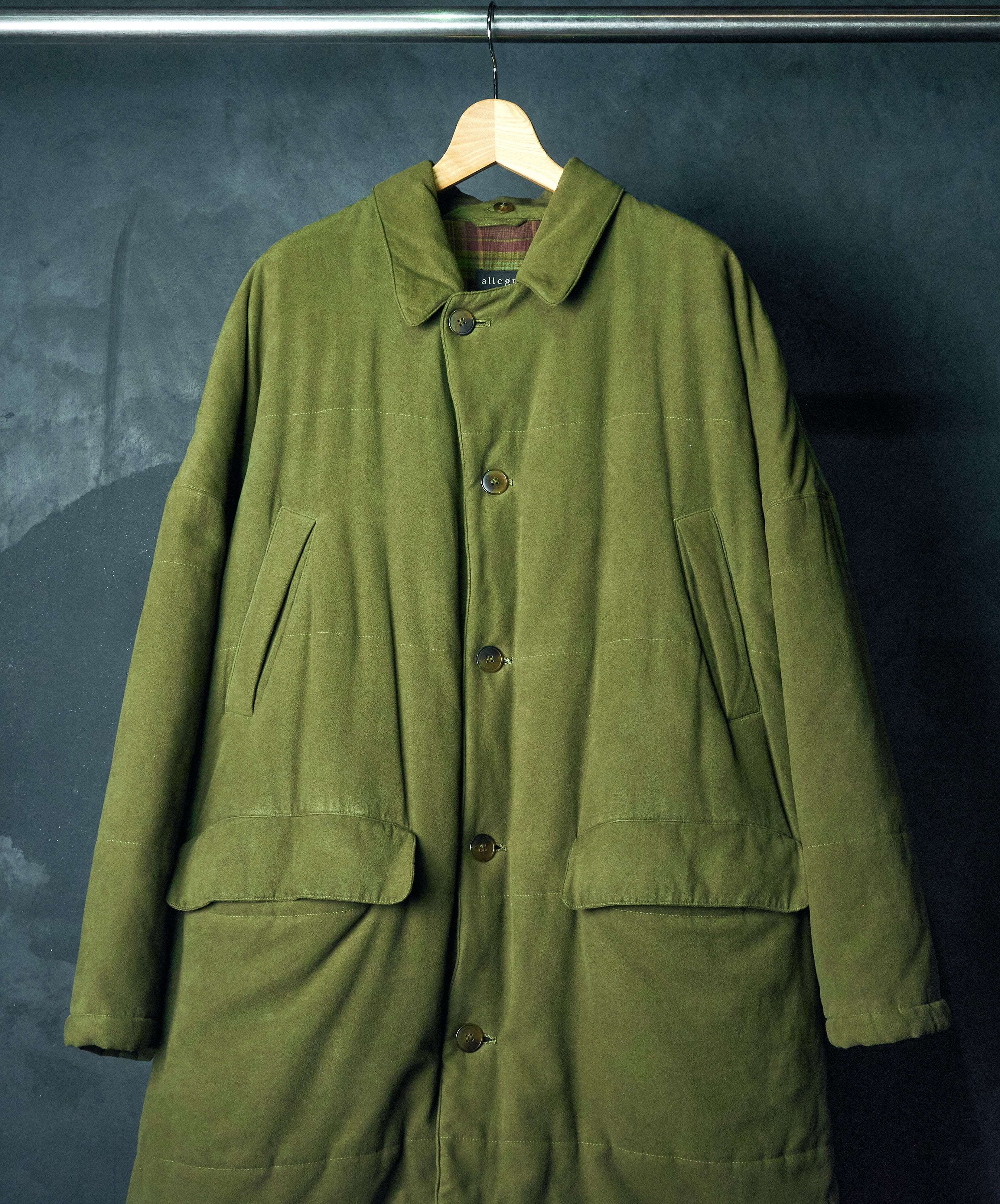 アレグリの素晴らしい高級ソファーに使われるかのようなピーチスキンの生地を使用したパデットコート。