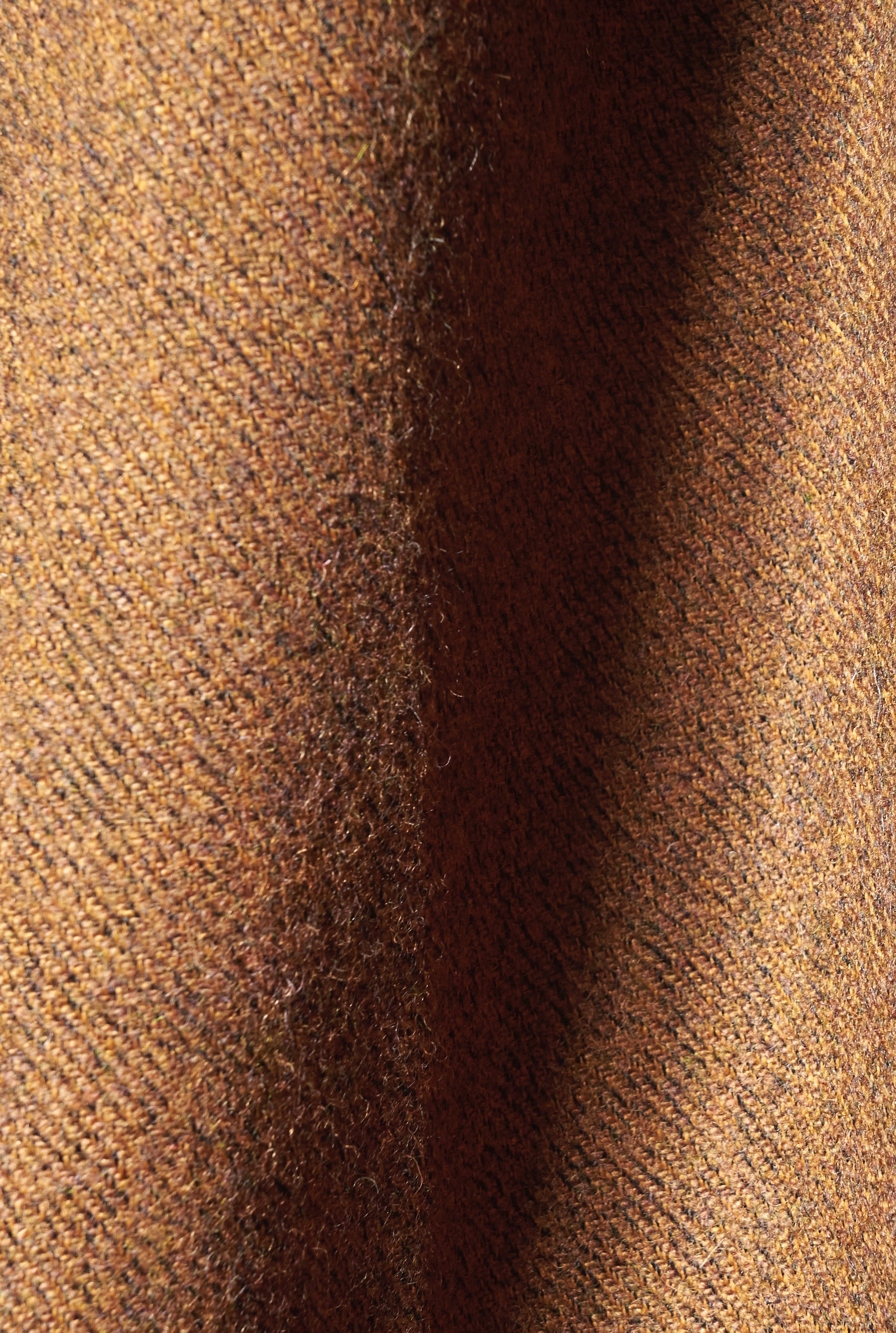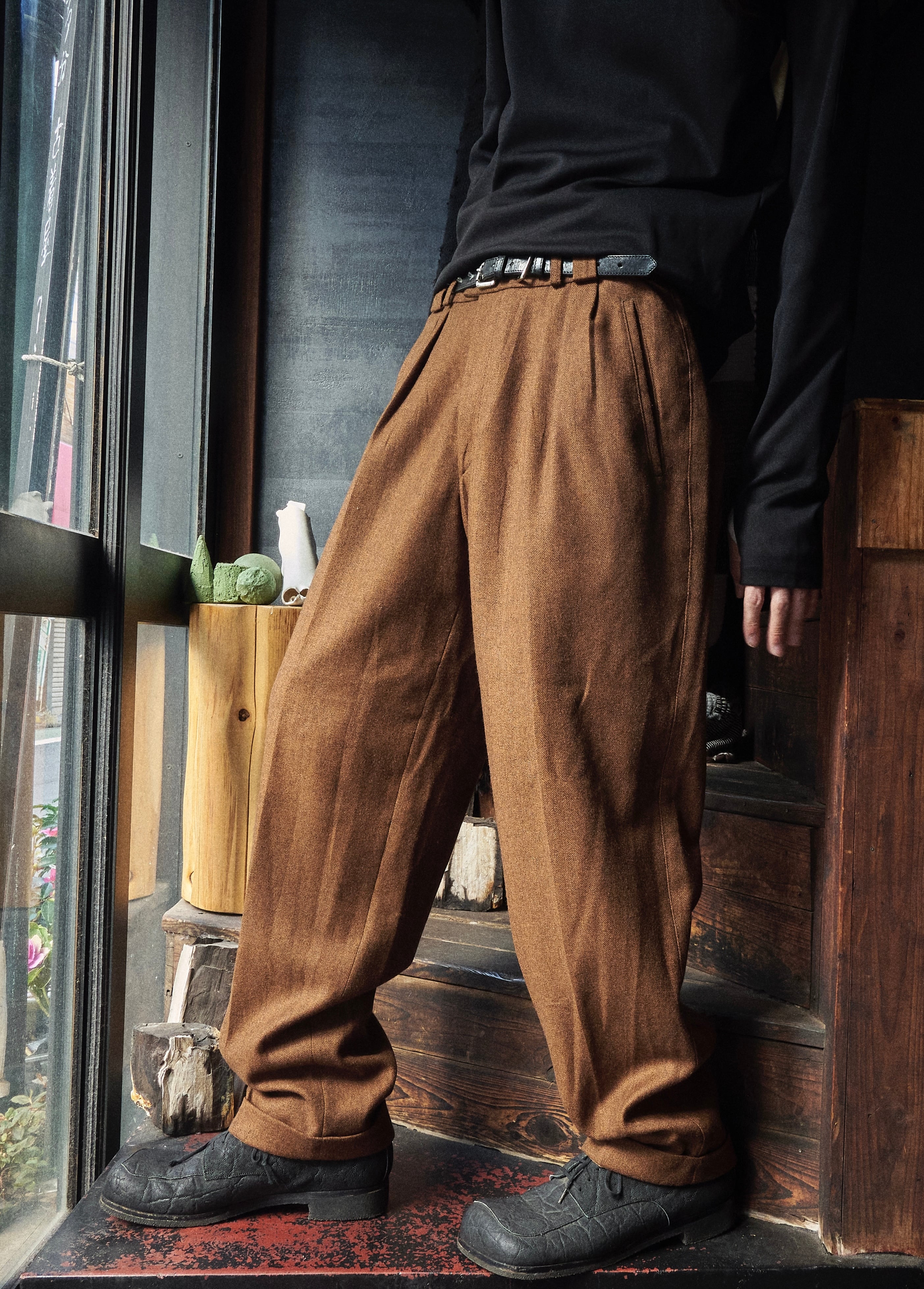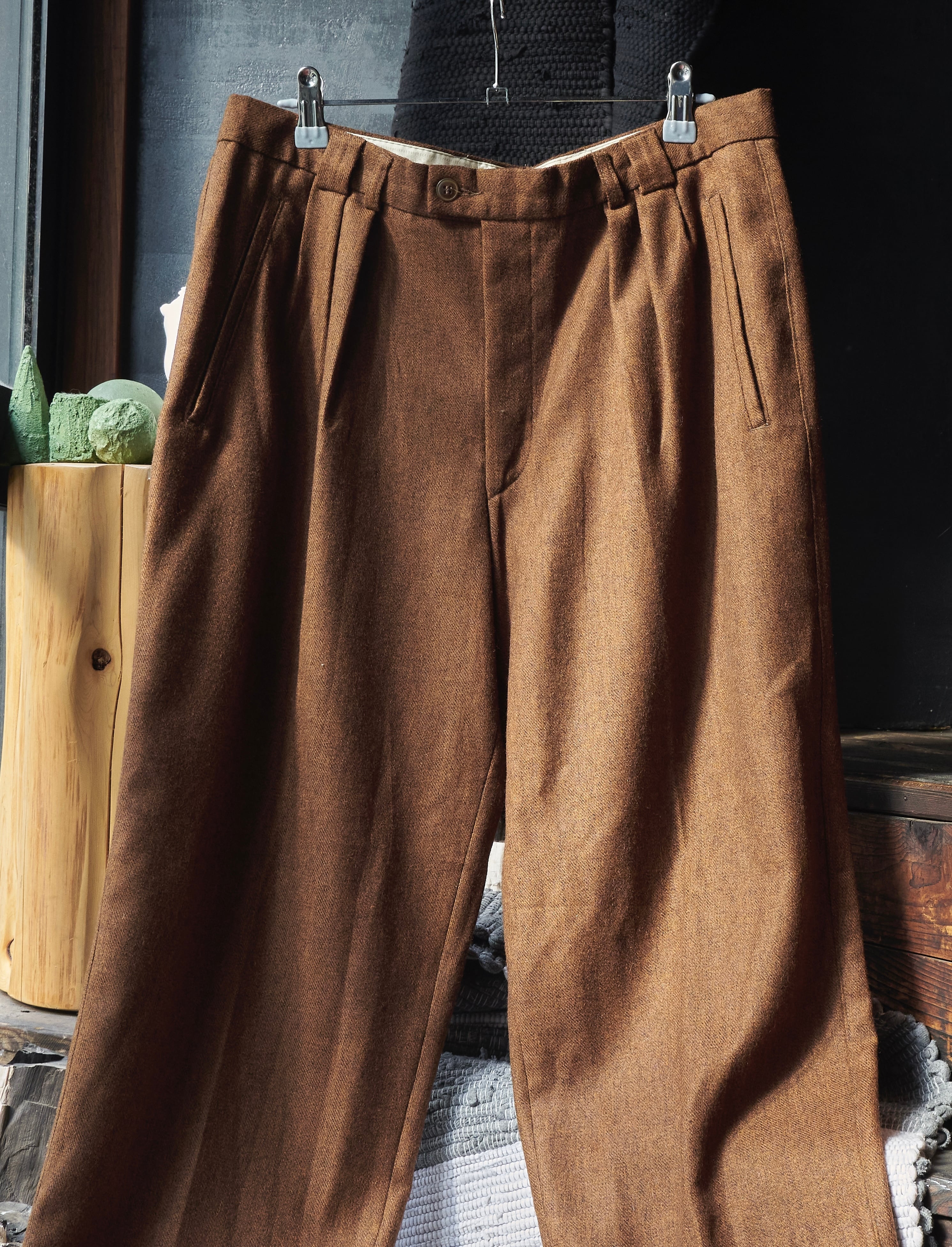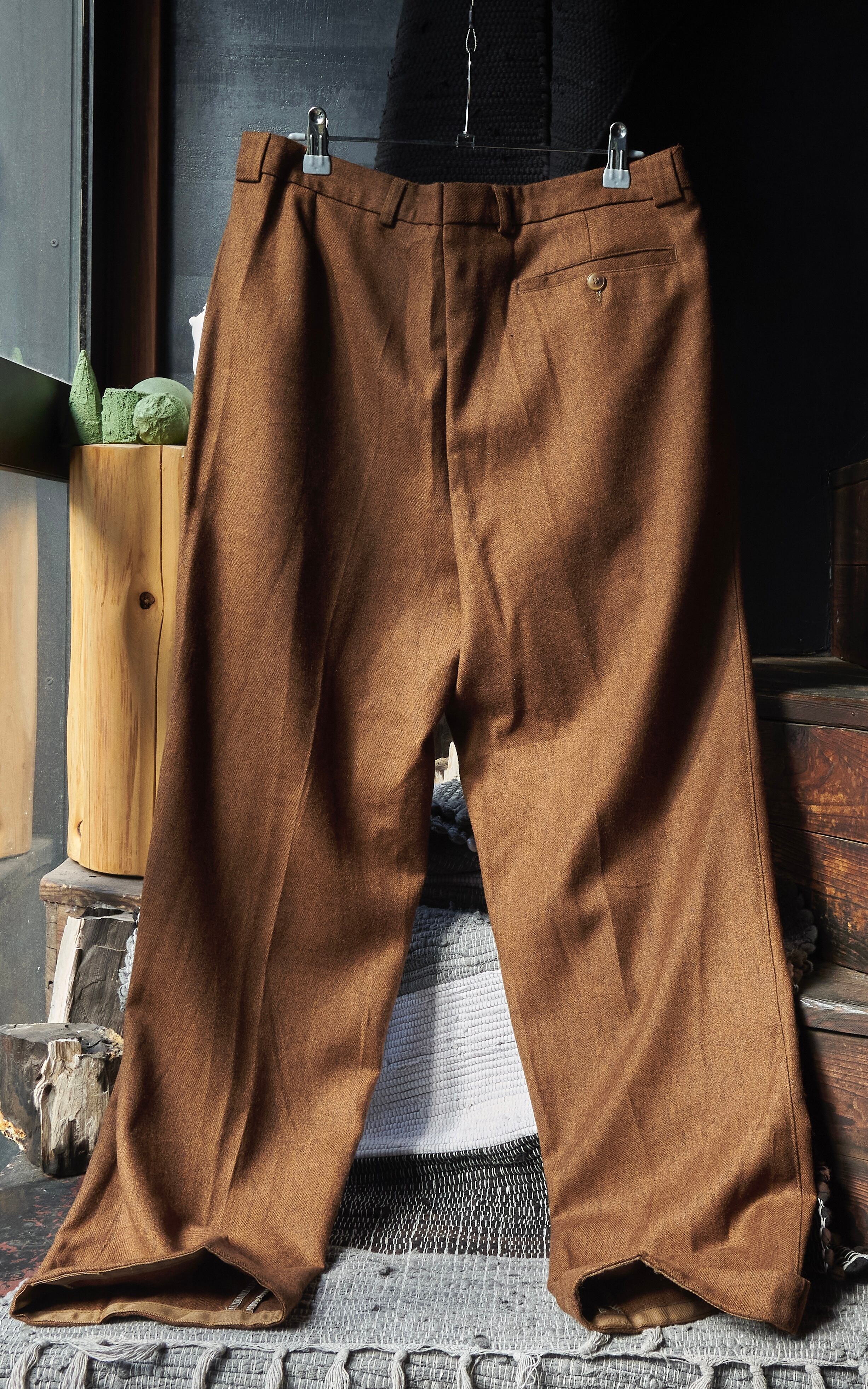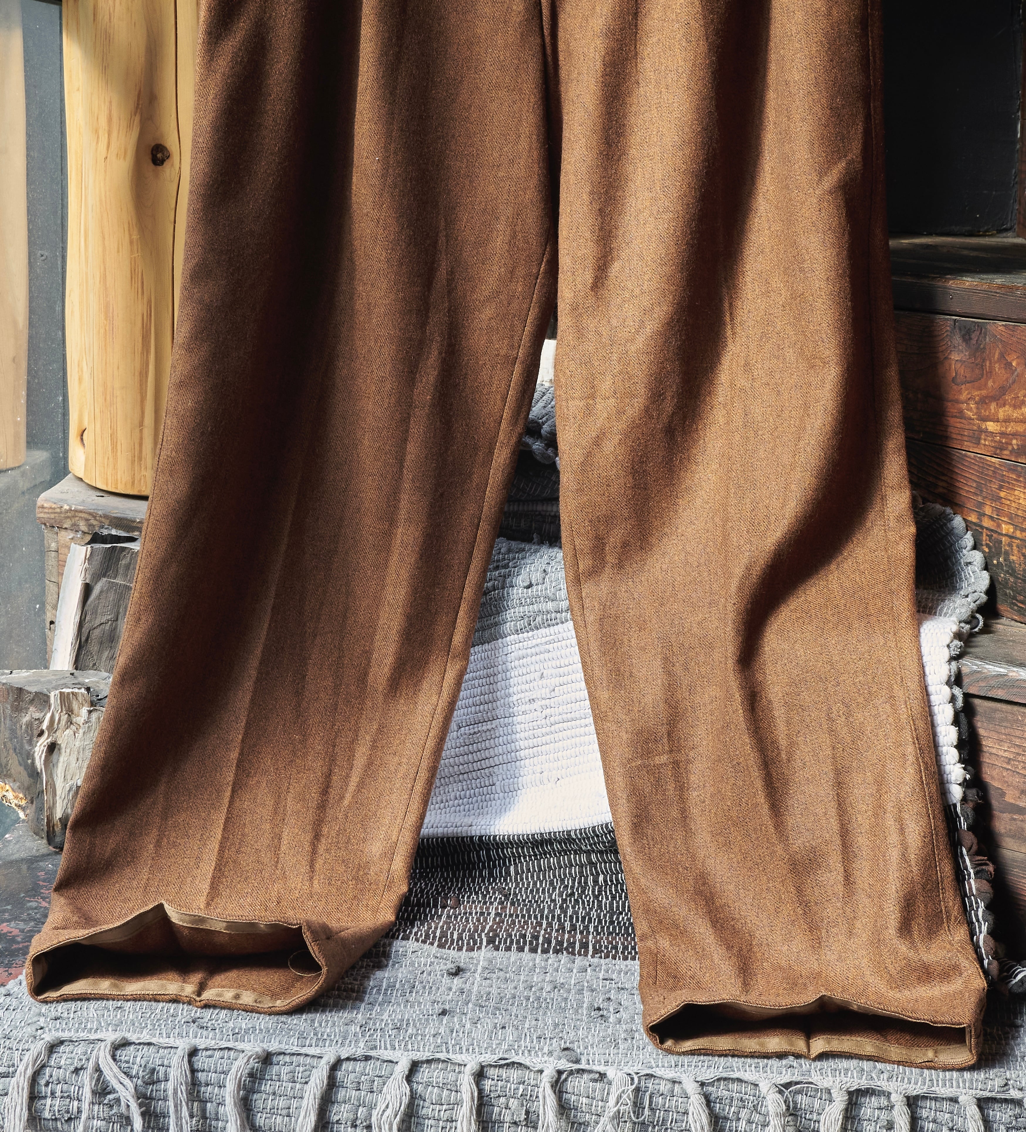 ドイツ製のオレンジベースカラーに黒い糸が入り乱れブラッドオレンジカラーになったスラックス。
