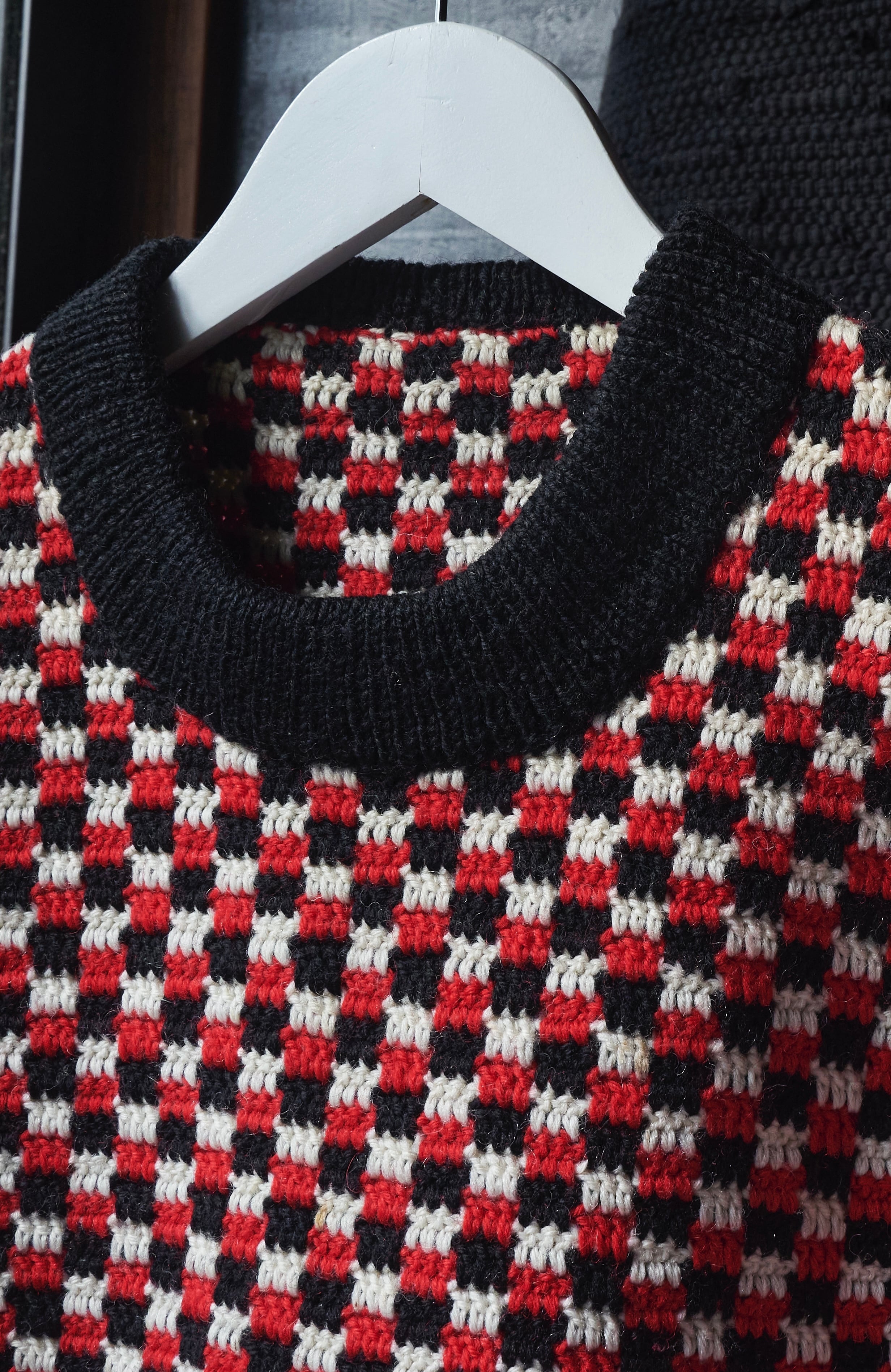80s Euro Checkered Flag Knit Sweater