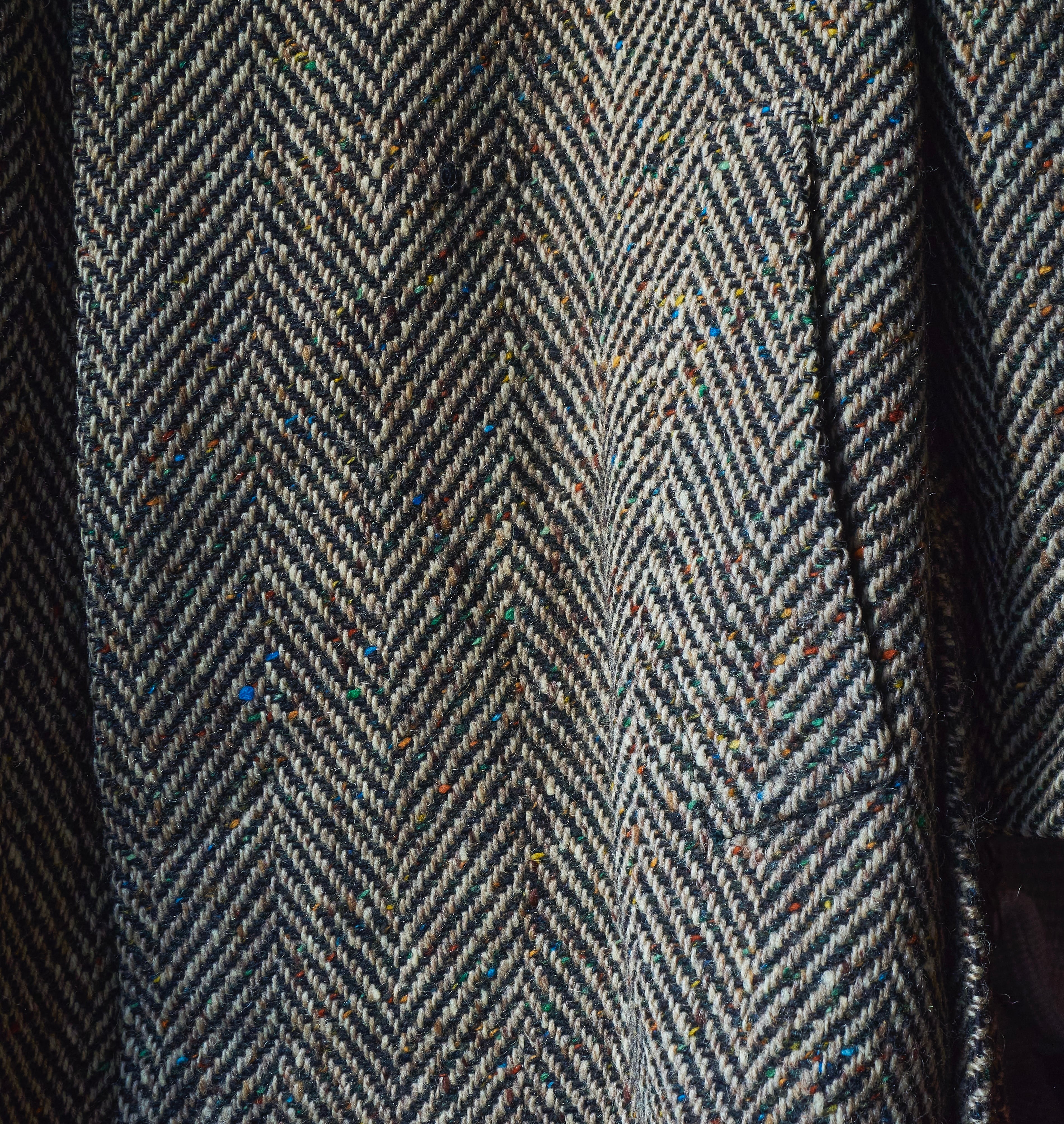 ツイードの生地目にはカラフルなネップが随所に散りばめられており、着た人だけが味わえる高揚感を味わえると着用時に思いました。