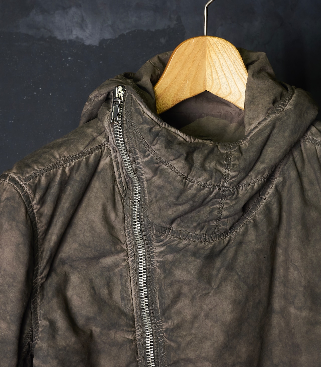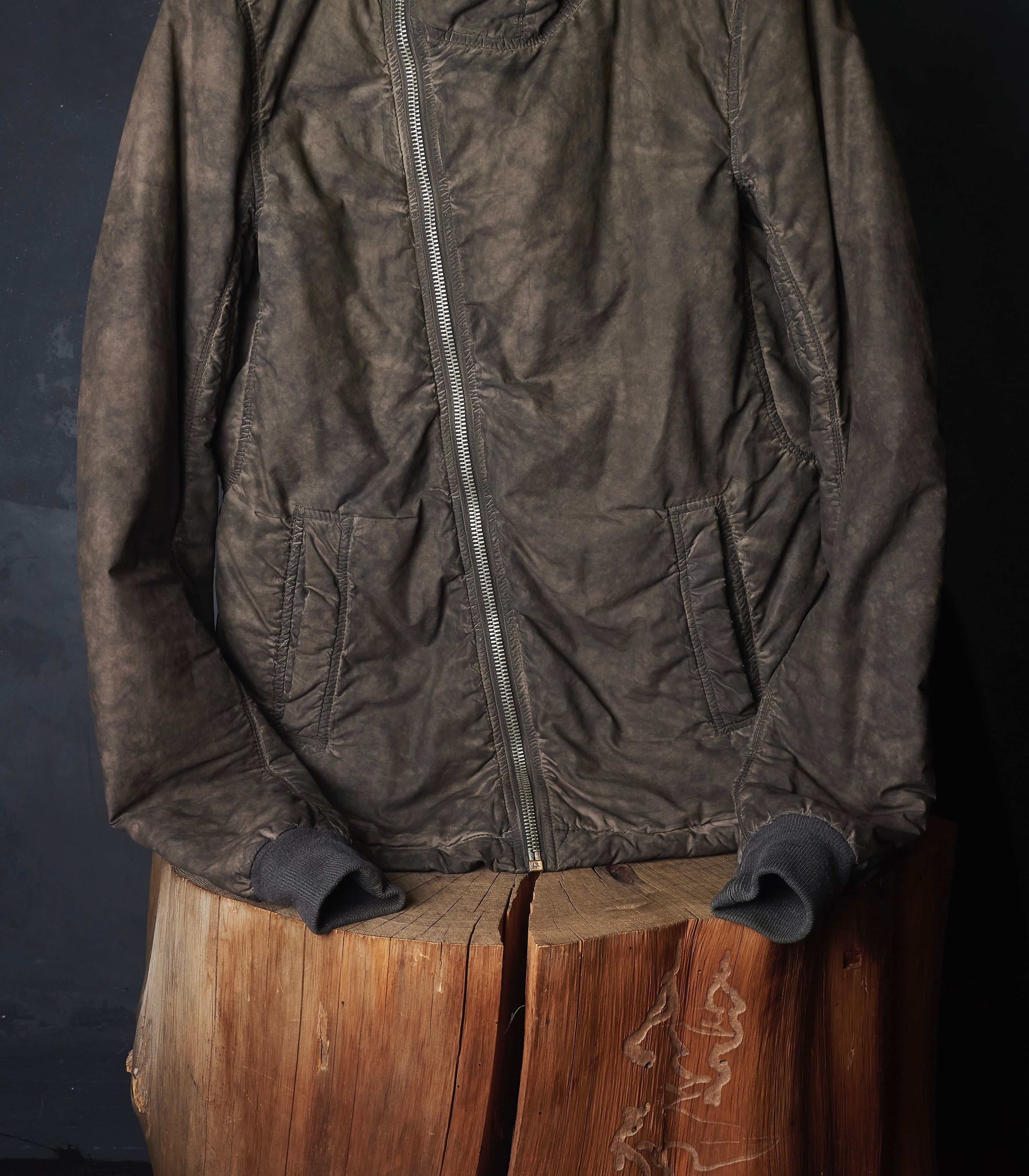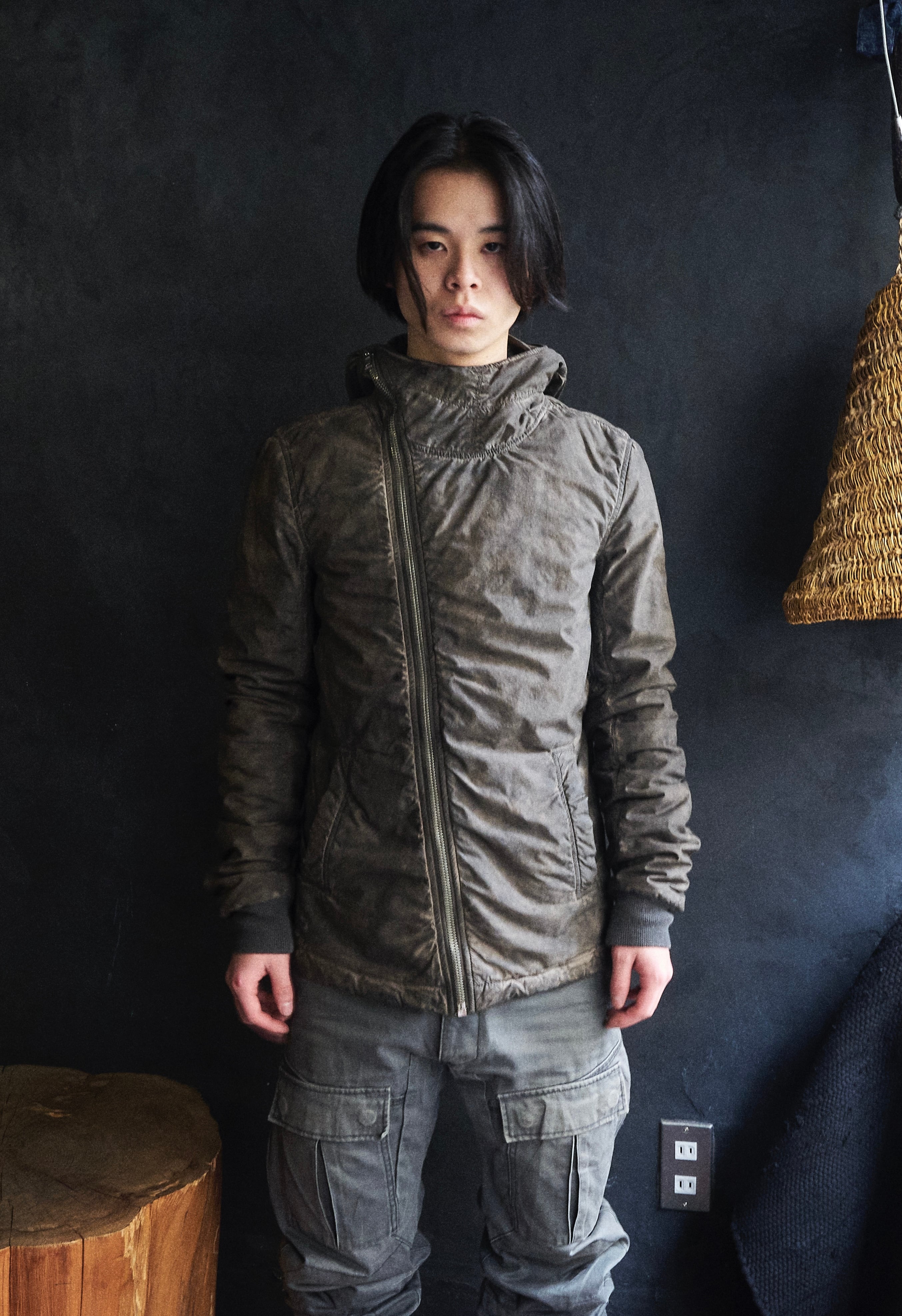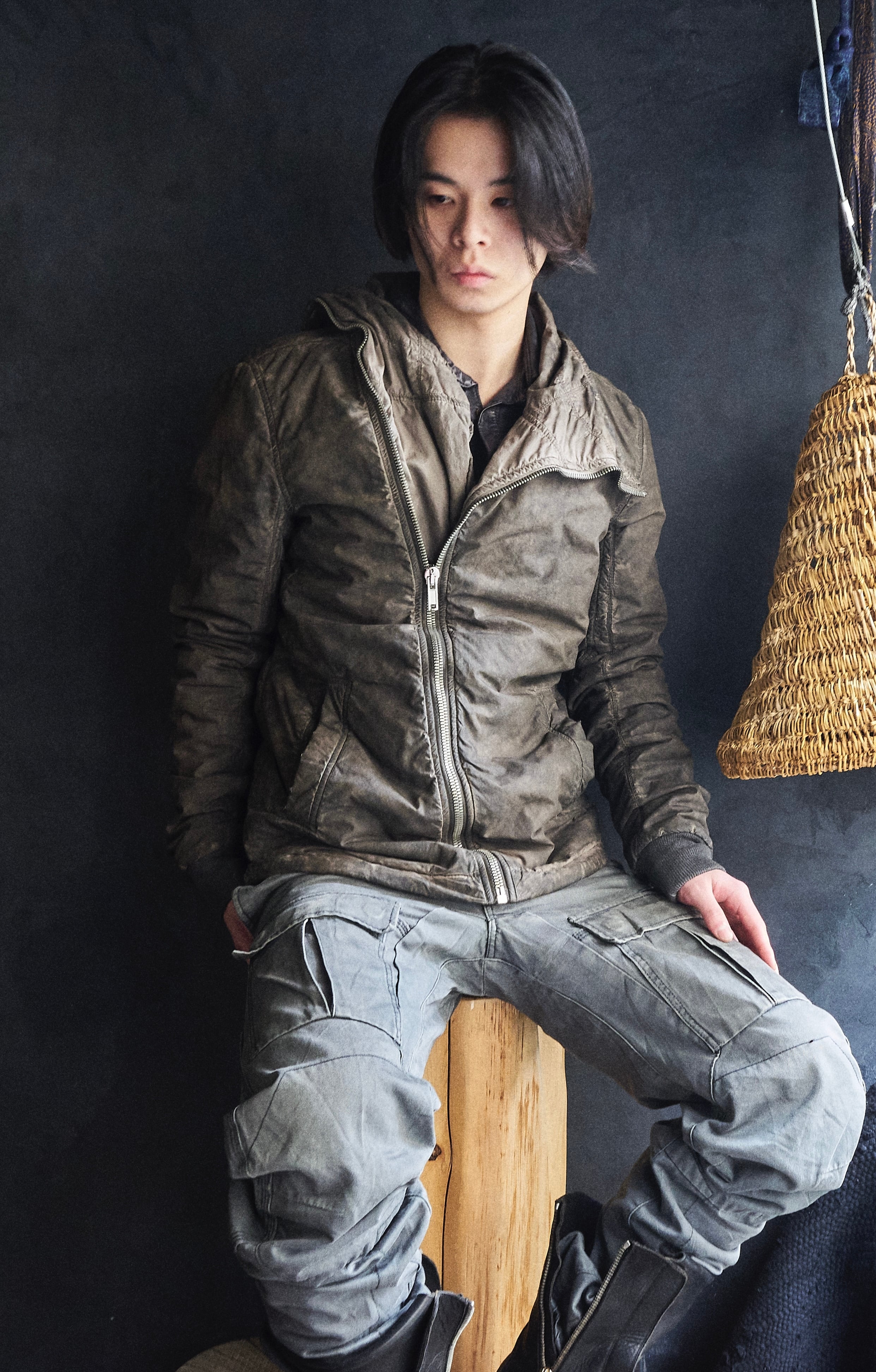 斜めジップハイネックやタイトなシルエットを持つレザージャケットのモデル名として使用されております。