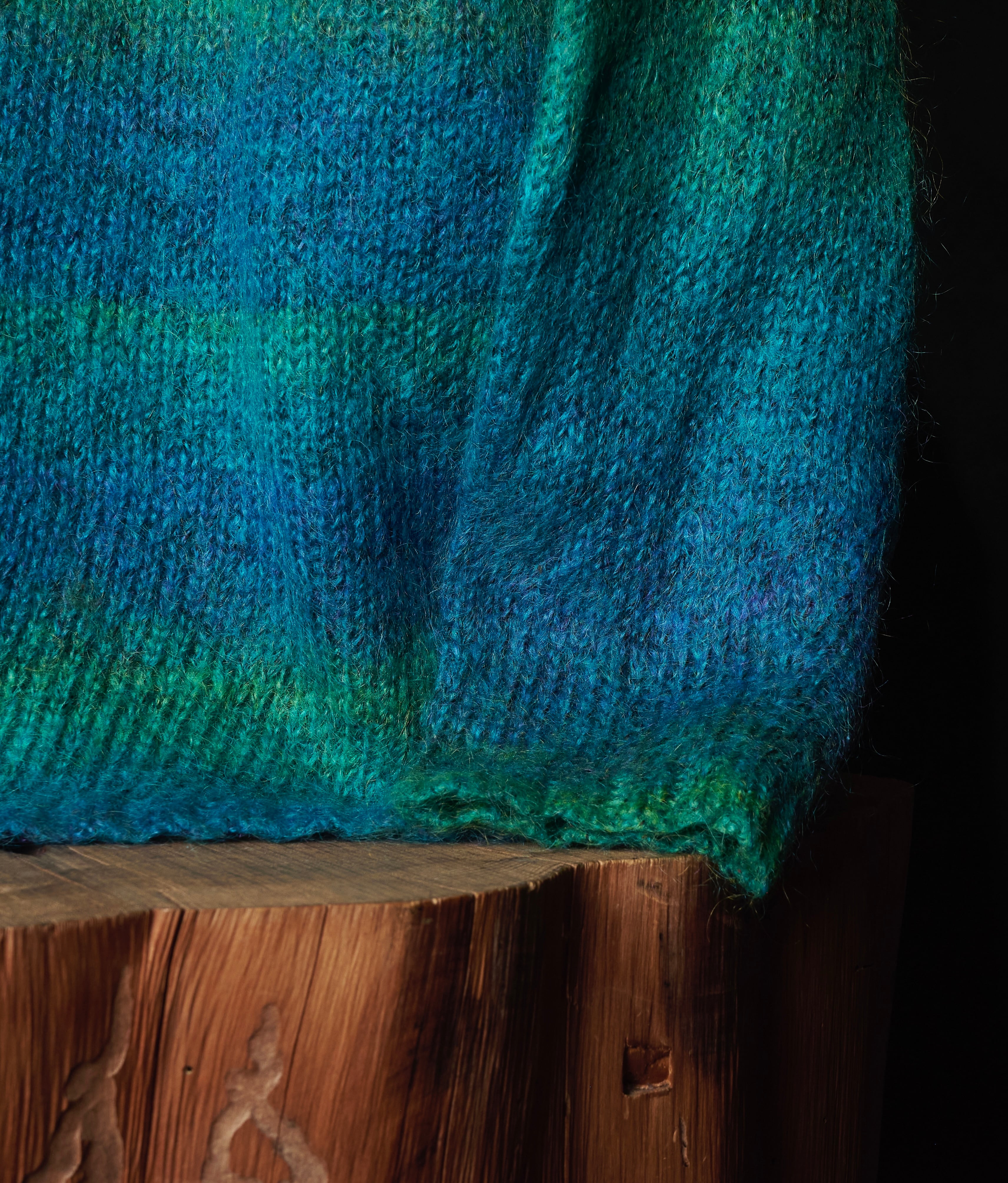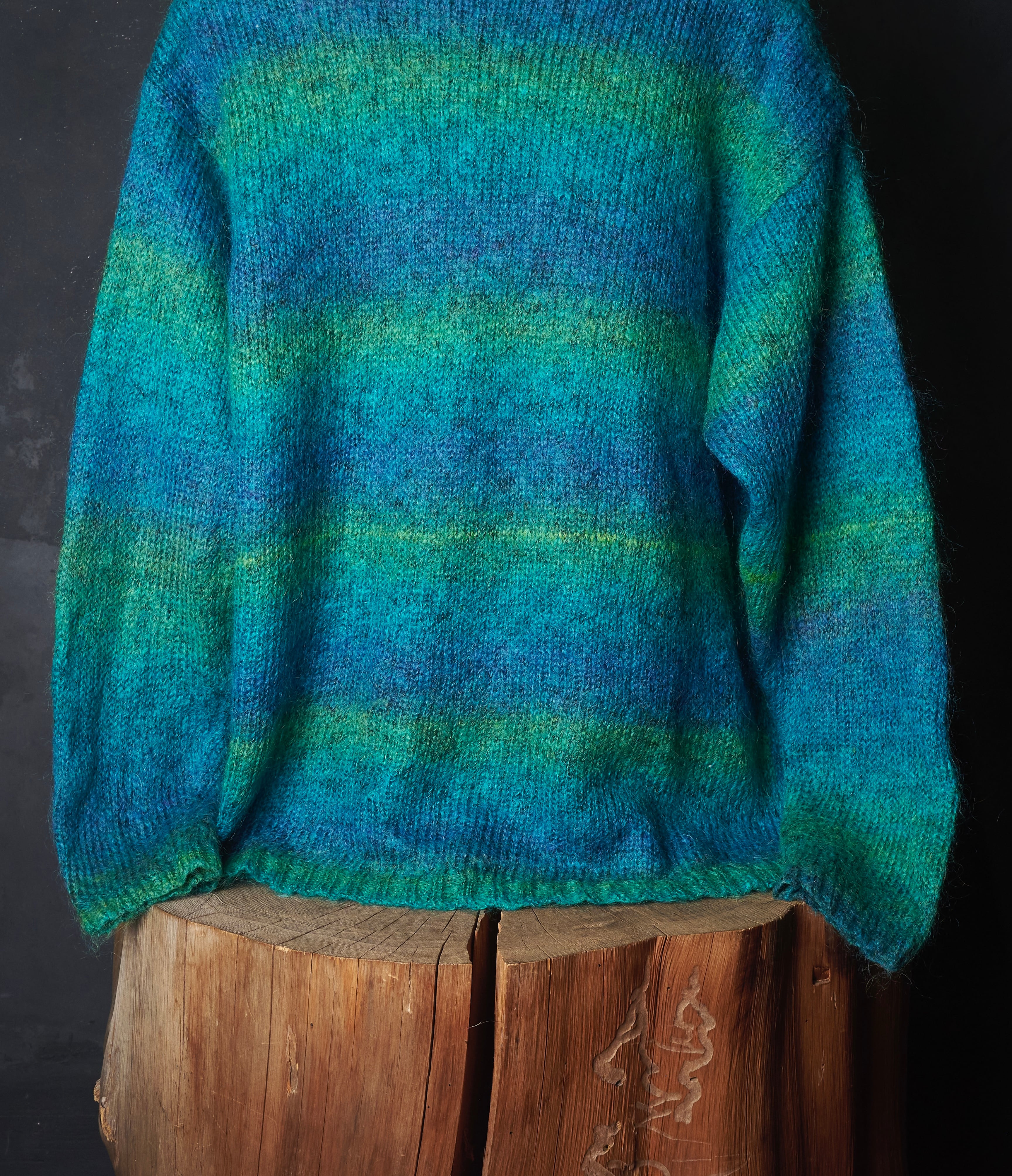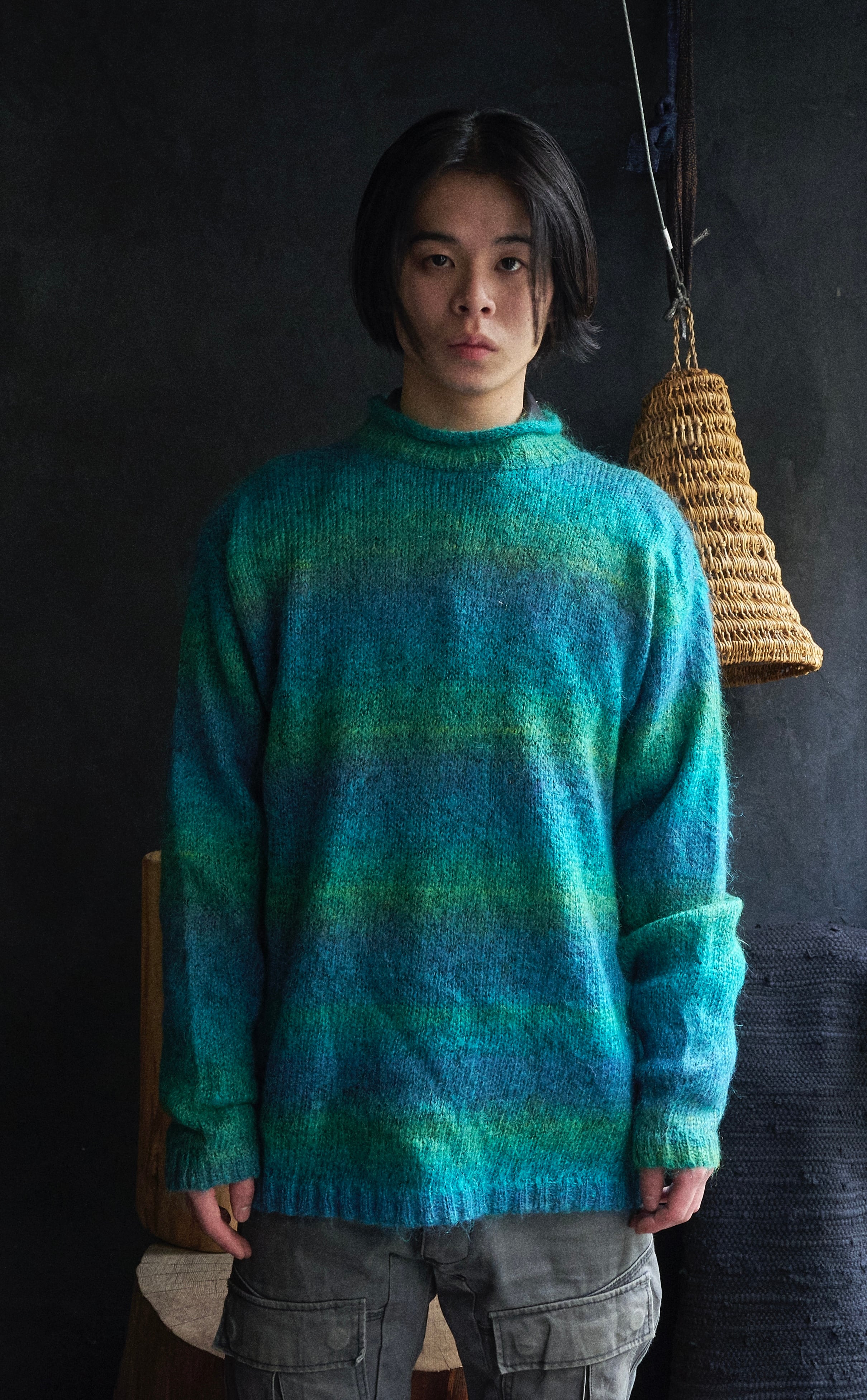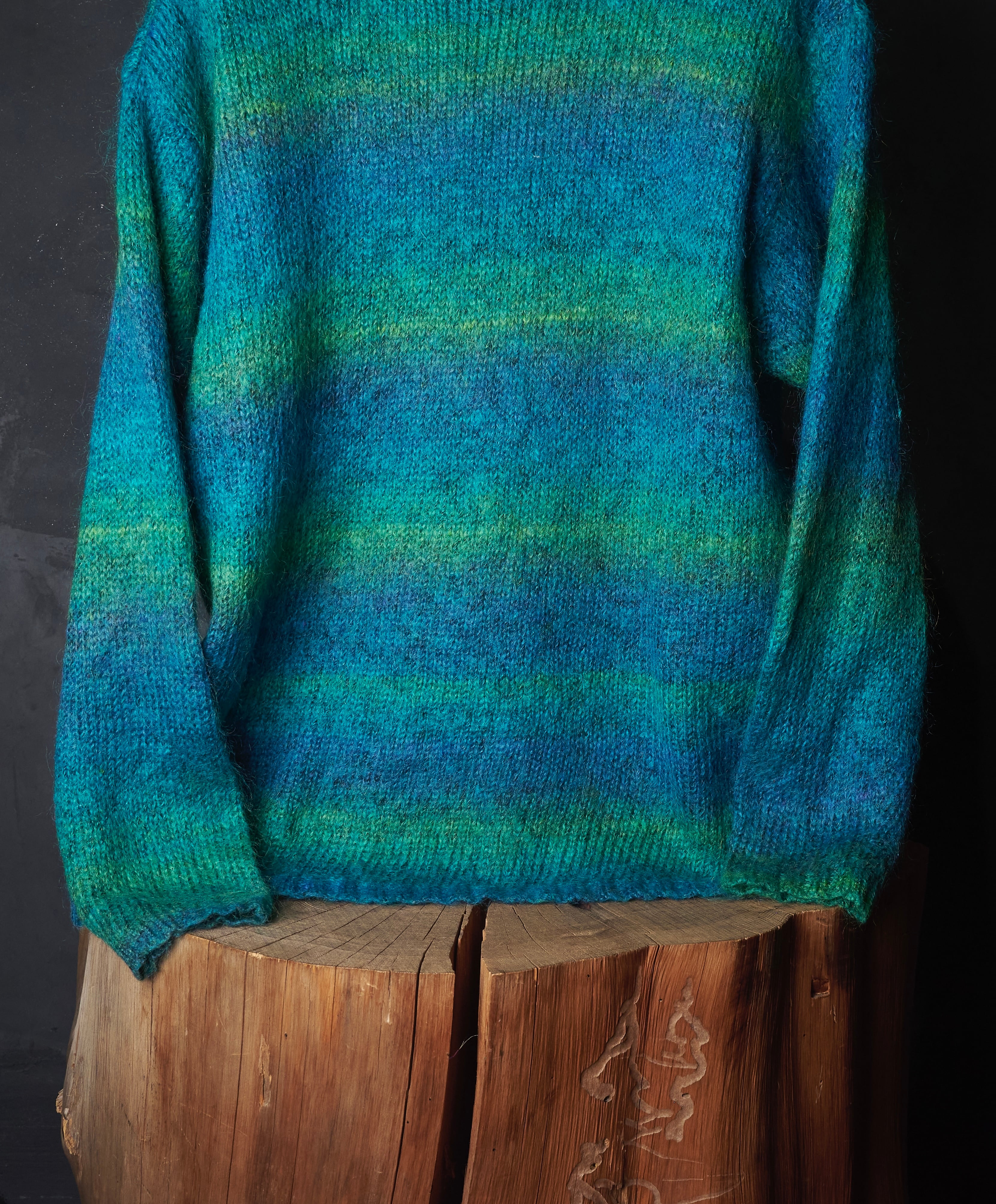 モヘヤが50%を占めて、その他アクリル×ナイロンで構成されたグラデーションニット。