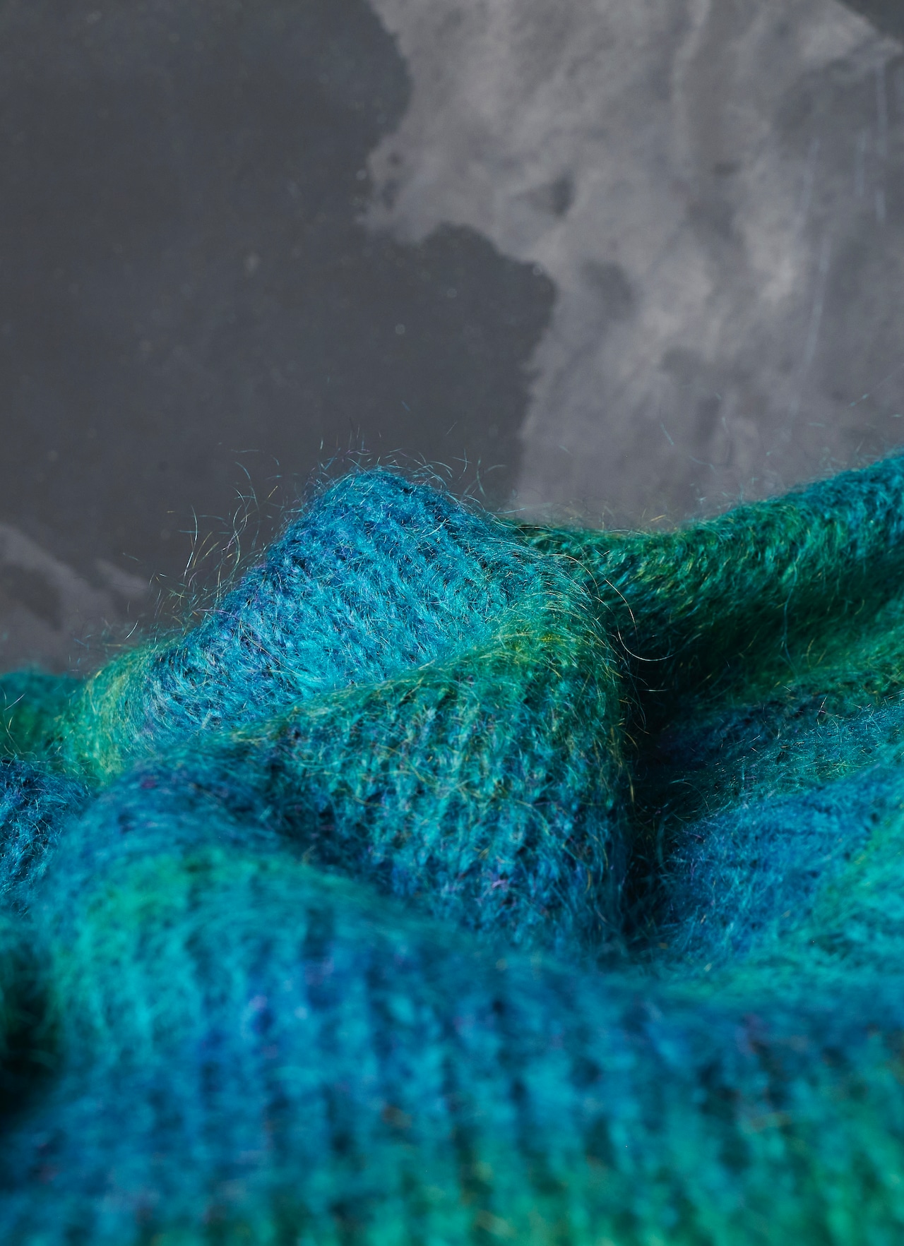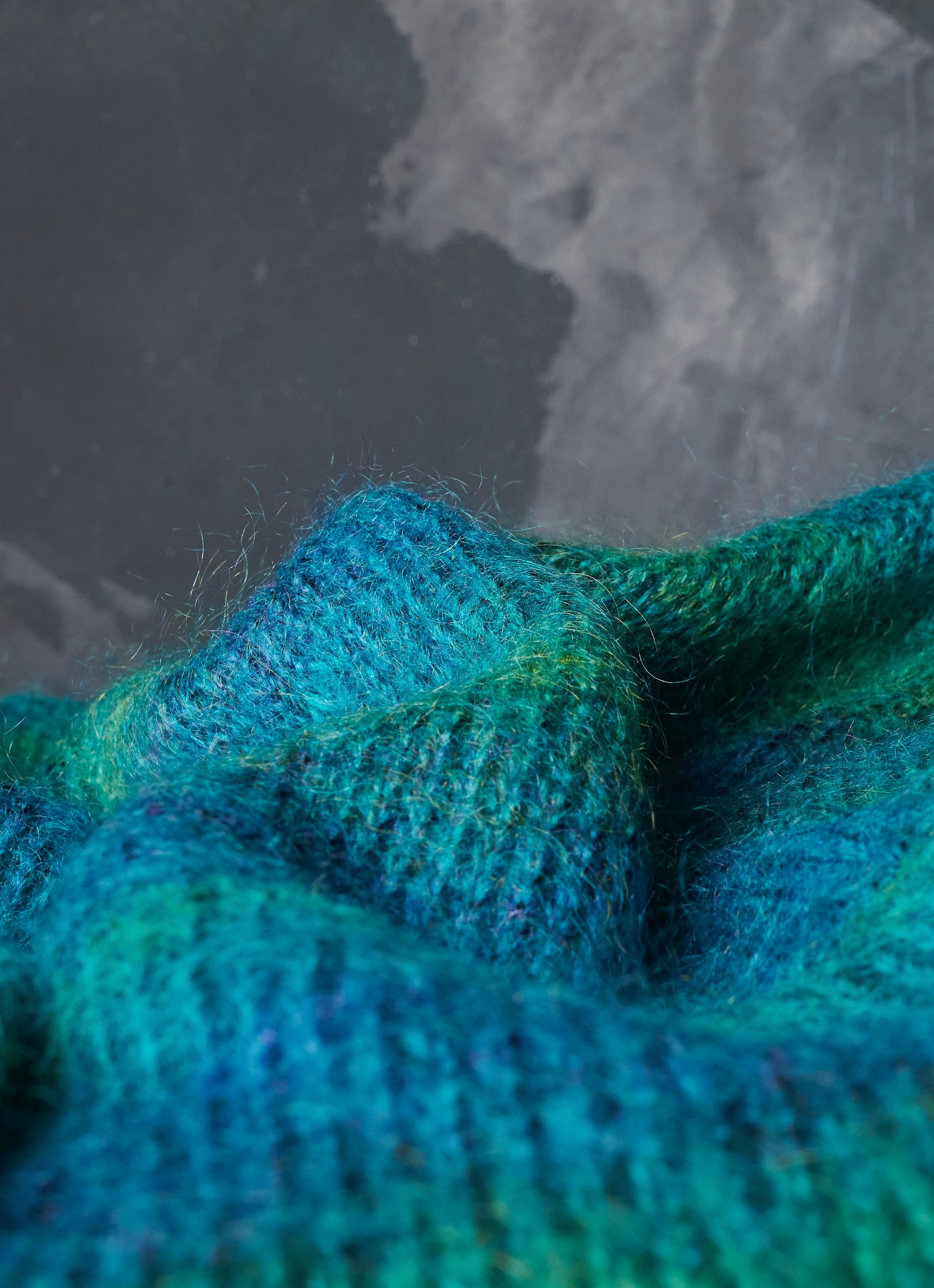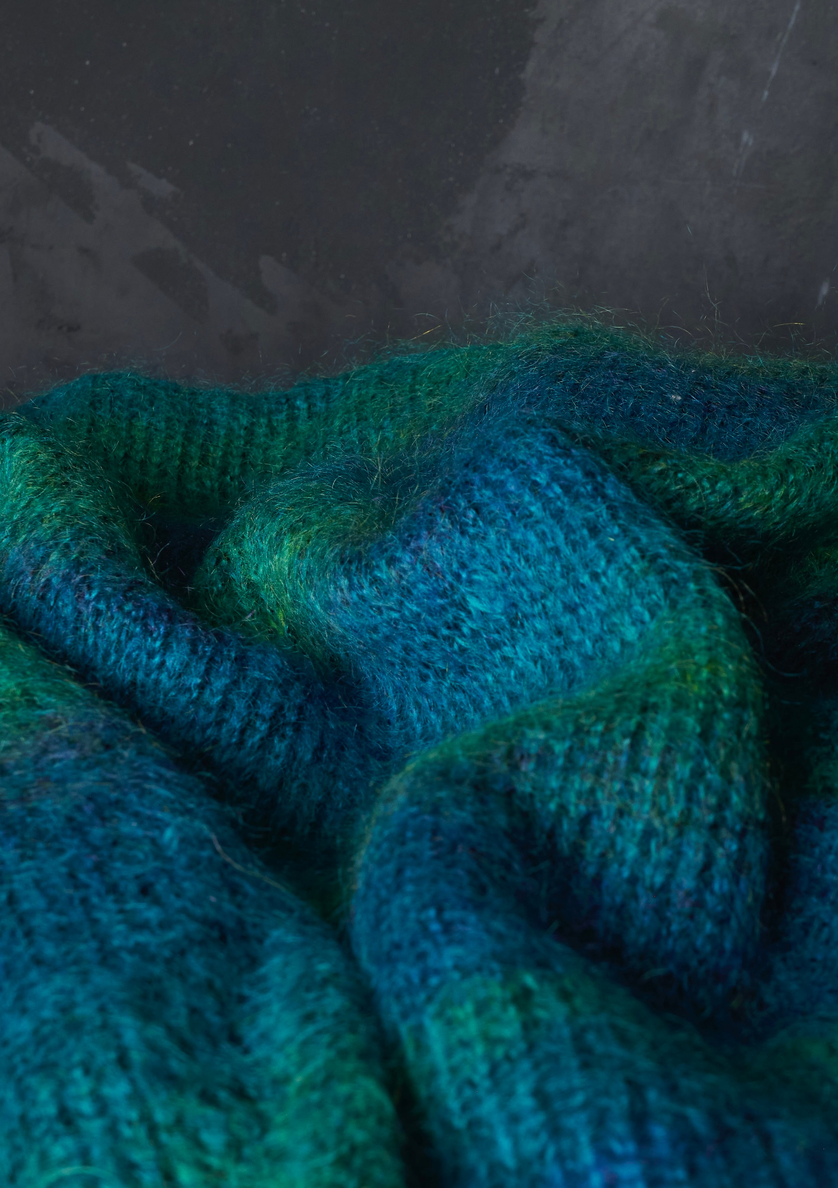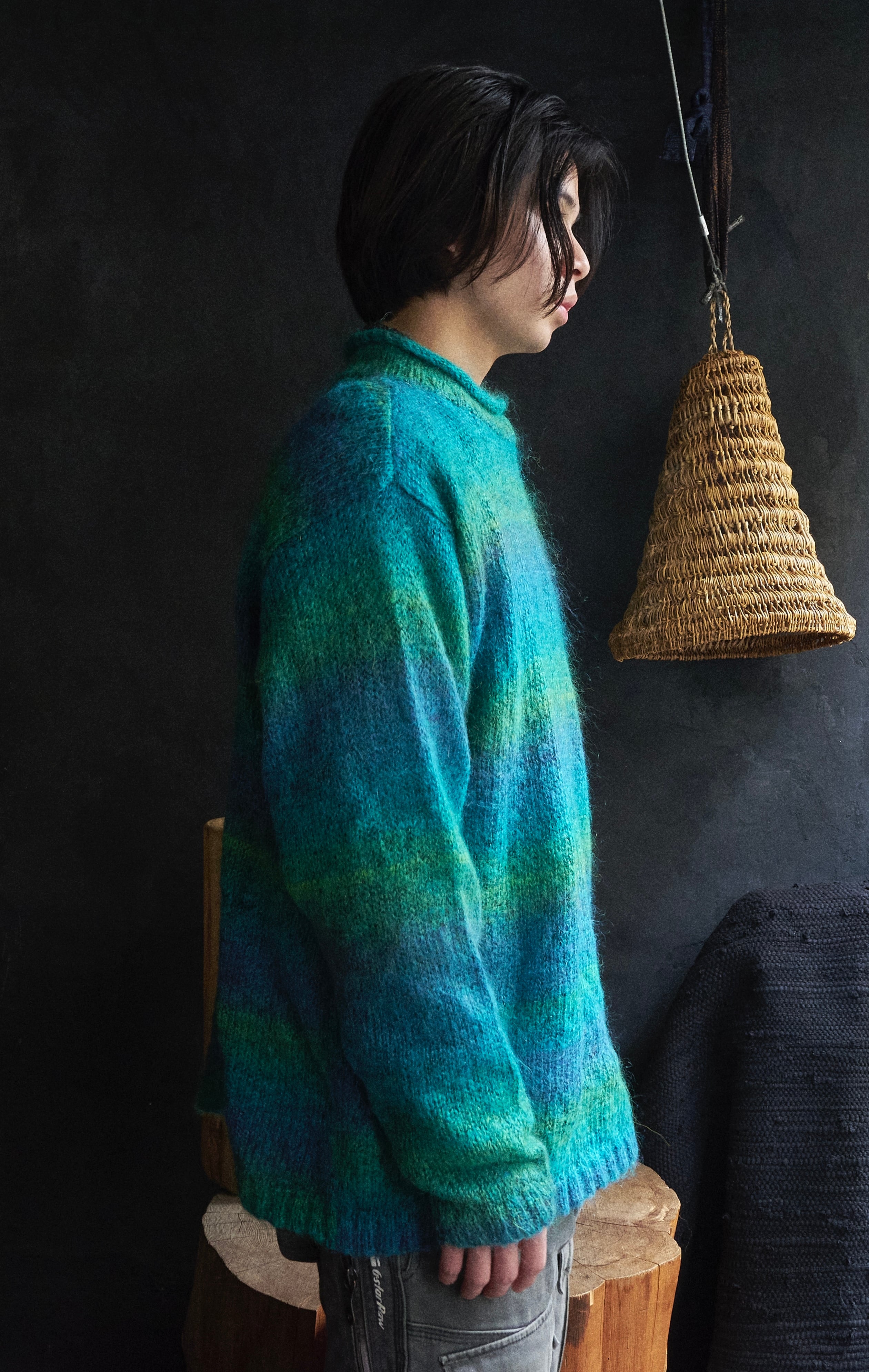 モヘヤが50%を占めて、その他アクリル×ナイロンで構成されたグラデーションニット。